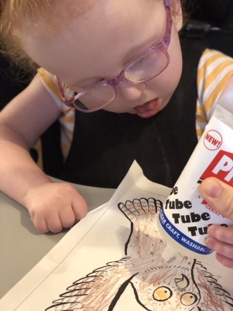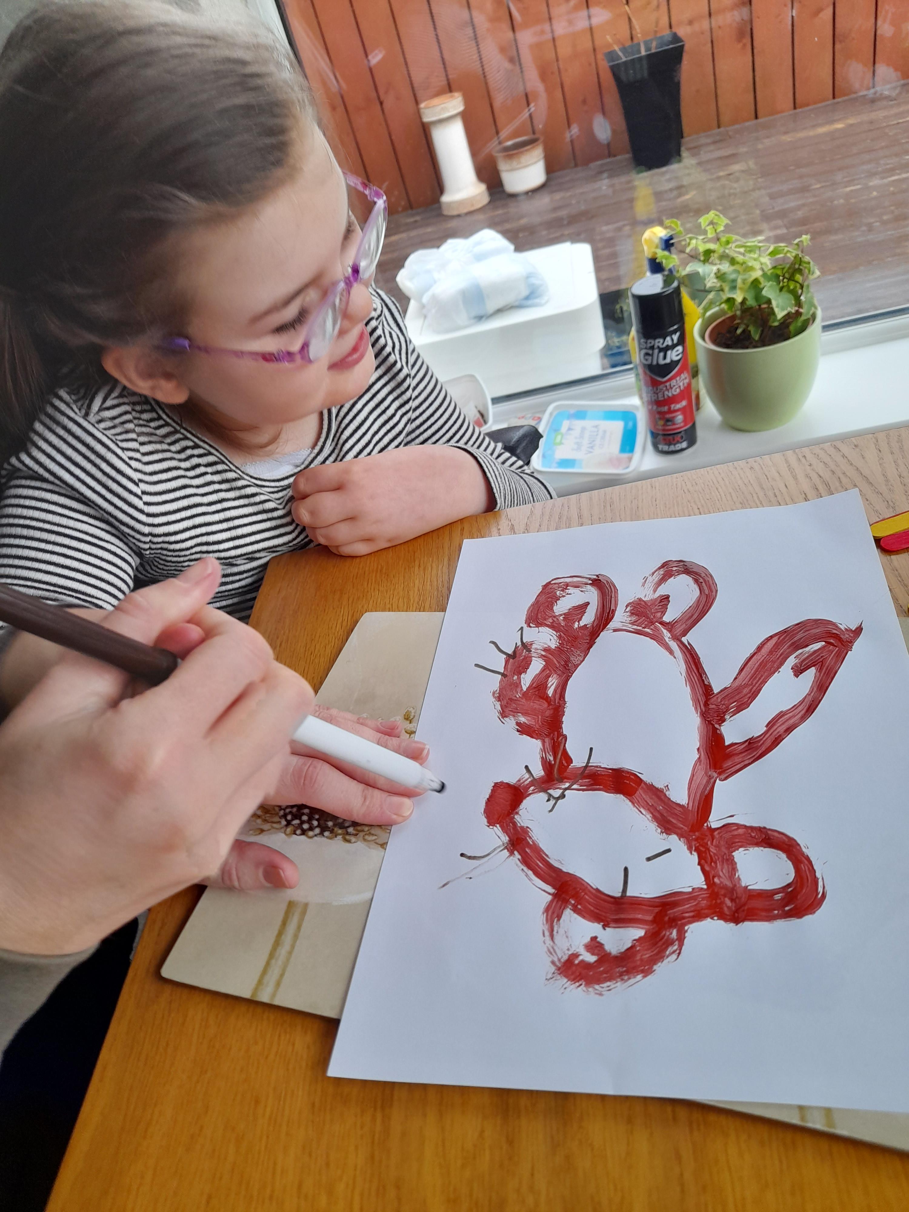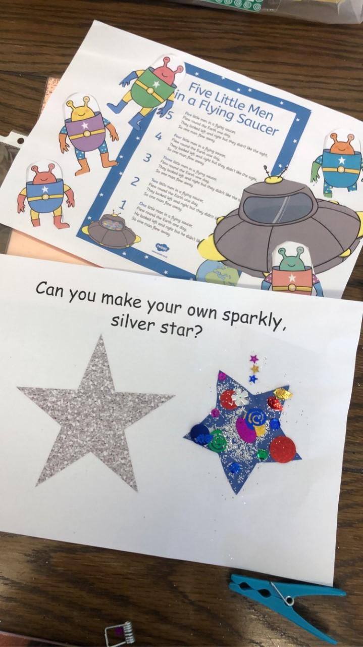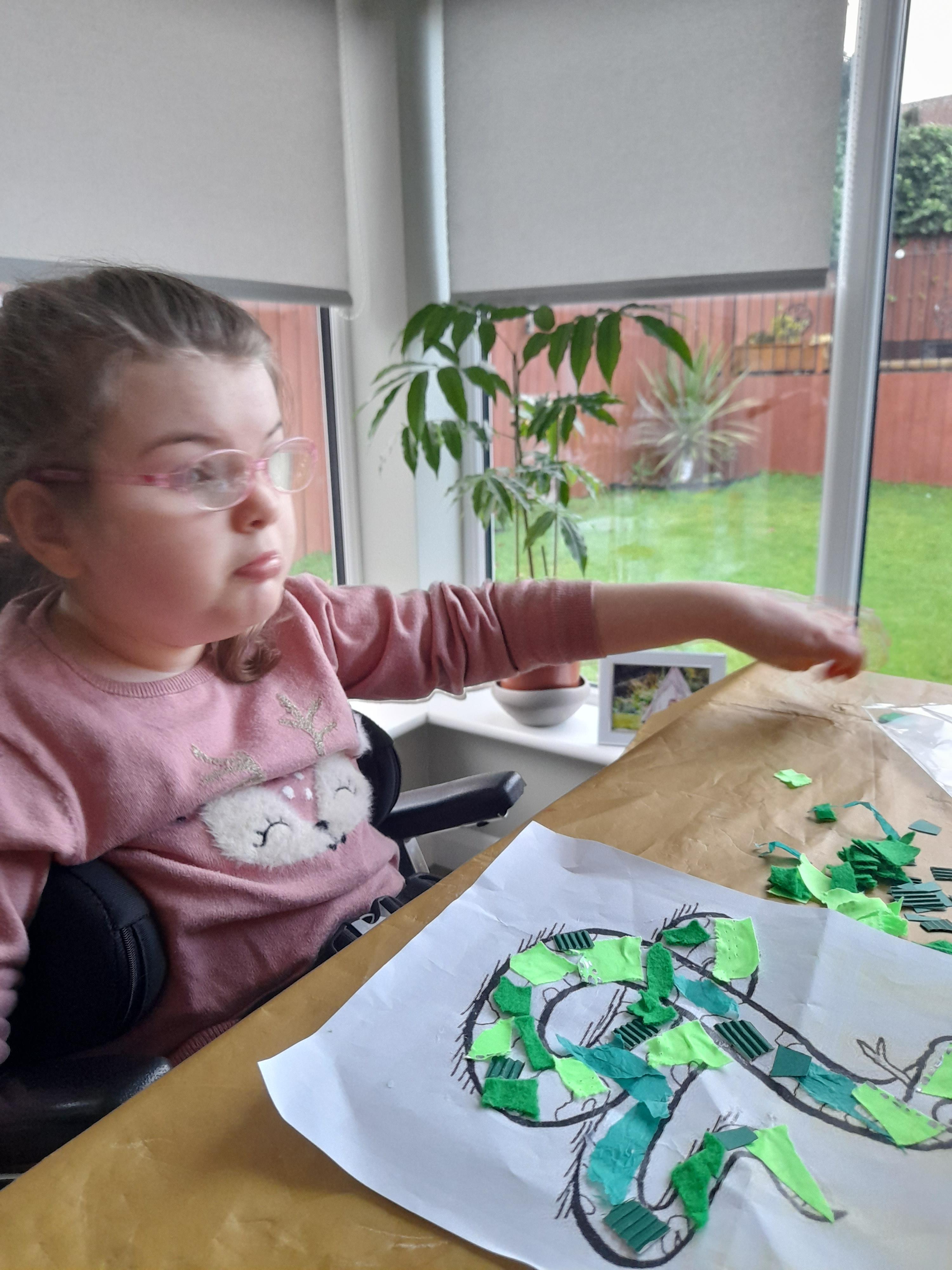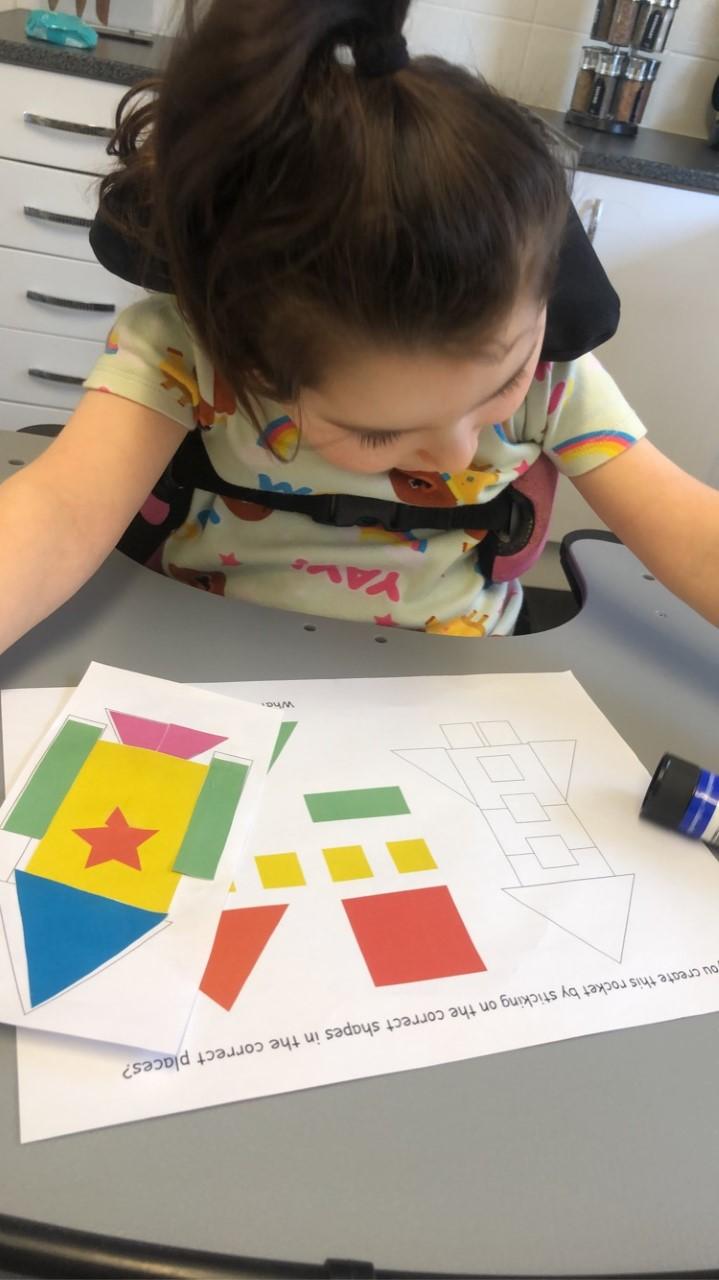 26.02.21 - Myla has completed her last tasks this morning. She's really enjoy getting messy with the glue and glitter. Her mam and her have been talking about her return to school and she's excited for bouncing on the trampoline on Monday!
