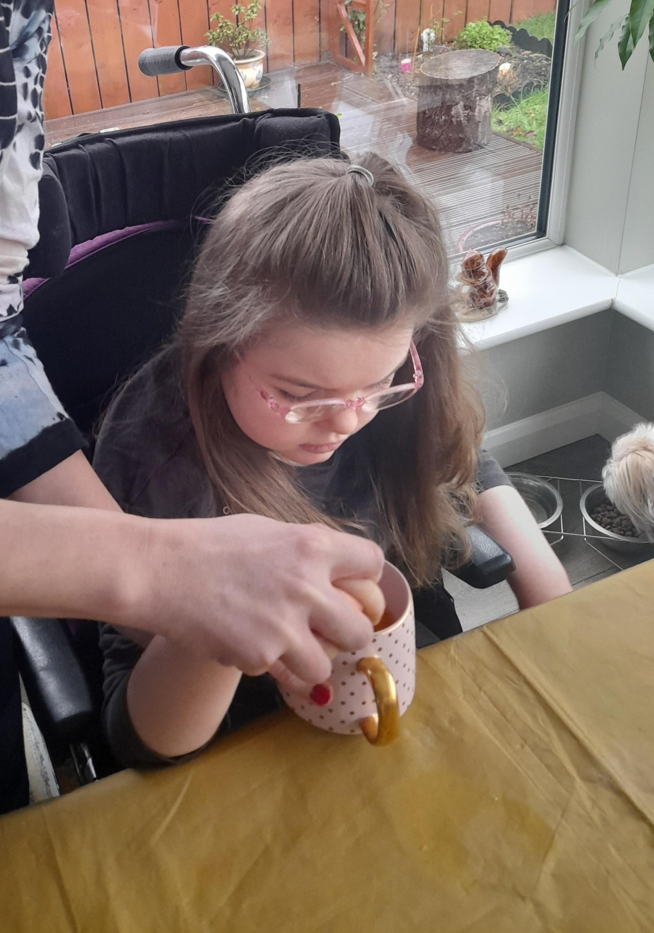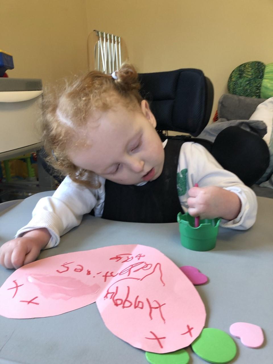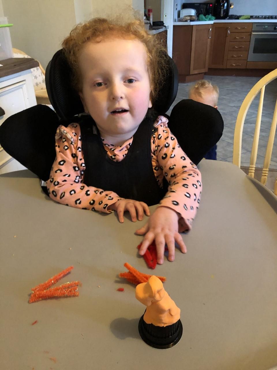 24.02.21 - Eppy had a lovely half term with her family. Eppy's mam had made a nice candle lit dinner for Valentine's Day. Eppy helped prepare all the veg, make decorations and baked a red velvet cake. Eppy has made her mam and dad so proud with all her hard work and happily tolerating going in her standing frame. Well done Eppy, you are fantastic!