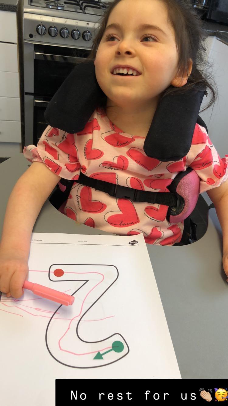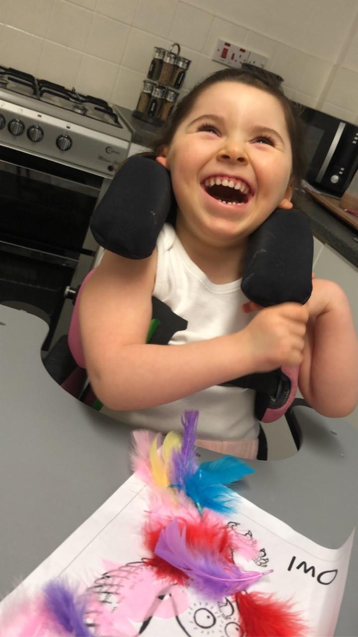 22.02.21 Myla has been a little super star! She's eating every meal in her chair at home and drinking a full cup of juice or water with her meals. She's been using her stander every day. She has completed a lot of school work with her mam and had so much fun doing it but she's really looking forward to being back at school next week with her class friends.