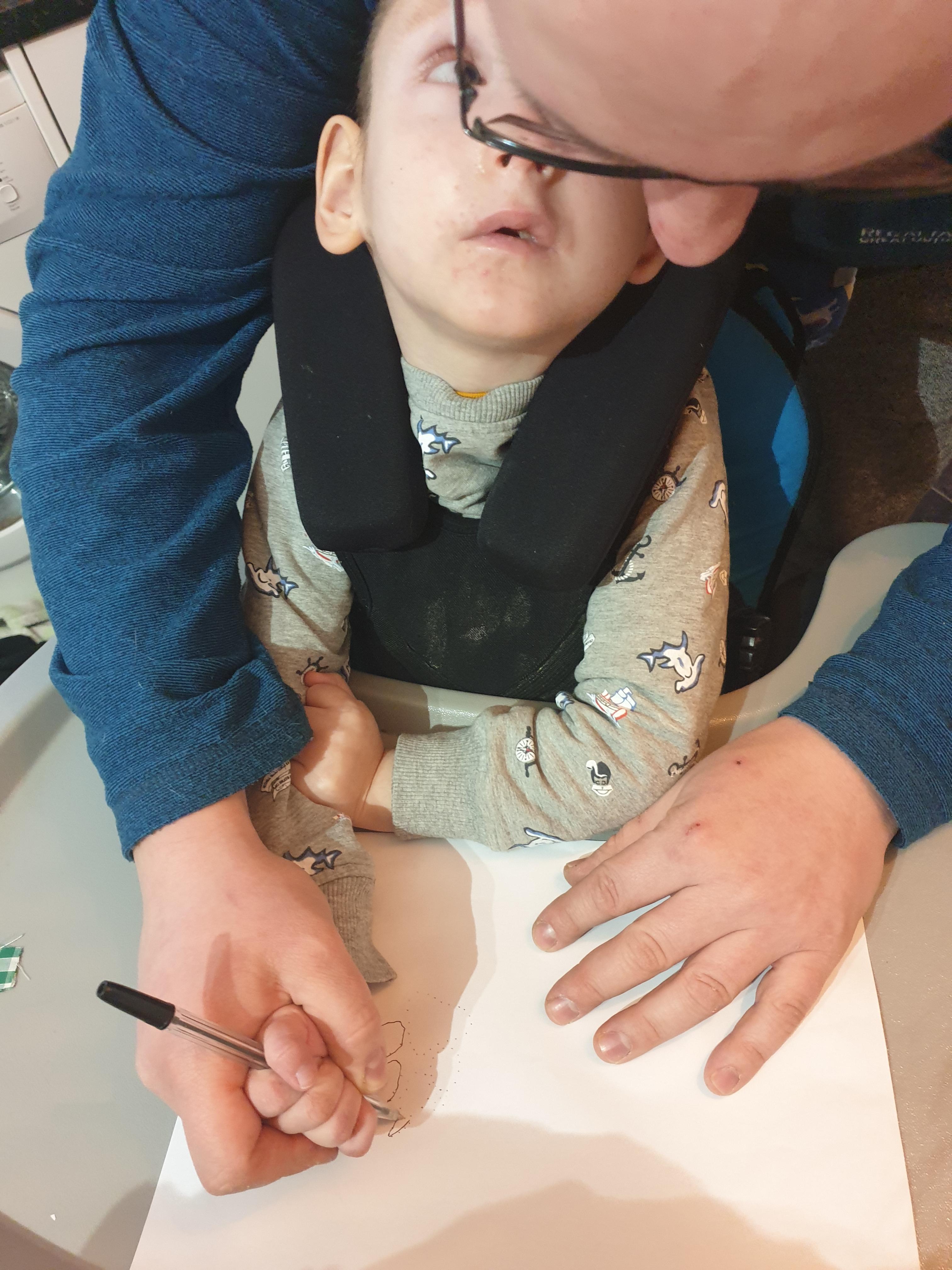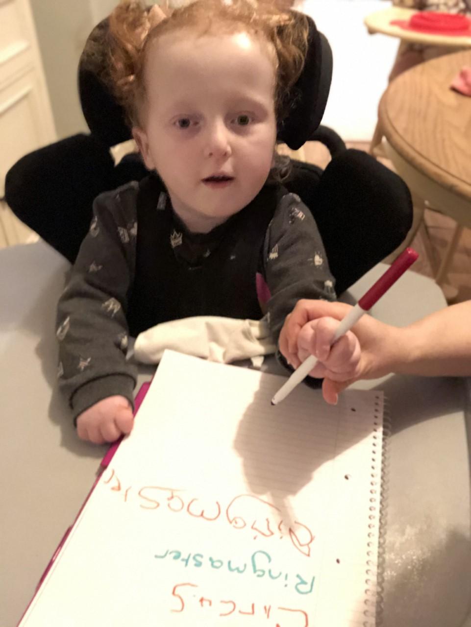 04.12.20 Eppy is developing her writing skills at home with her mam.