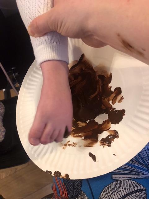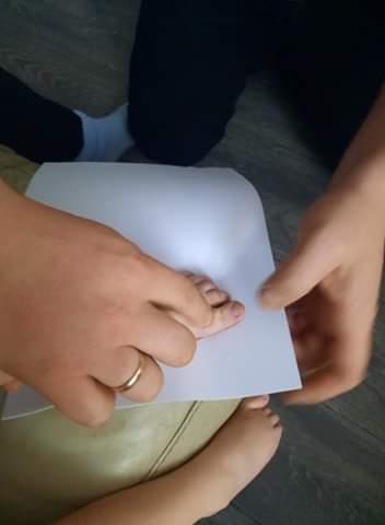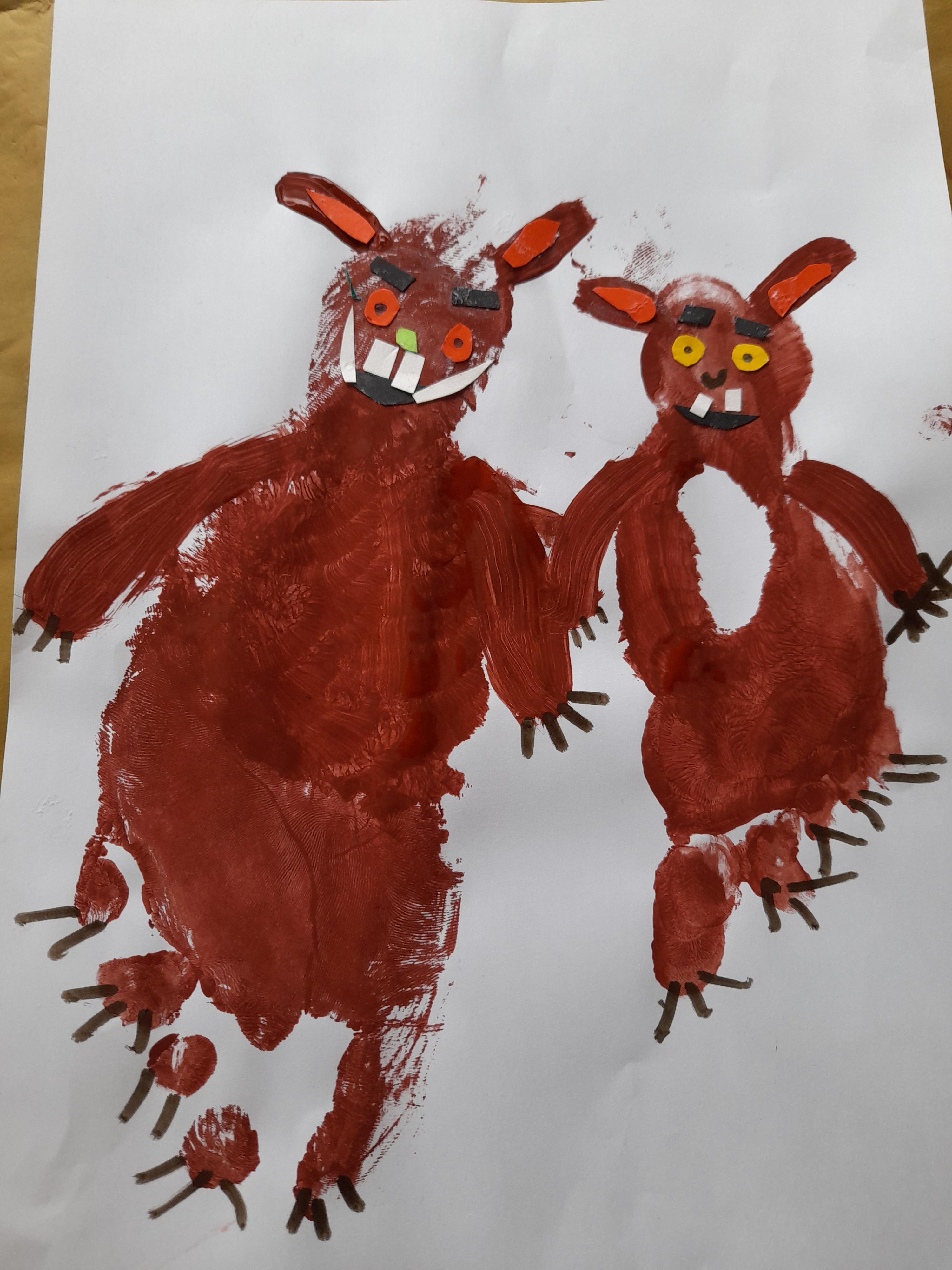 03.02.21 Nell has had a fun morning with her mam, creating their own different animal foot print stamps. Nell helped her Grandma paint her Mammy's foot brown and Nell created the Gruffalo's child using her foot print. Fantastic art work Nell!