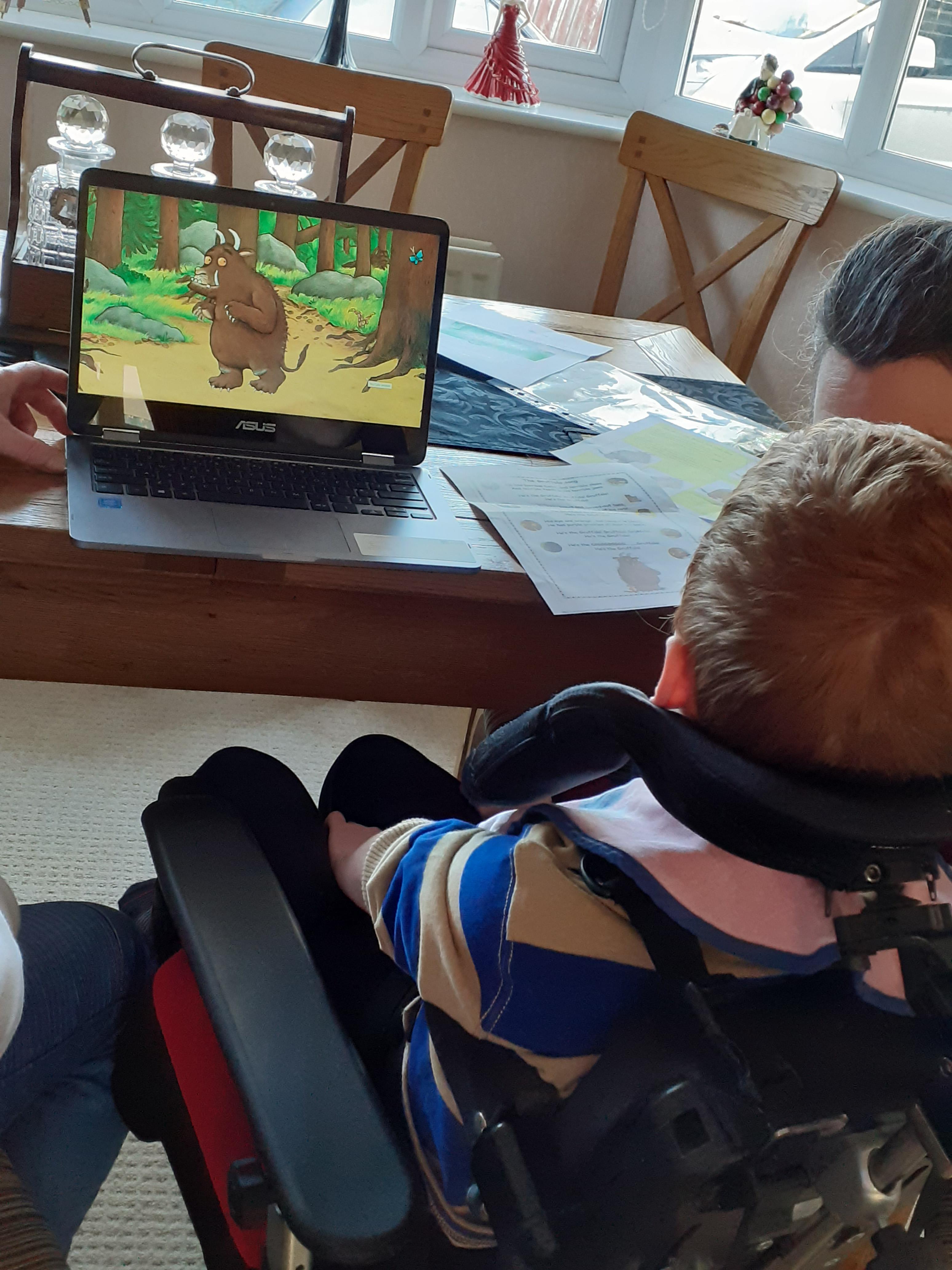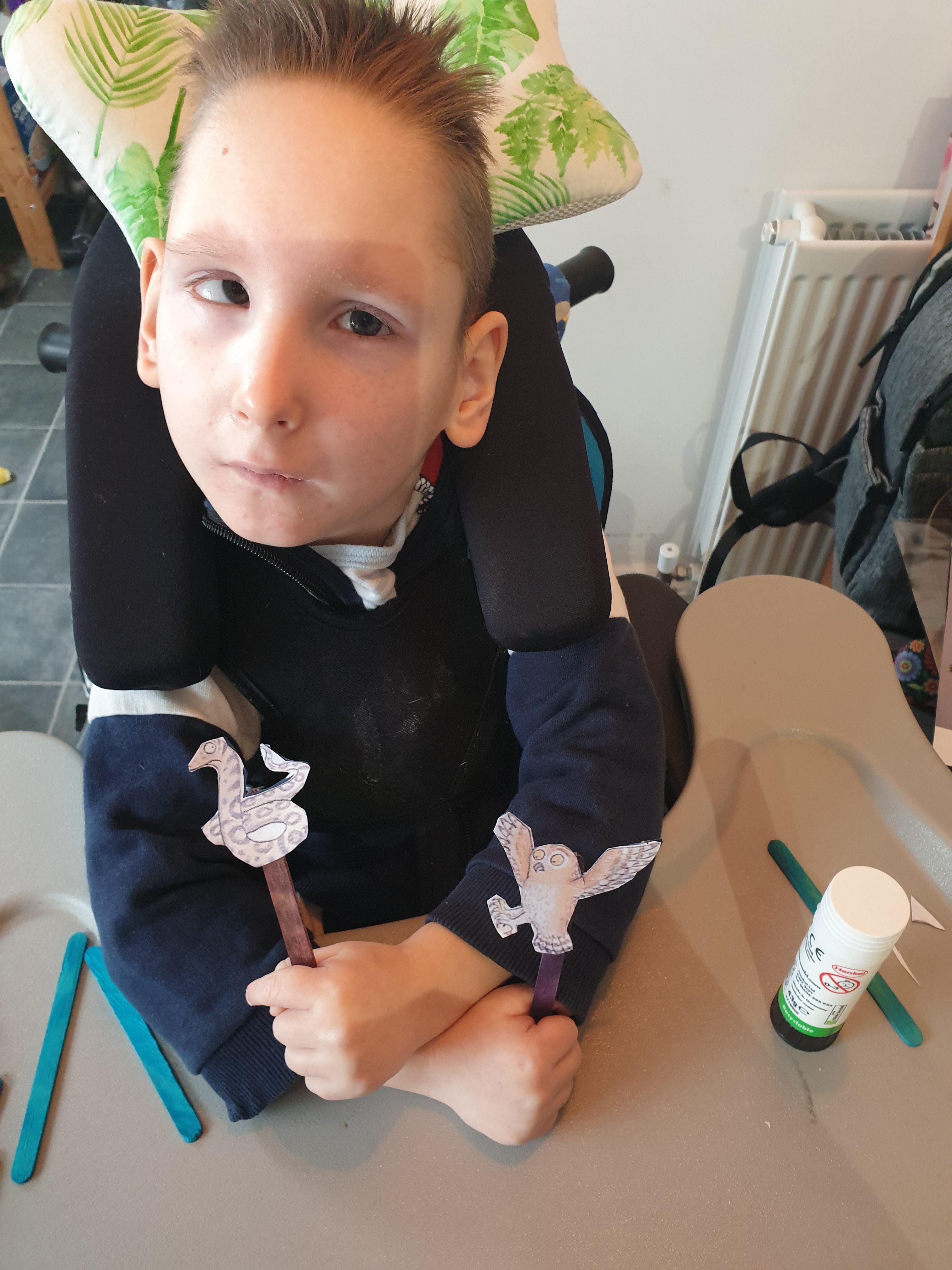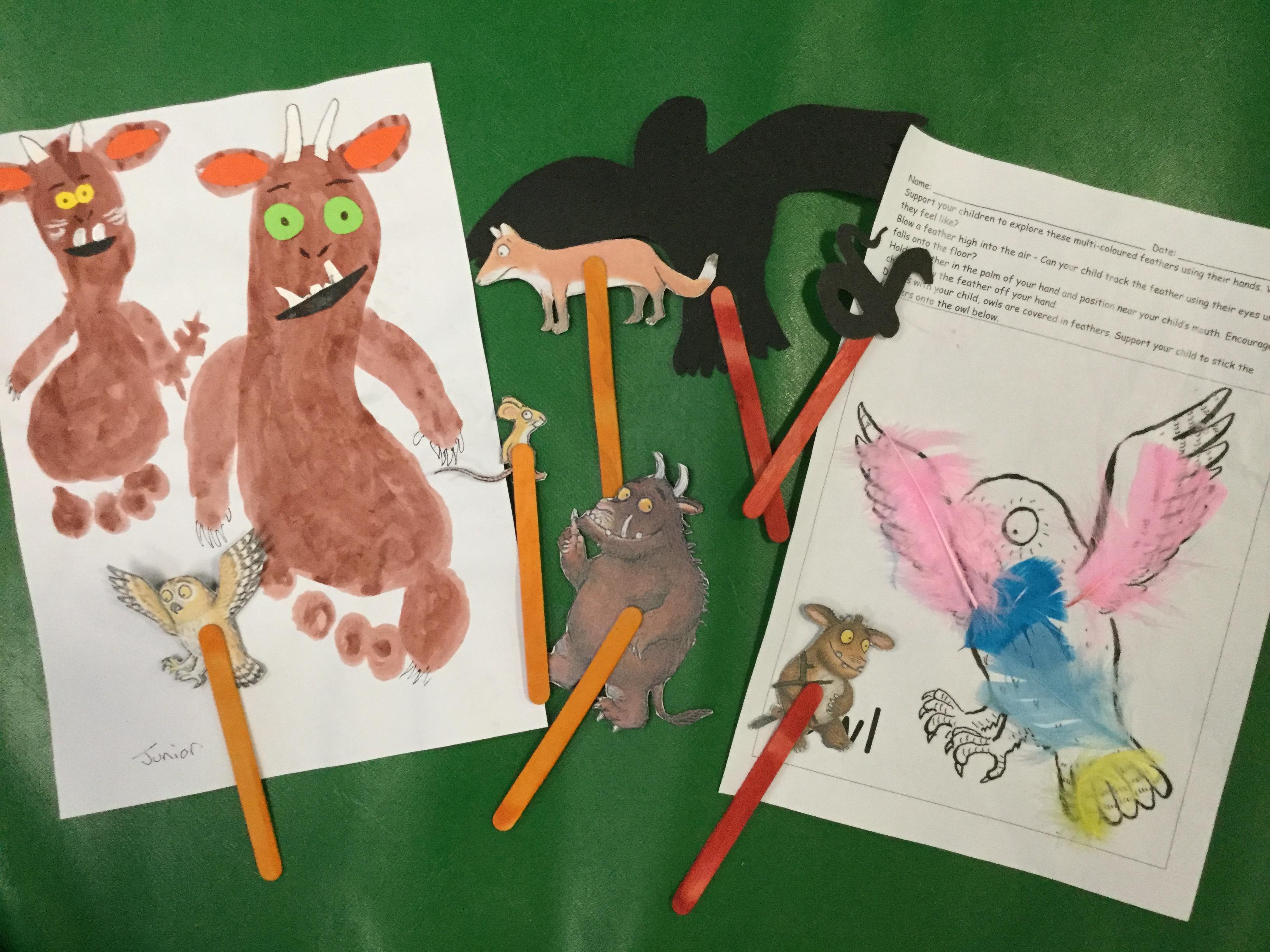 15.02.21 Antoni has been doing some fantastic remote learning with his mam and dad. He's been making character puppets, animal foot prints and creating a picture of the Gruffalo using his own foot print. Well done Antoni!