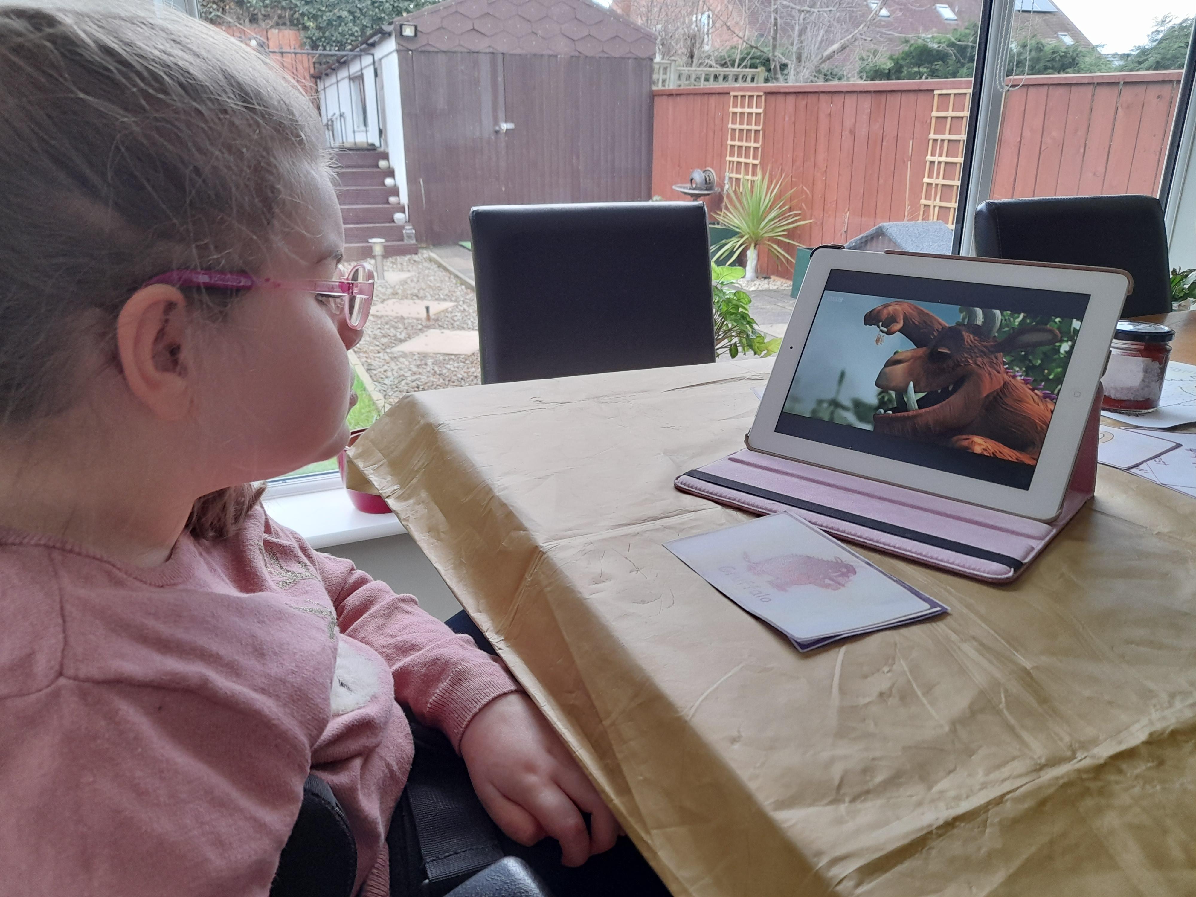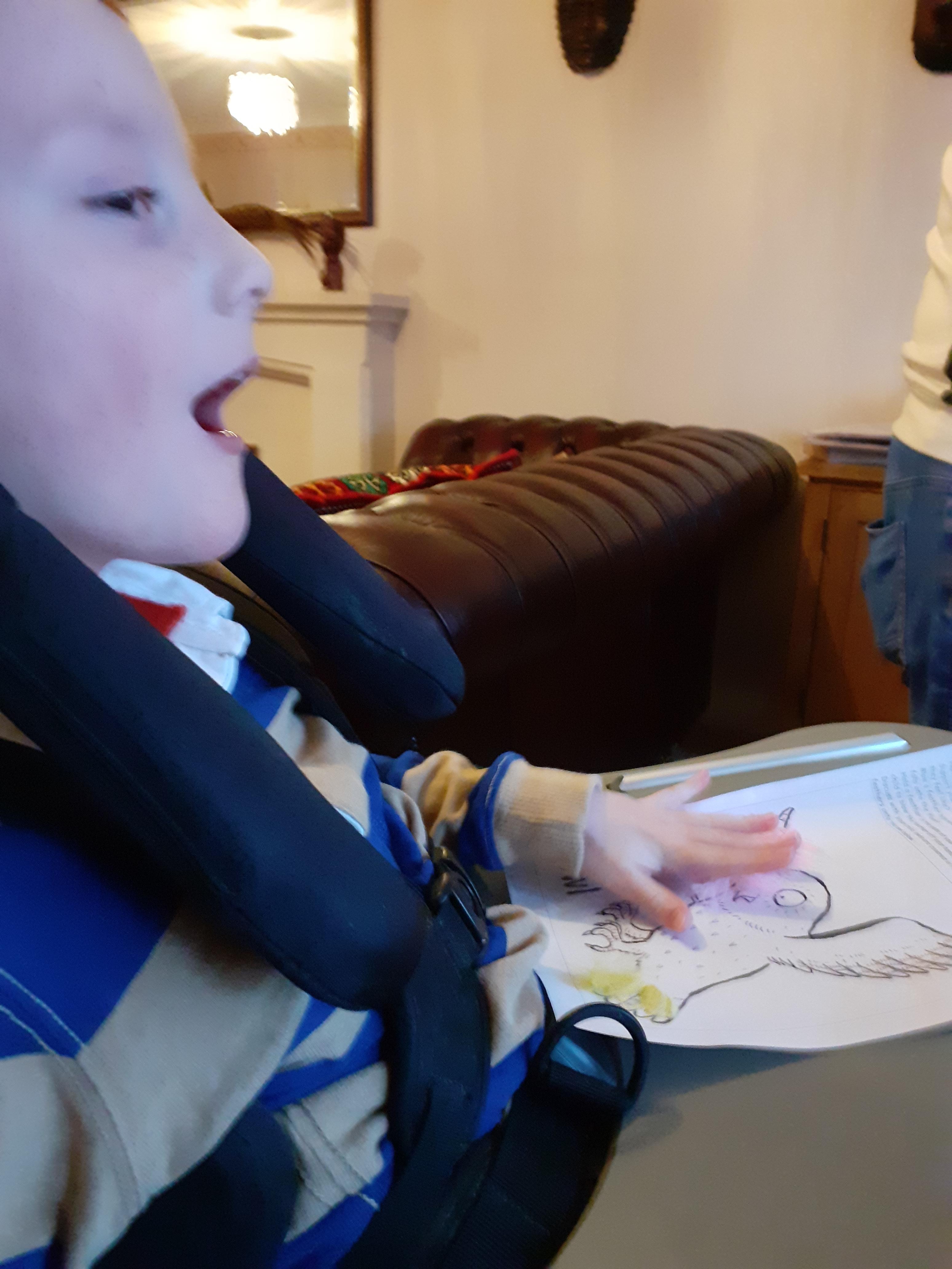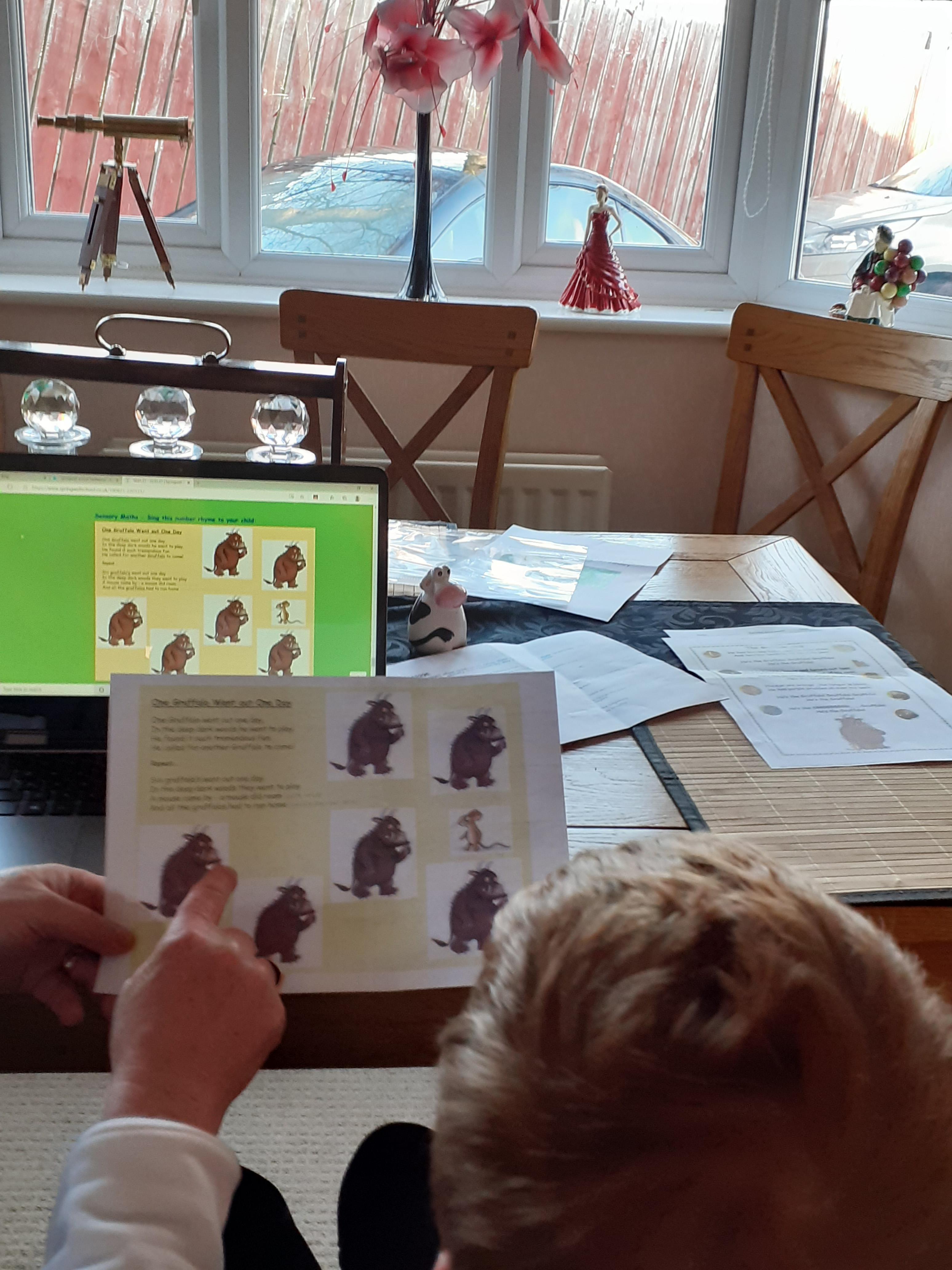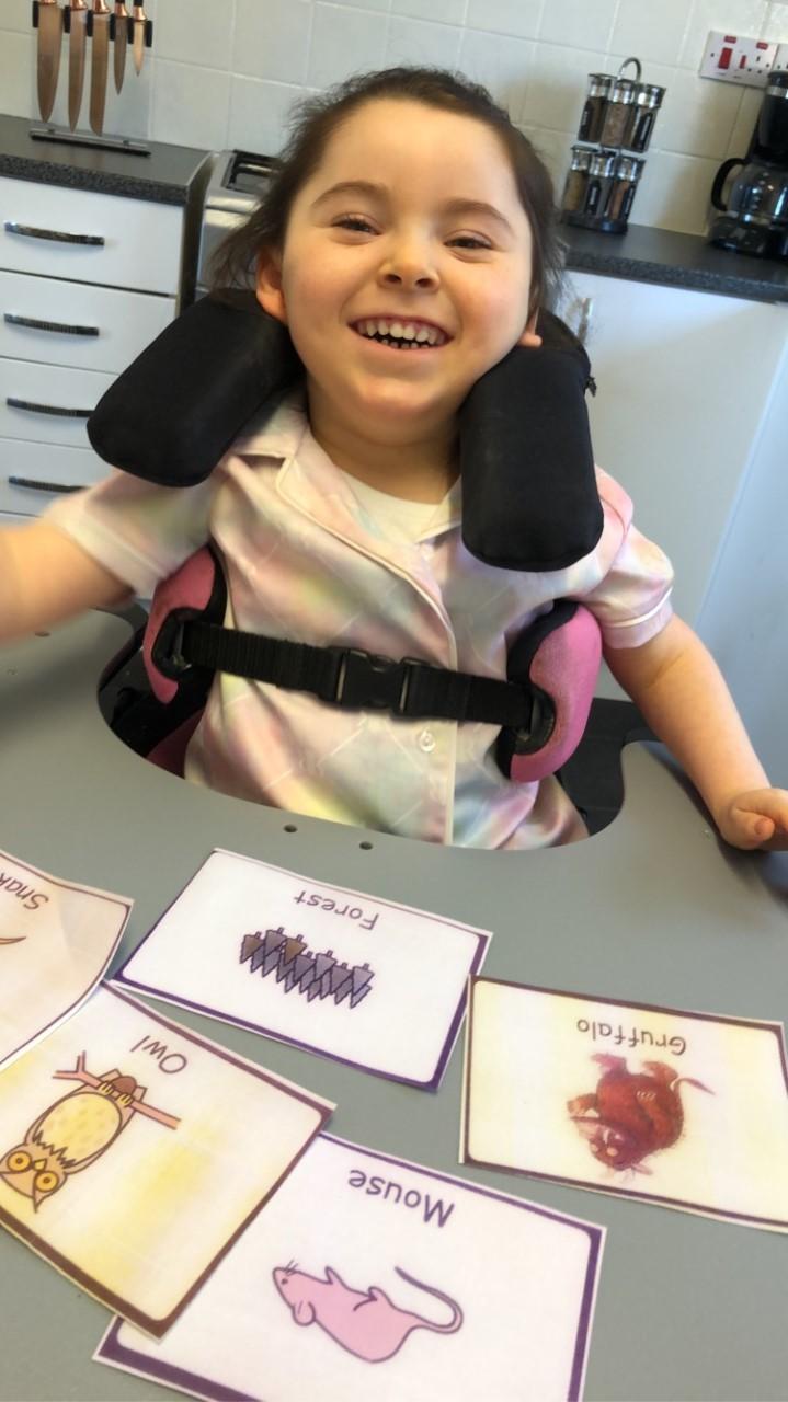 24.01.21 - Eppy becomes excited and bodily animated when she sees the Gruffalo picture card! Wonderful Eppy!