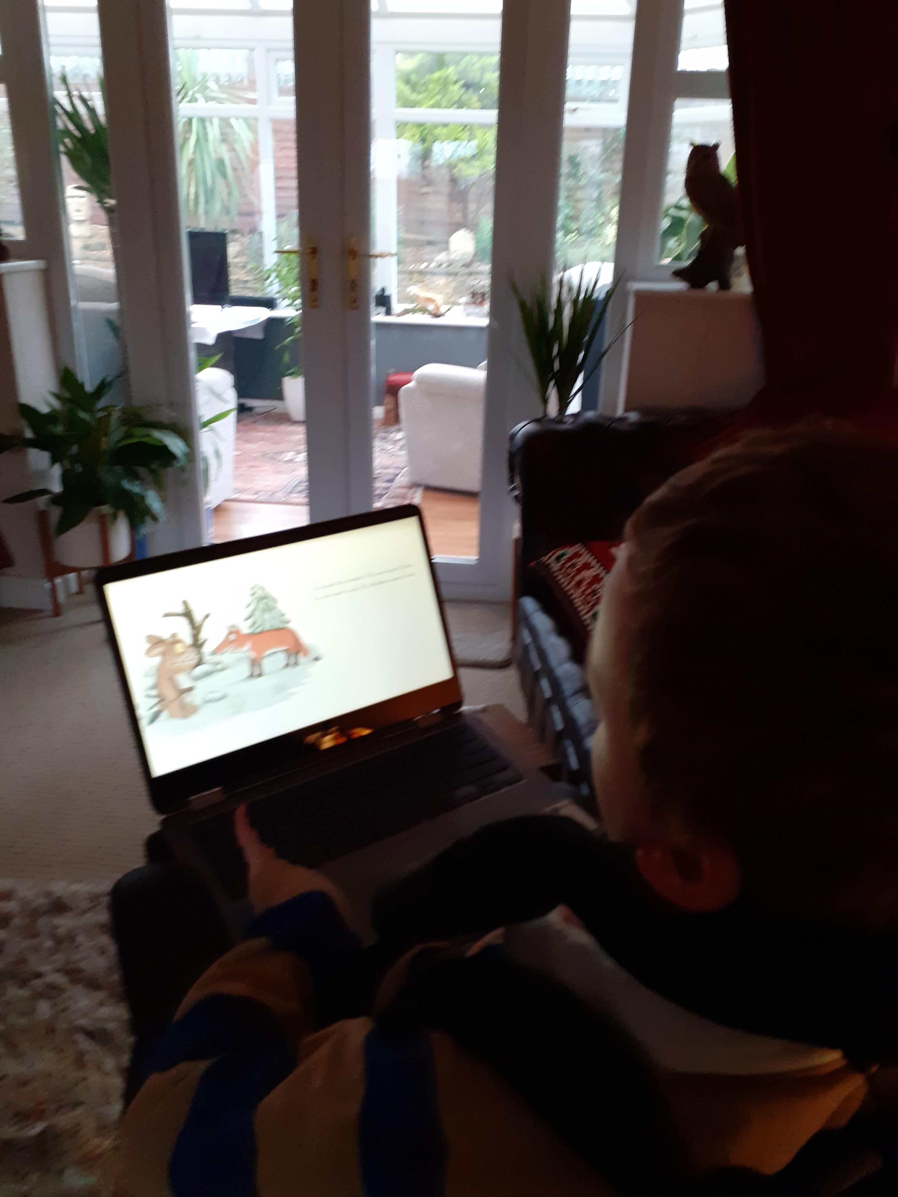 07.02.21 Junior has worked extremely hard at home. He has made some fantastic hand puppets and a feathery owl collage. You look really engaged watching the story on your laptop Junior! Well done!