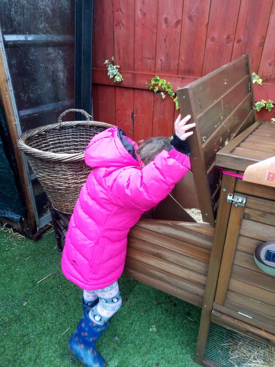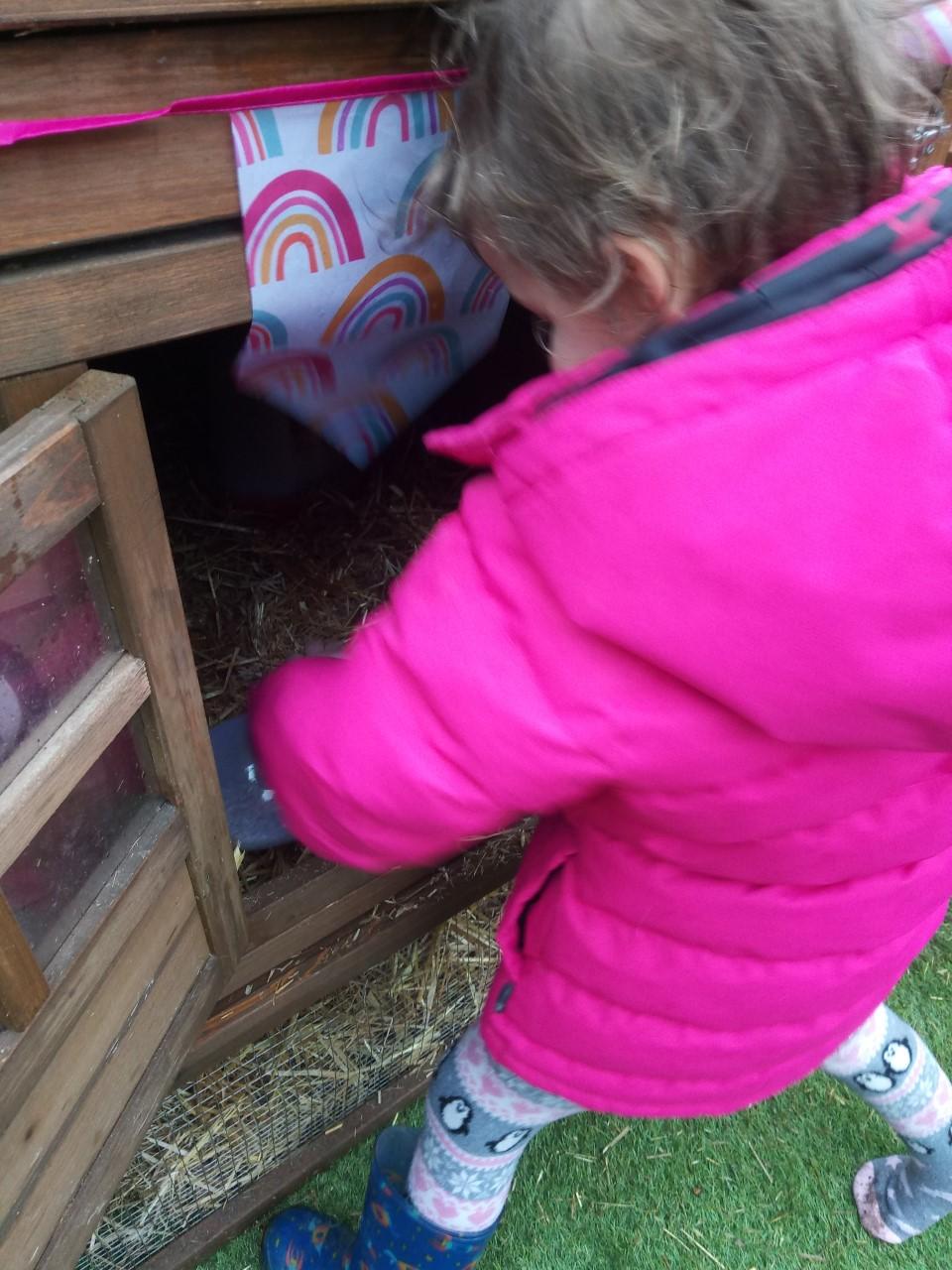05.02.21 Ayva absolutely loves her new chicken coop. She has two new chickens named: 'Ariel' and 'Snow White'. Ayva is amazing at looking after them and has spent hours already in the garden (in the rain haha) looking after them and playing with them. She checks for eggs all by herself and pops then in her basket. She feeds them all by herself and fills up the water. Well done Ayva!