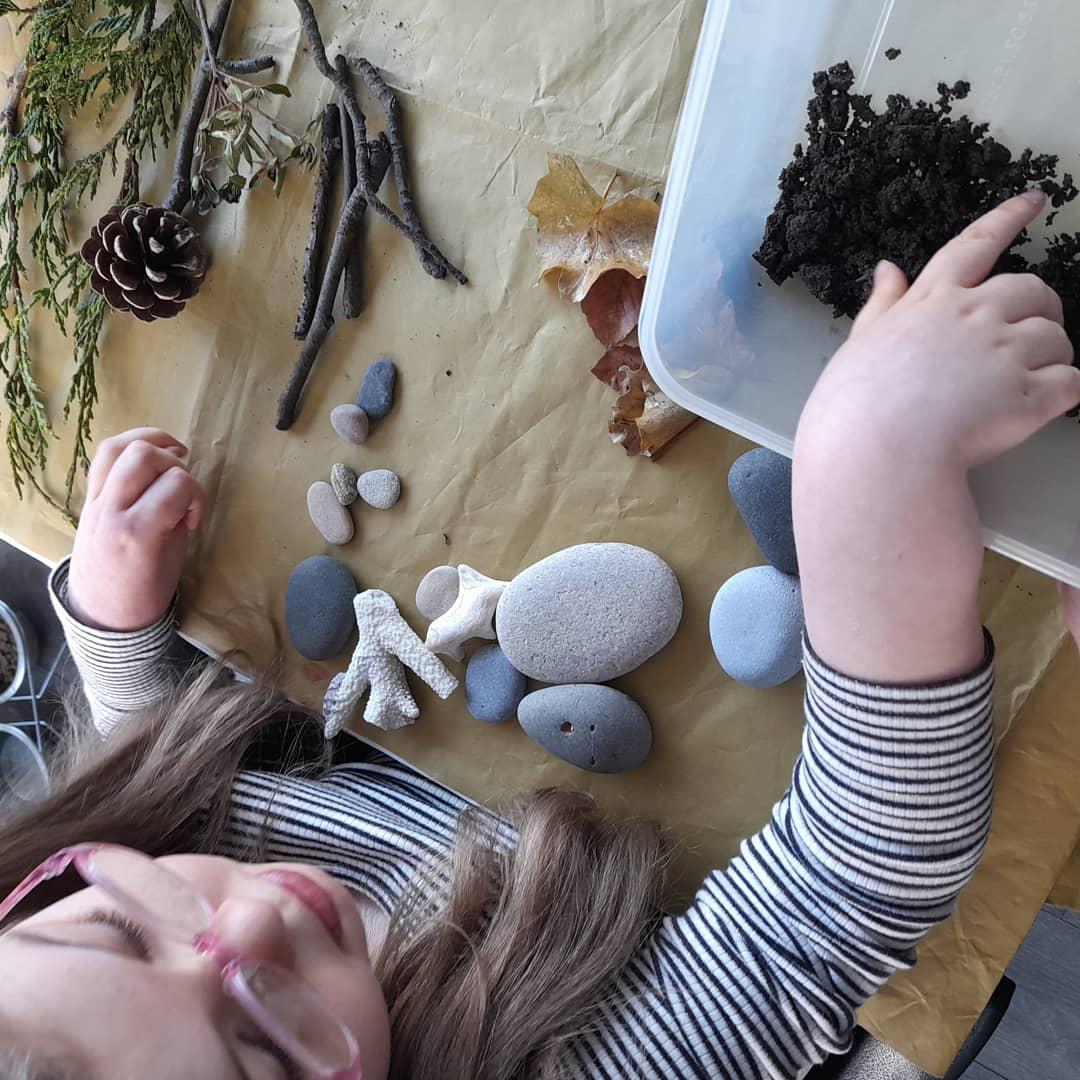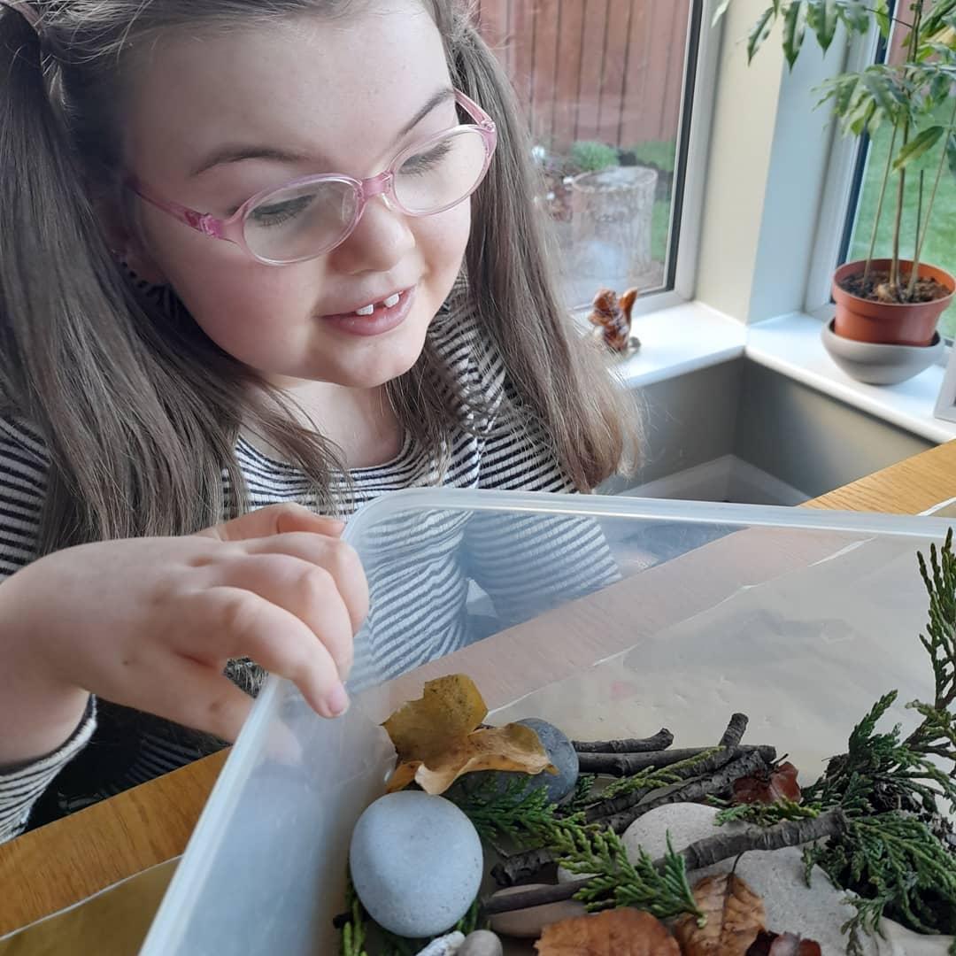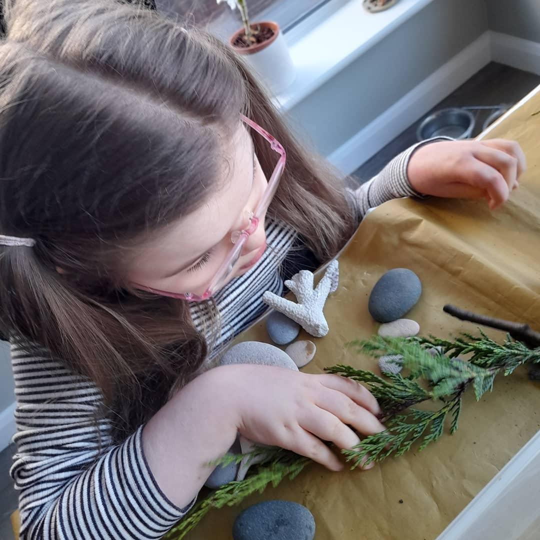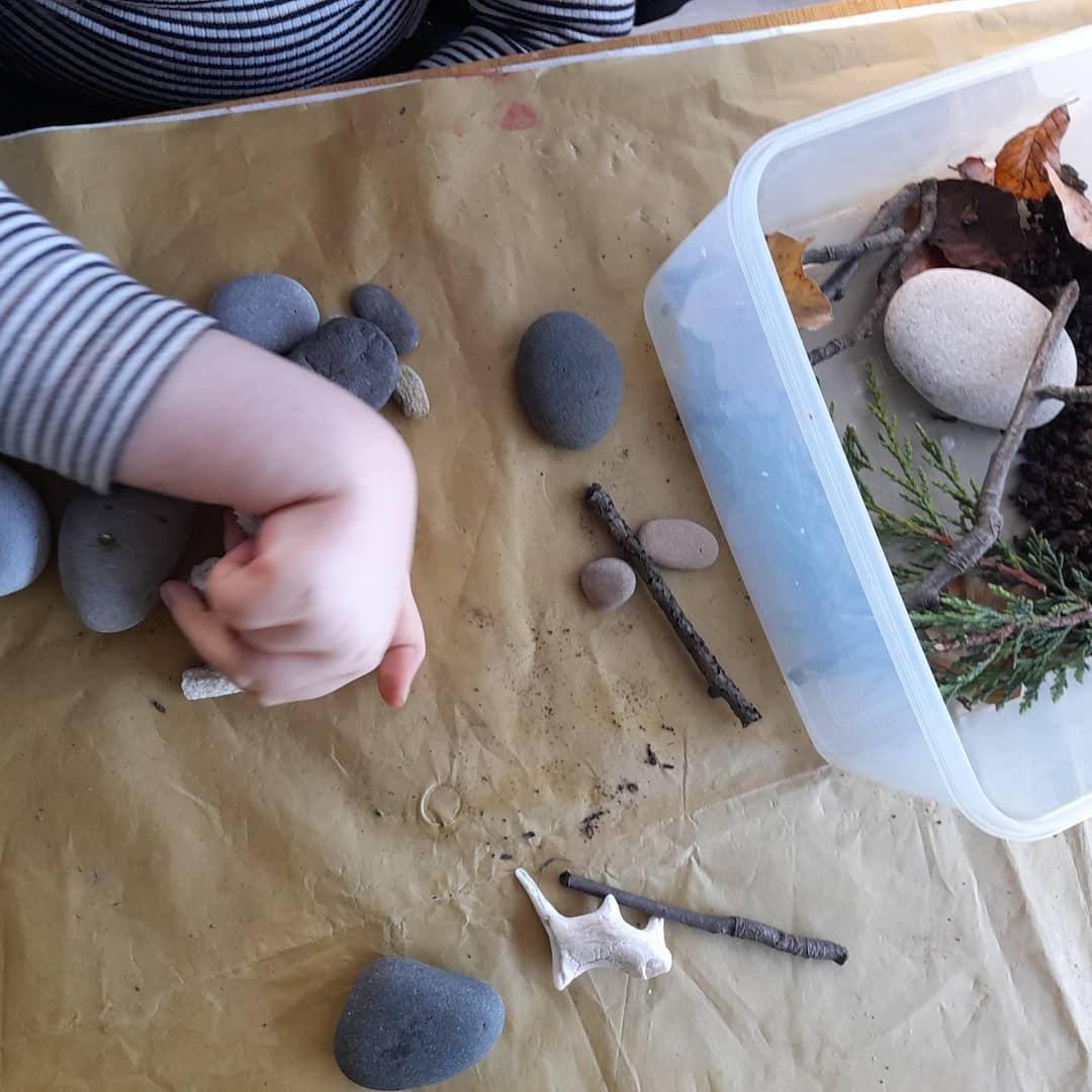 22.01.21 Nell has enjoyed making a nature sensory box! She has been happily, exploring the objects with her mam to see if they are soft, smooth, rough or bumpy. Nell especially liked the cone and the mud. With the spare pebbles she collect, she finger painted patterns on them using multi-coloured paints. Excellent home learning Nell!