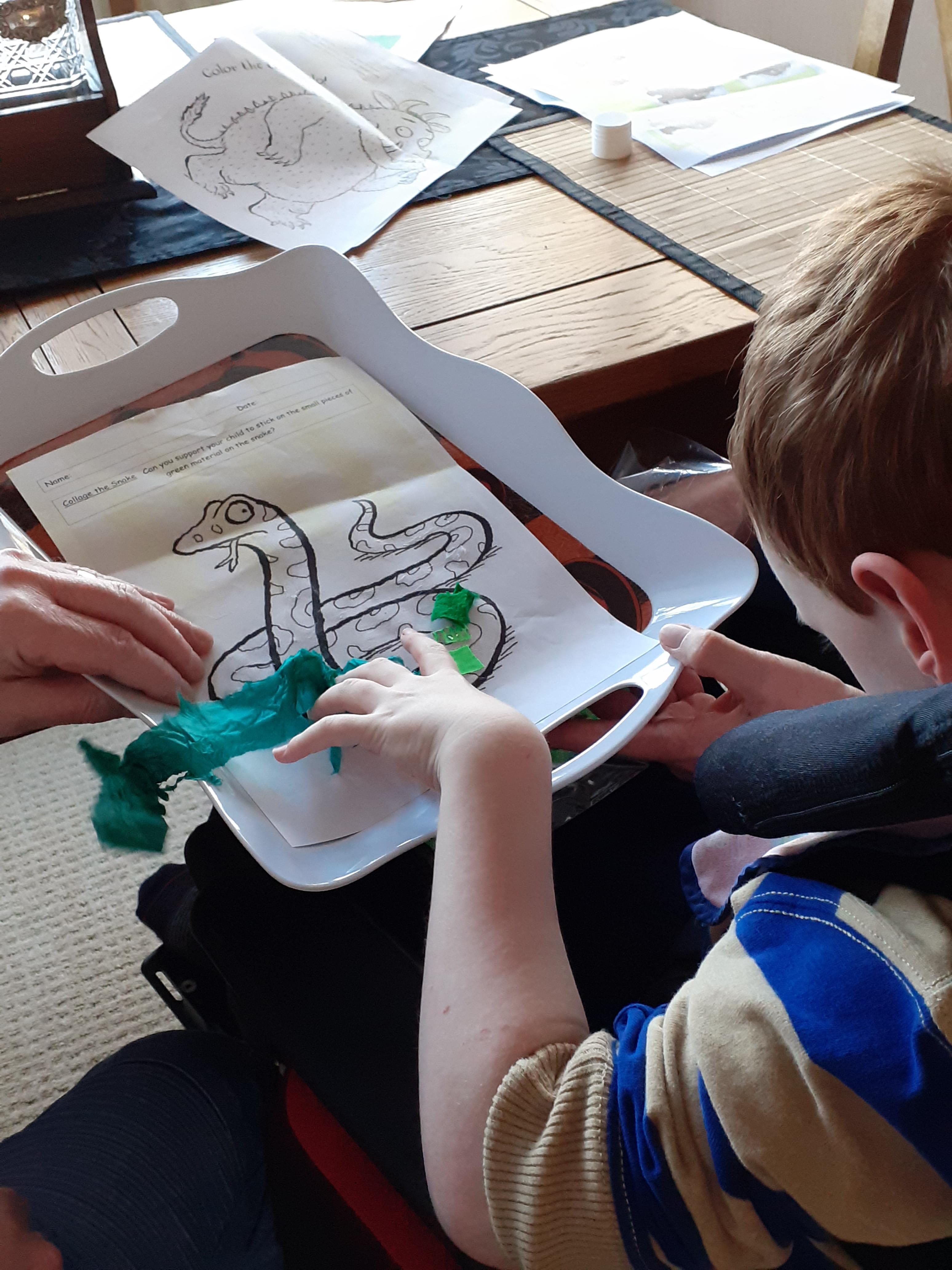 24.01.21 - Eppy and her mam work together making a brilliant collage of the snake!