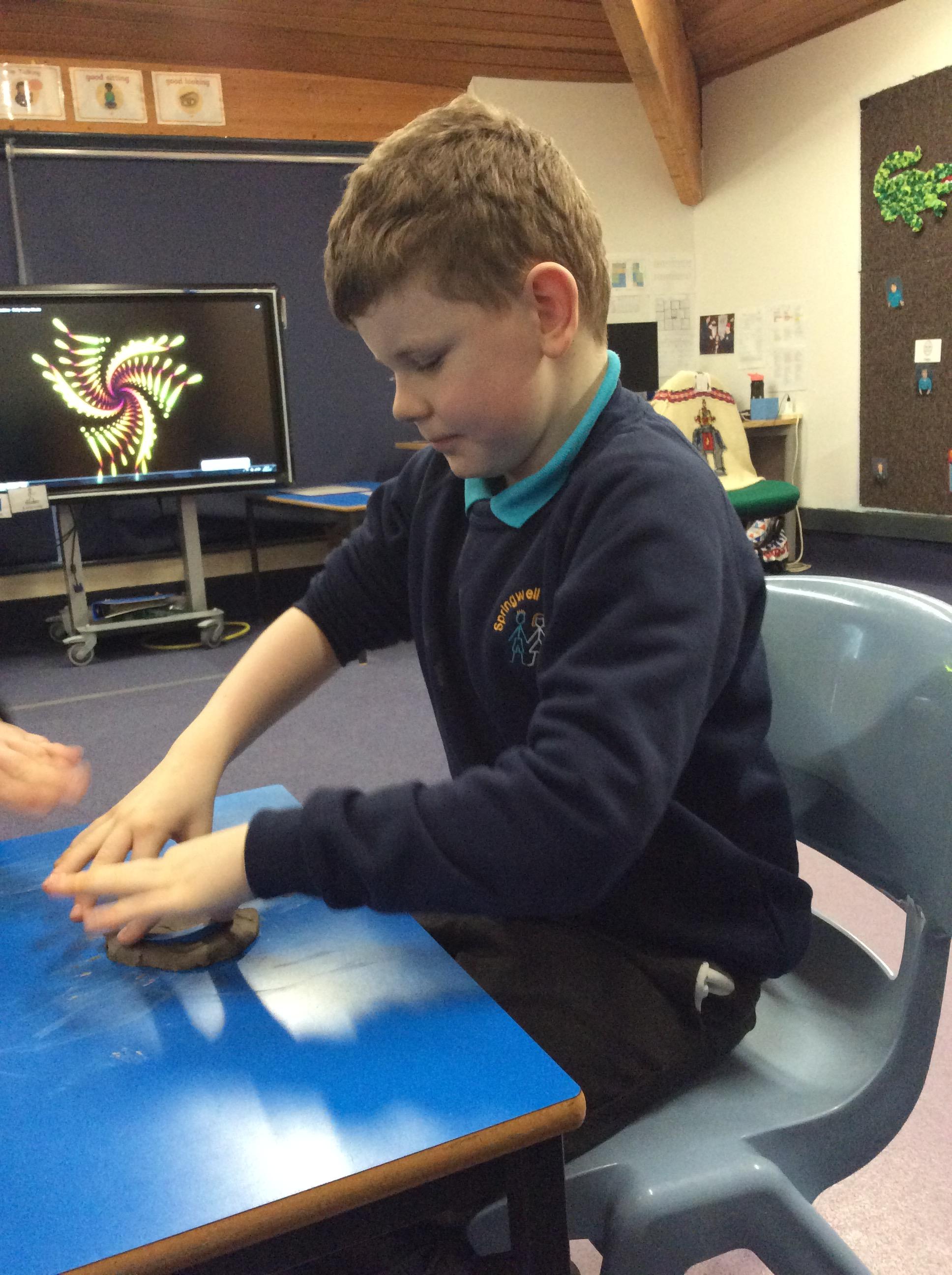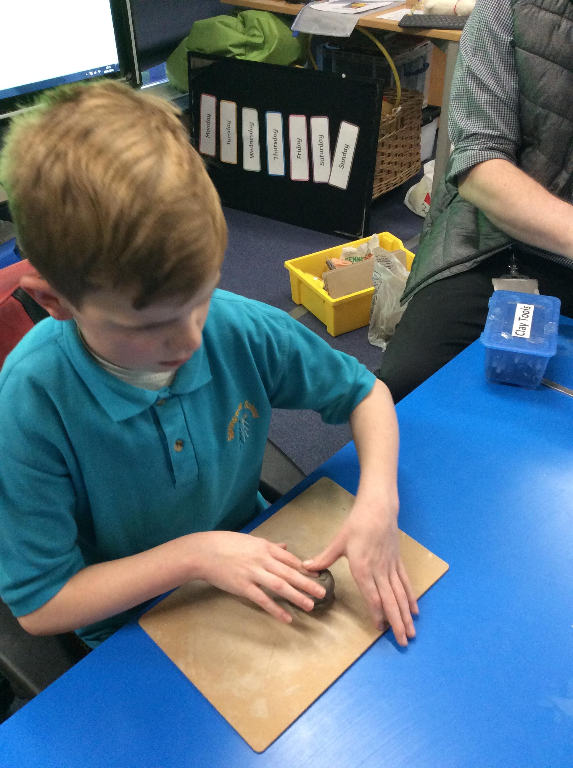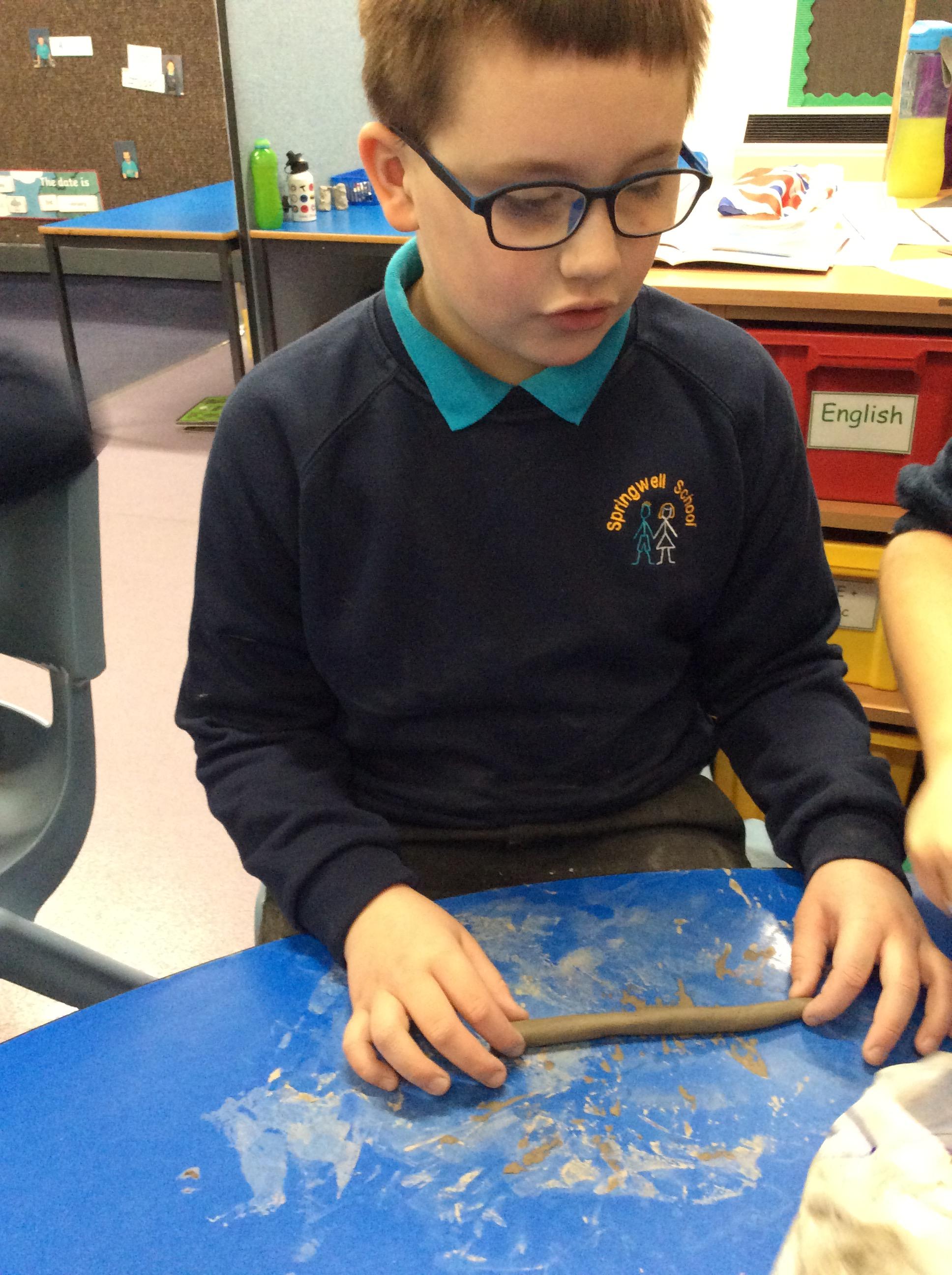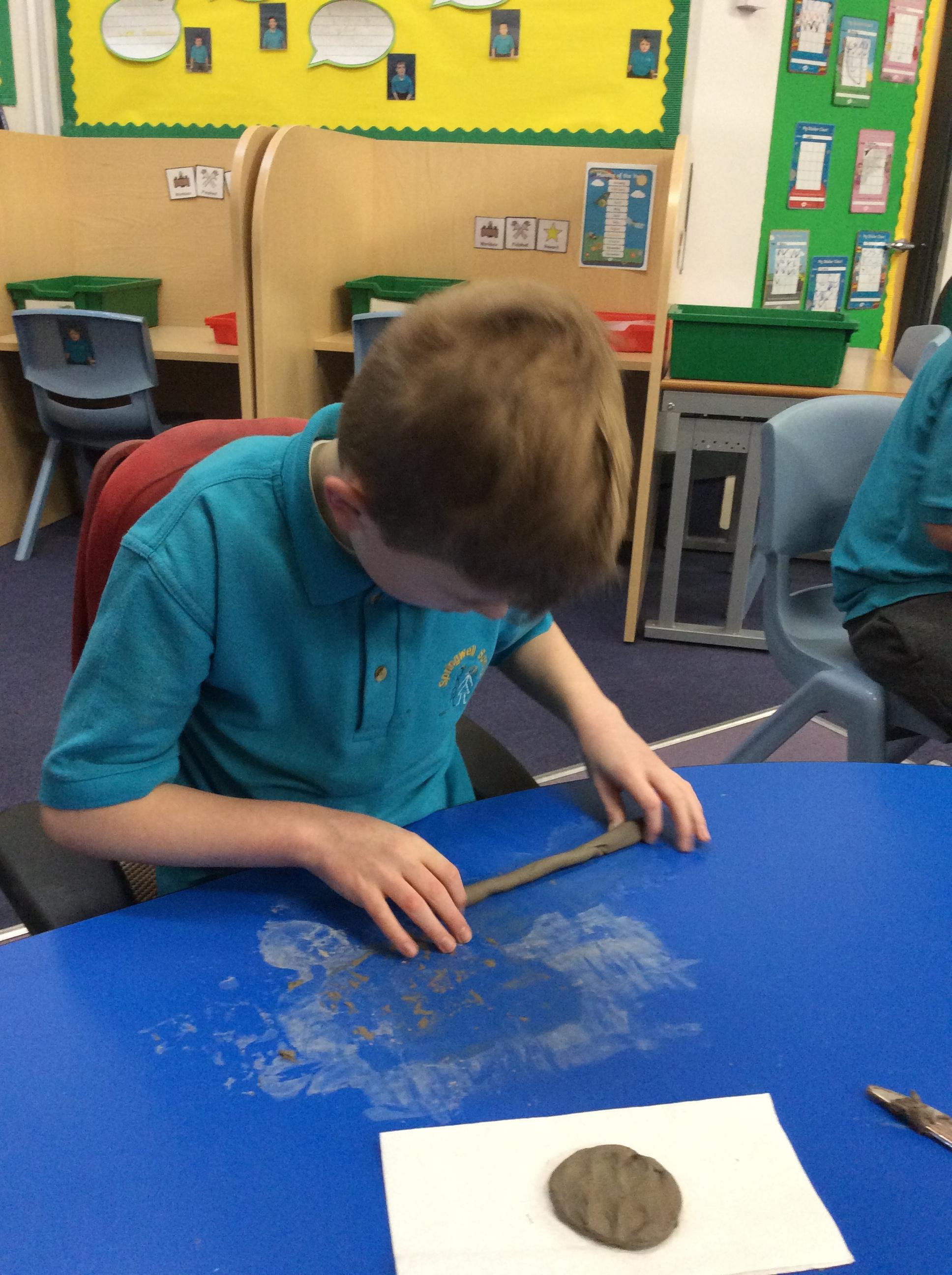 3/2/21 Art (Sculptures) - We have explored clay and used our hands to change the shape, we have learned how to roll sausages and make clay pots using the sausages.