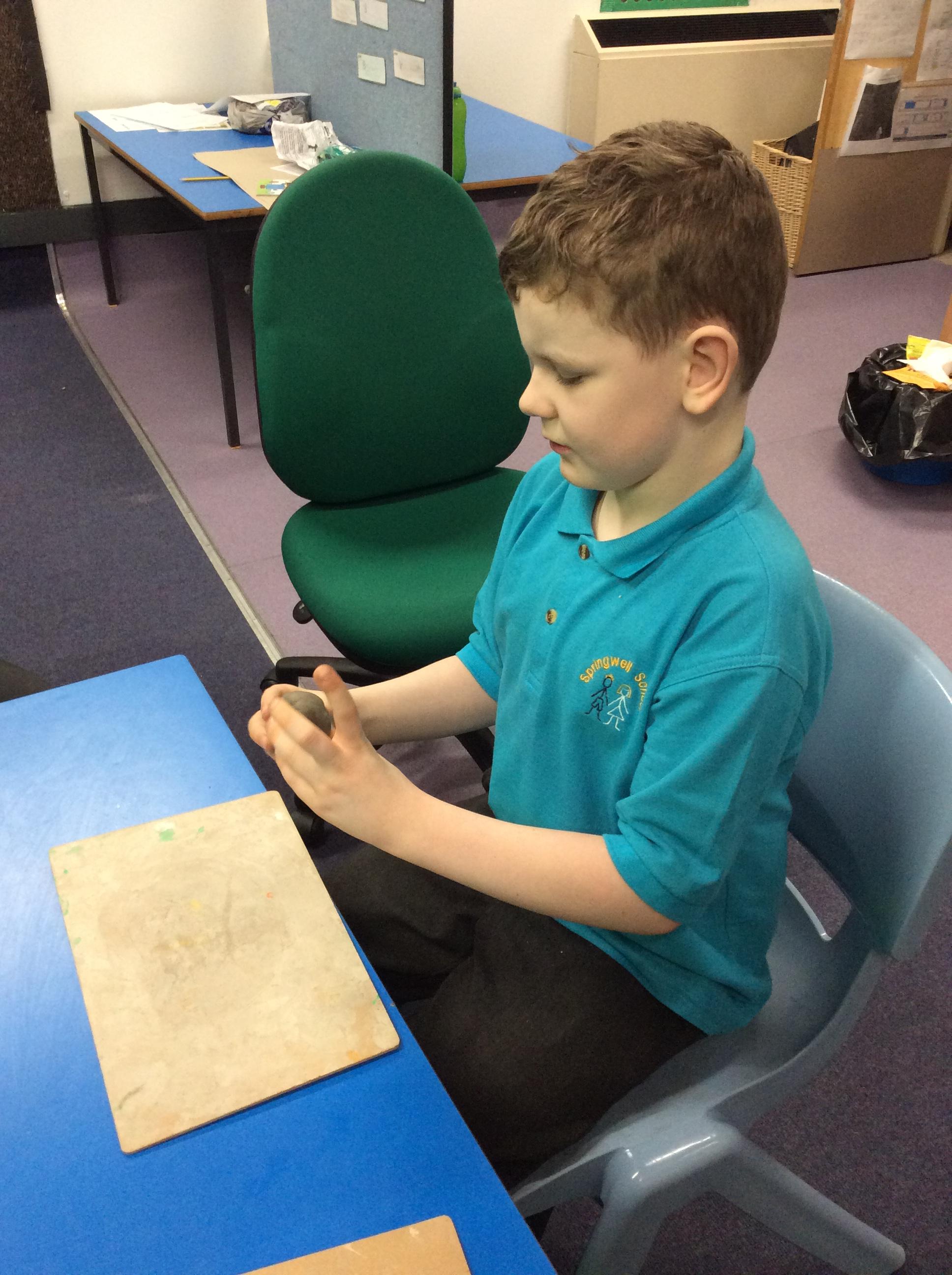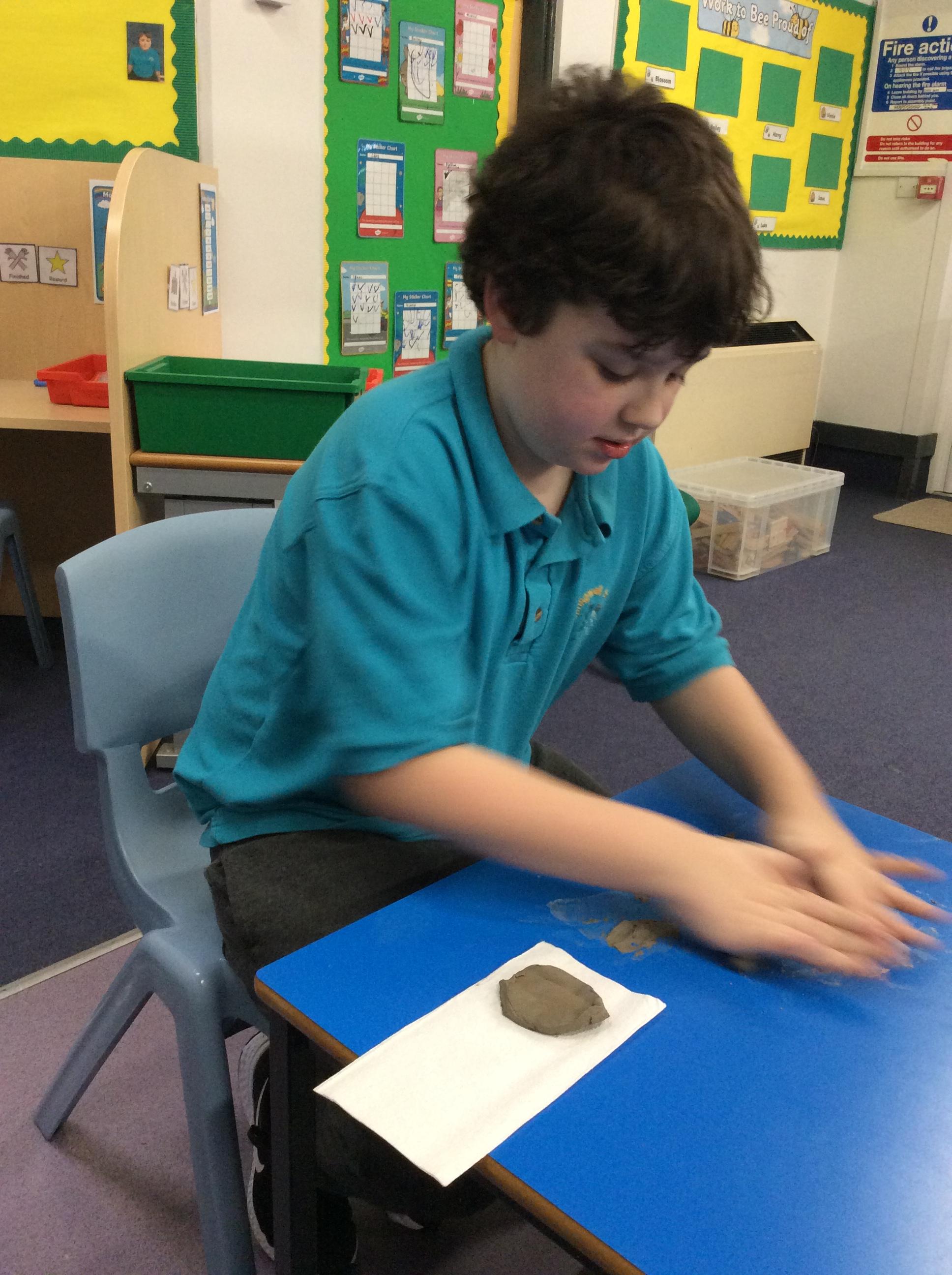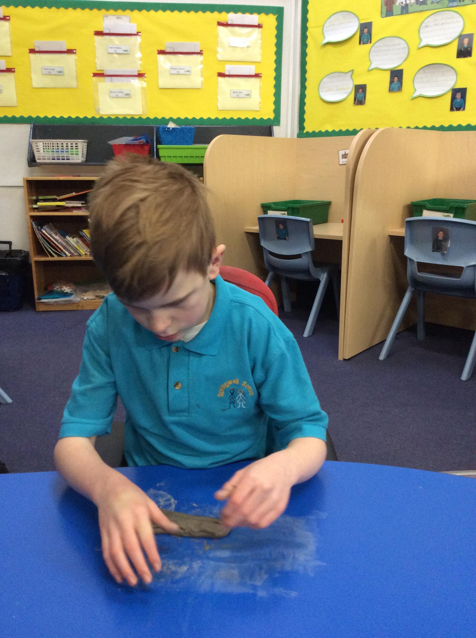 3/2/21 Art (Sculptures) - We have explored clay and used our hands to change the shape, we have learned how to roll sausages and make clay pots using the sausages.