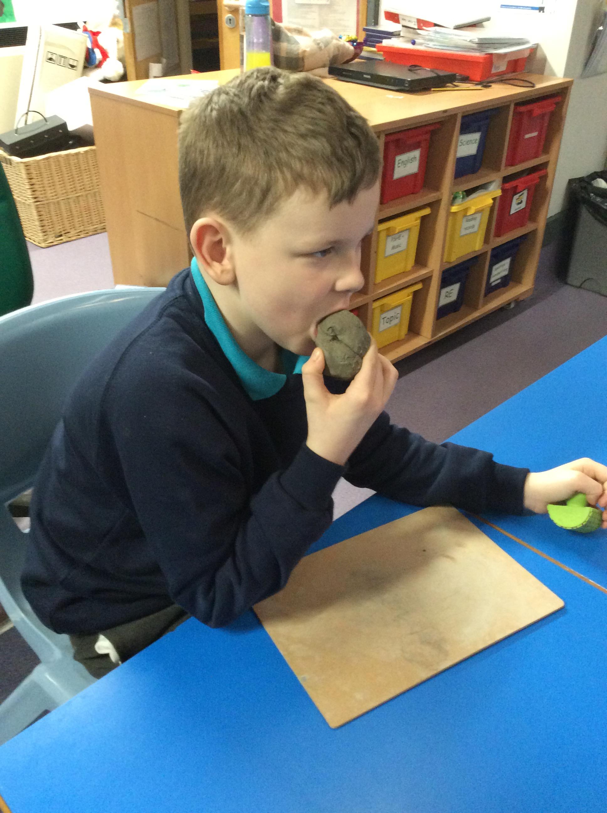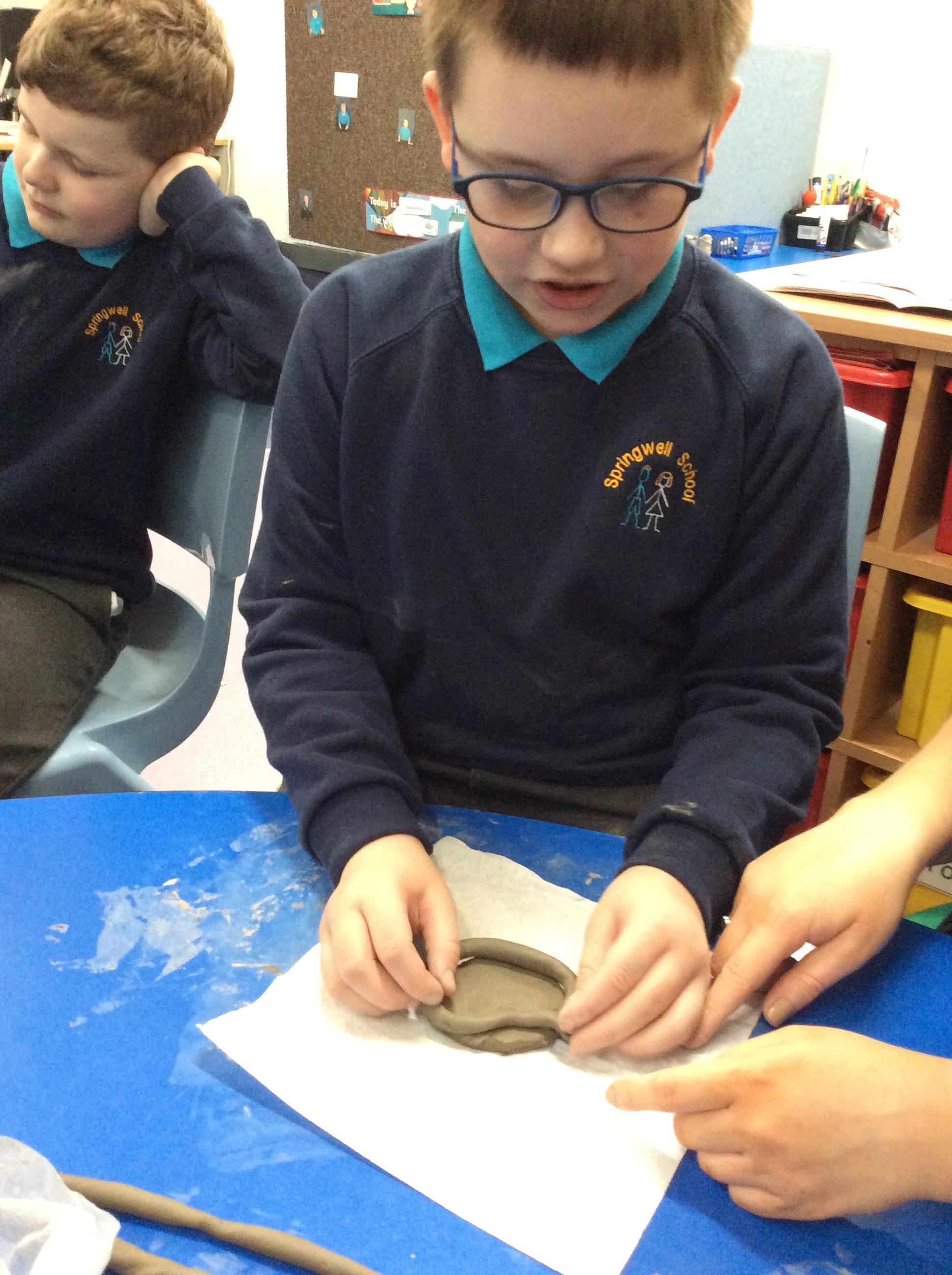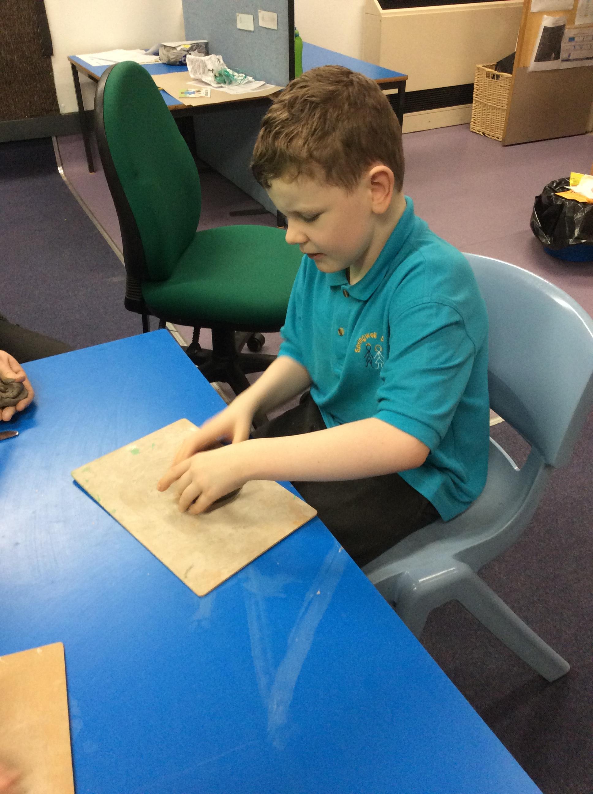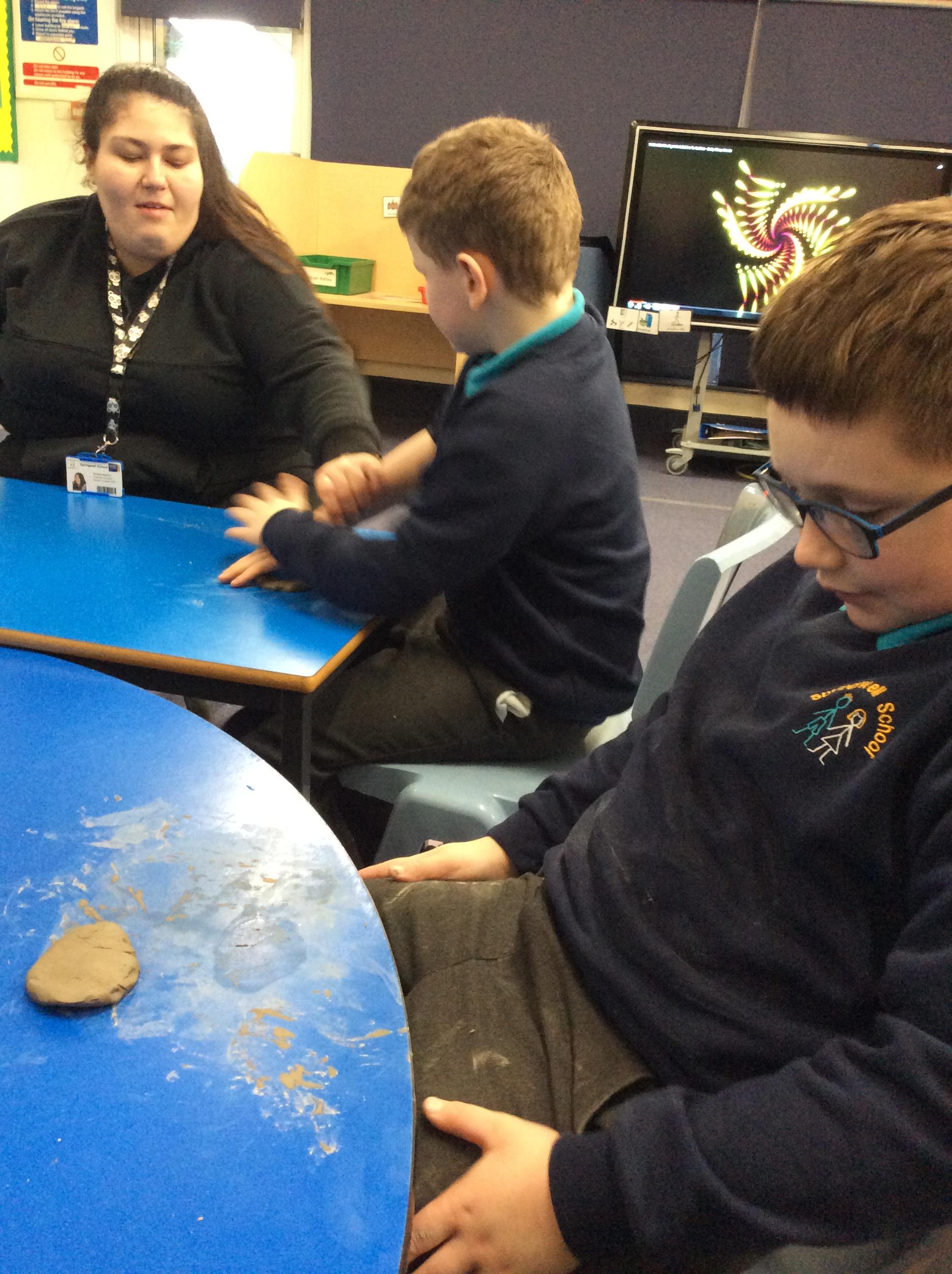 3/2/21 Art (Sculptures) - We have explored clay and used our hands to change the shape, we have learned how to roll sausages and make clay pots using the sausages.