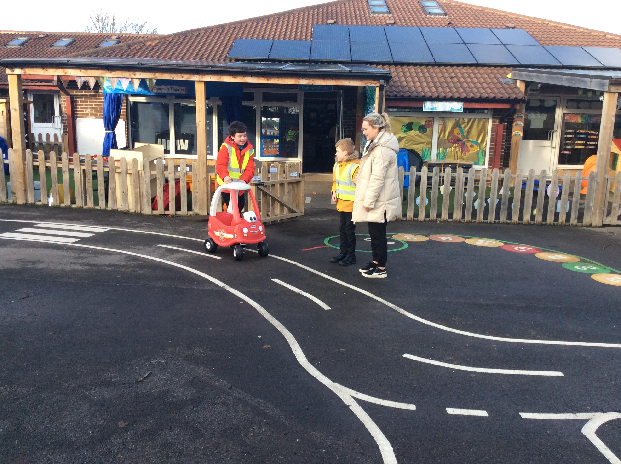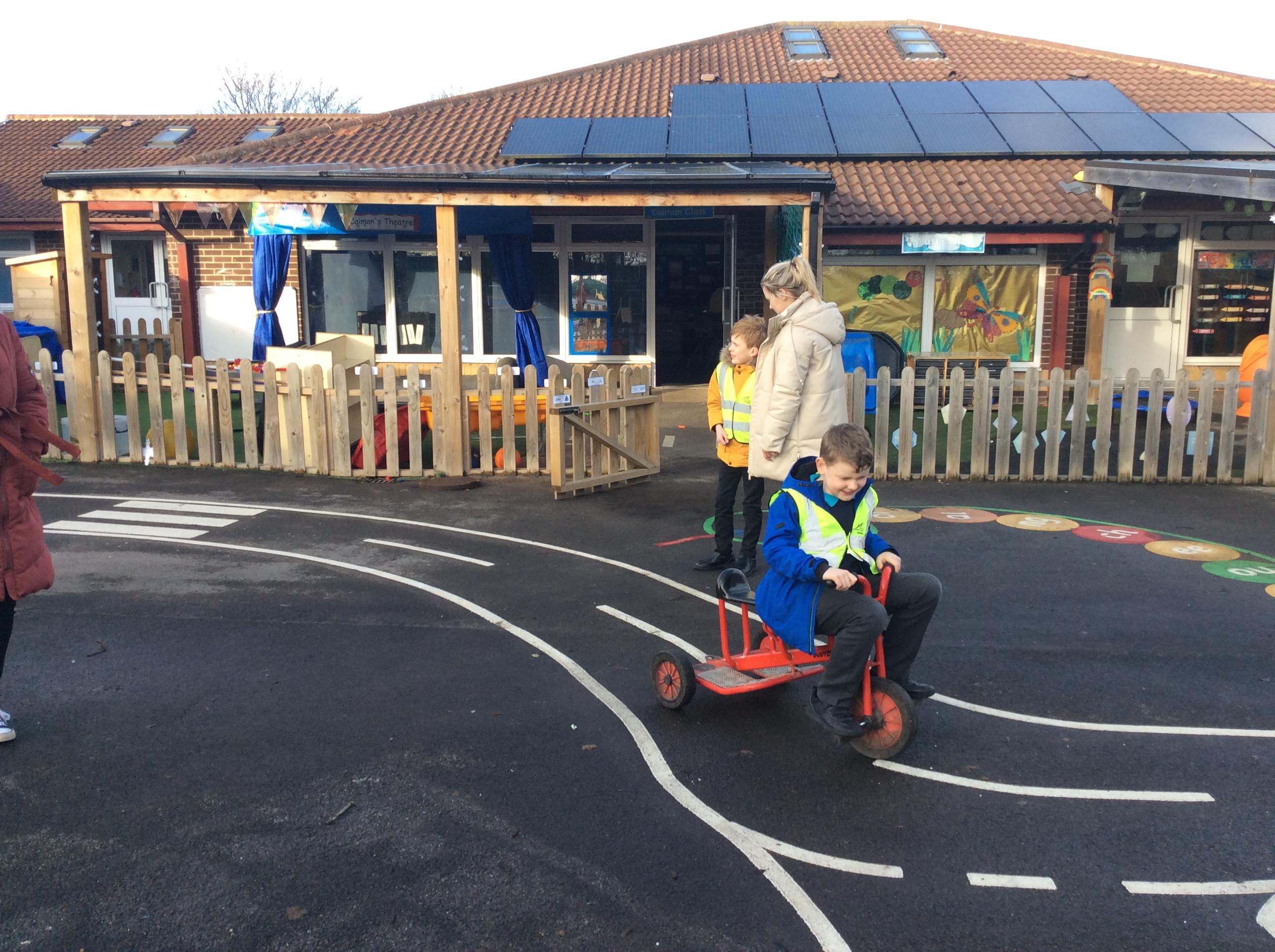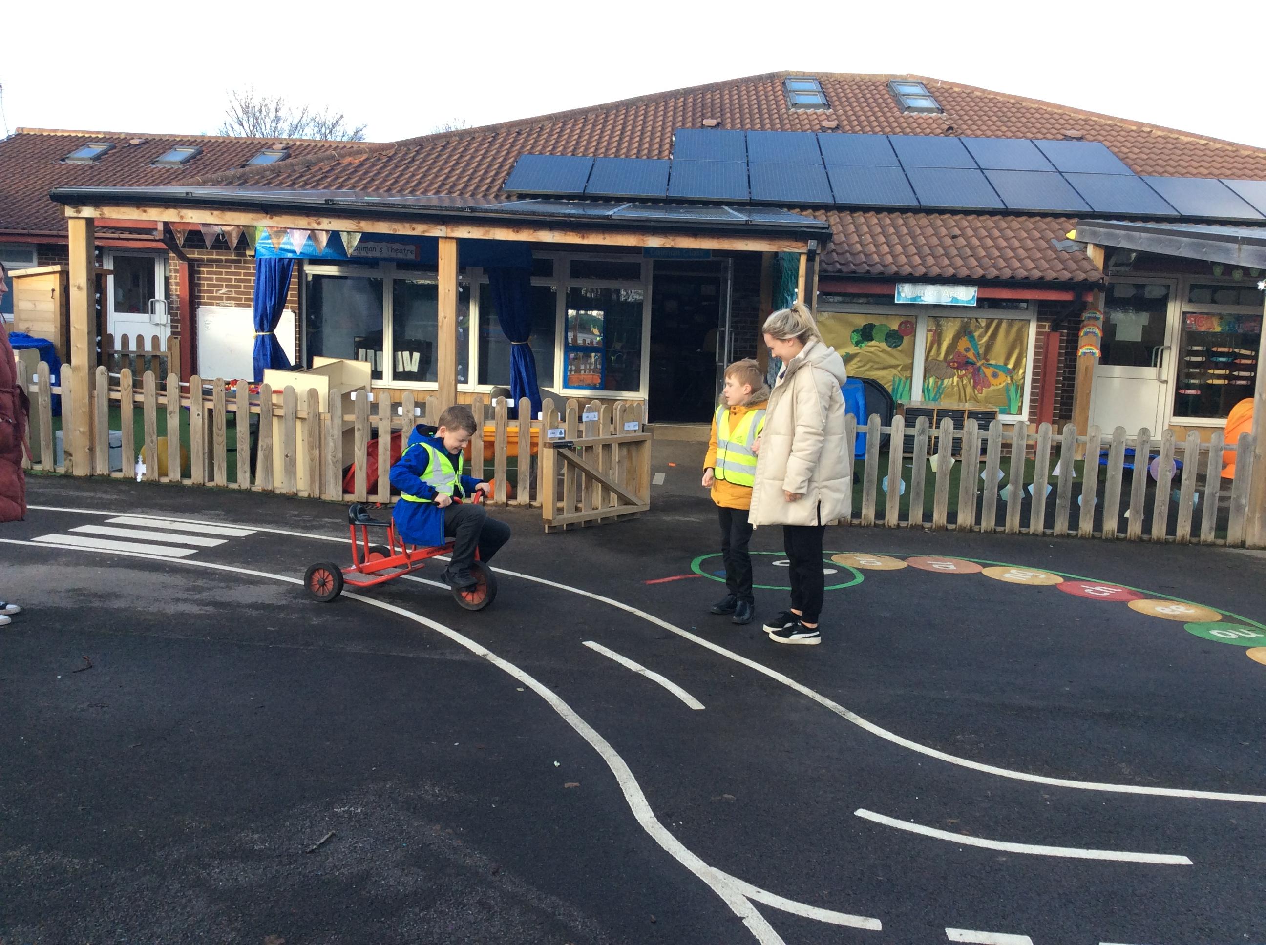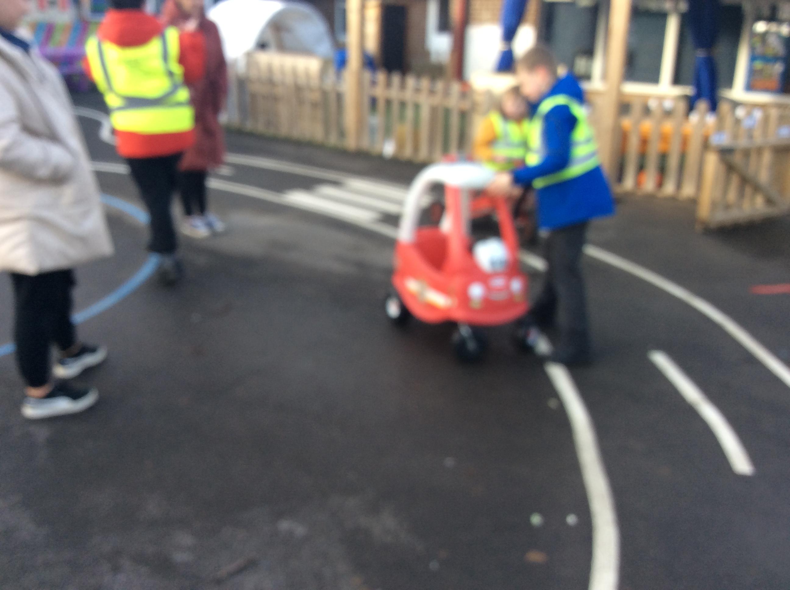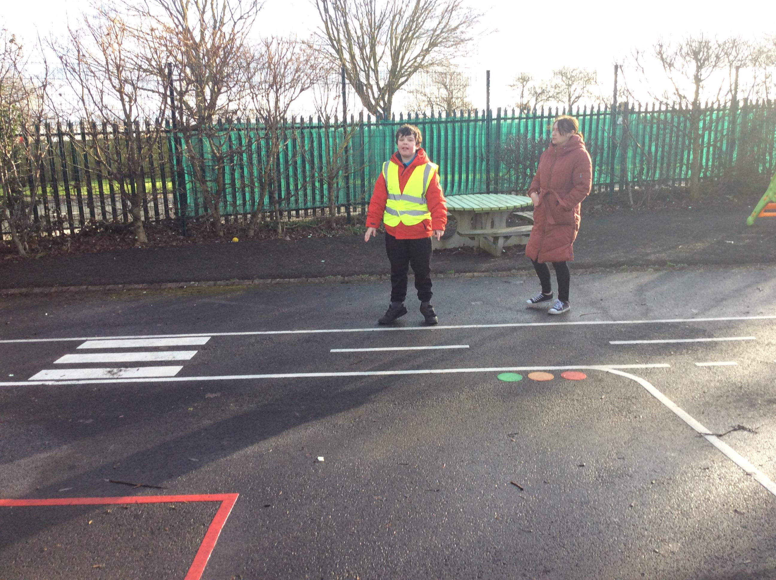 21 1 21 - Road Safety (PSHE): We enjoyed exploring and role-playing road safety rules on the road track in the outside area.