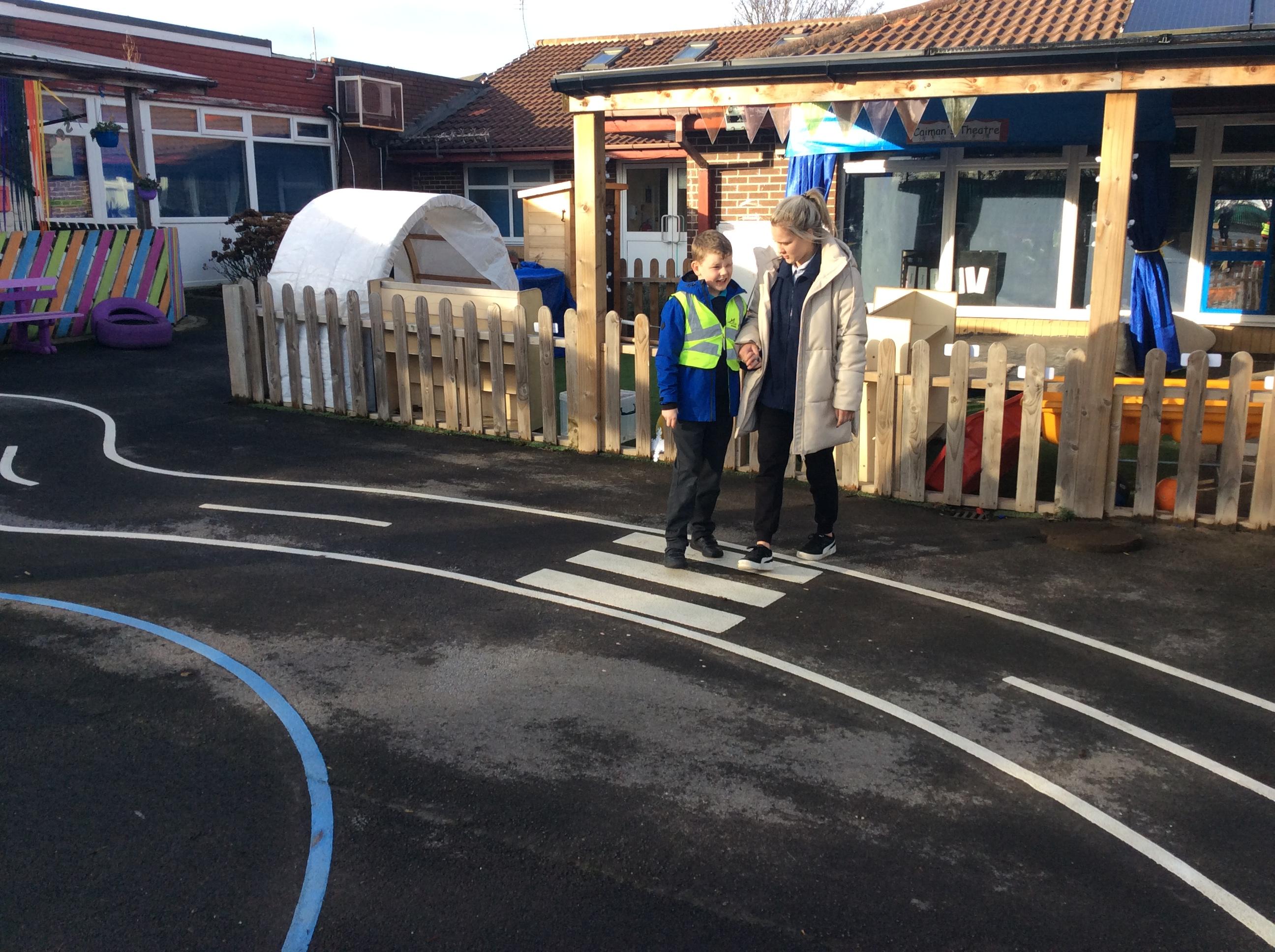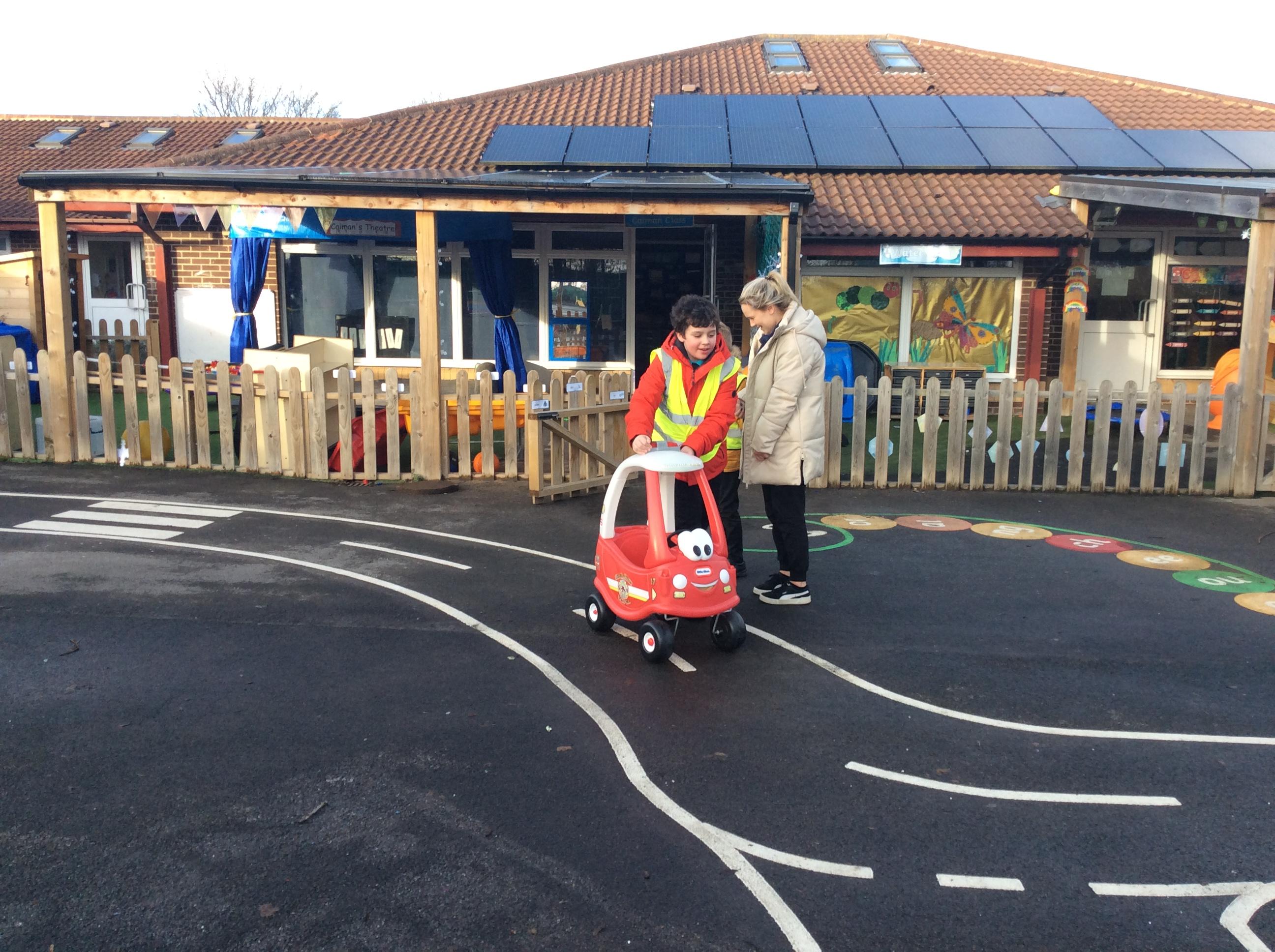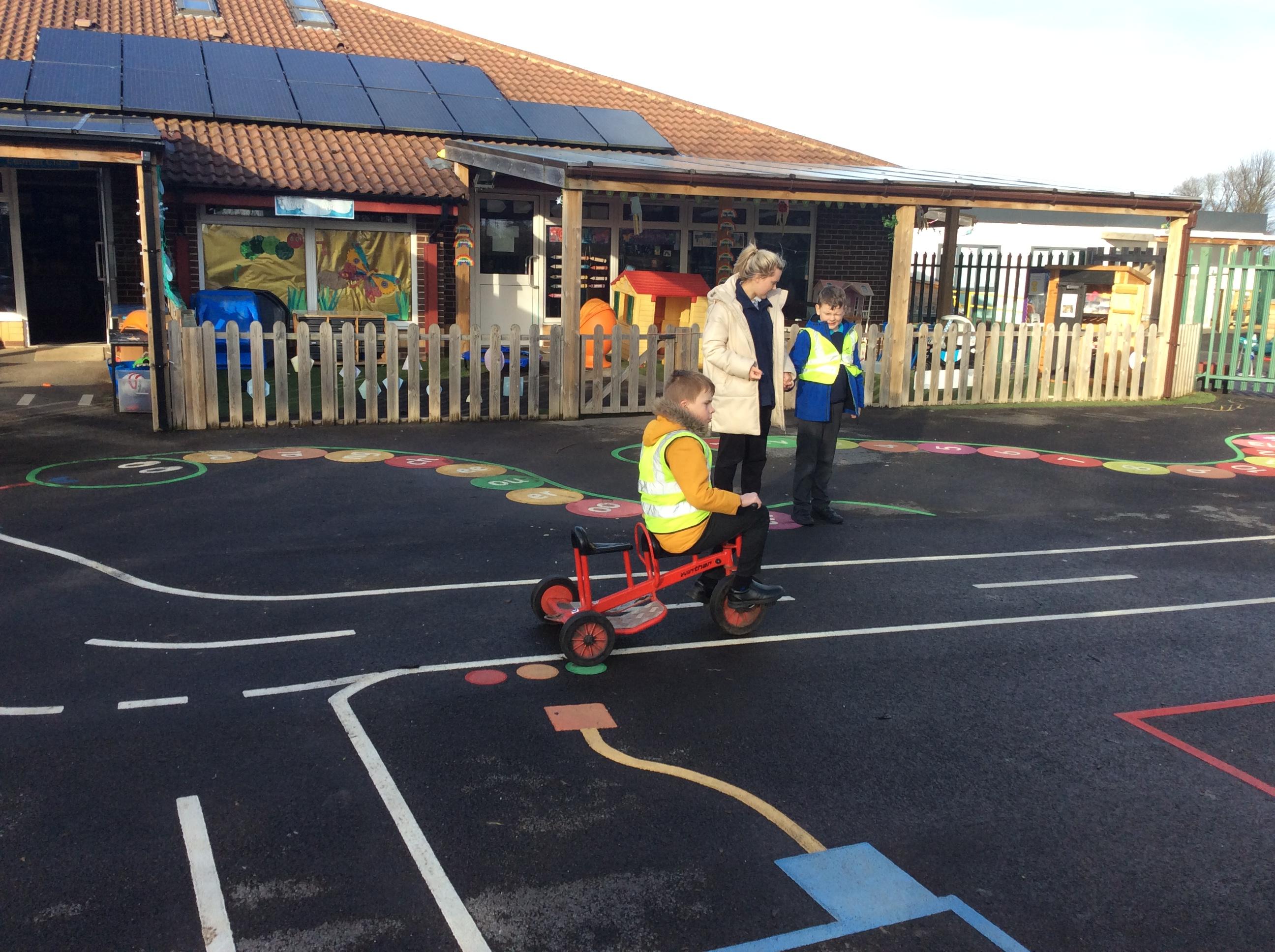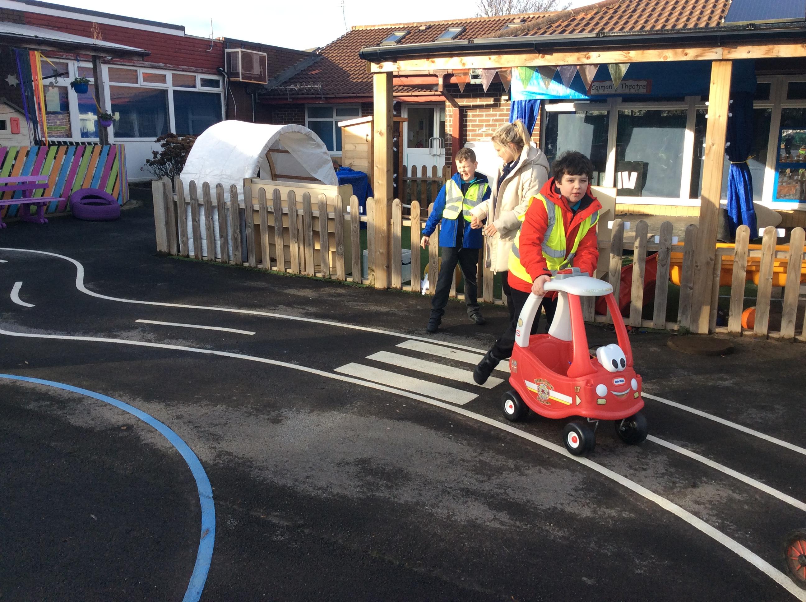 21 1 21 - Road Safety (PSHE): We enjoyed exploring and role-playing road safety rules on the road track in the outside area.