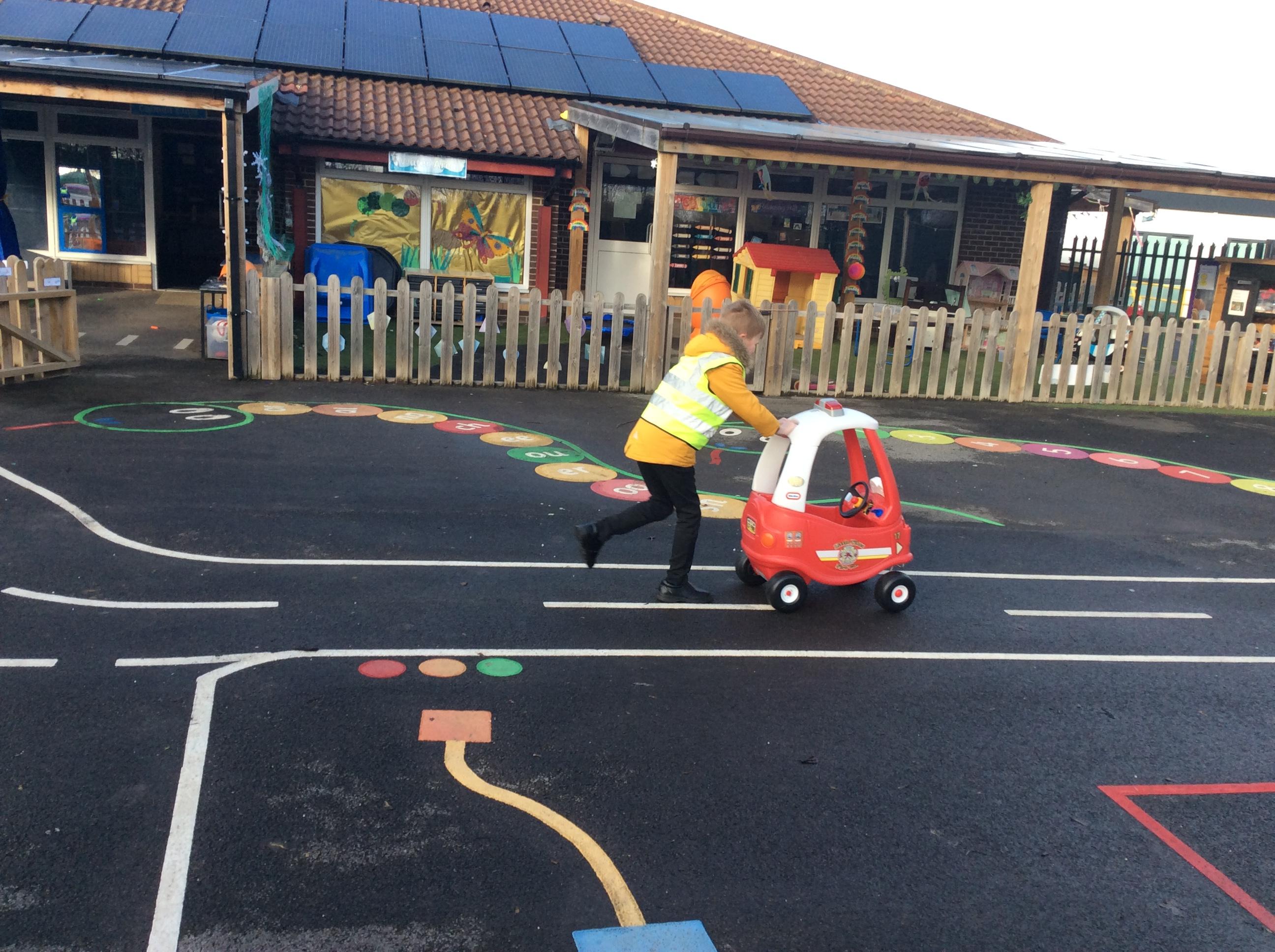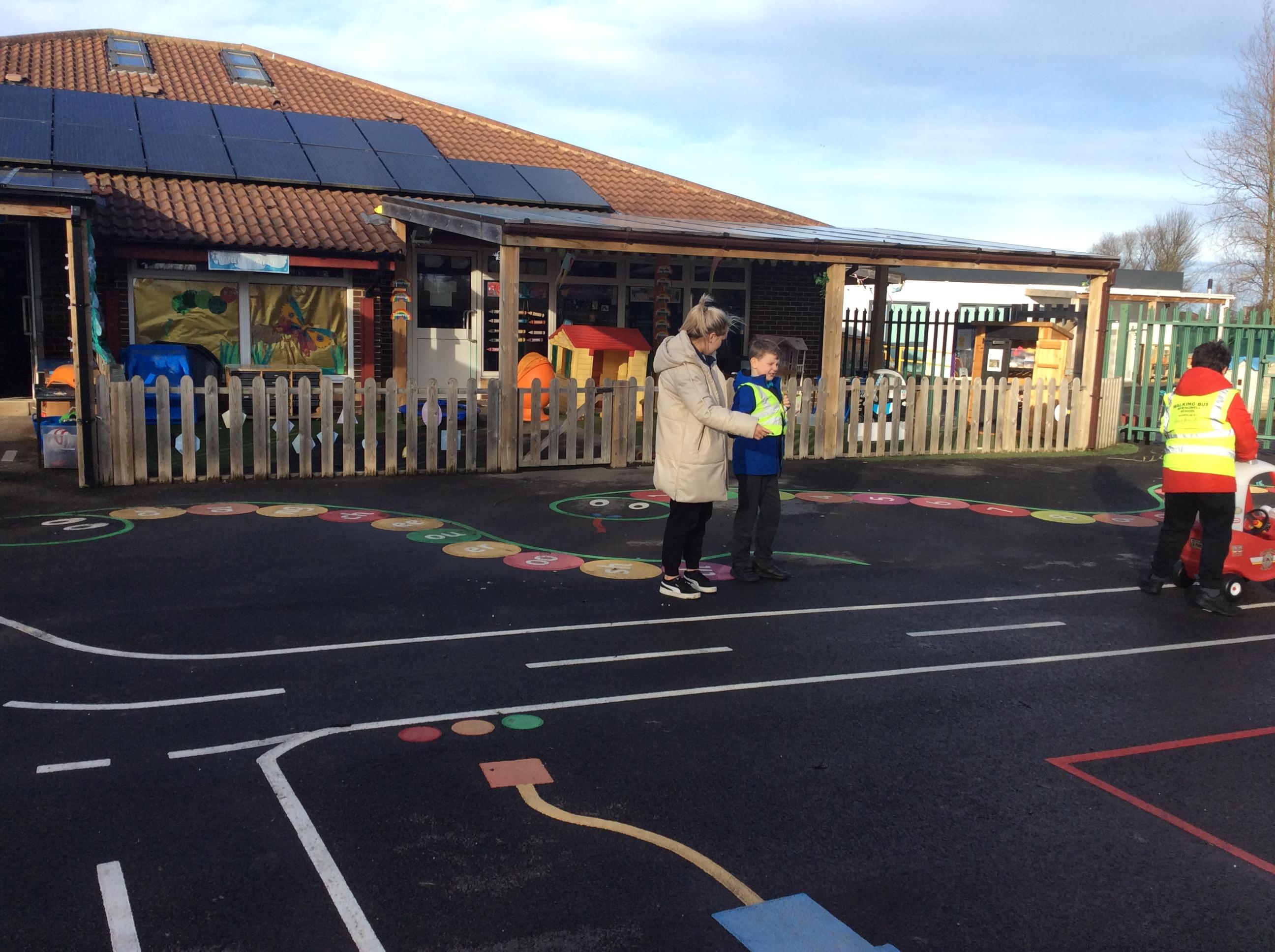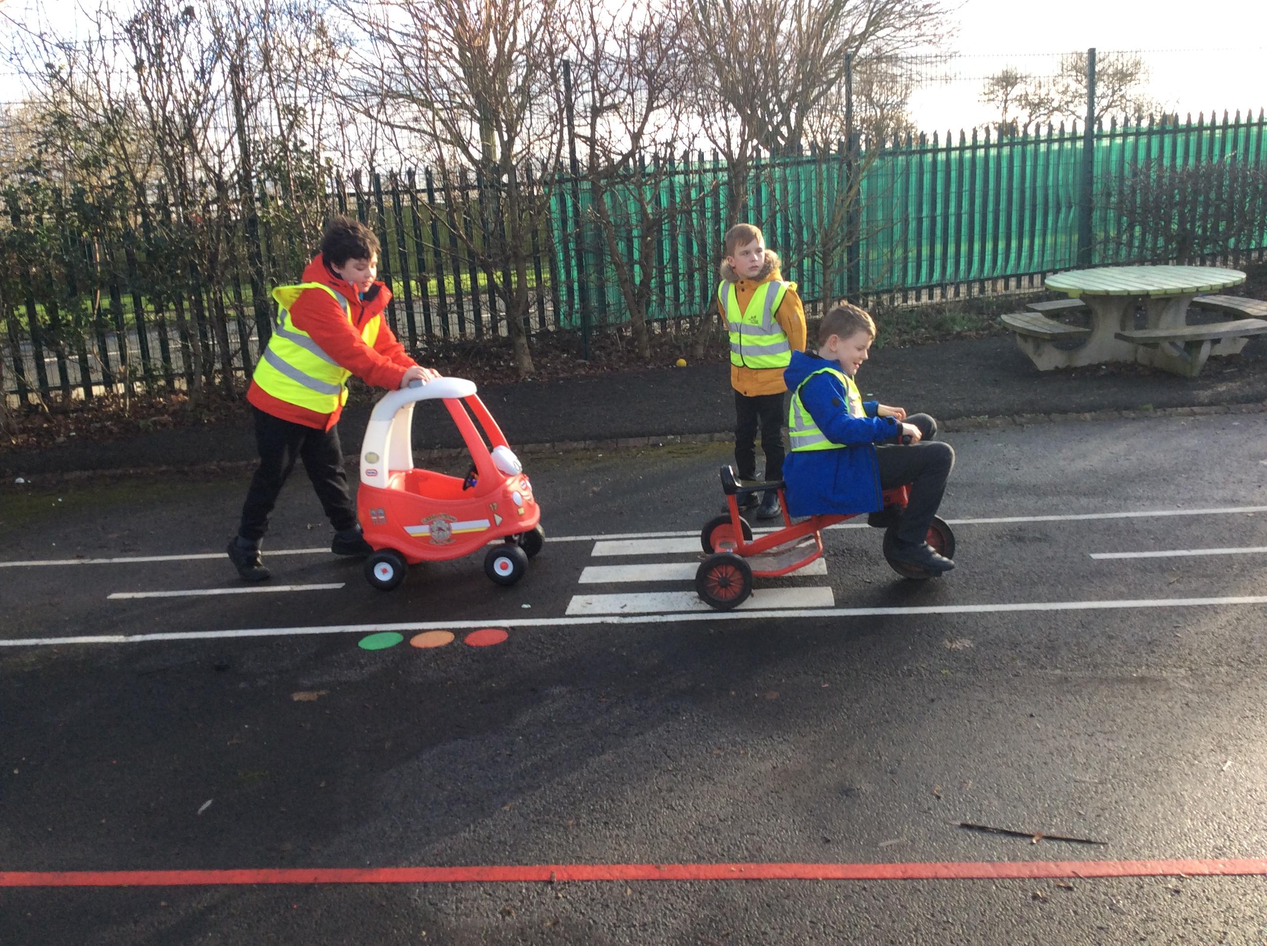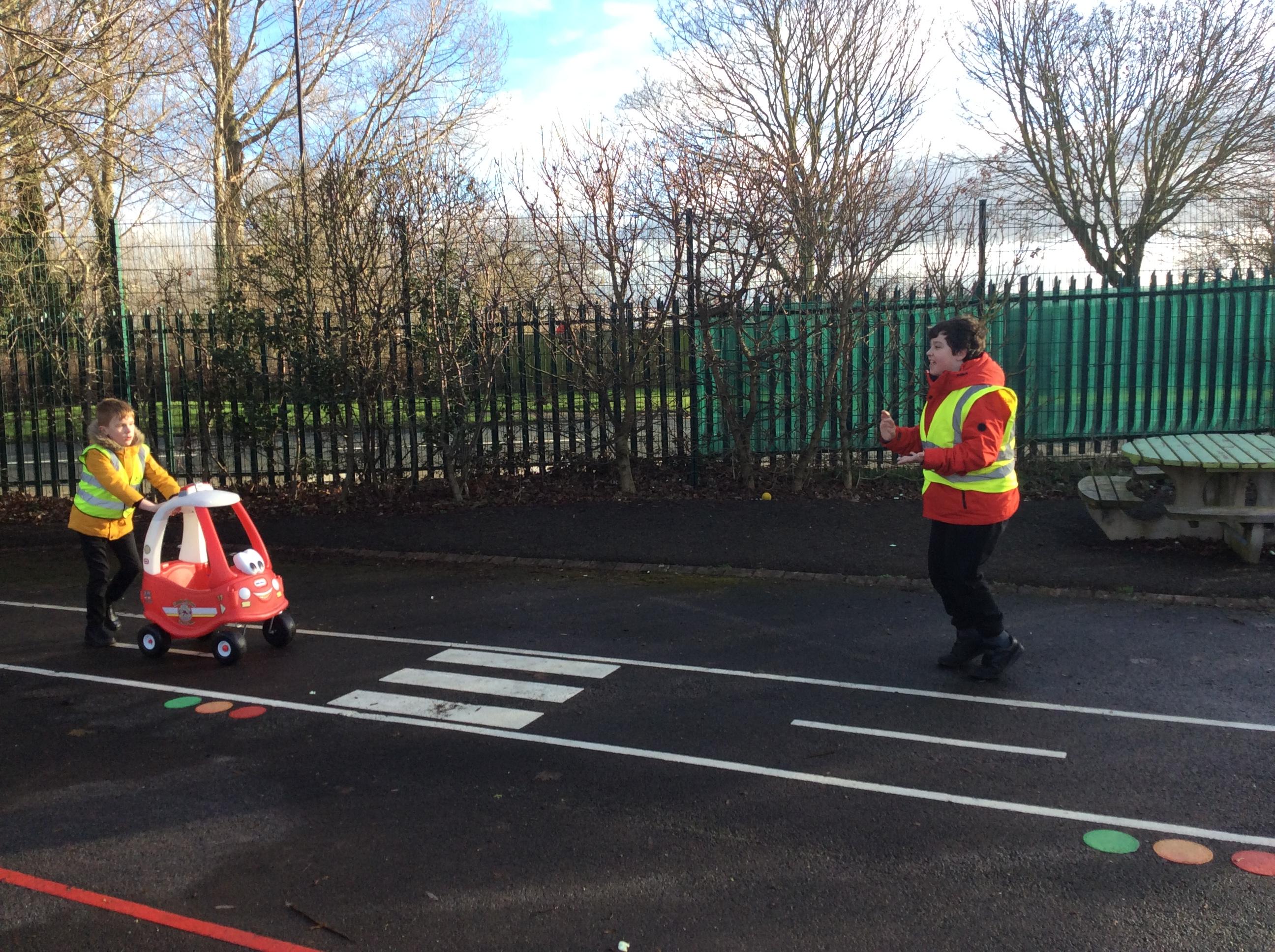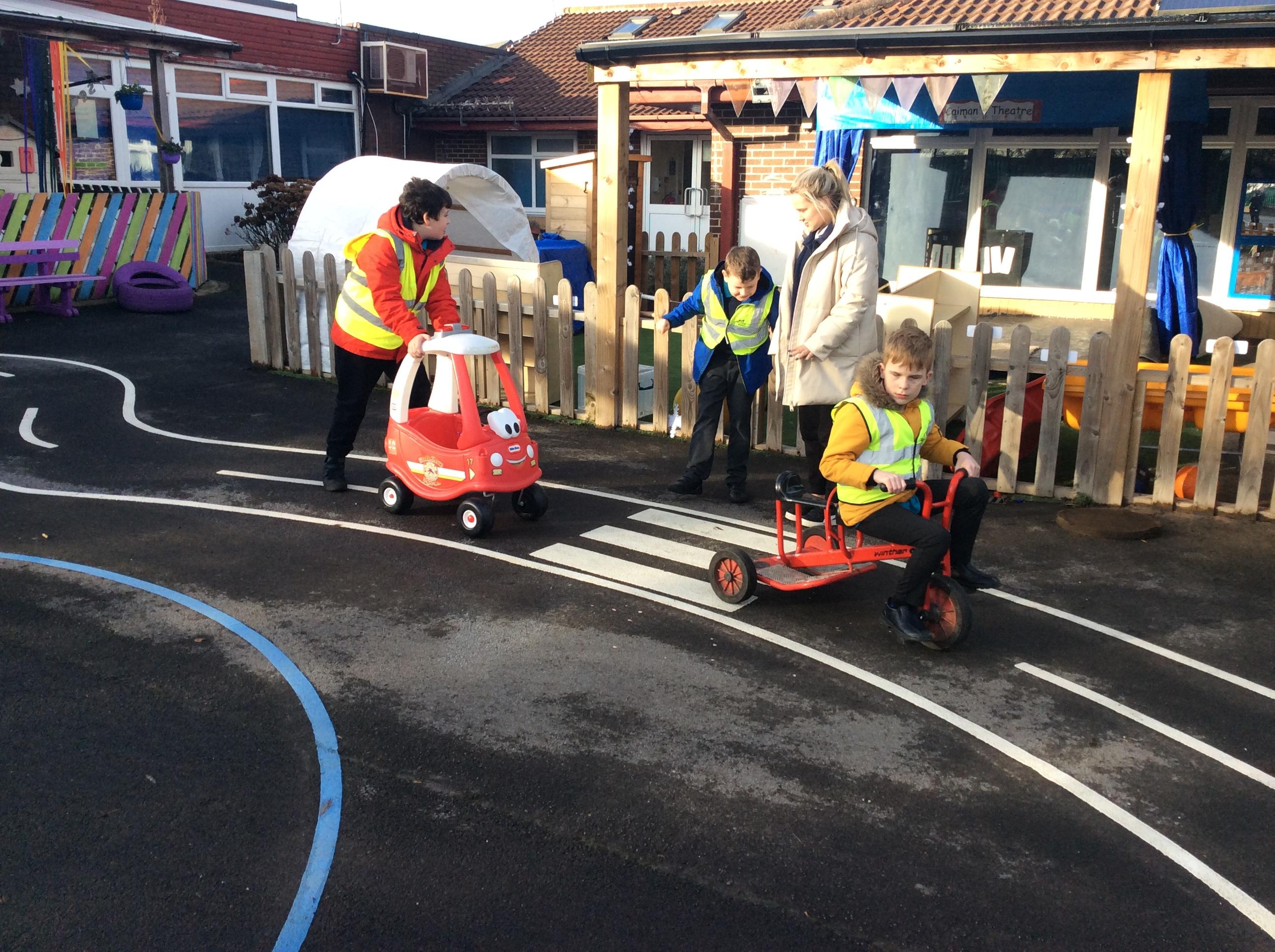 21 1 21 - Road Safety (PSHE): We enjoyed exploring and role-playing road safety rules on the road track in the outside area.