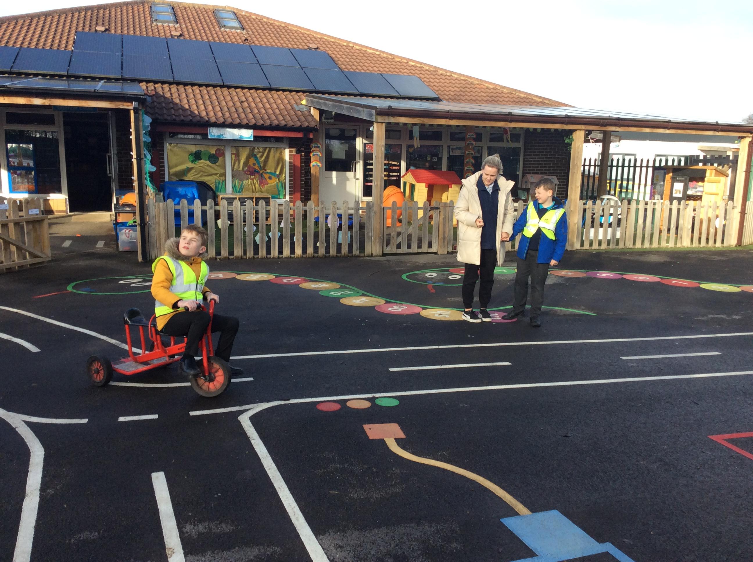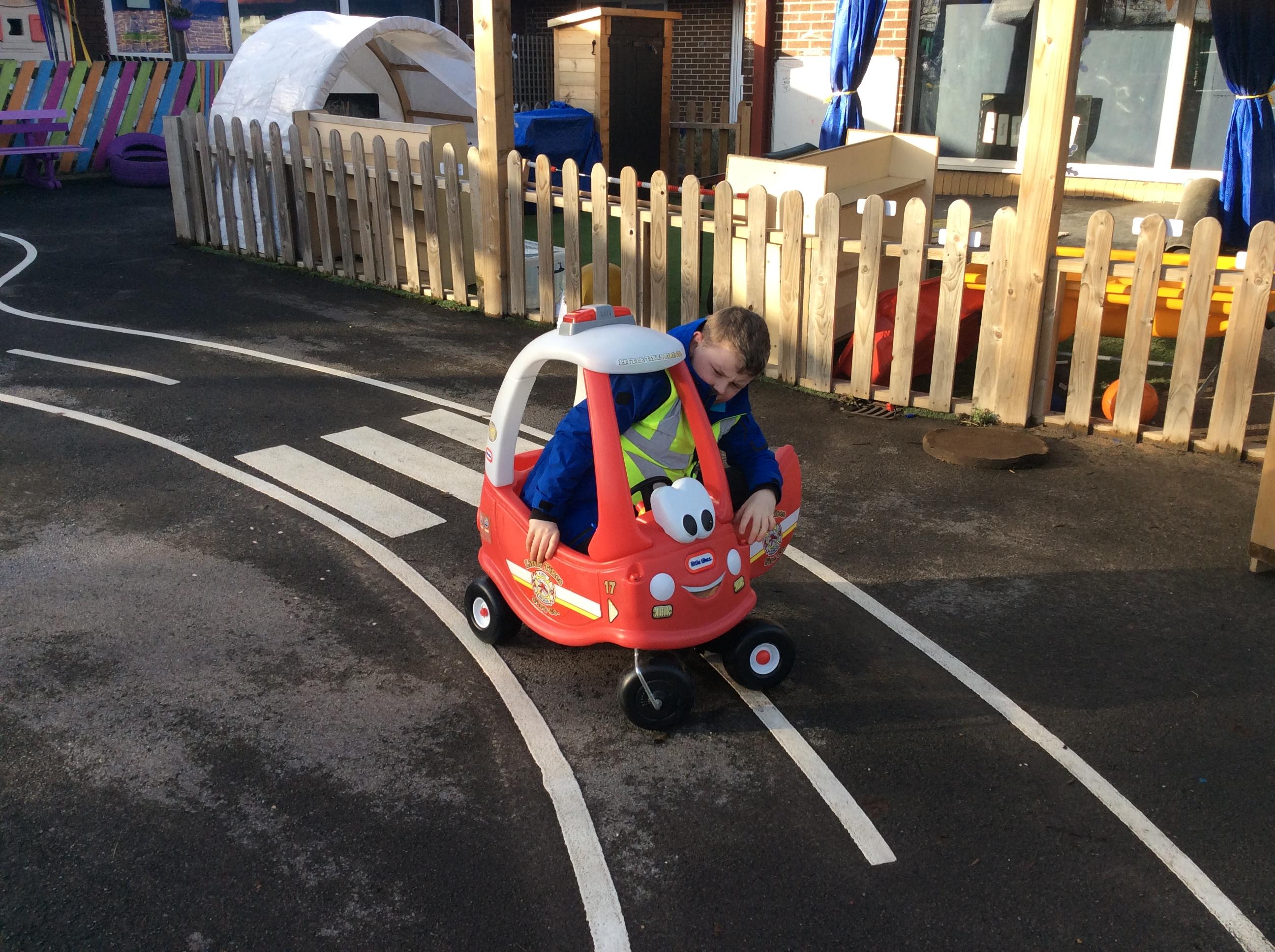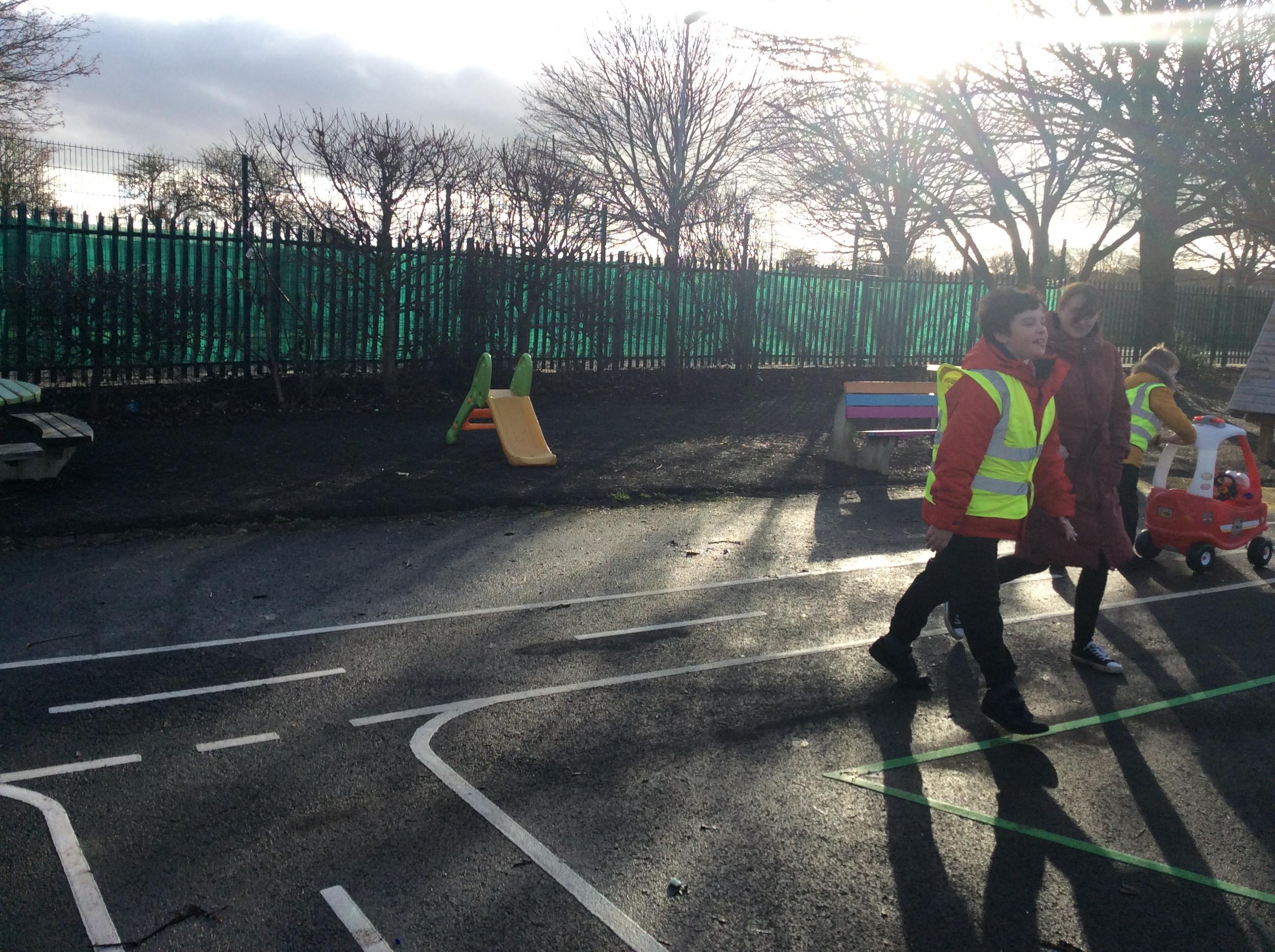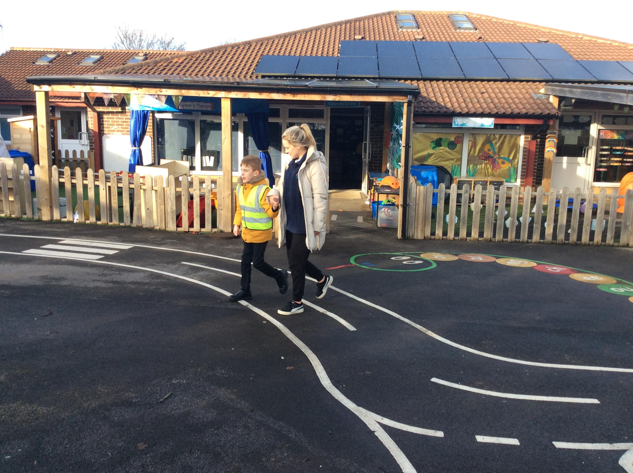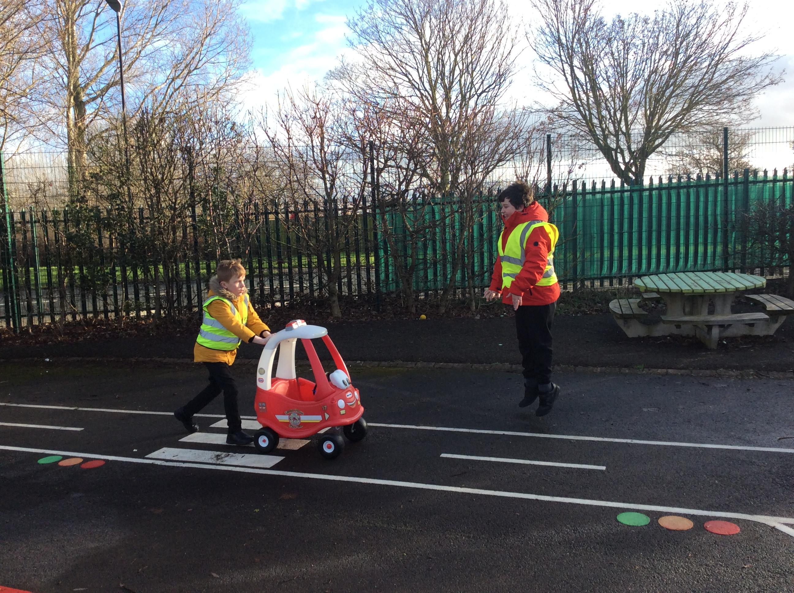 21 1 21 - Road Safety (PSHE): We enjoyed exploring and role-playing road safety rules on the road track in the outside area.
