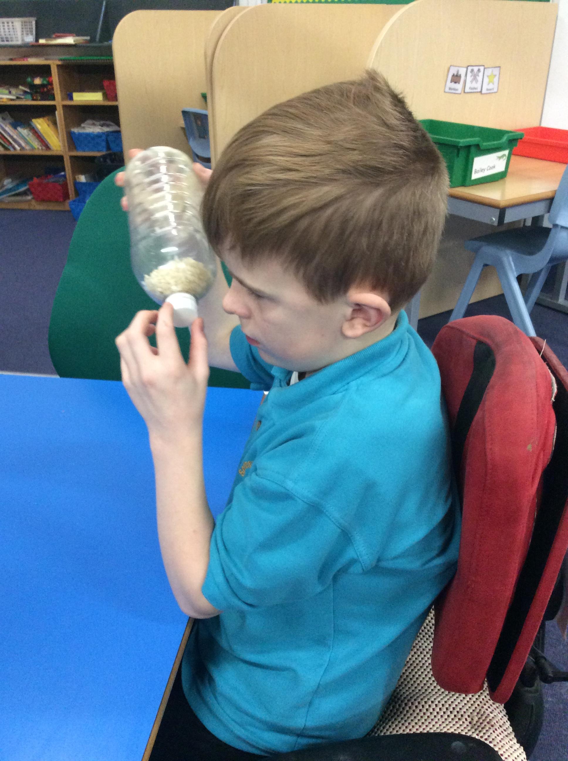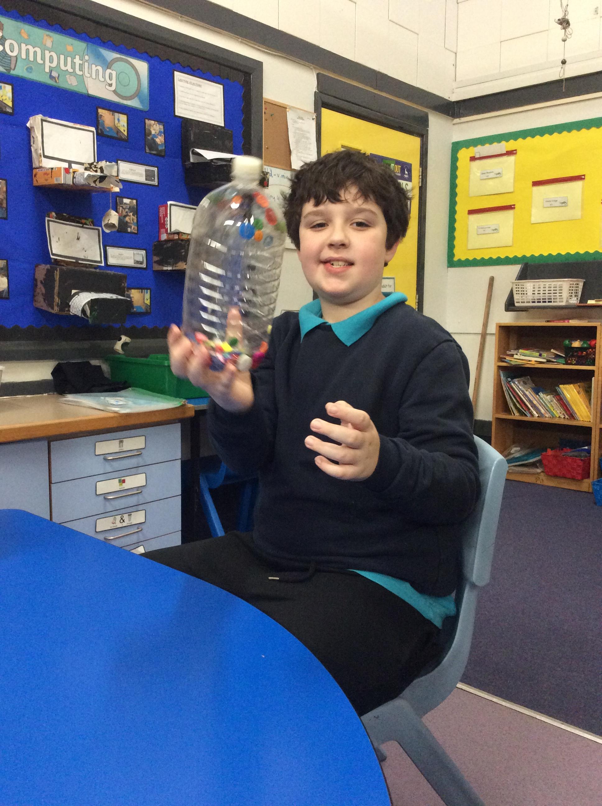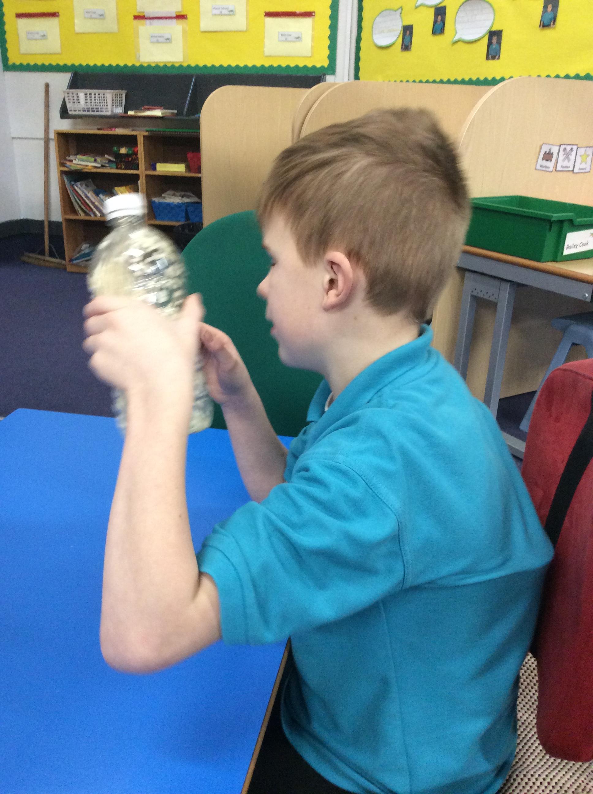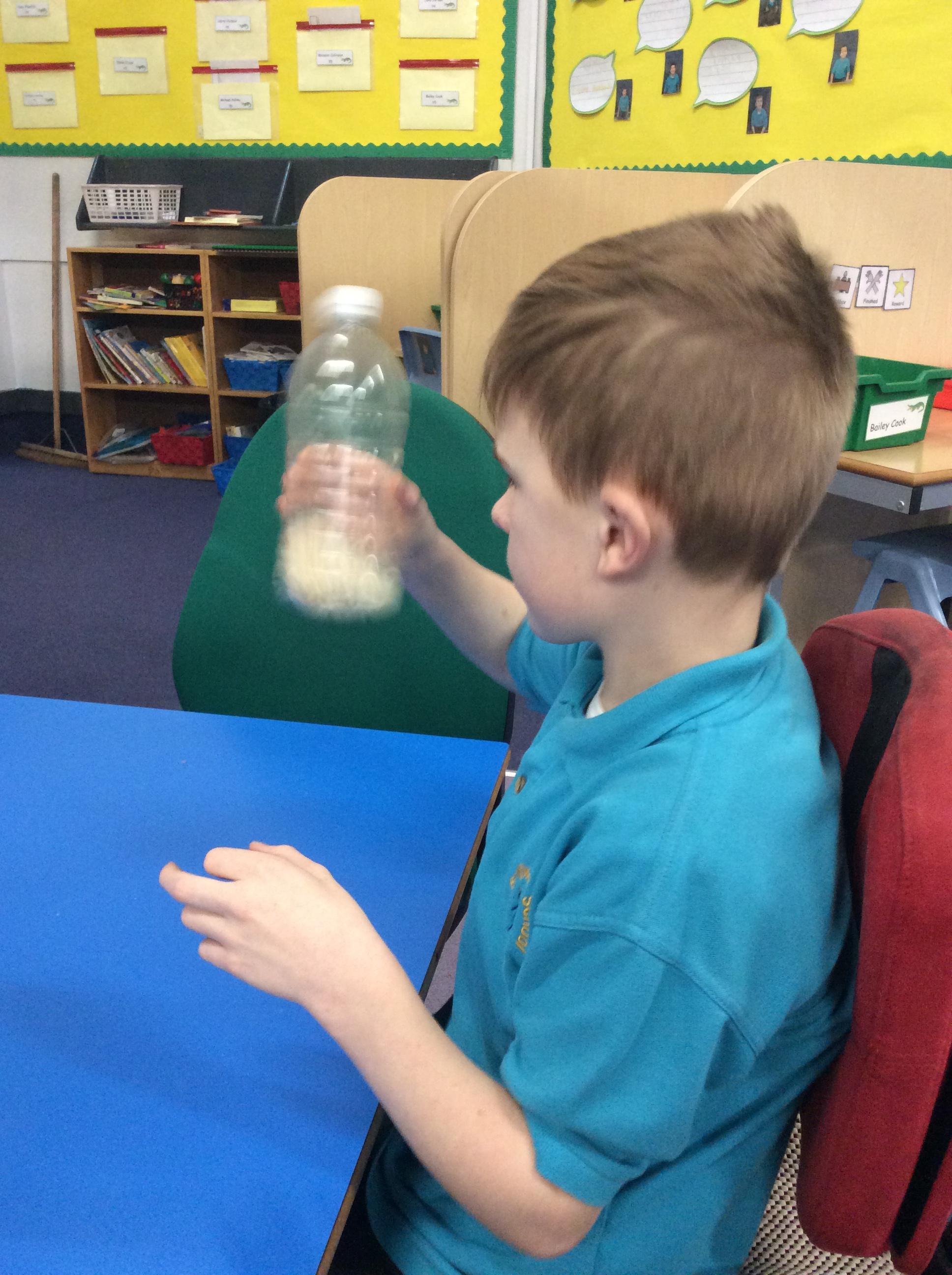 20/1/21 DT: We explored different materials in a bottle to find the best sound for a rainmaker.