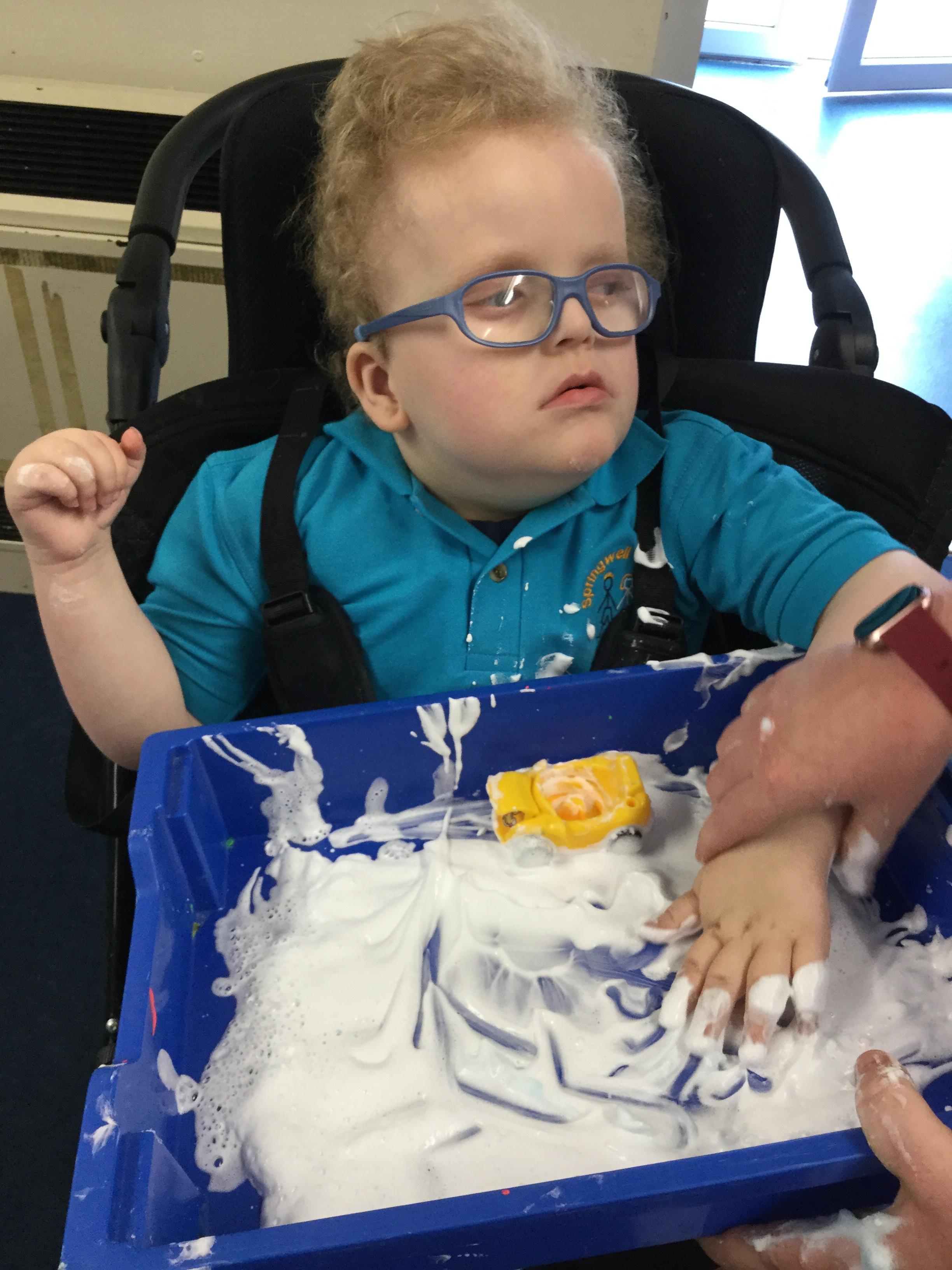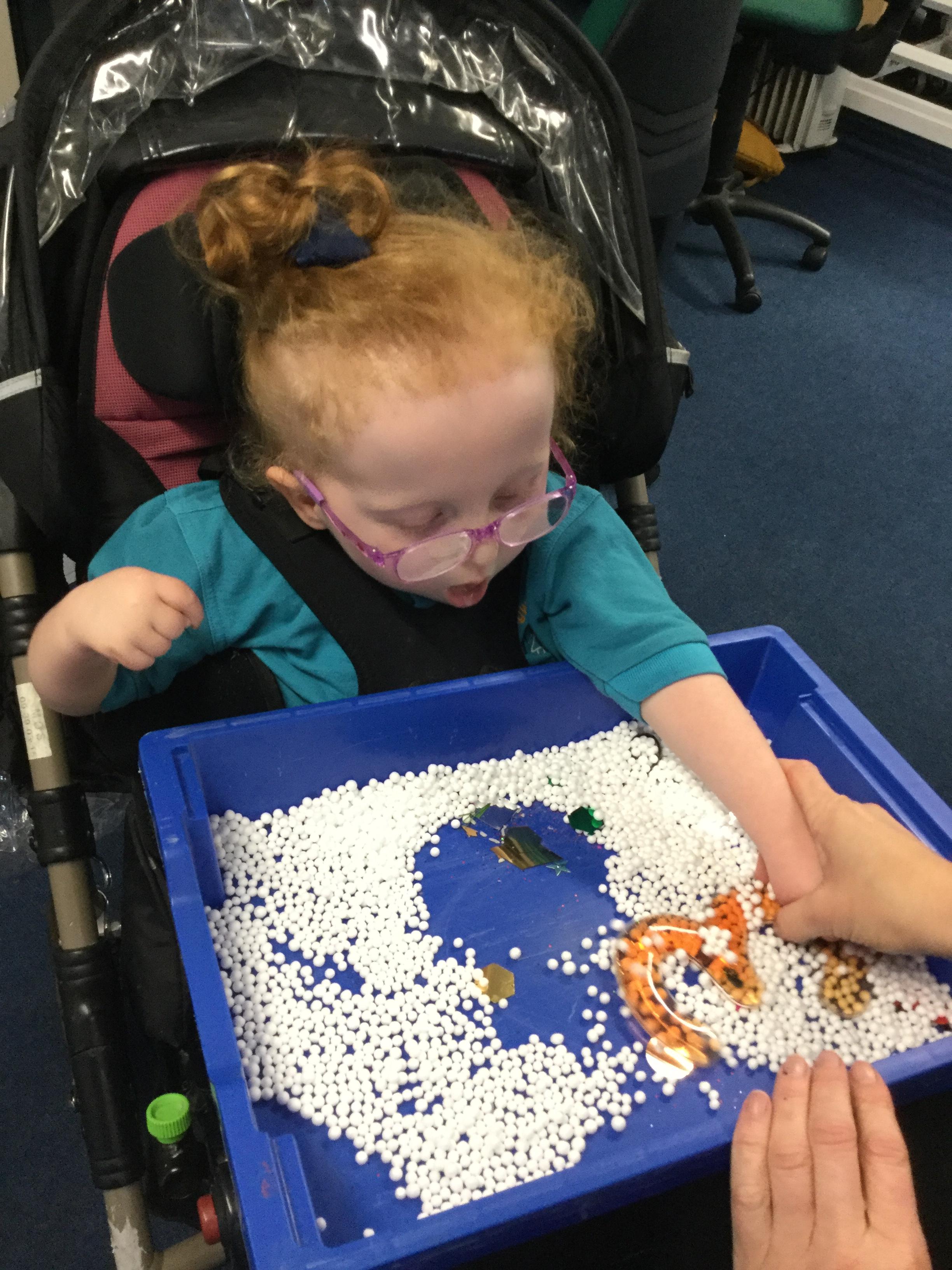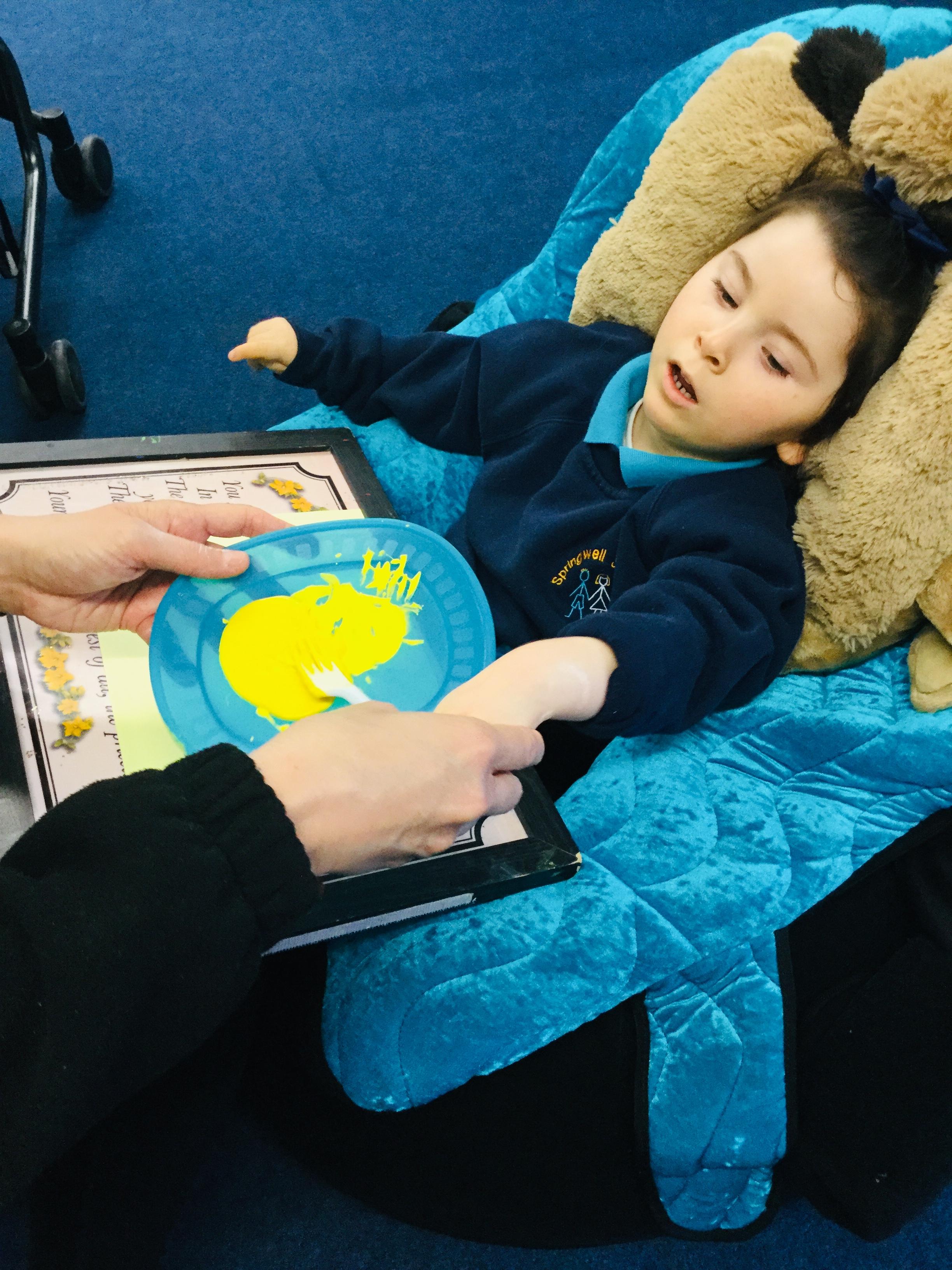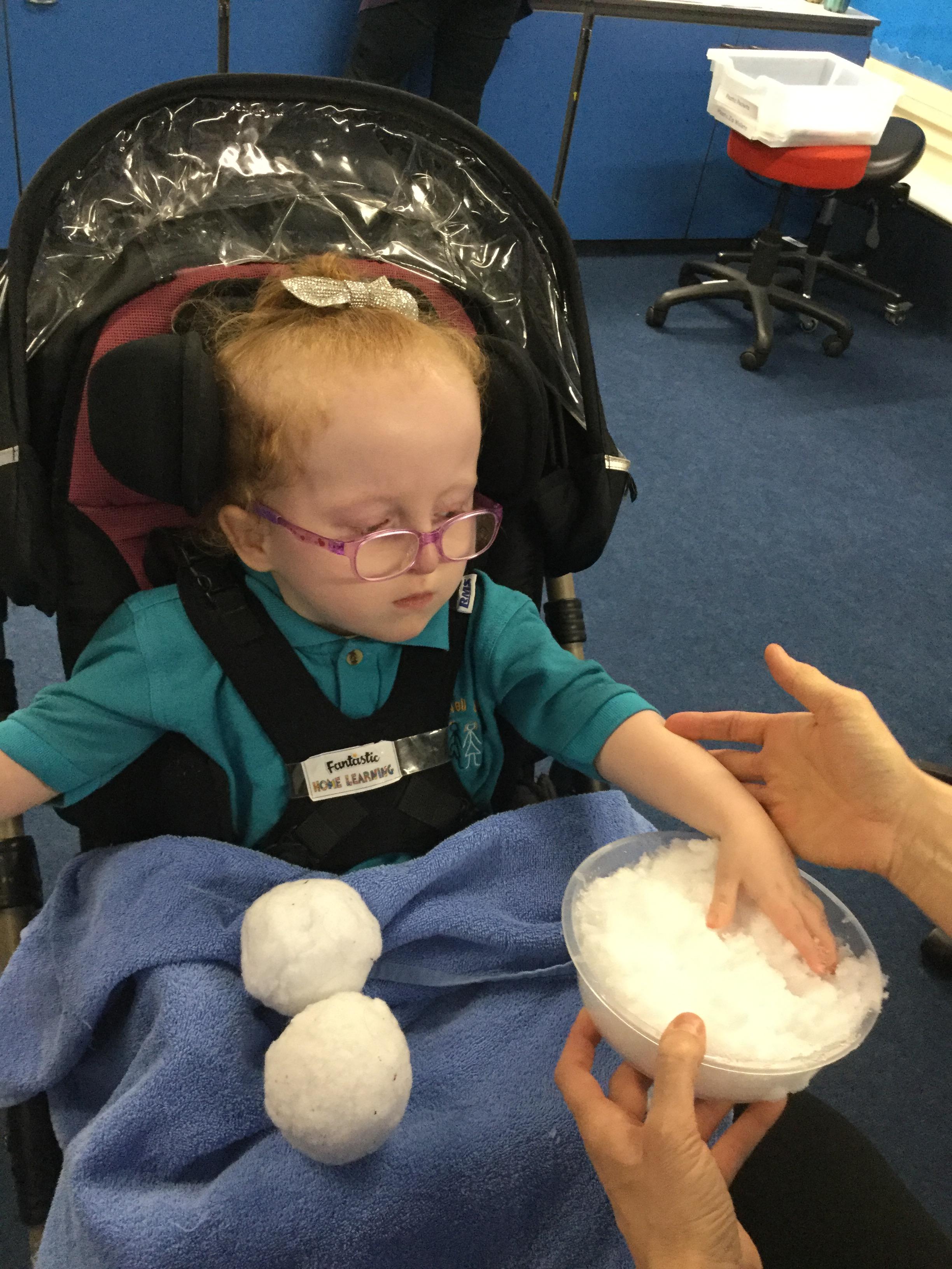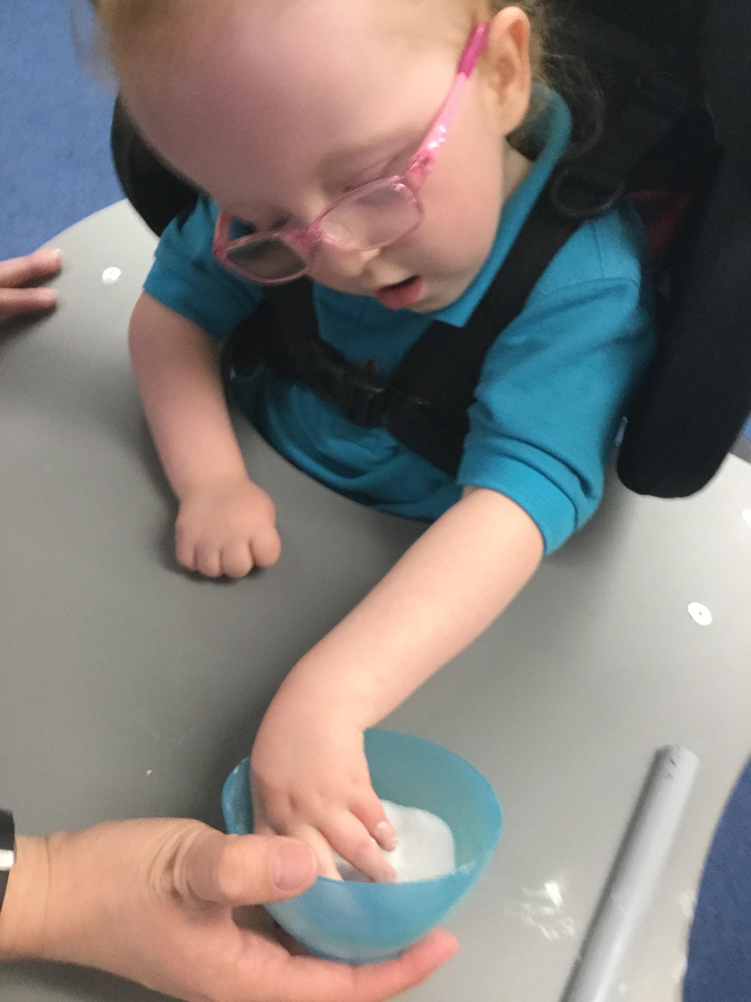 Sparkle curriculum is predominantly made up of sensory themed learning and therapeutic activities. More time will be spent on more beneficial, holistic and individualised activities e.g. positioning in specialised equipment, visual stimulation, hand and finger work (exploration – sensory play), therapies (hydrotherapy, rebound therapy etc), movement, relaxation, Tac Pac, story massage etc.