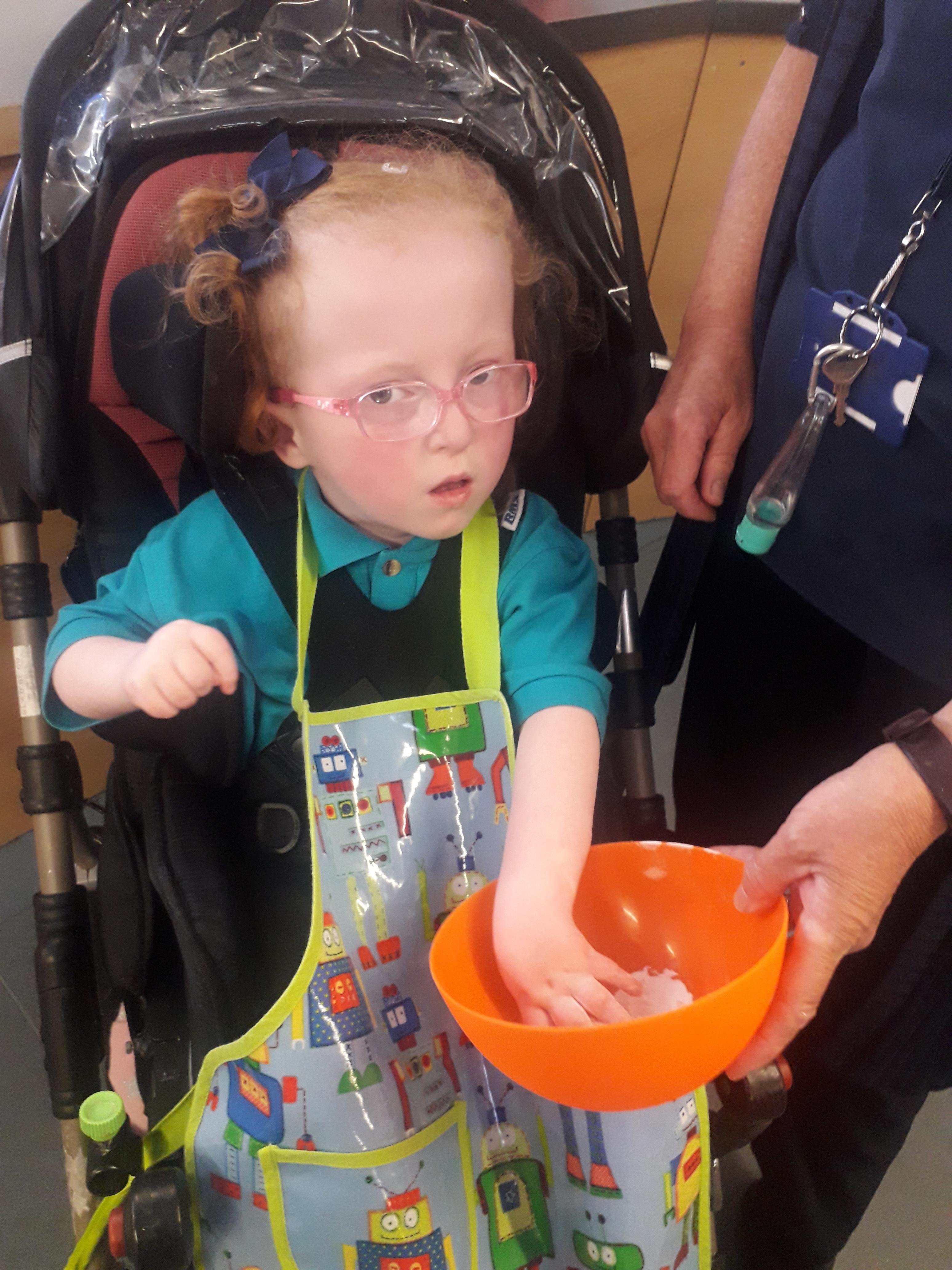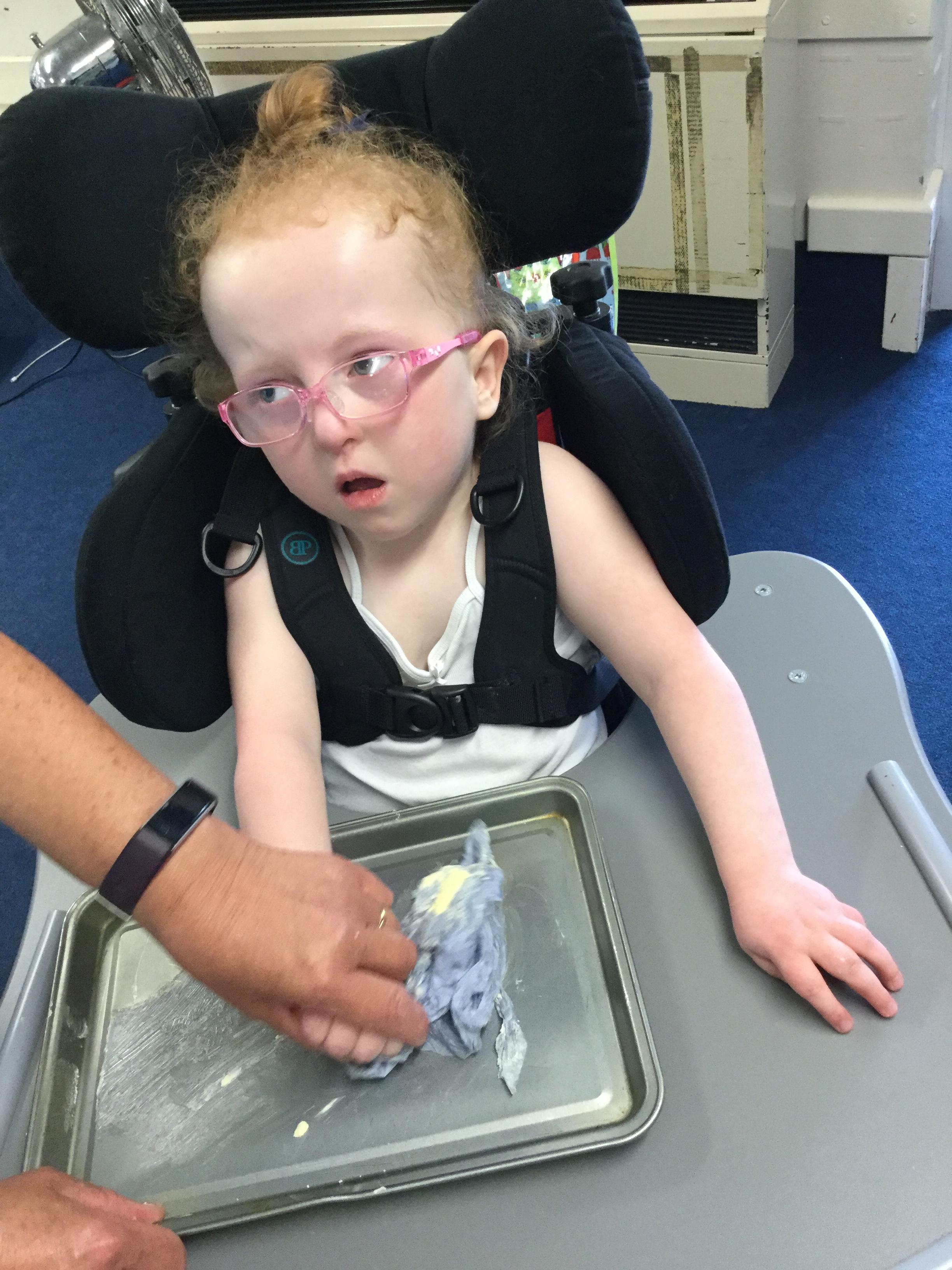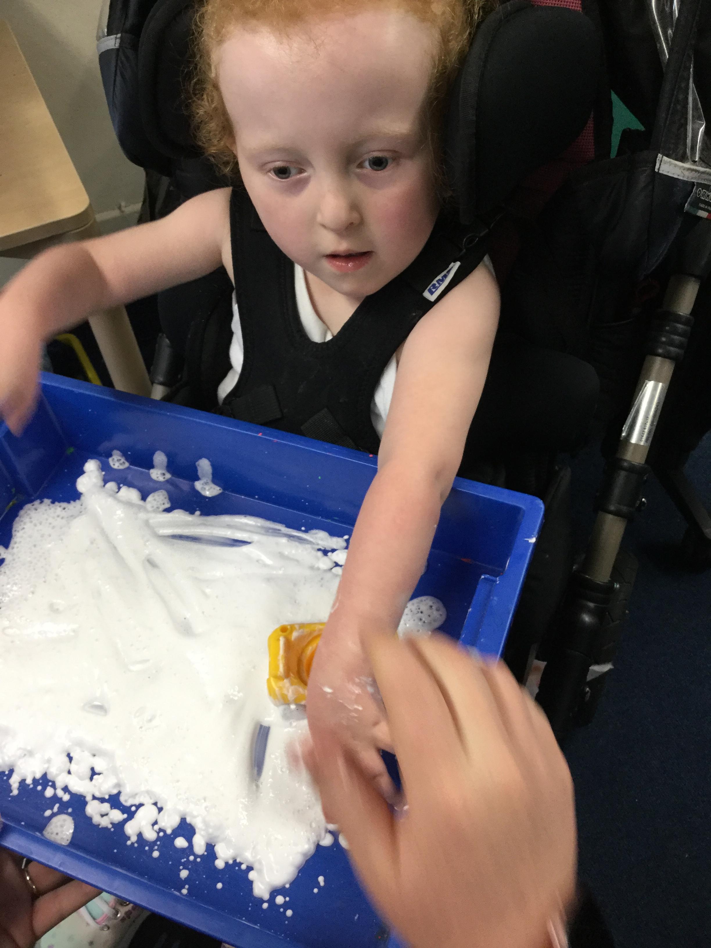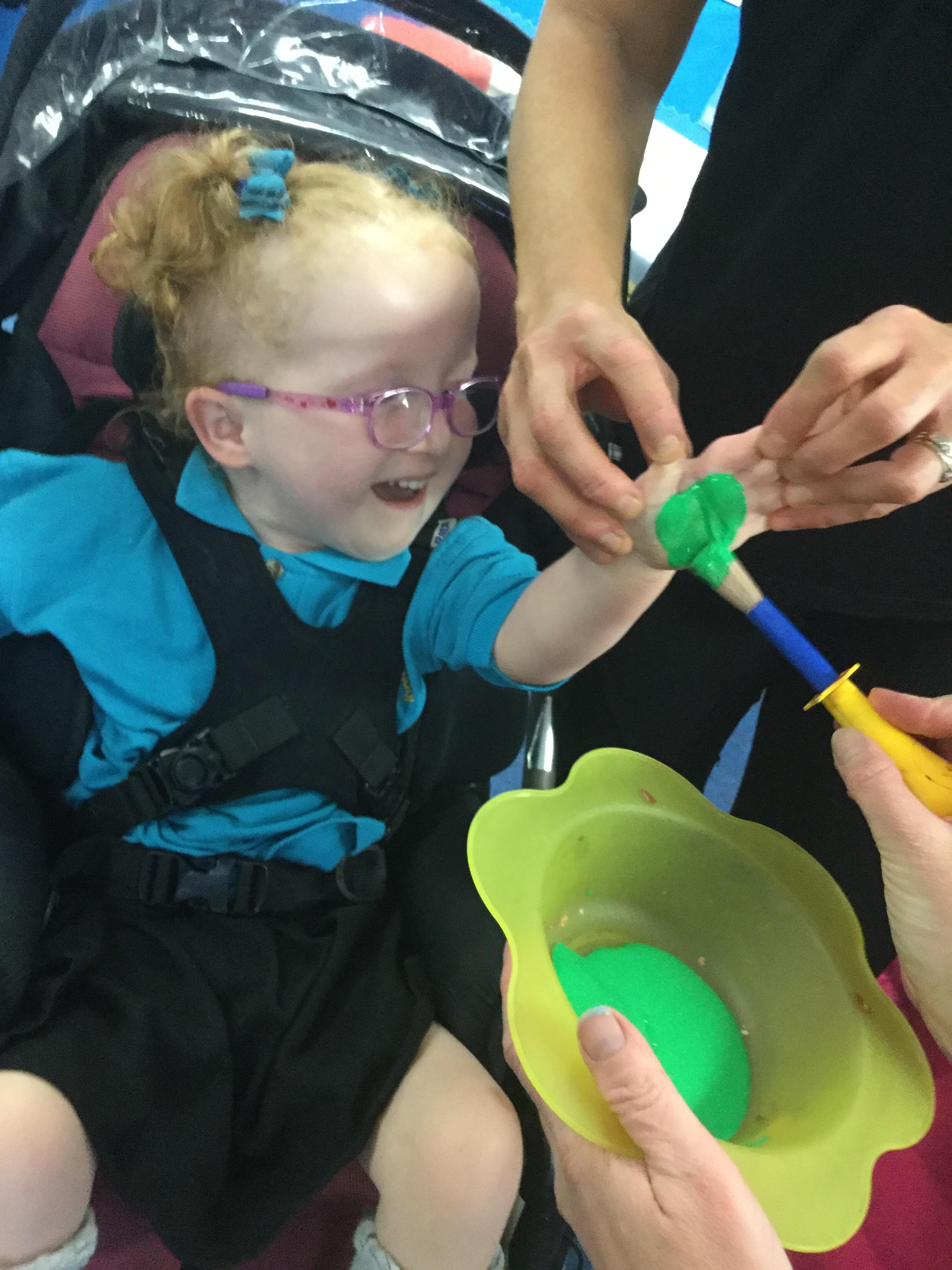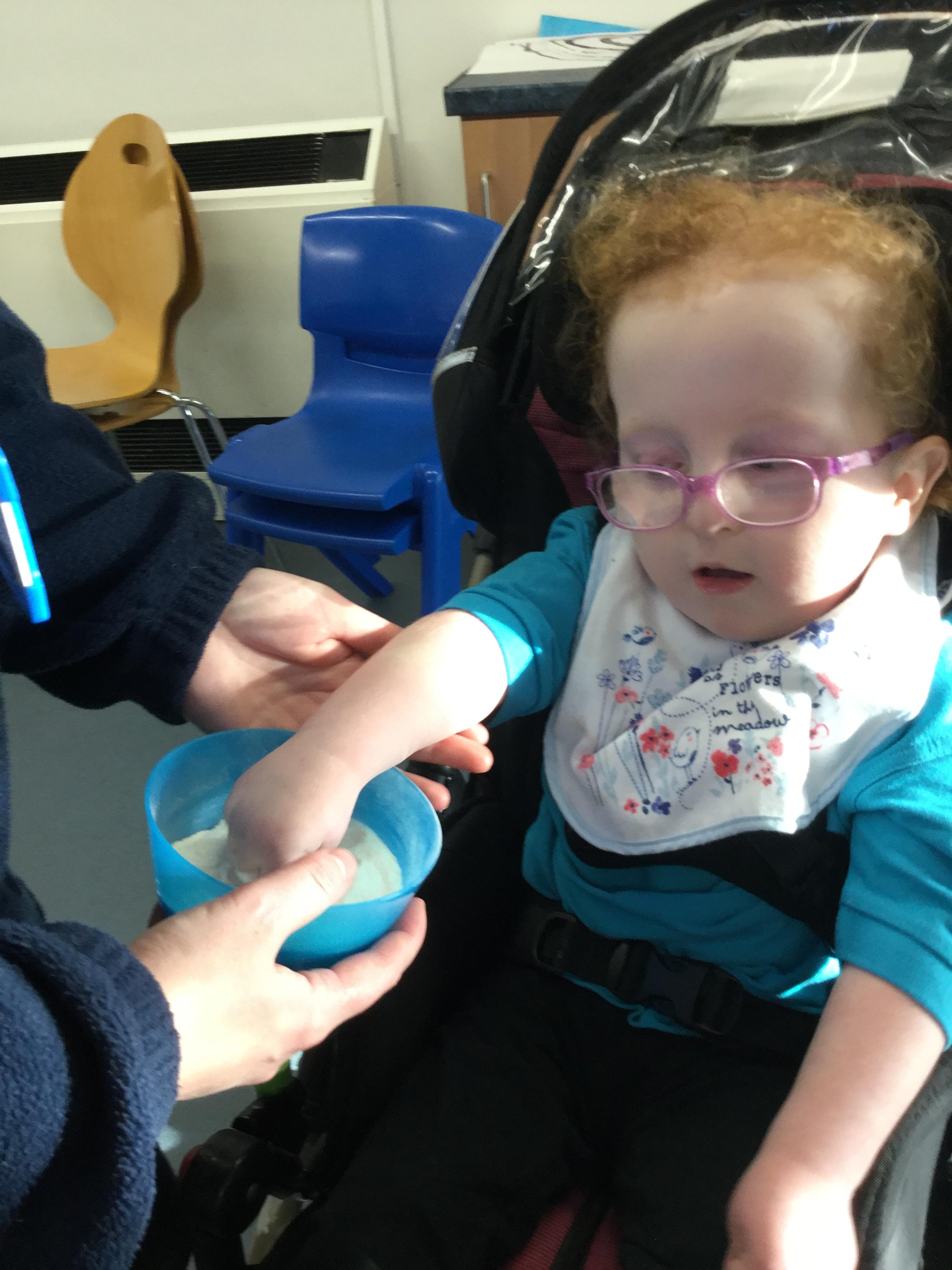 Sparkle curriculum is predominantly made up of sensory themed learning and therapeutic activities. More time will be spent on more beneficial, holistic and individualised activities e.g. positioning in specialised equipment, visual stimulation, hand and finger work (exploration – sensory play), therapies (hydrotherapy, rebound therapy etc), movement, relaxation, Tac Pac, story massage etc.