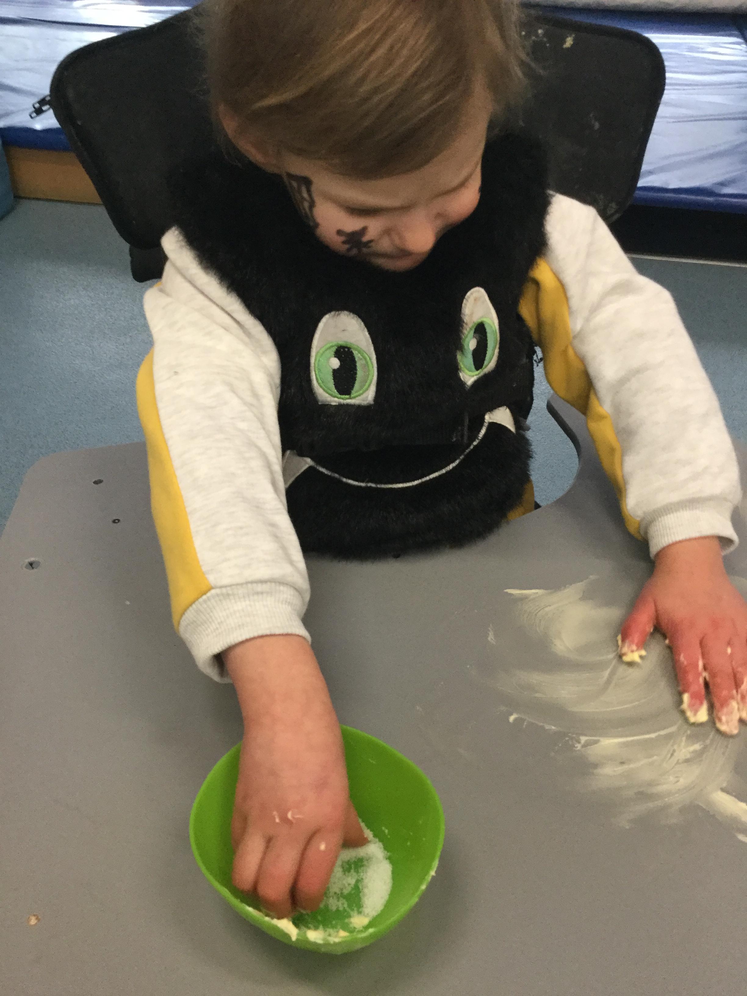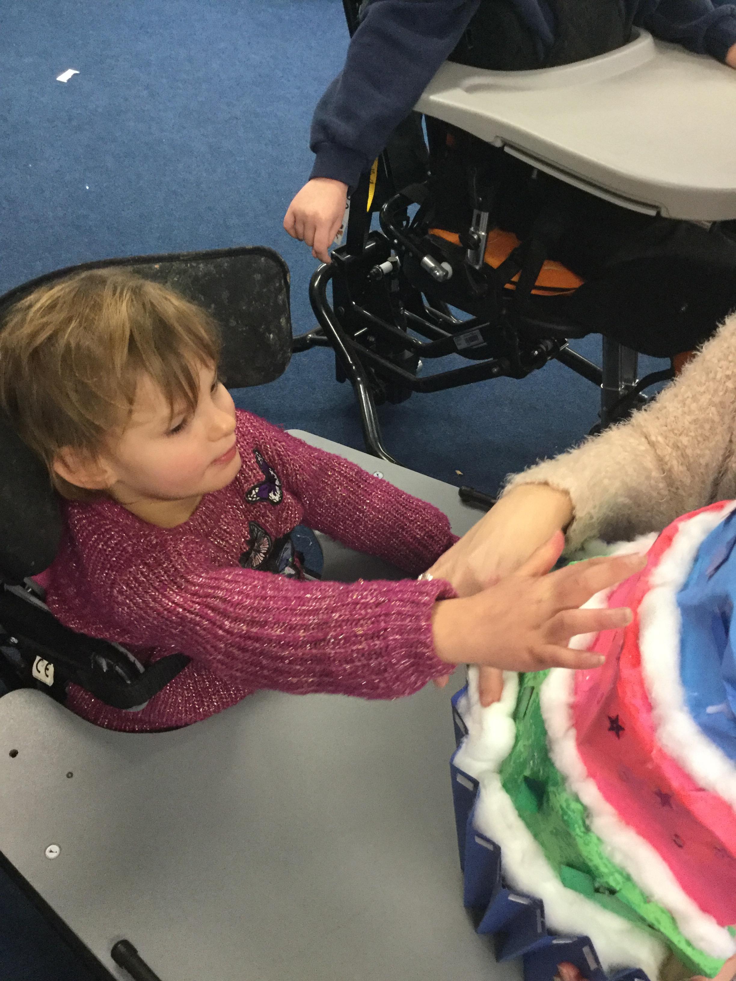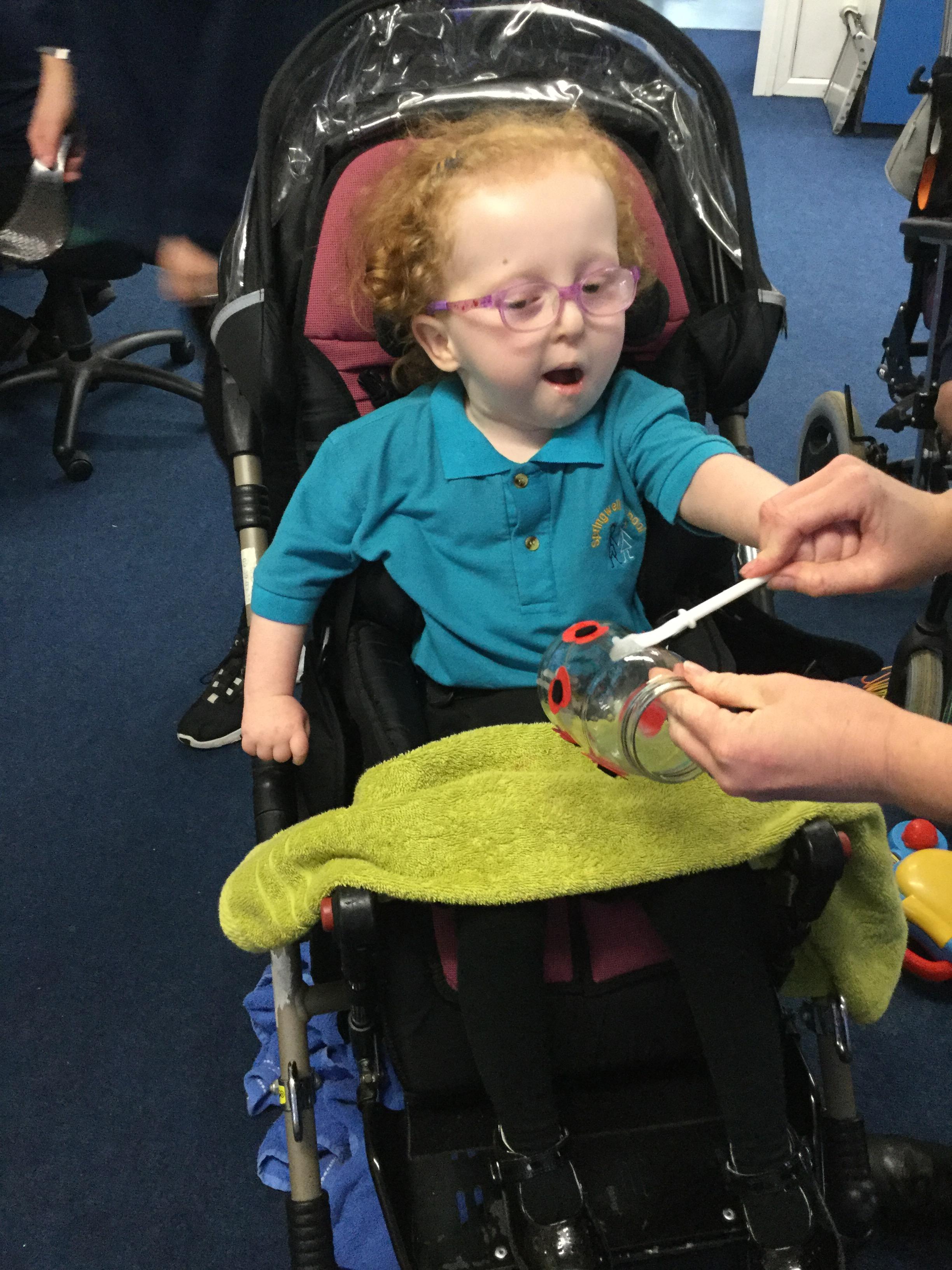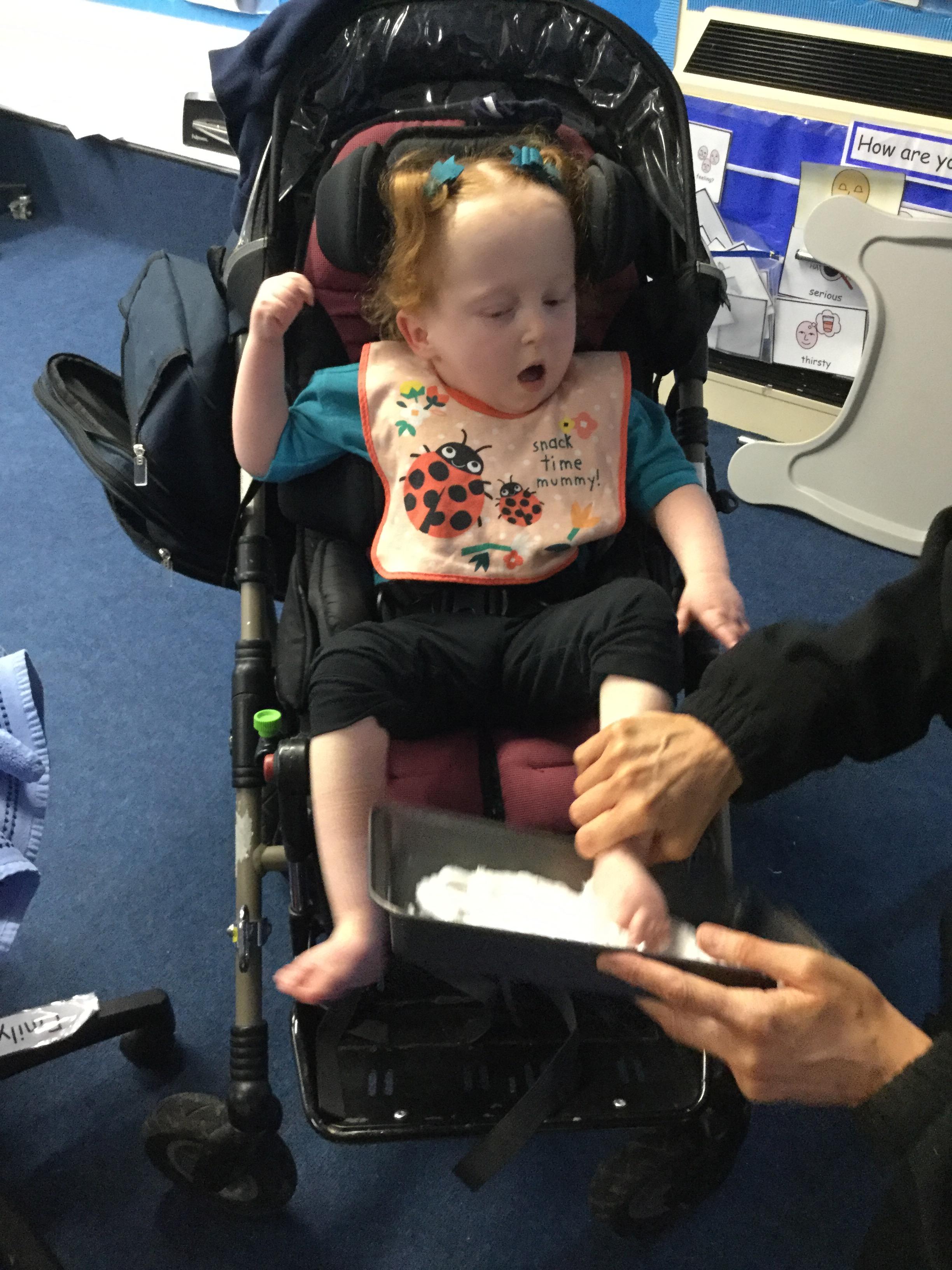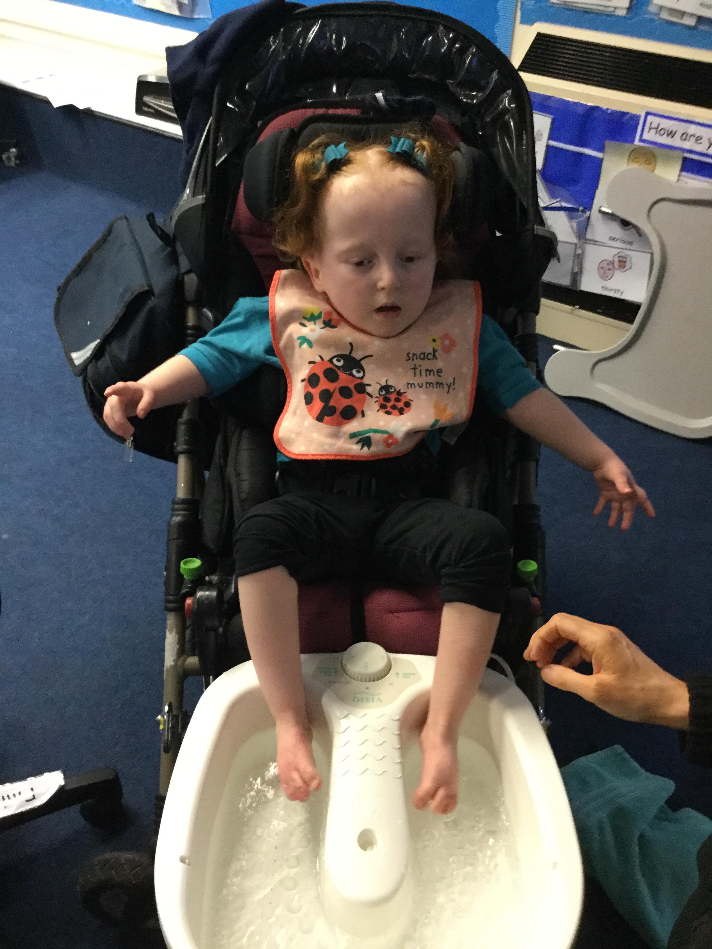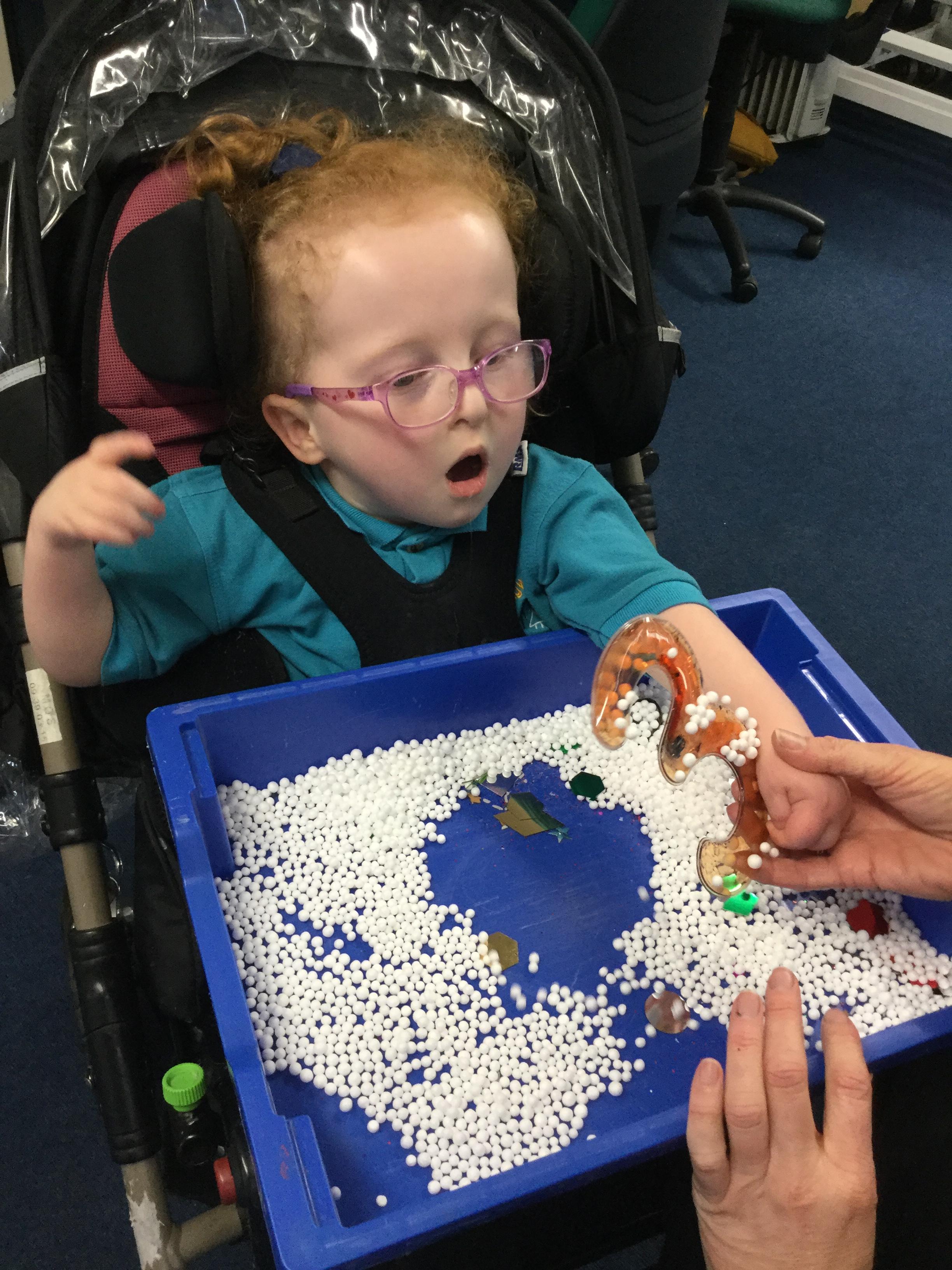 Sparkle curriculum is predominantly made up of sensory themed learning and therapeutic activities. More time will be spent on more beneficial, holistic and individualised activities e.g. positioning in specialised equipment, visual stimulation, hand and finger work (exploration – sensory play), therapies (hydrotherapy, rebound therapy etc), movement, relaxation, Tac Pac, story massage etc.