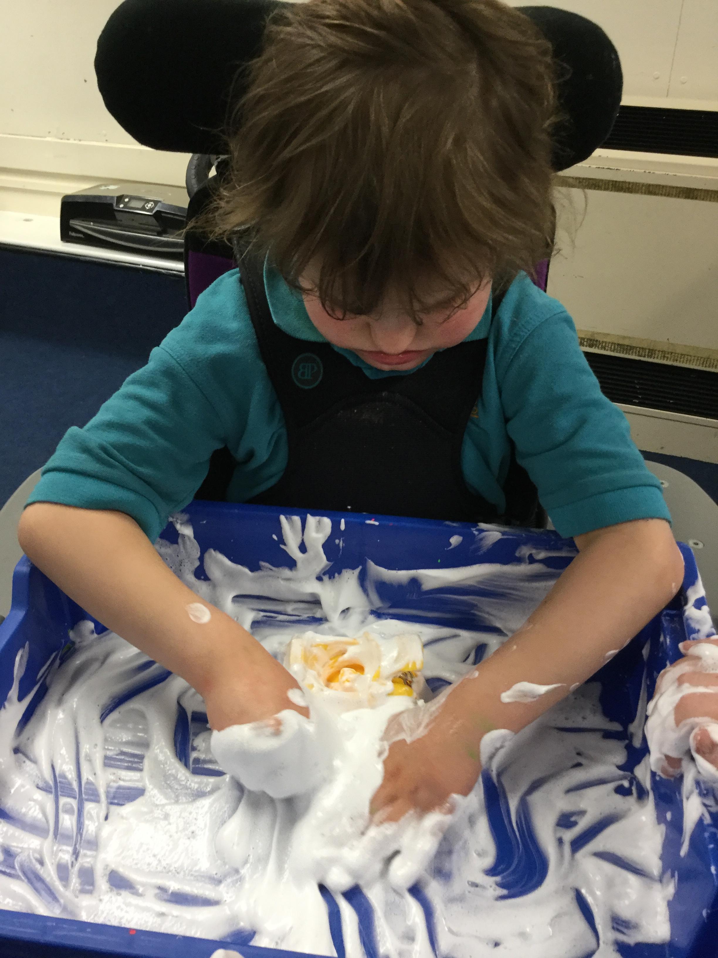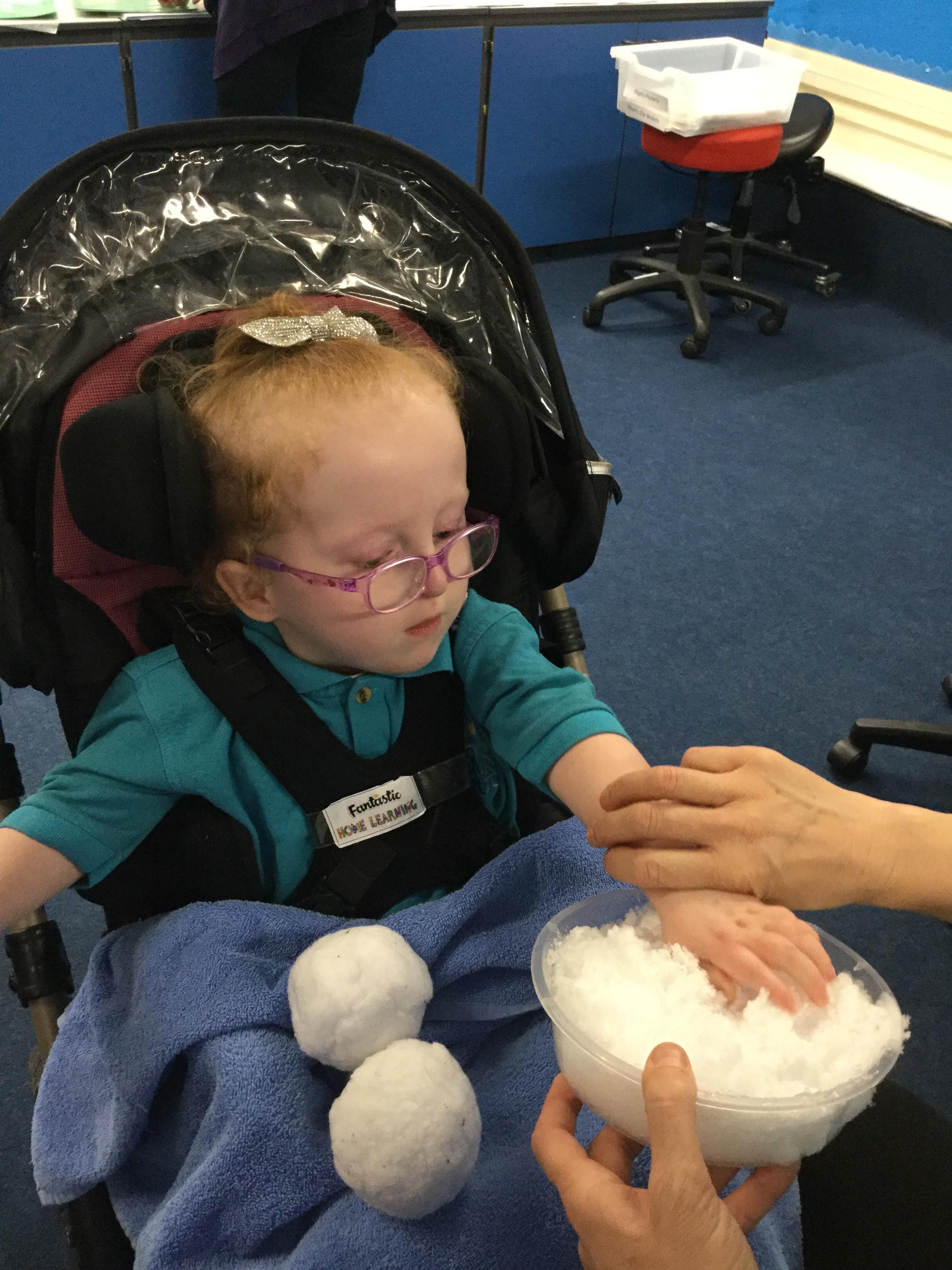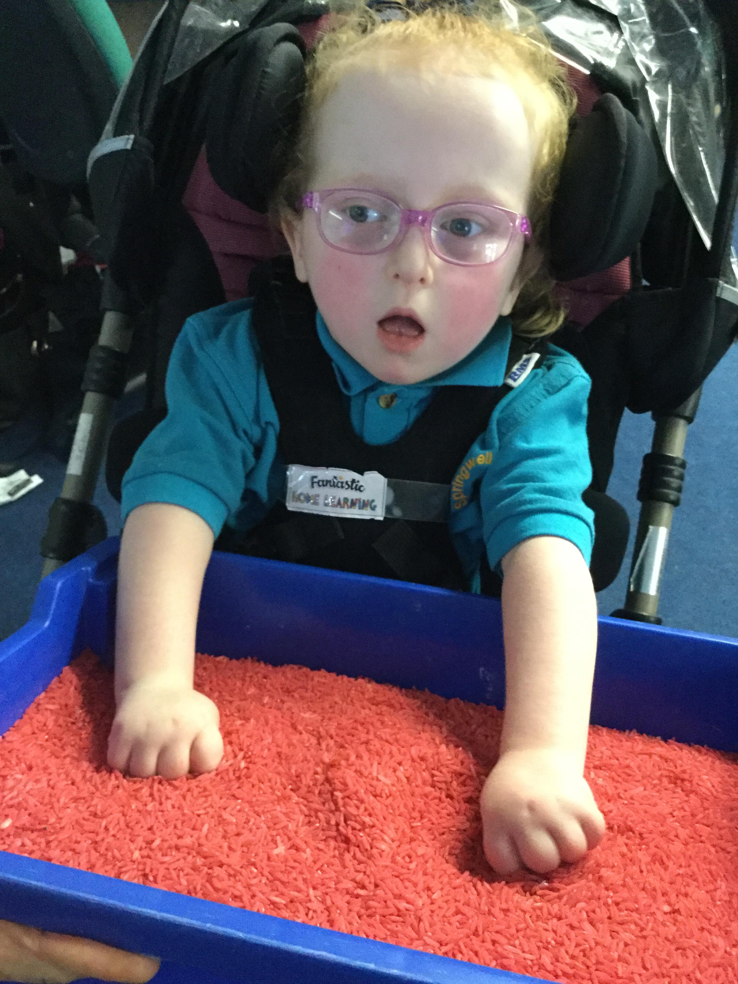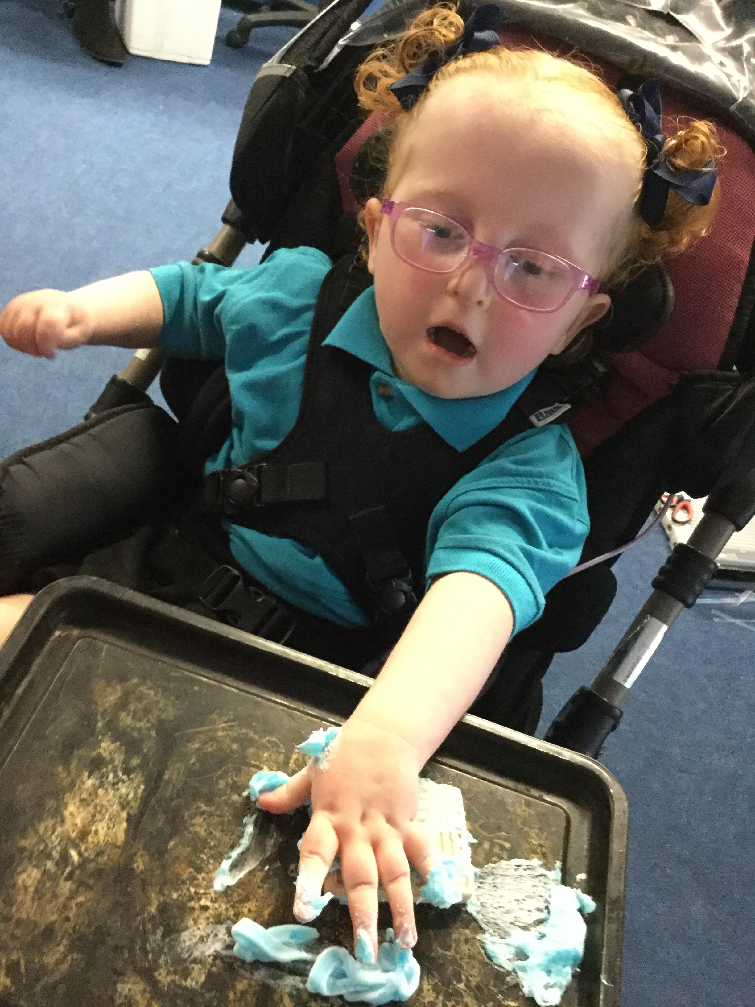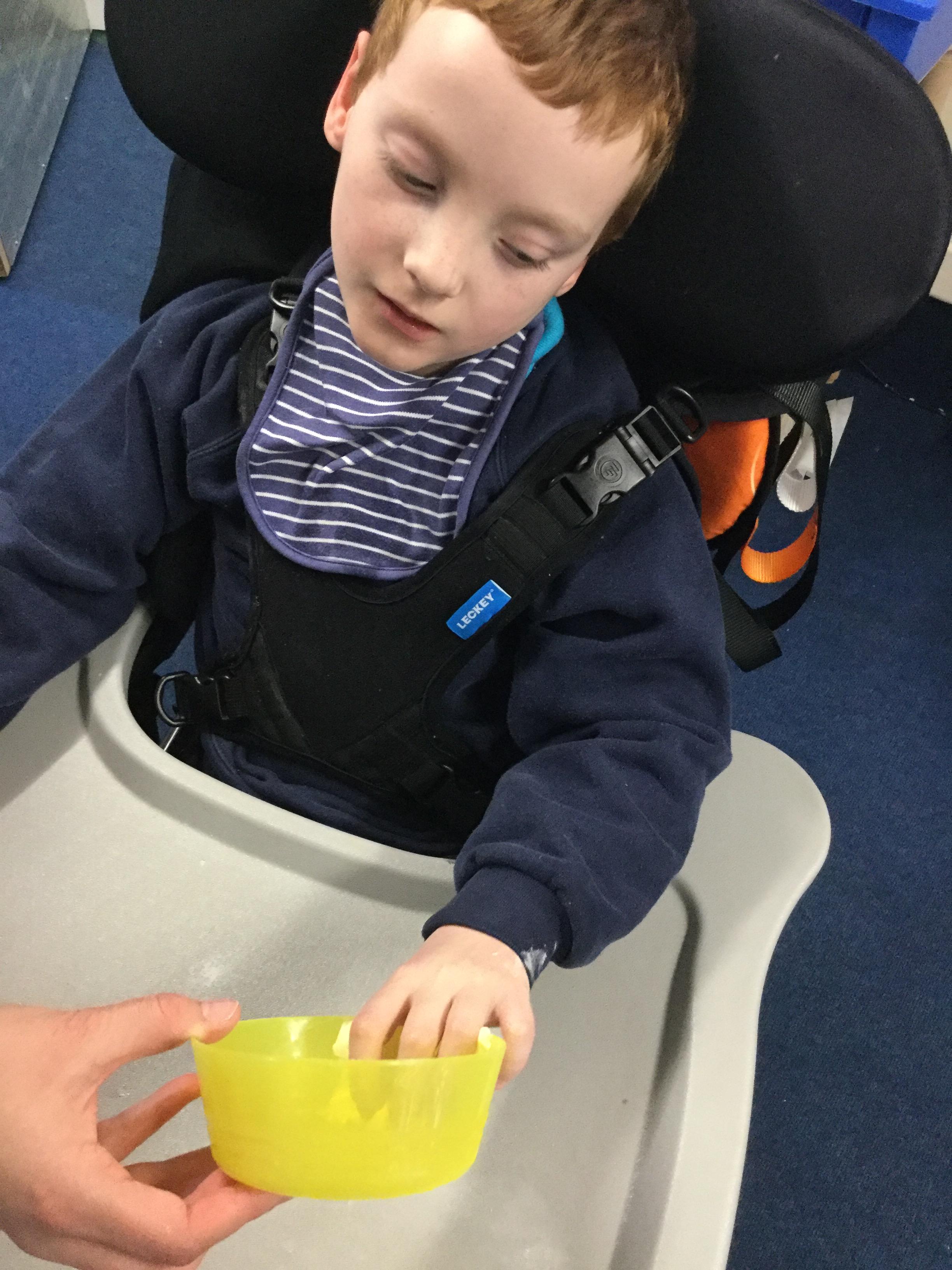 Sparkle curriculum is predominantly made up of sensory themed learning and therapeutic activities. More time will be spent on more beneficial, holistic and individualised activities e.g. positioning in specialised equipment, visual stimulation, hand and finger work (exploration – sensory play), therapies (hydrotherapy, rebound therapy etc), movement, relaxation, Tac Pac, story massage etc.