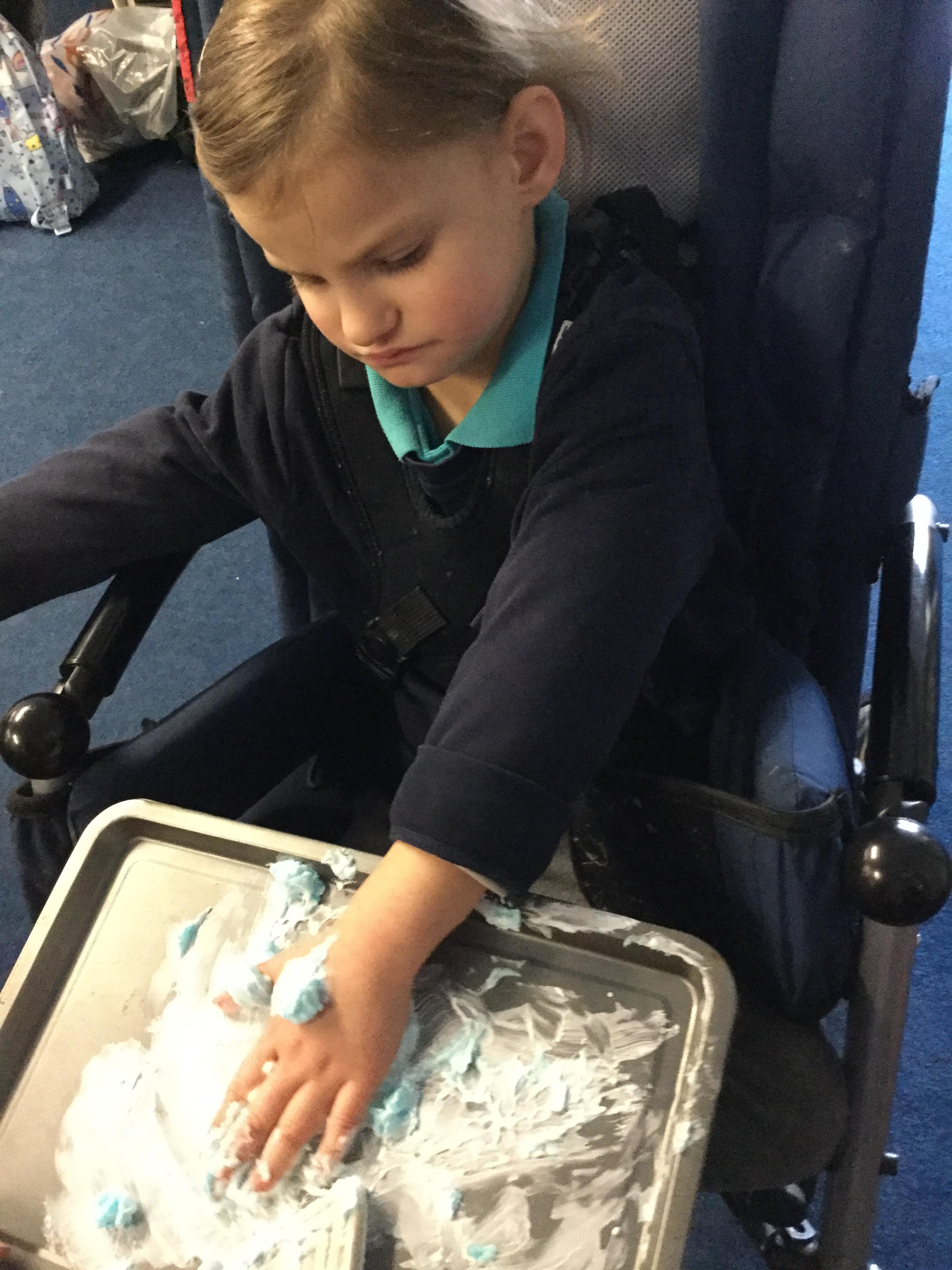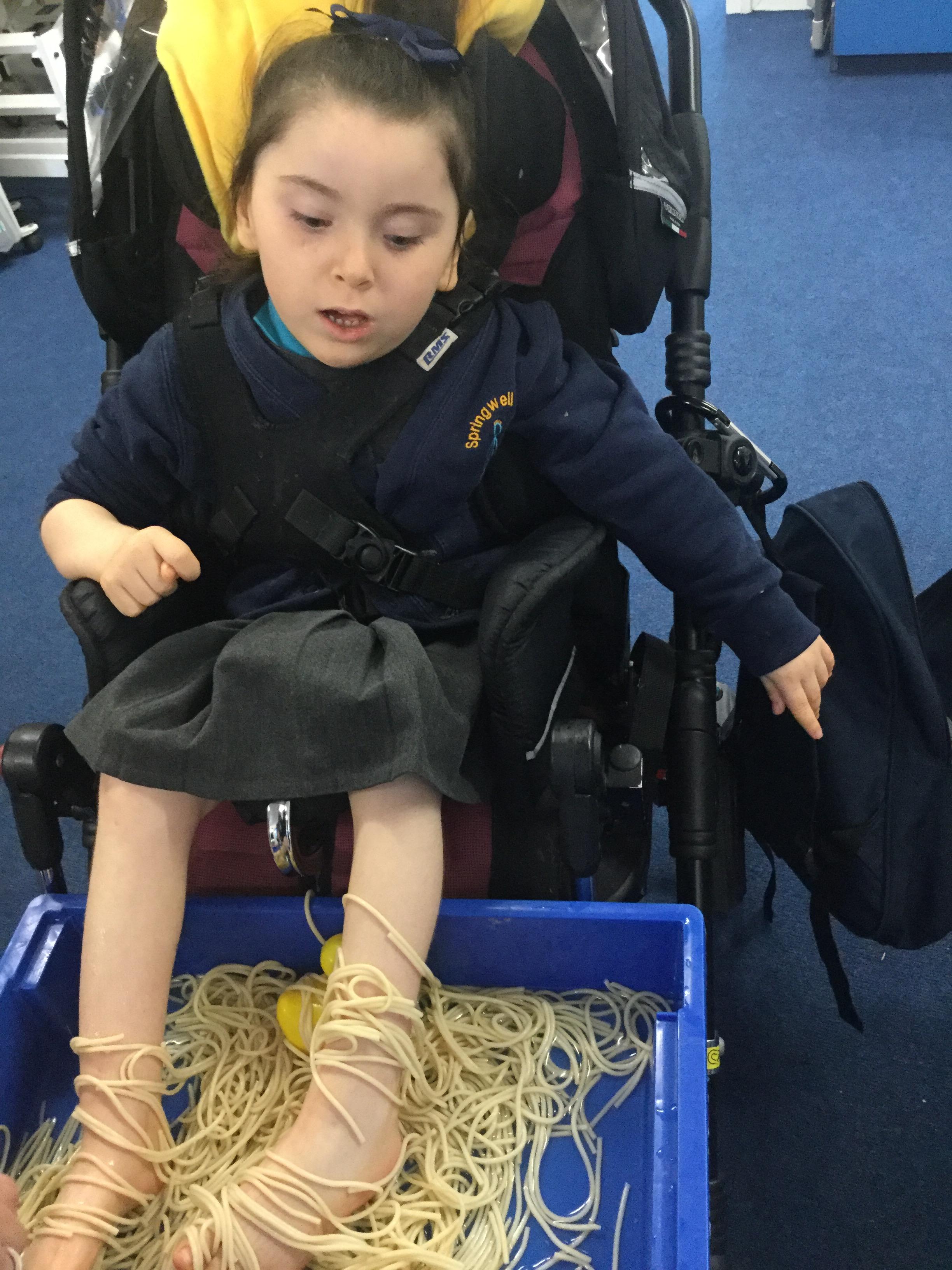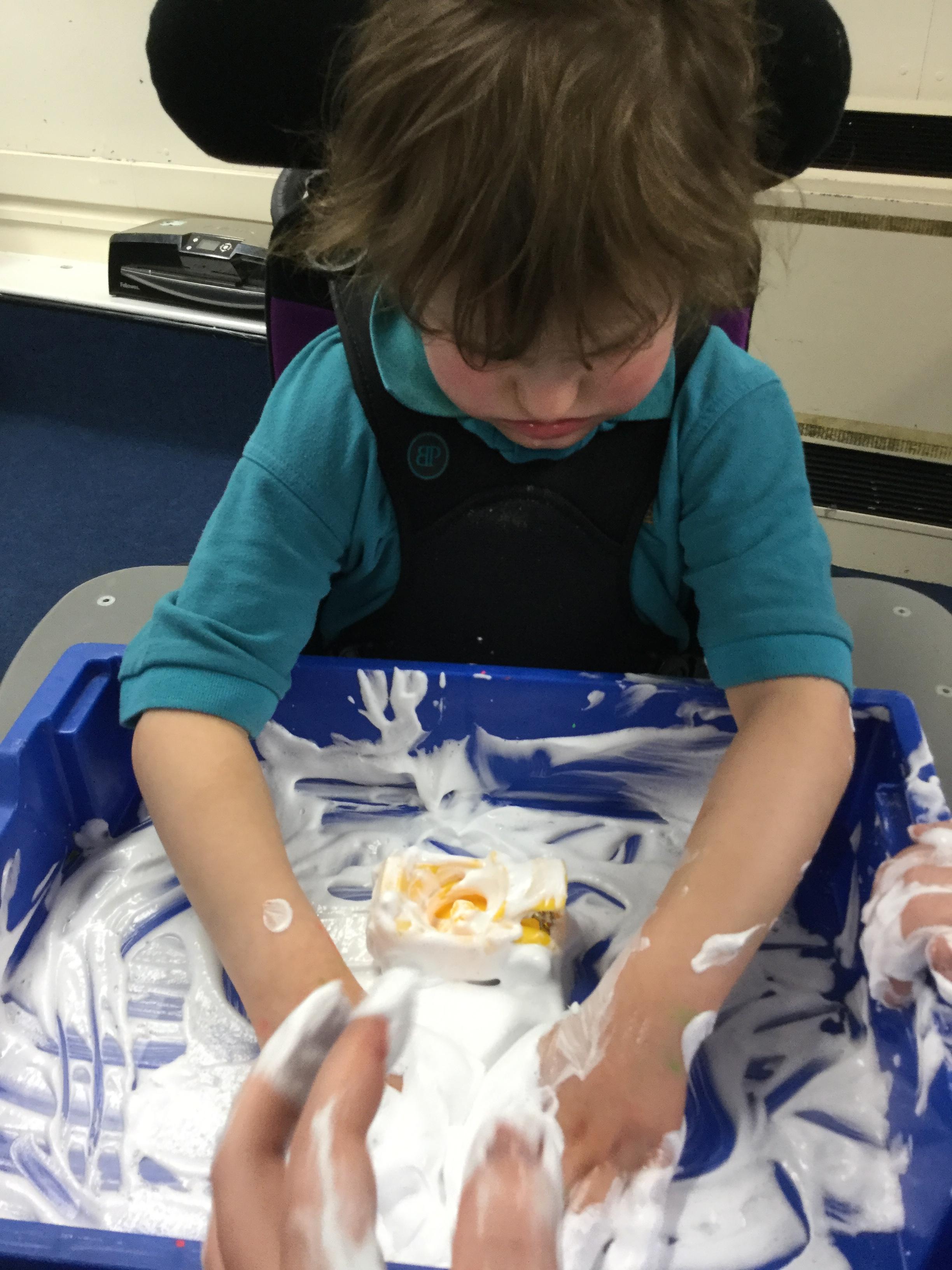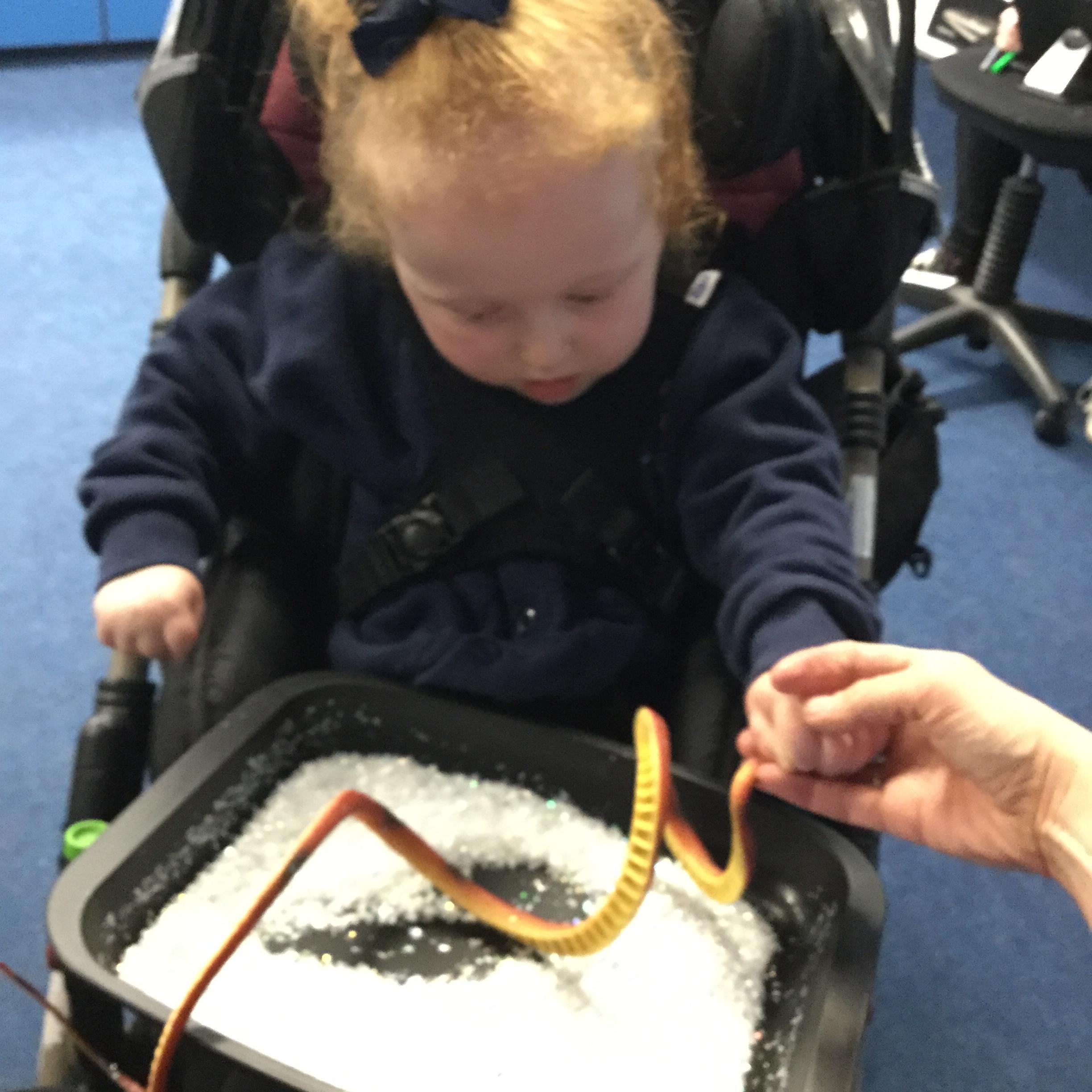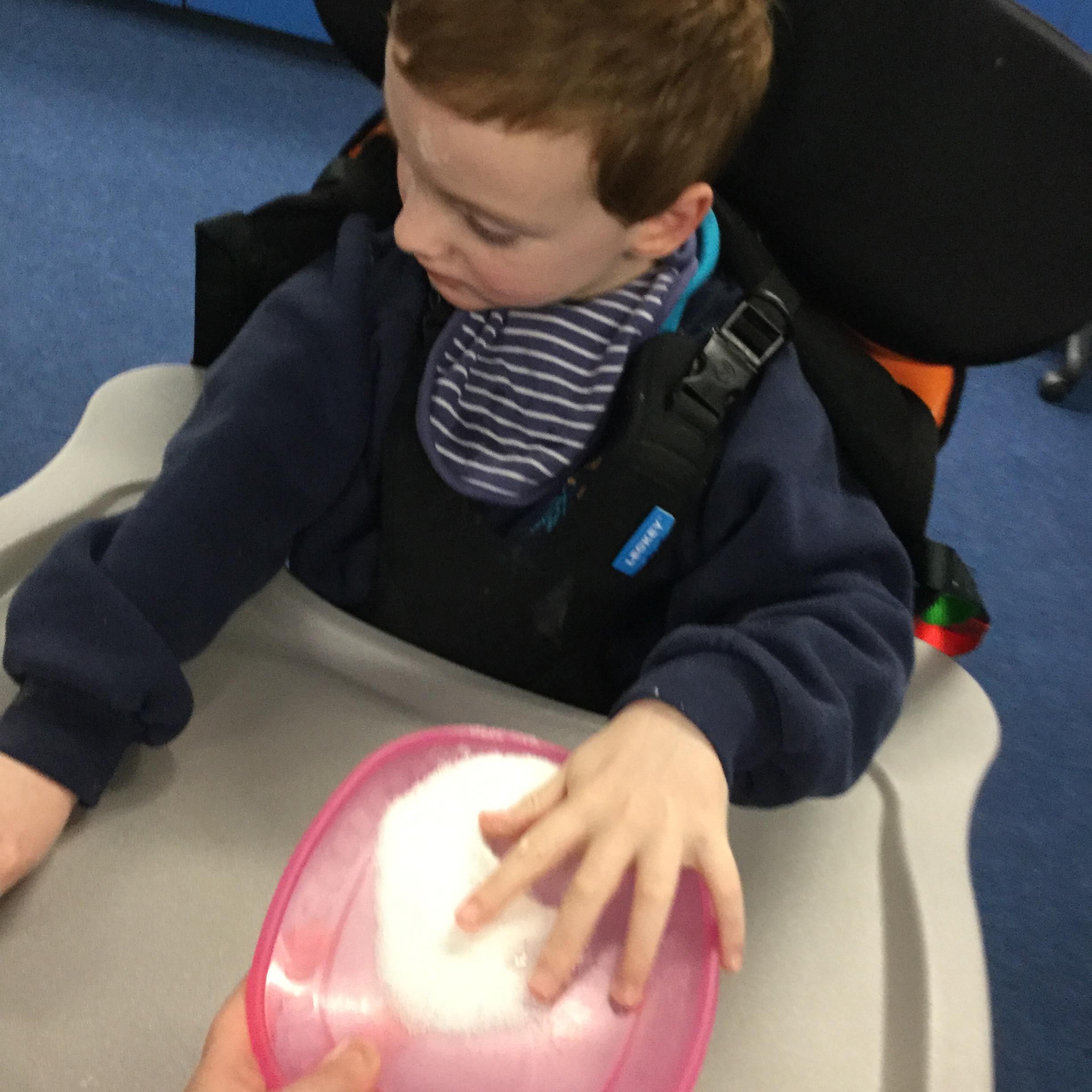 Sparkle curriculum is predominantly made up of sensory themed learning and therapeutic activities. More time will be spent on more beneficial, holistic and individualised activities e.g. positioning in specialised equipment, visual stimulation, hand and finger work (exploration – sensory play), therapies (hydrotherapy, rebound therapy etc), movement, relaxation, Tac Pac, story massage etc.