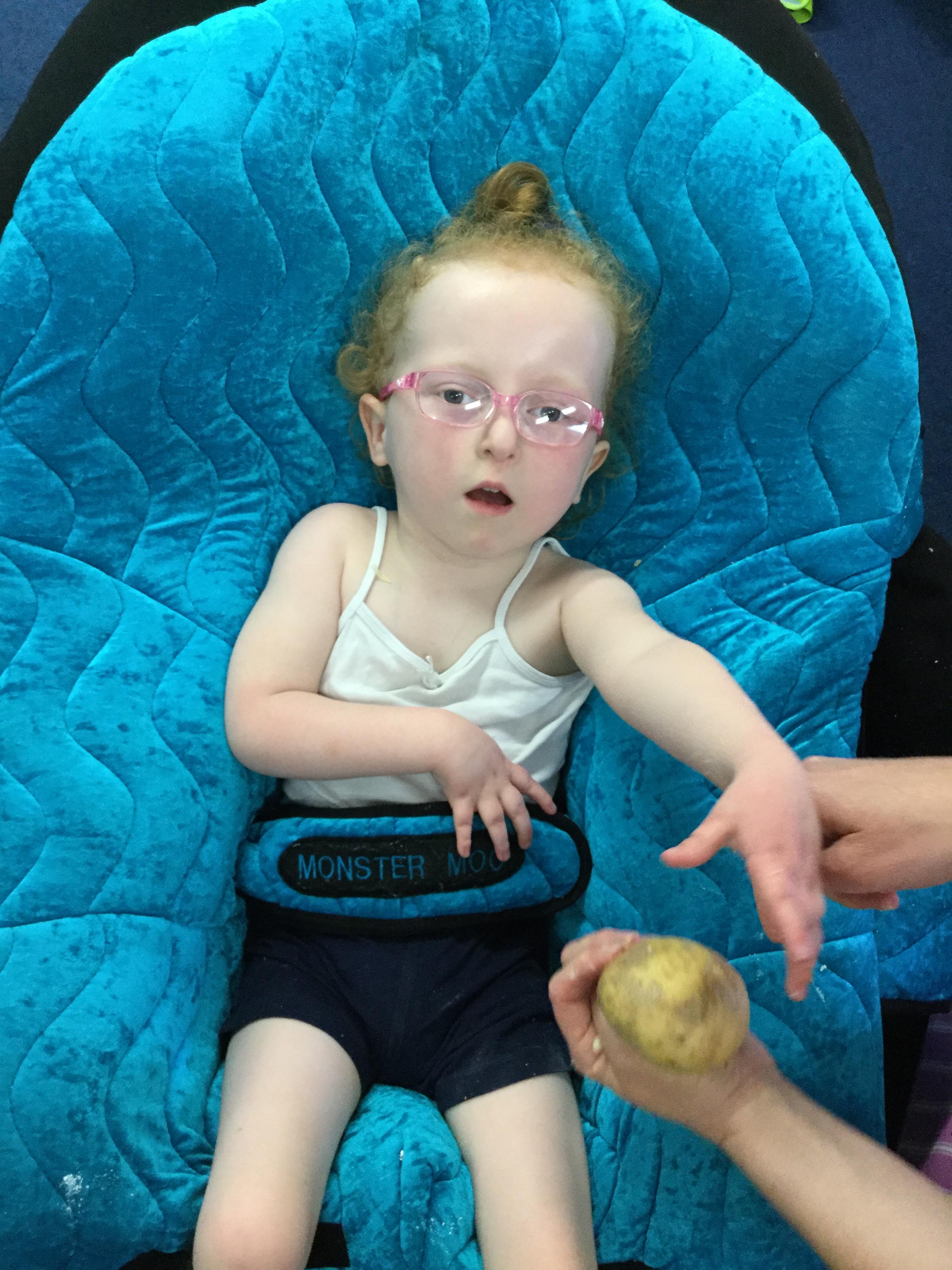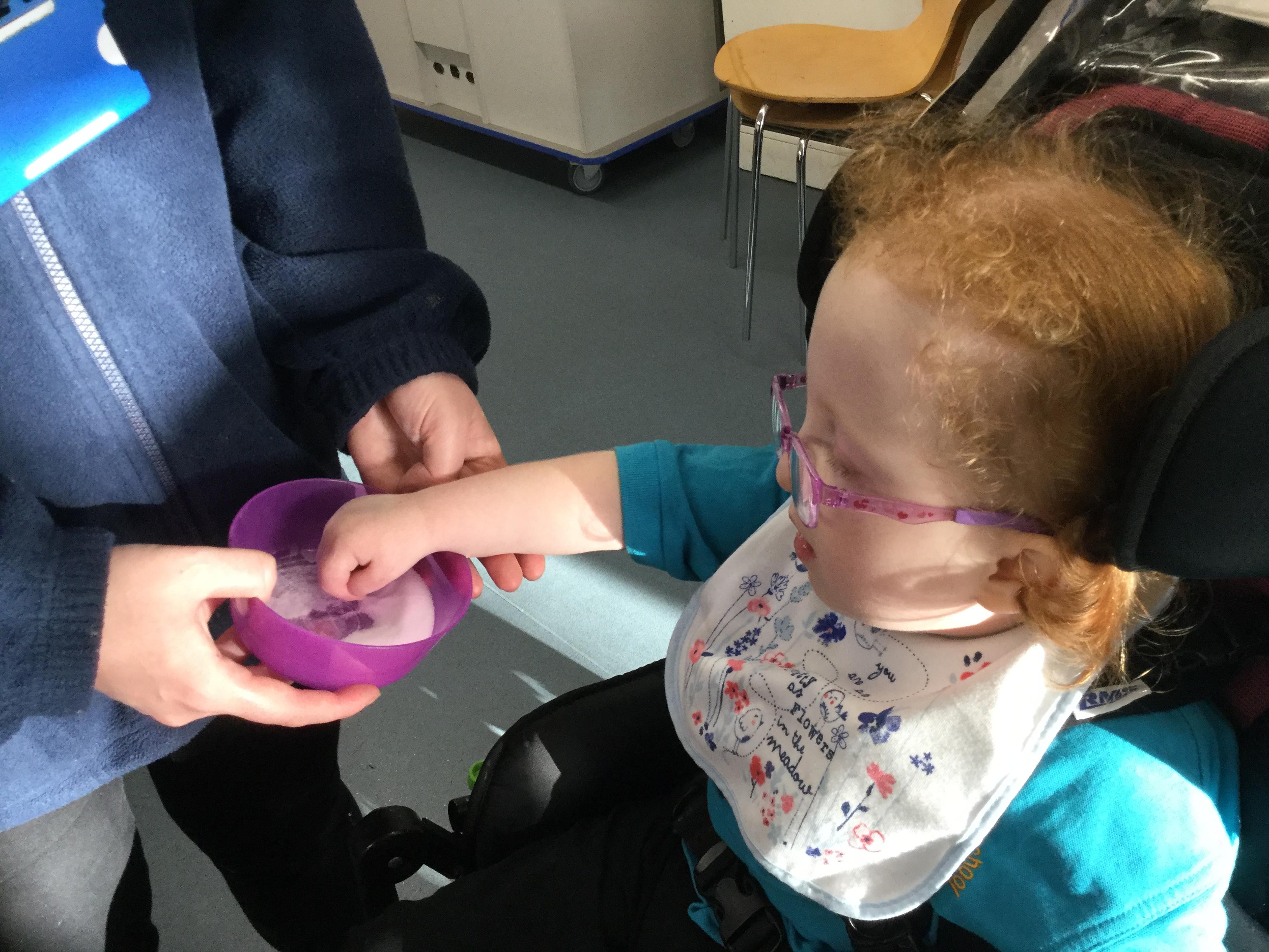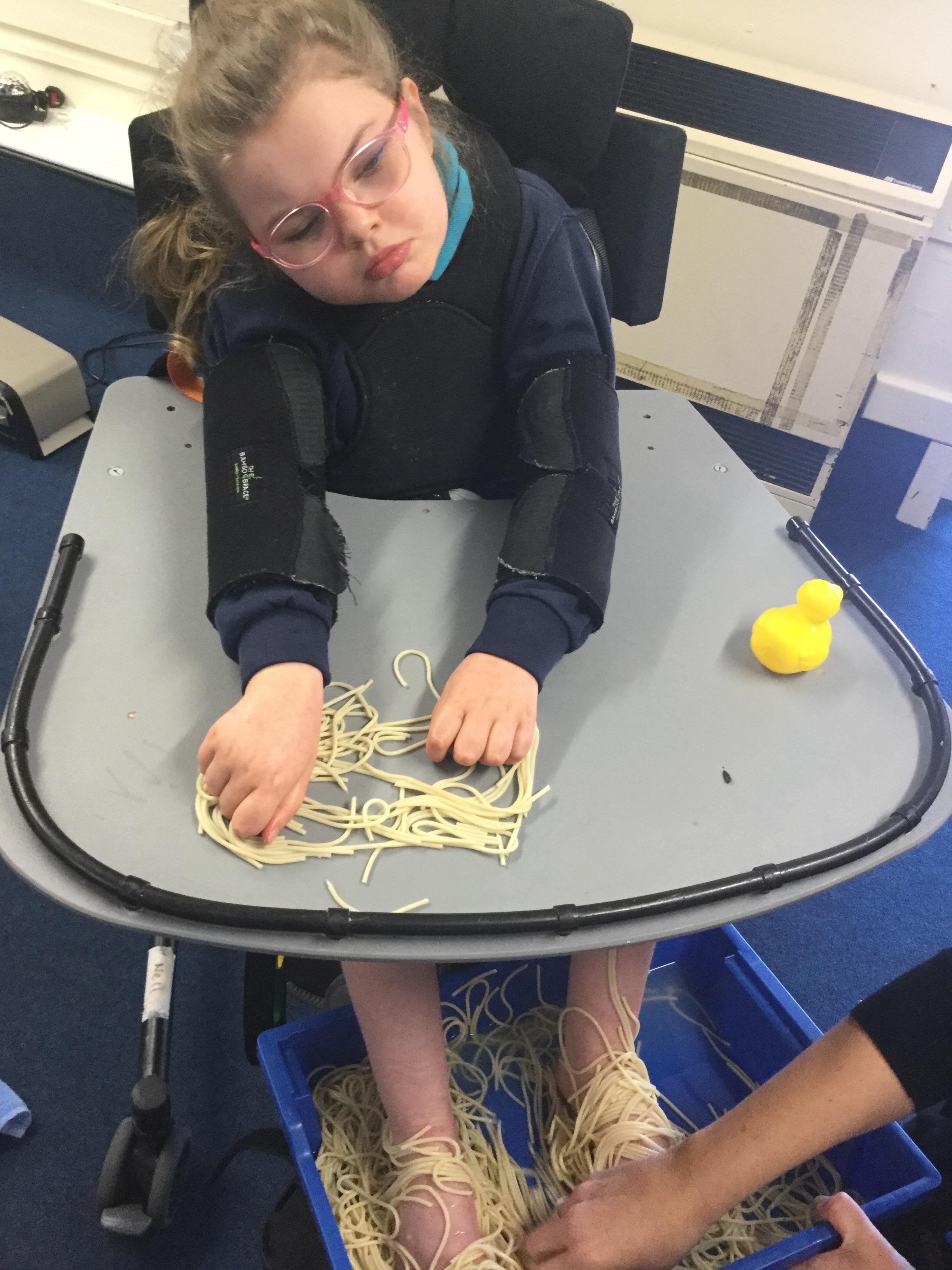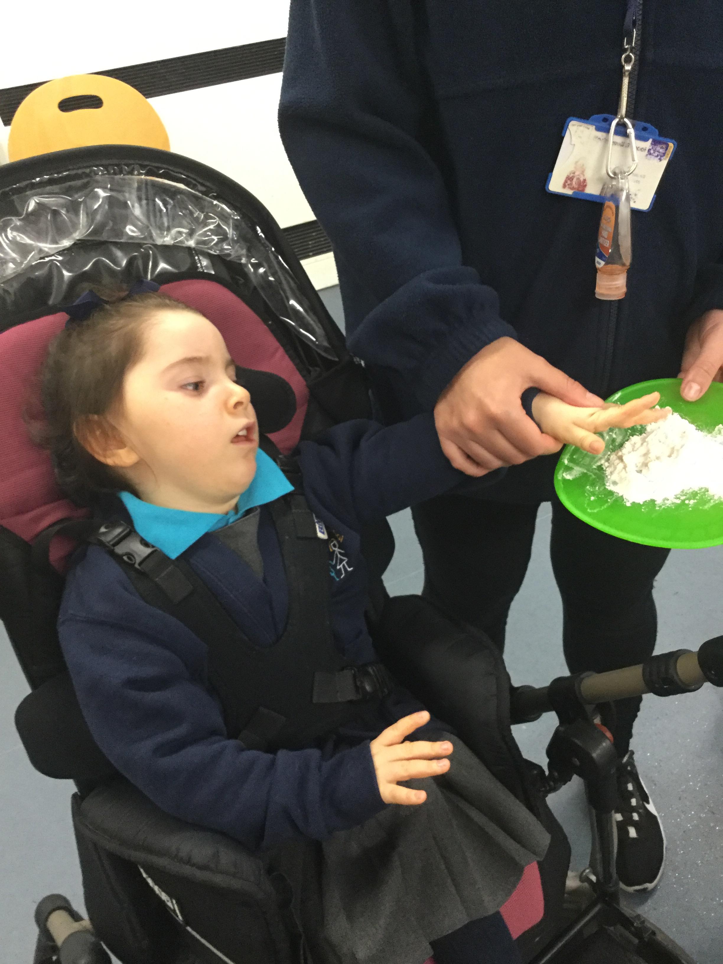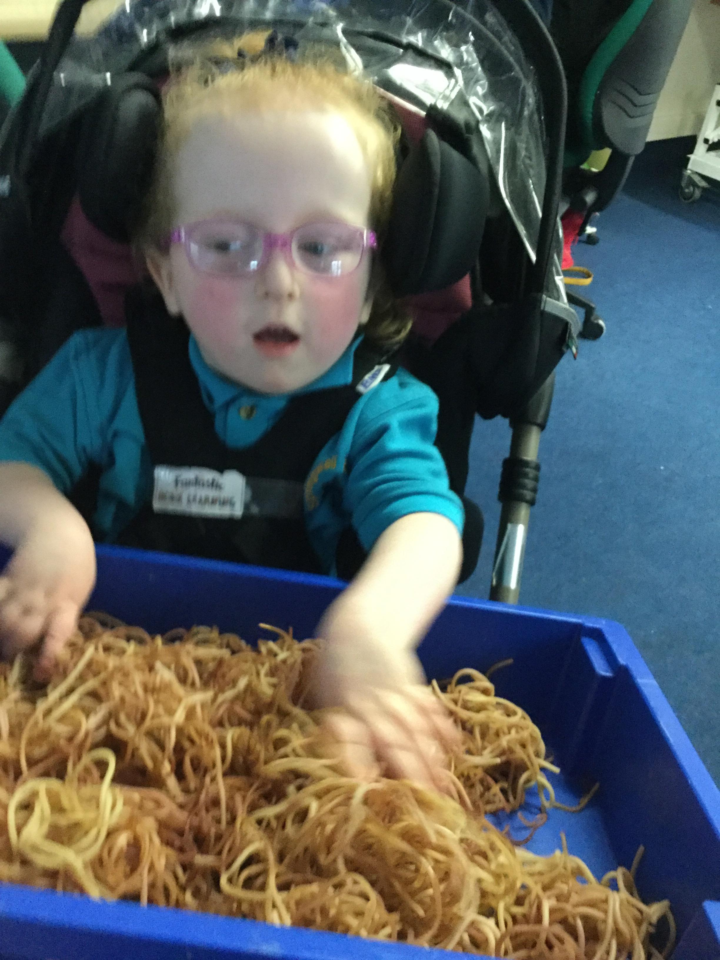 Sparkle curriculum is predominantly made up of sensory themed learning and therapeutic activities. More time will be spent on more beneficial, holistic and individualised activities e.g. positioning in specialised equipment, visual stimulation, hand and finger work (exploration – sensory play), therapies (hydrotherapy, rebound therapy etc), movement, relaxation, Tac Pac, story massage etc.