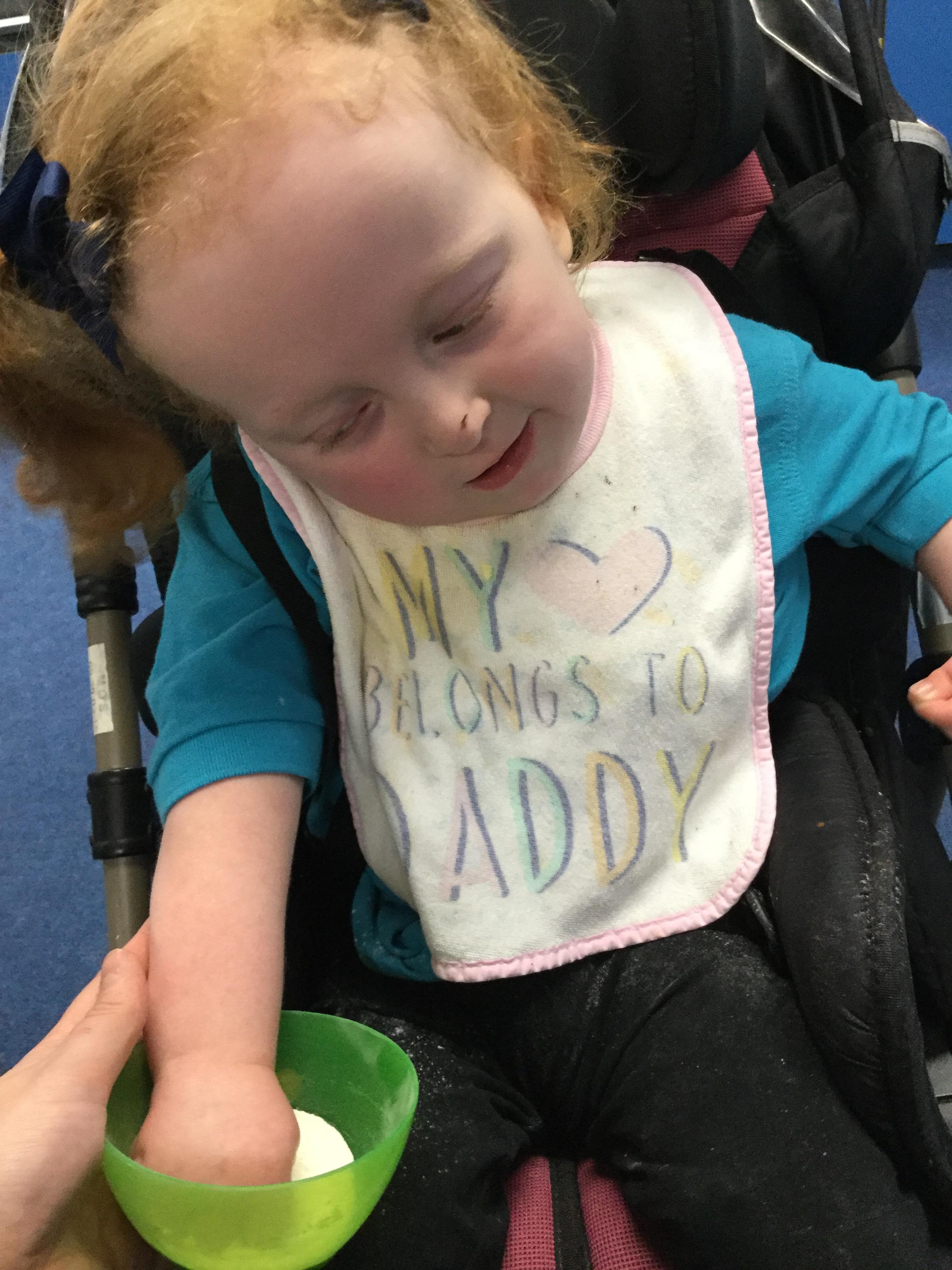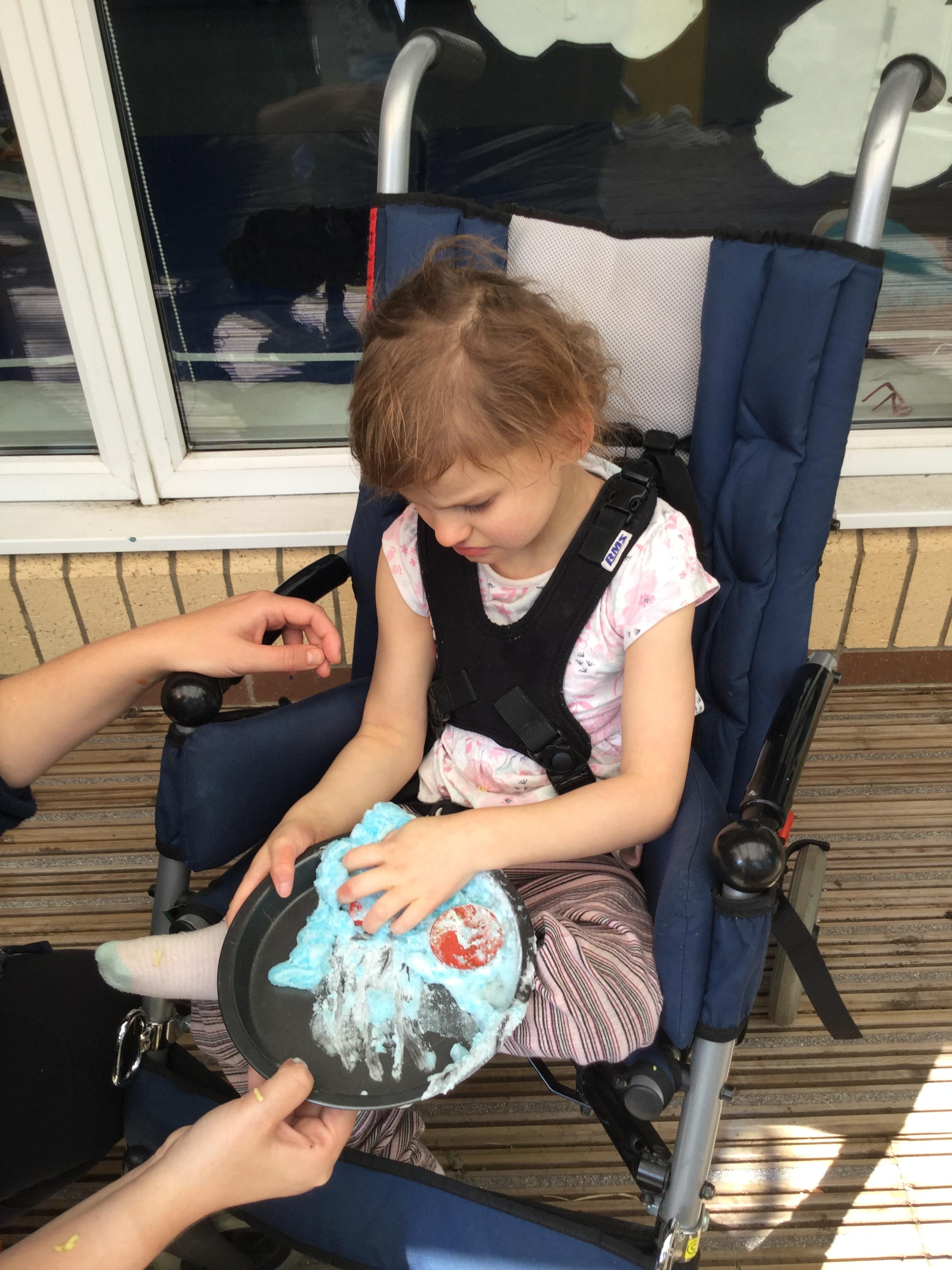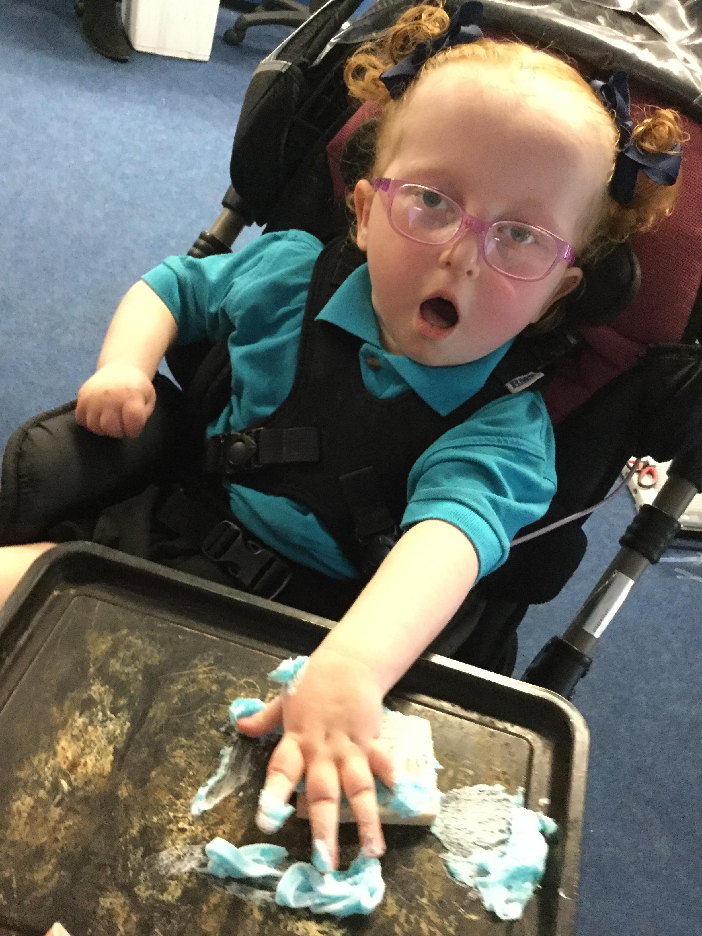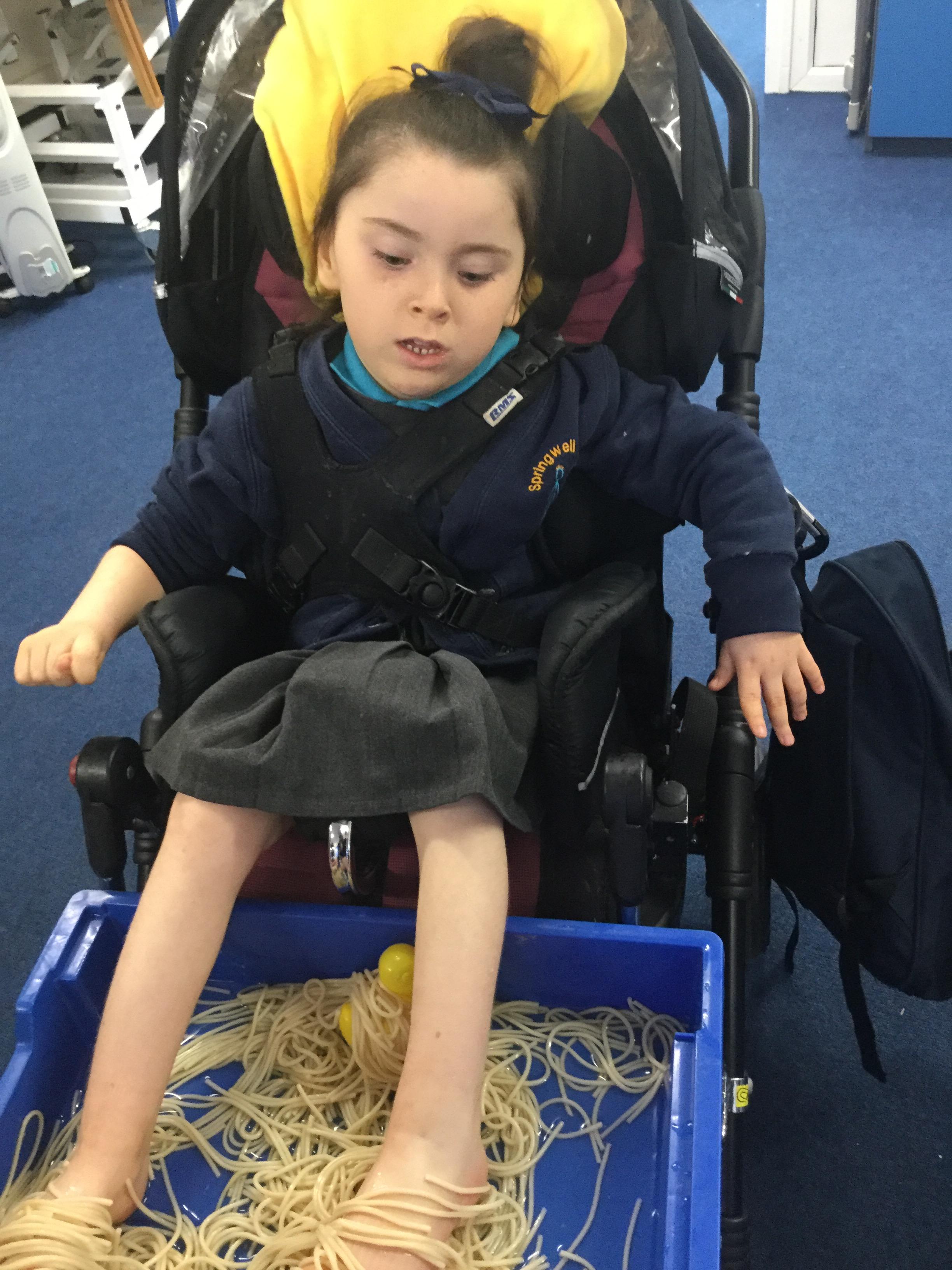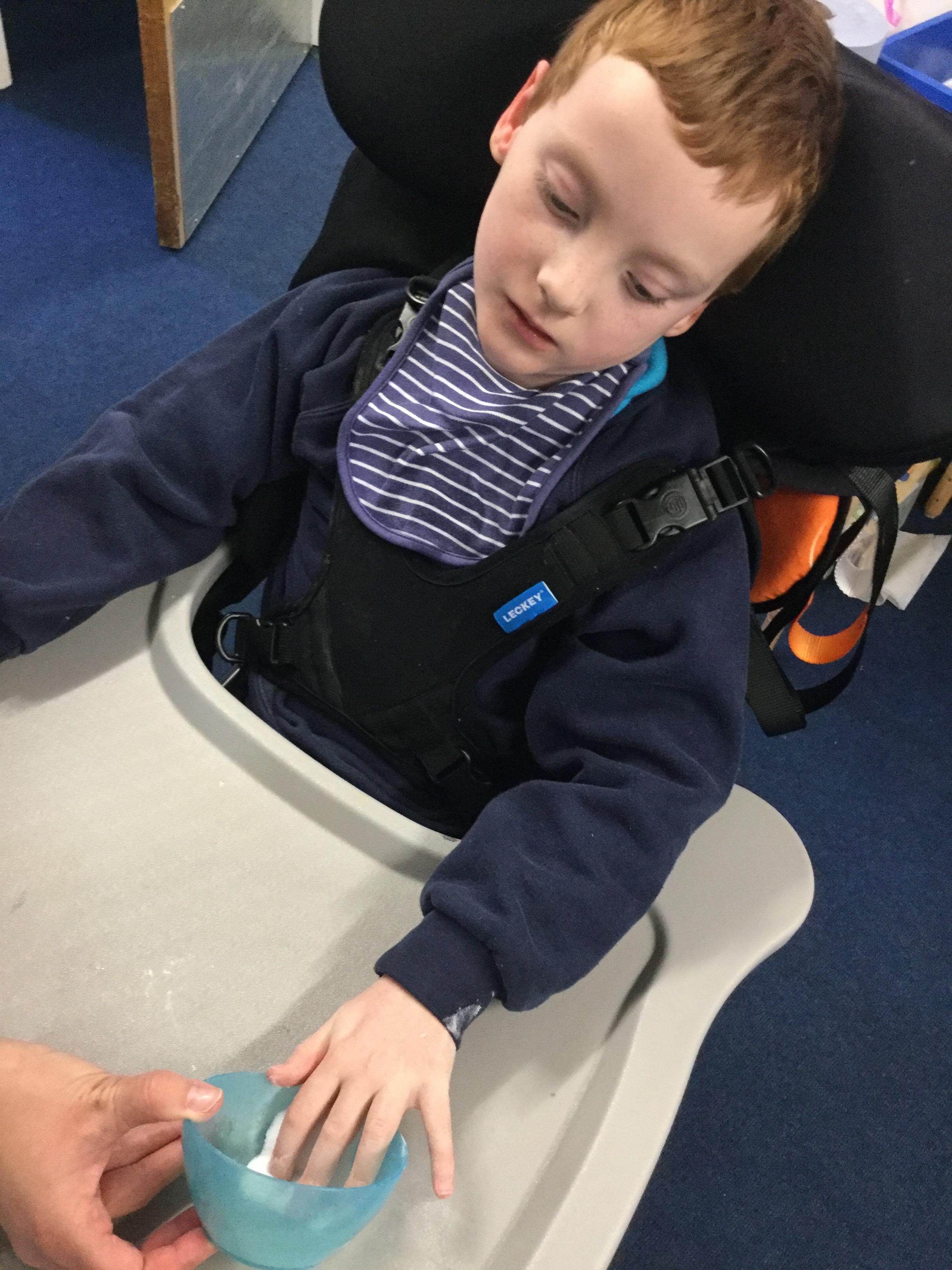 Sparkle curriculum is predominantly made up of sensory themed learning and therapeutic activities. More time will be spent on more beneficial, holistic and individualised activities e.g. positioning in specialised equipment, visual stimulation, hand and finger work (exploration – sensory play), therapies (hydrotherapy, rebound therapy etc), movement, relaxation, Tac Pac, story massage etc.