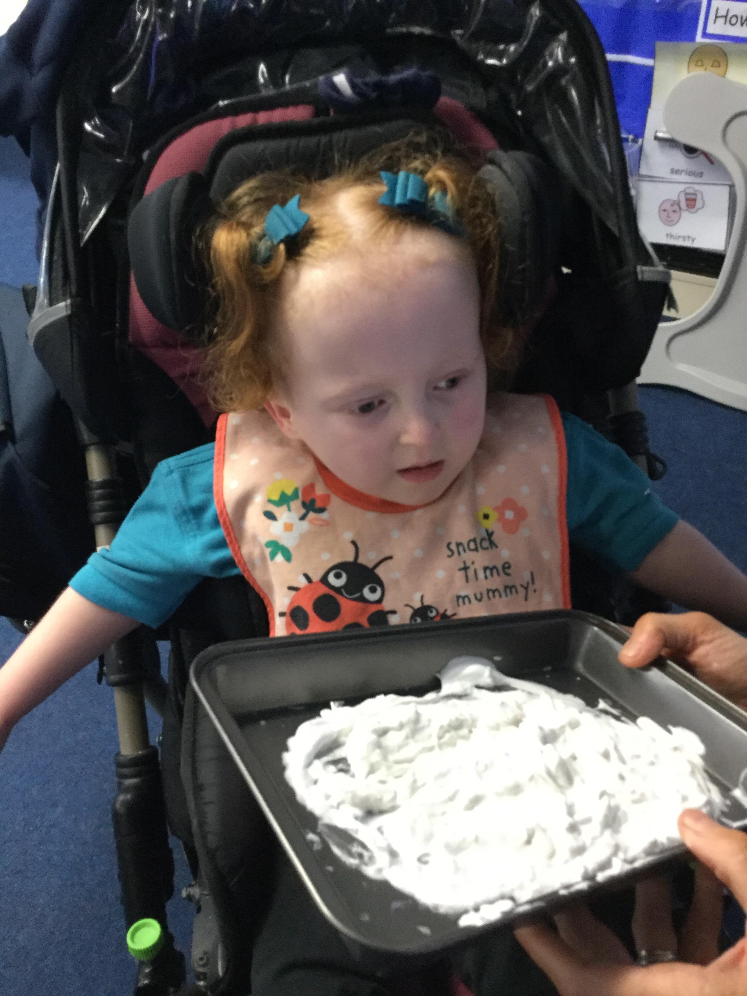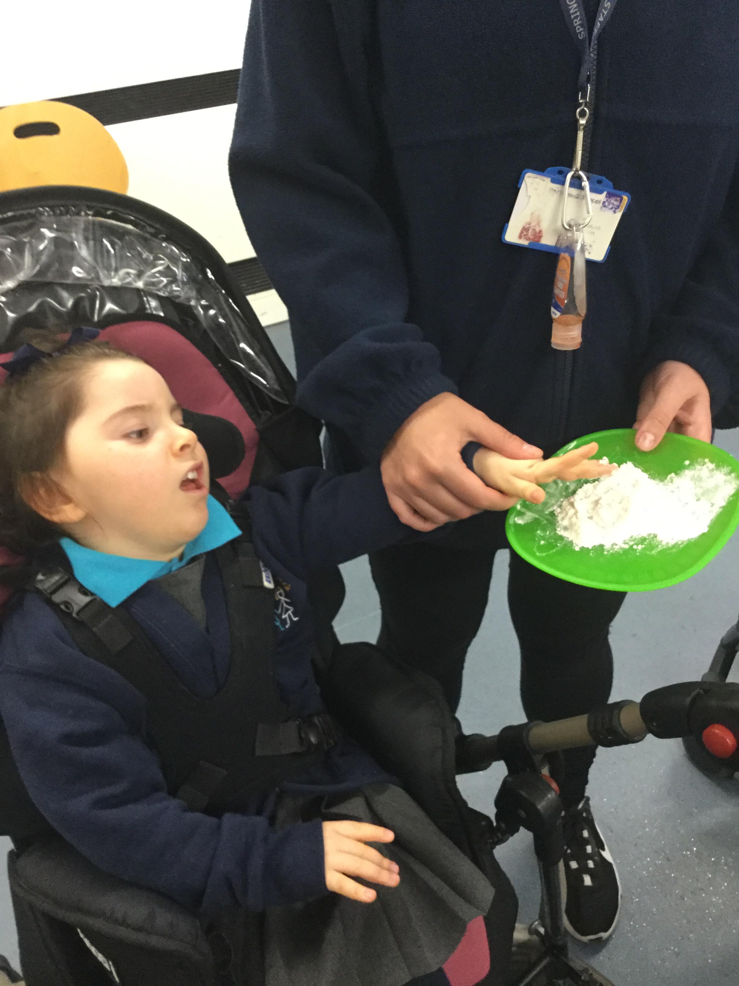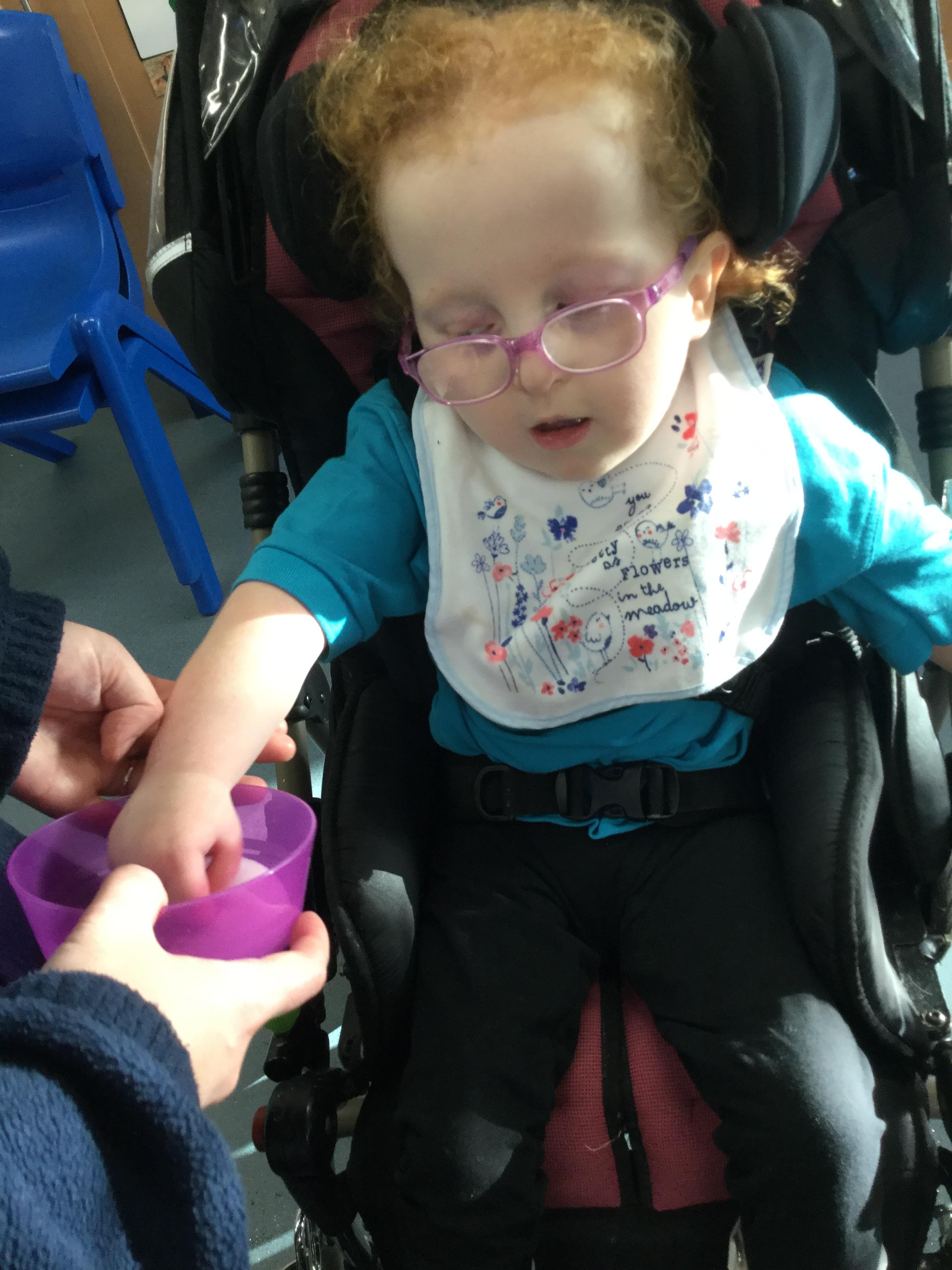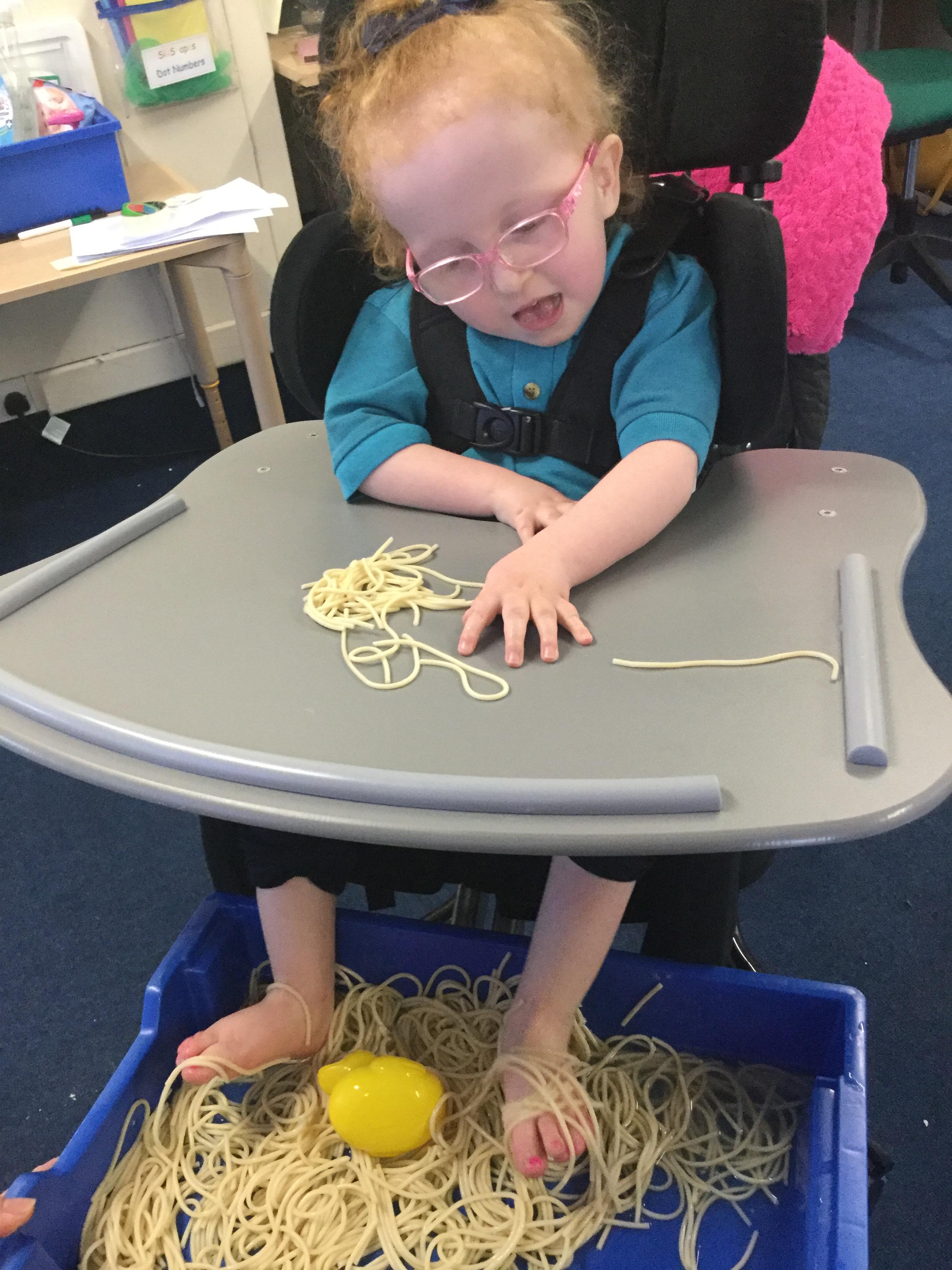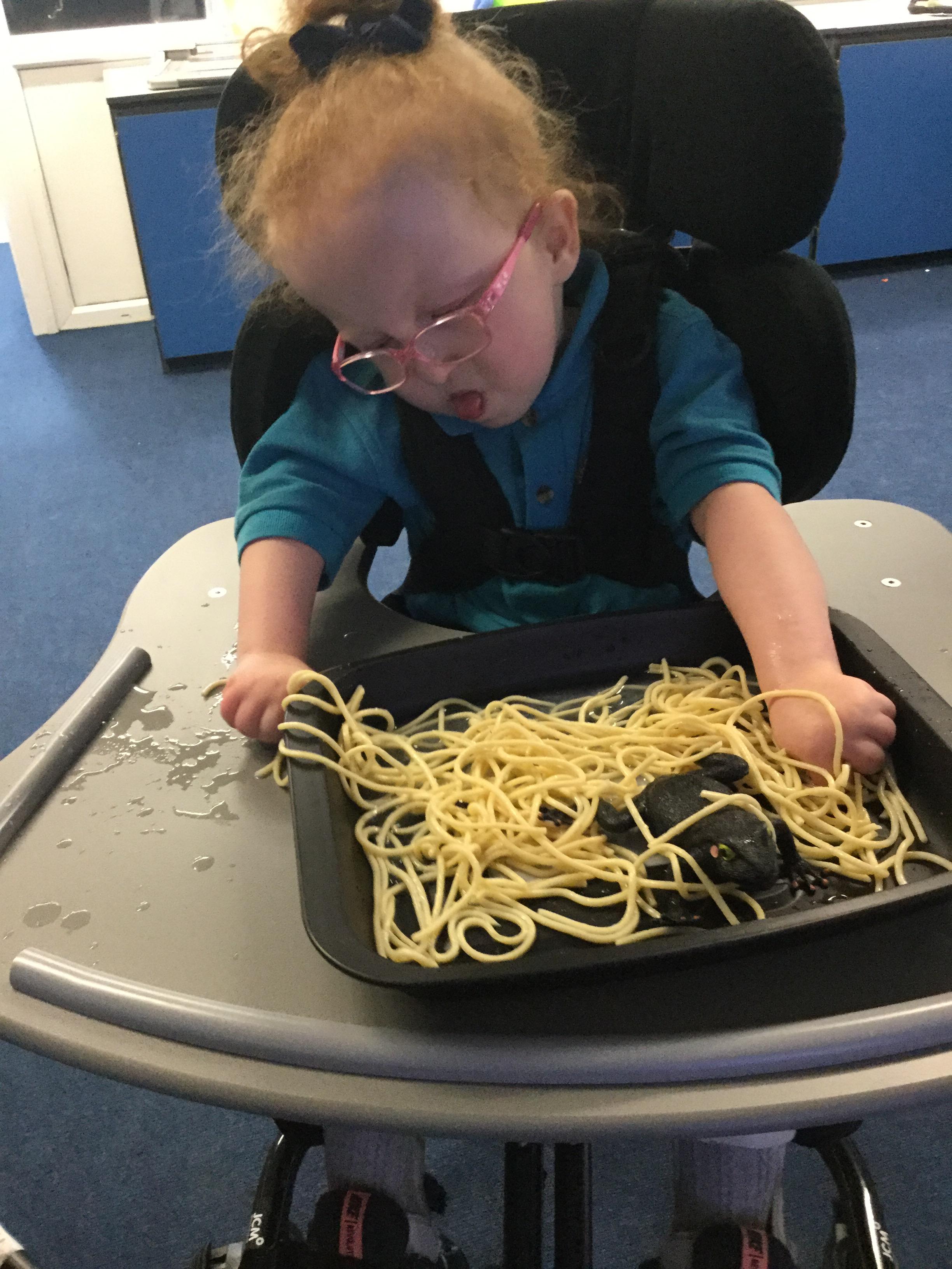 Sparkle curriculum is predominantly made up of sensory themed learning and therapeutic activities. More time will be spent on more beneficial, holistic and individualised activities e.g. positioning in specialised equipment, visual stimulation, hand and finger work (exploration – sensory play), therapies (hydrotherapy, rebound therapy etc), movement, relaxation, Tac Pac, story massage etc.
