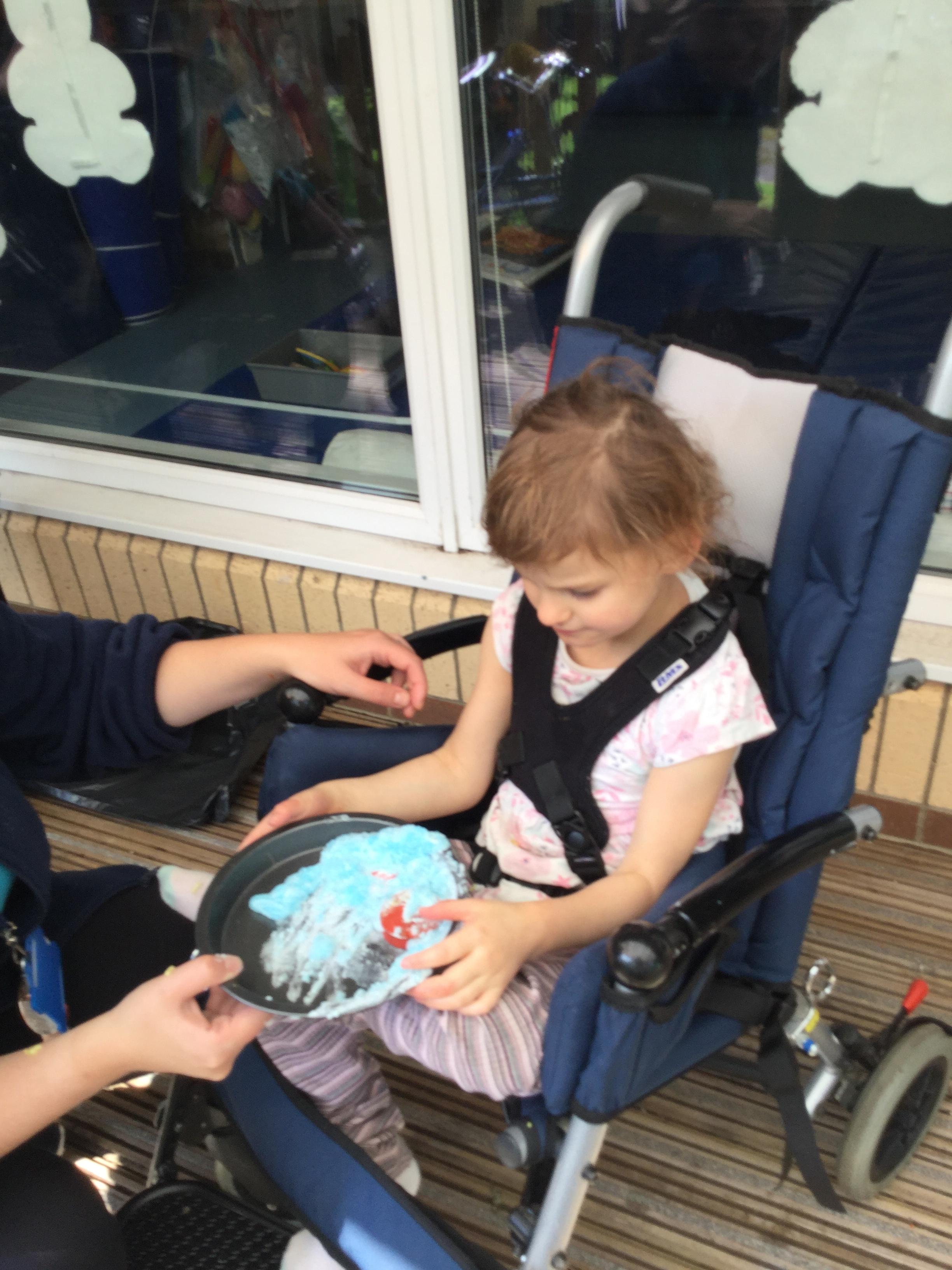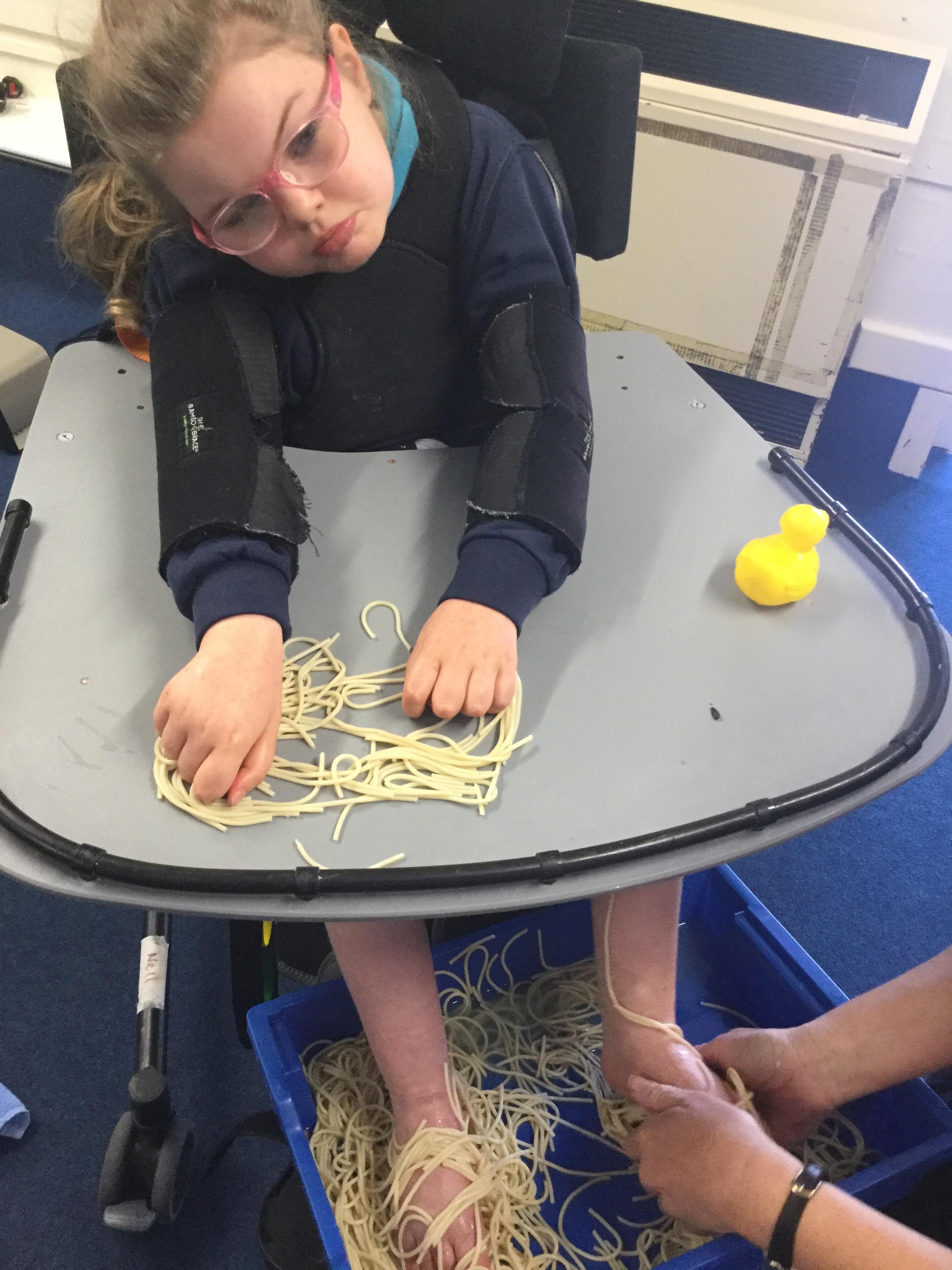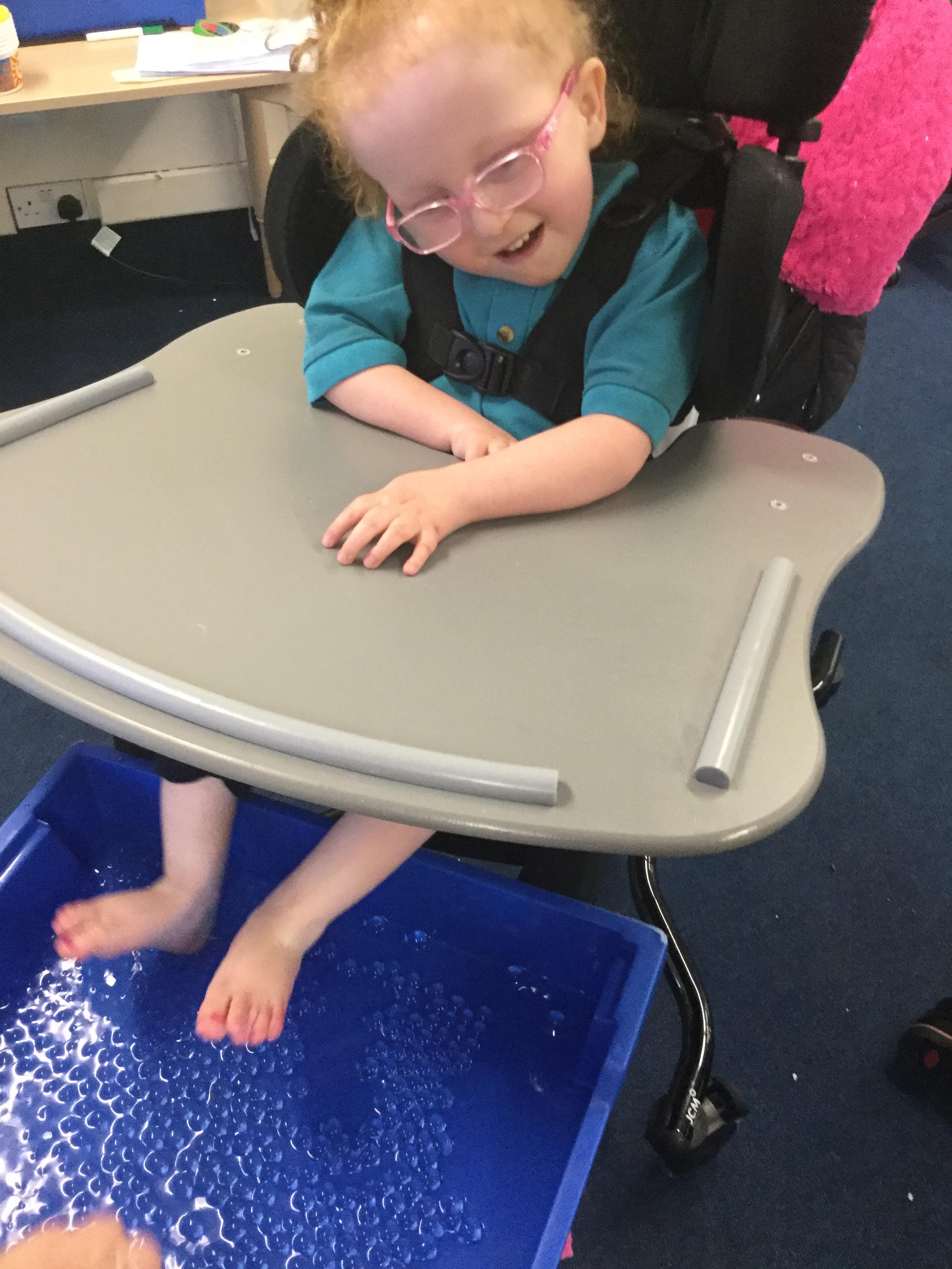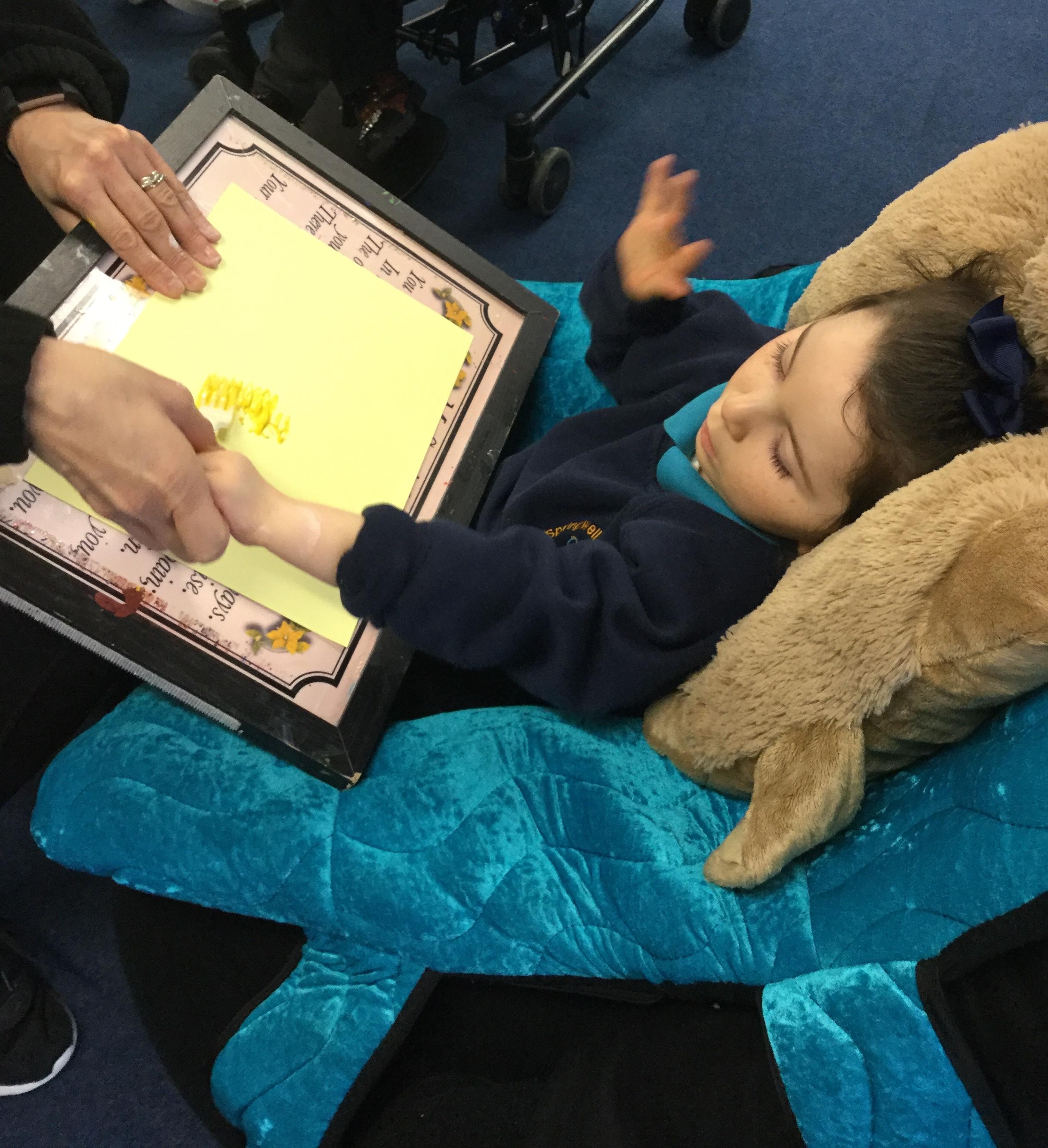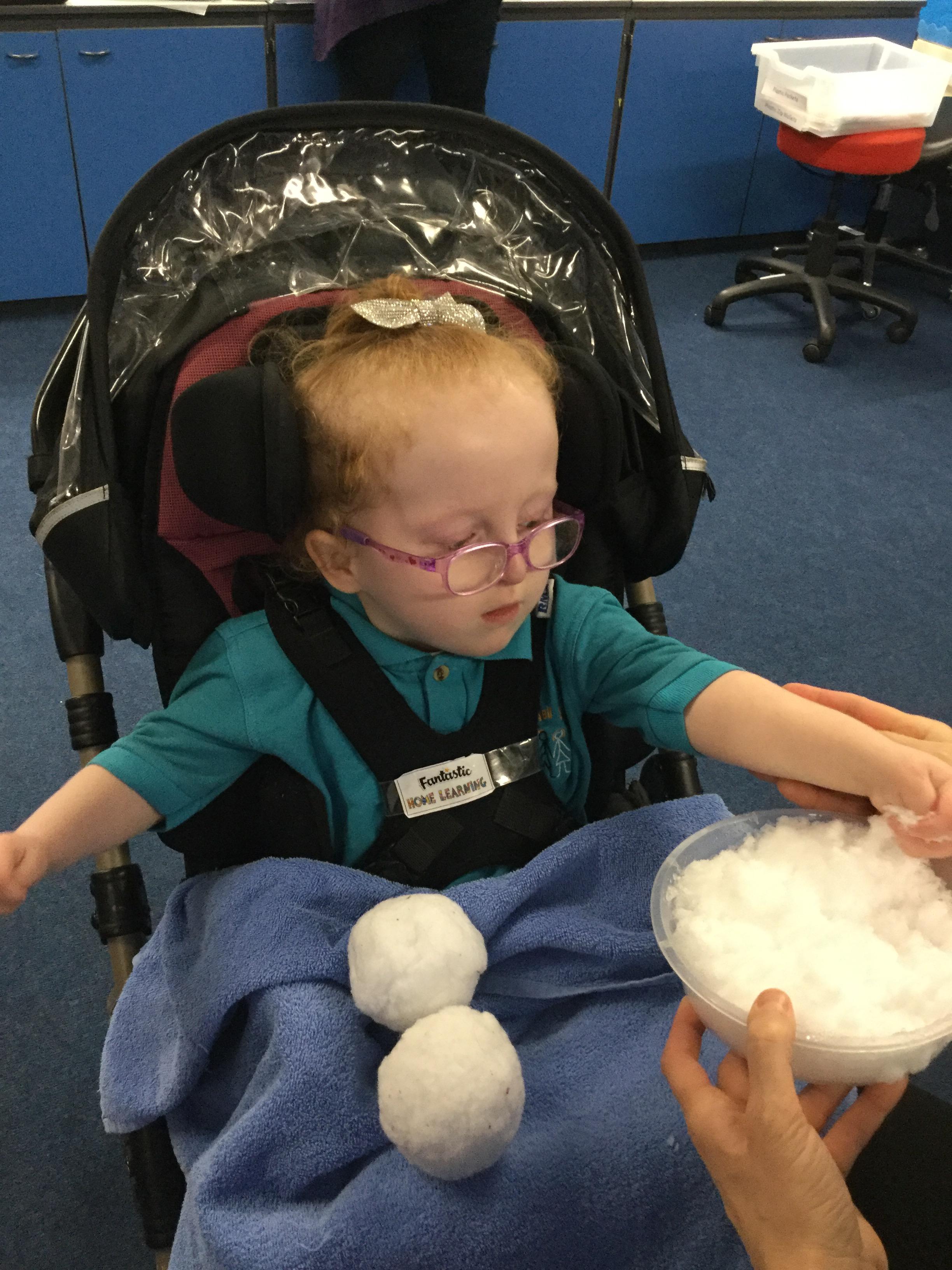 Sparkle curriculum is predominantly made up of sensory themed learning and therapeutic activities. More time will be spent on more beneficial, holistic and individualised activities e.g. positioning in specialised equipment, visual stimulation, hand and finger work (exploration – sensory play), therapies (hydrotherapy, rebound therapy etc), movement, relaxation, Tac Pac, story massage etc.