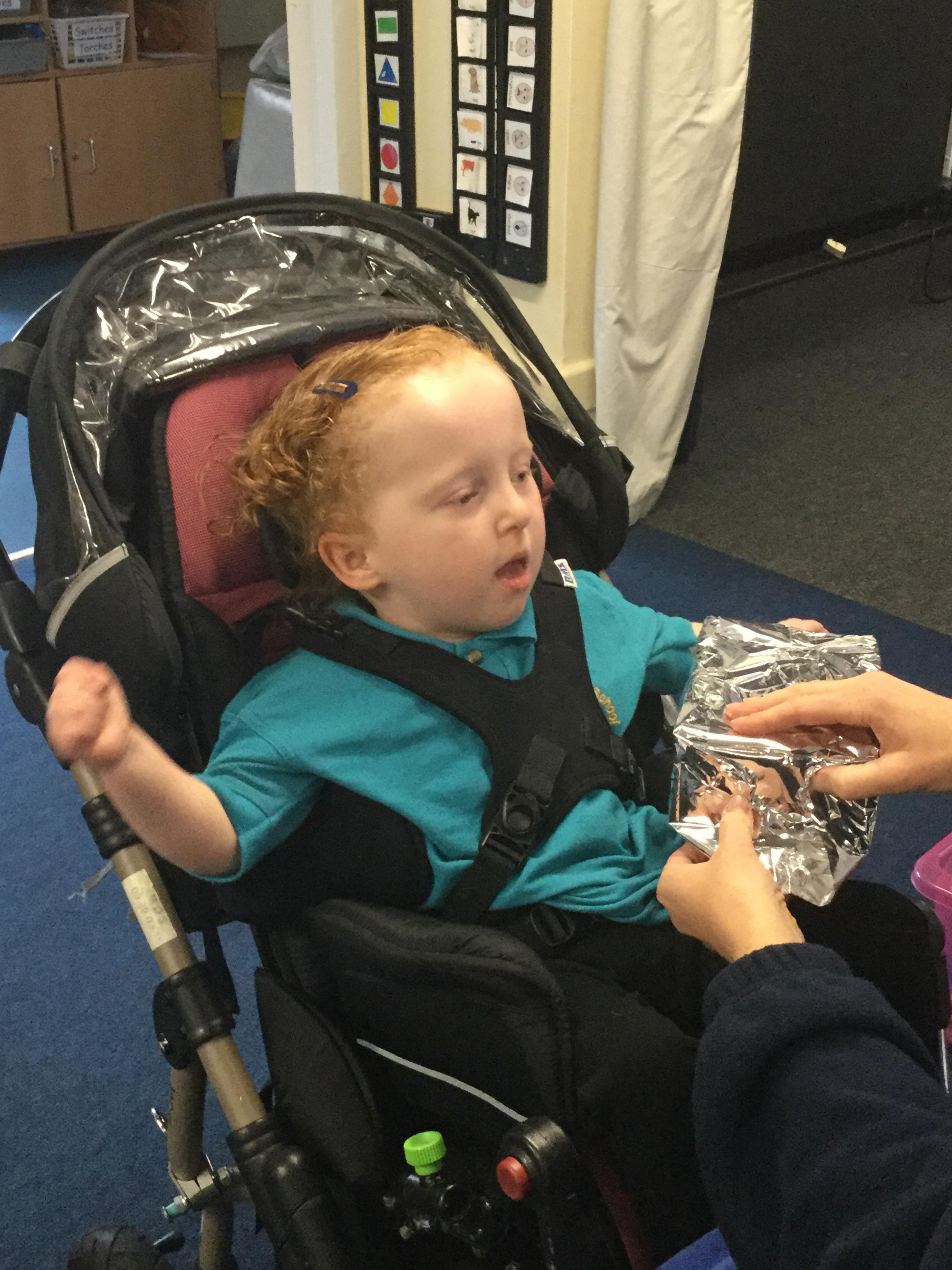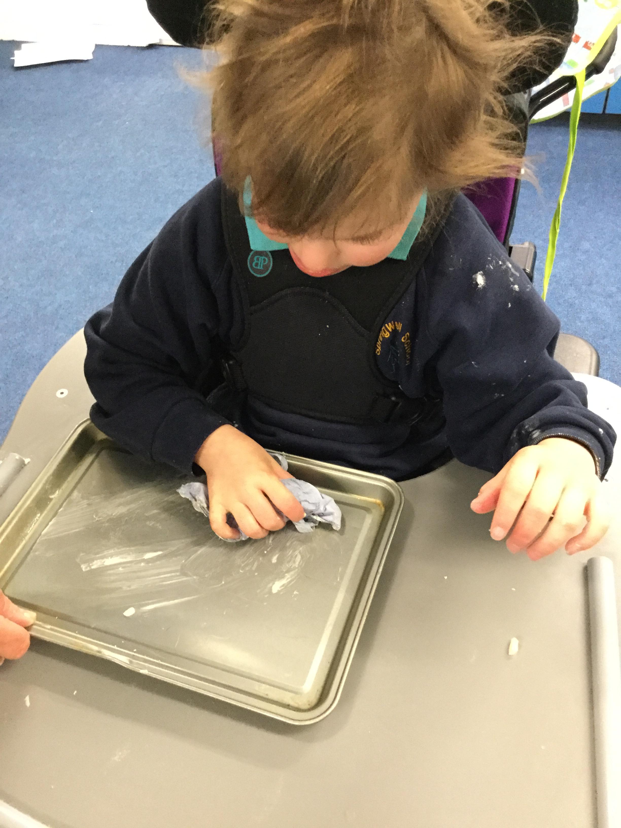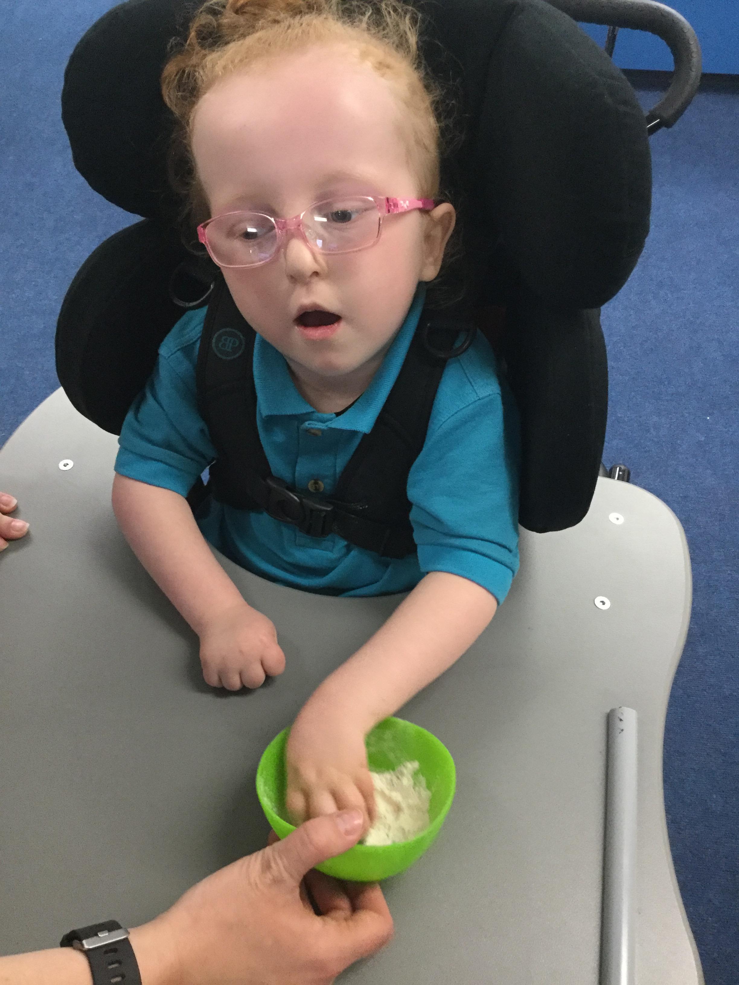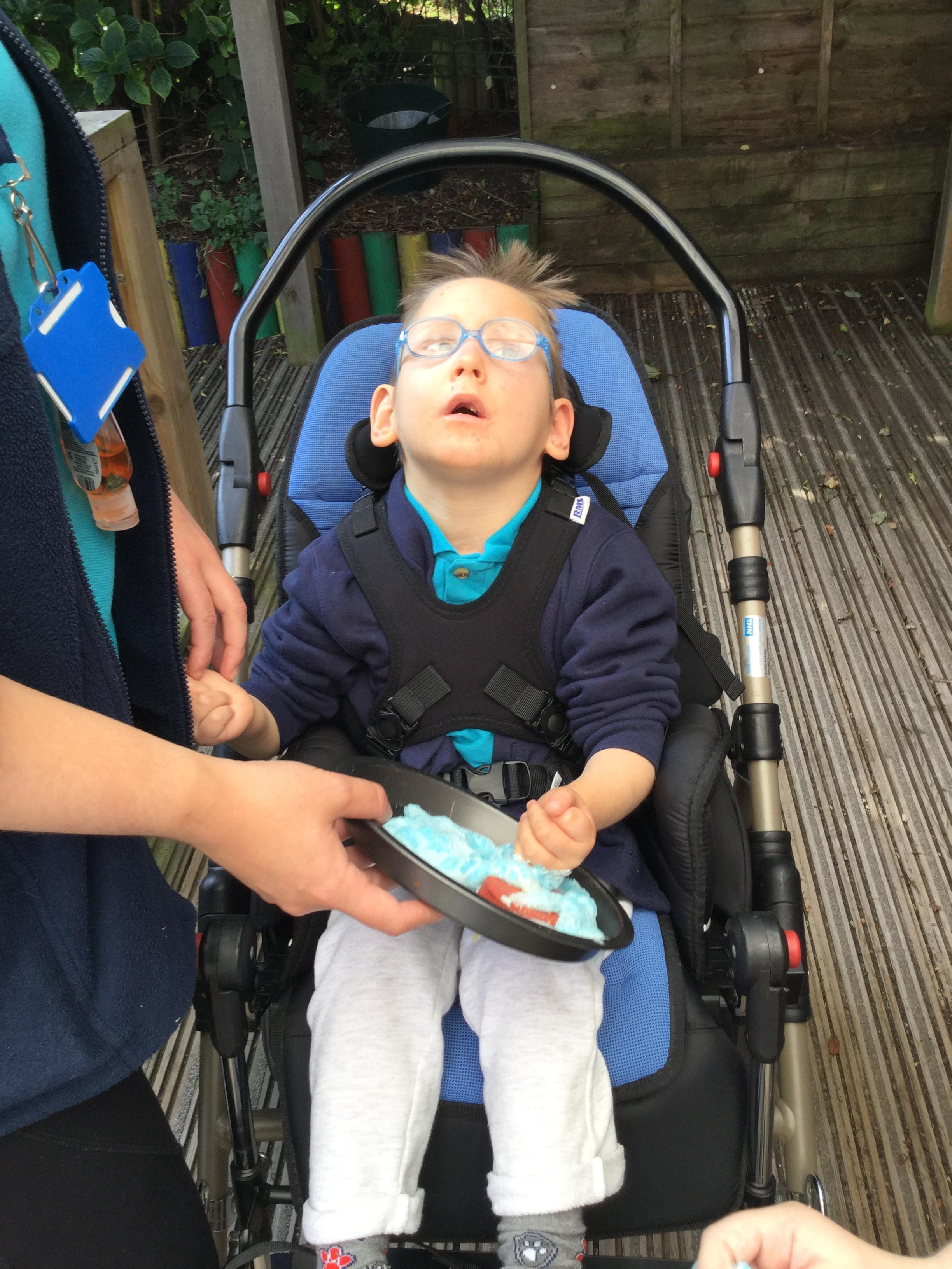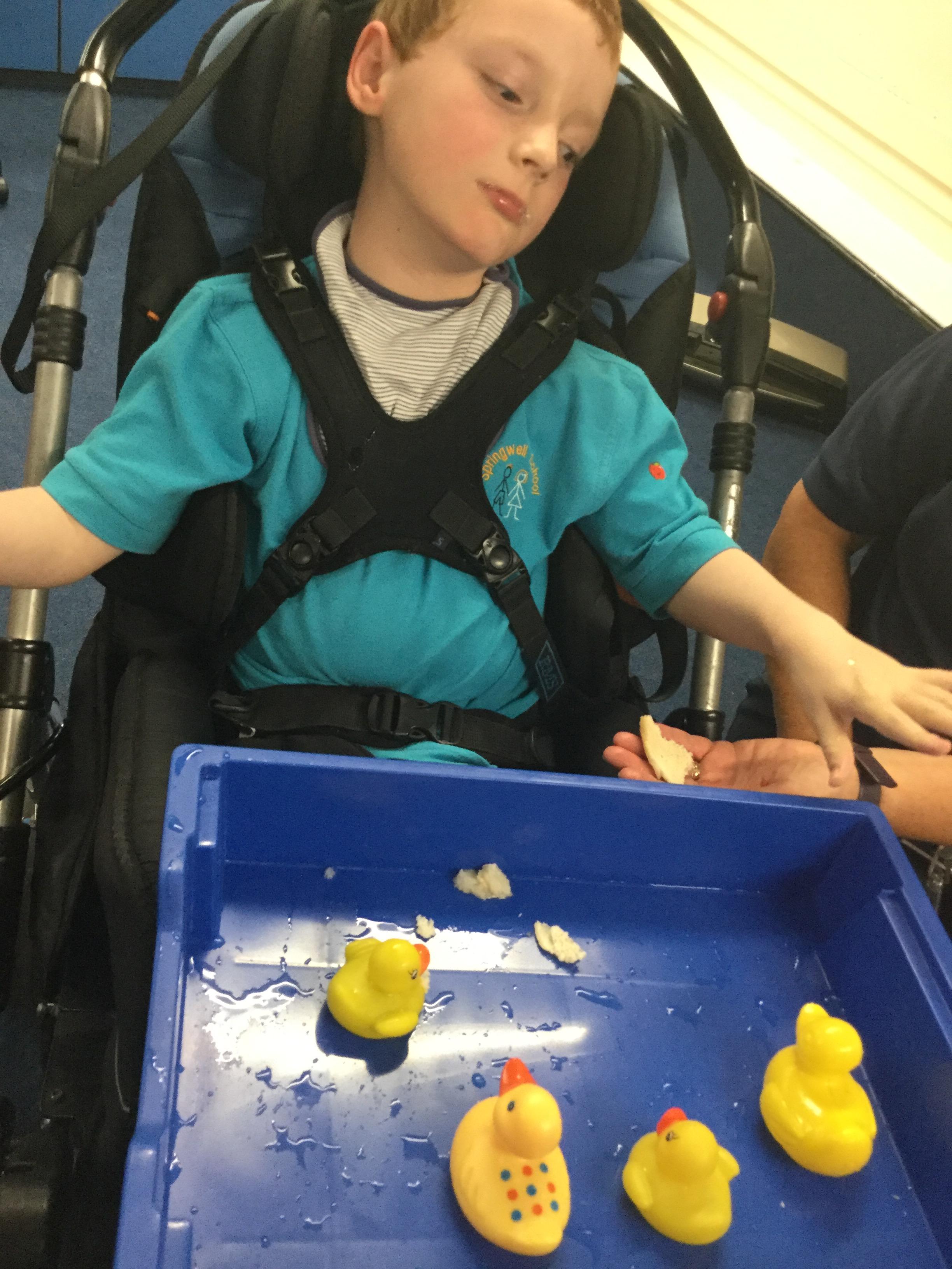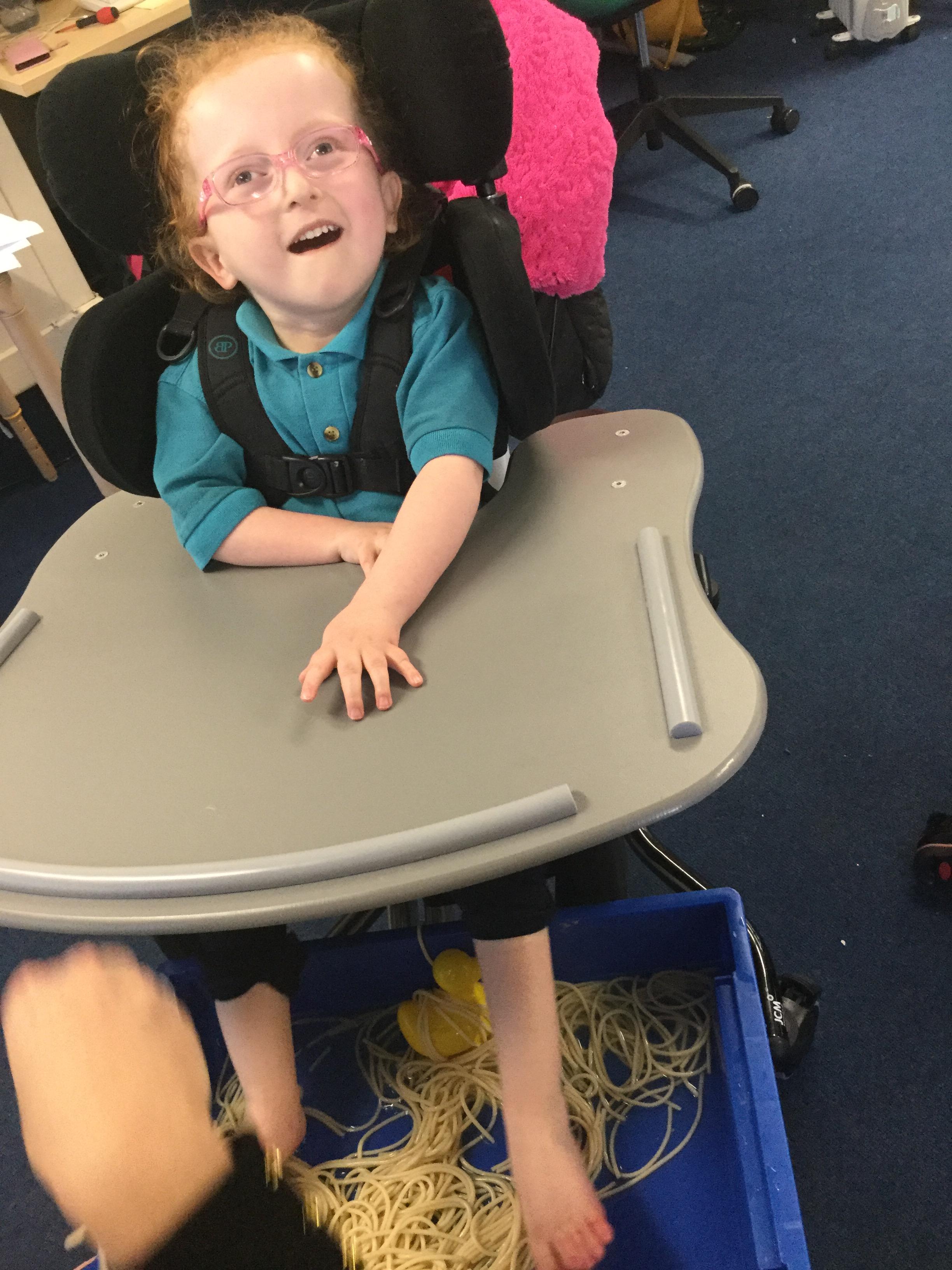 Sparkle curriculum is predominantly made up of sensory themed learning and therapeutic activities. More time will be spent on more beneficial, holistic and individualised activities e.g. positioning in specialised equipment, visual stimulation, hand and finger work (exploration – sensory play), therapies (hydrotherapy, rebound therapy etc), movement, relaxation, Tac Pac, story massage etc.