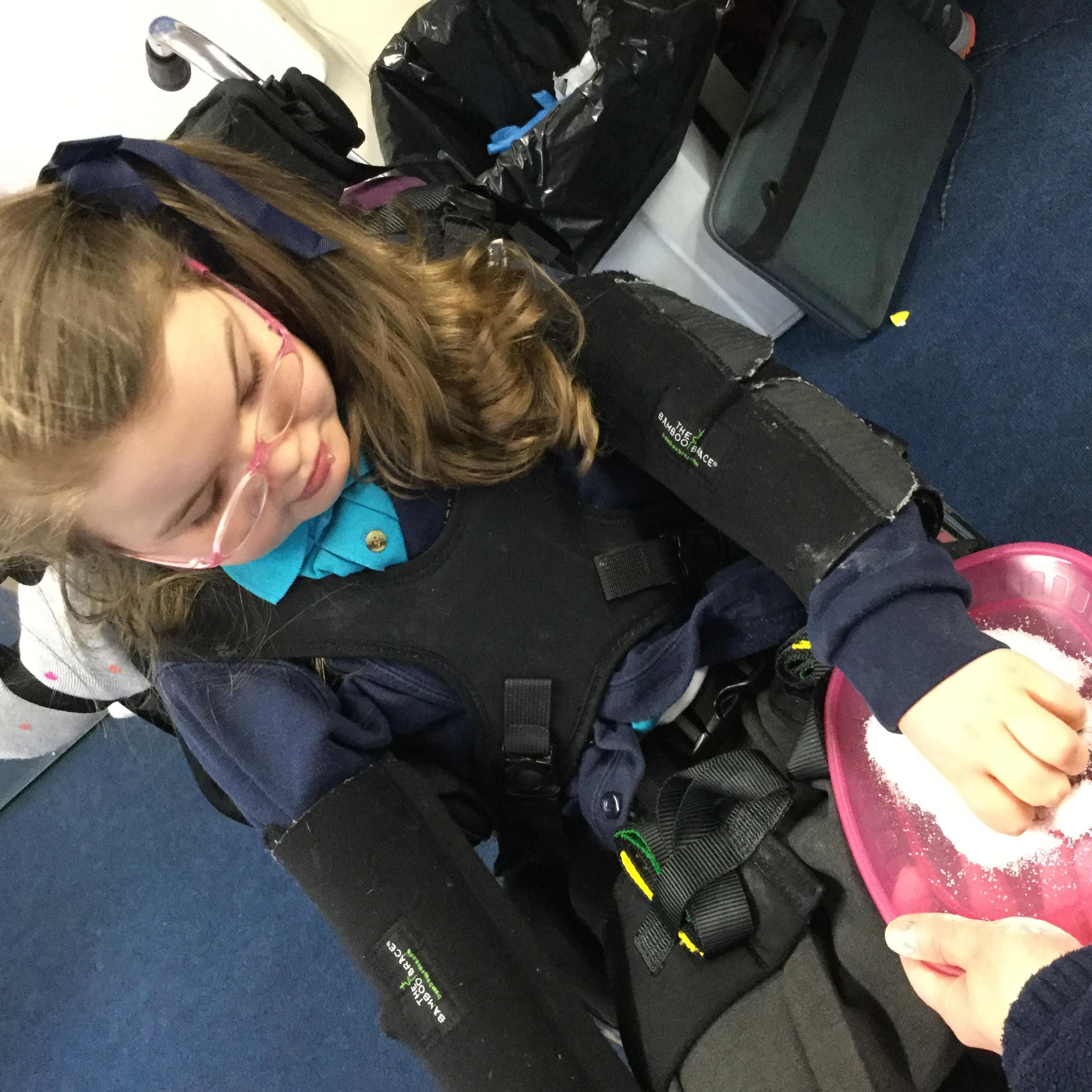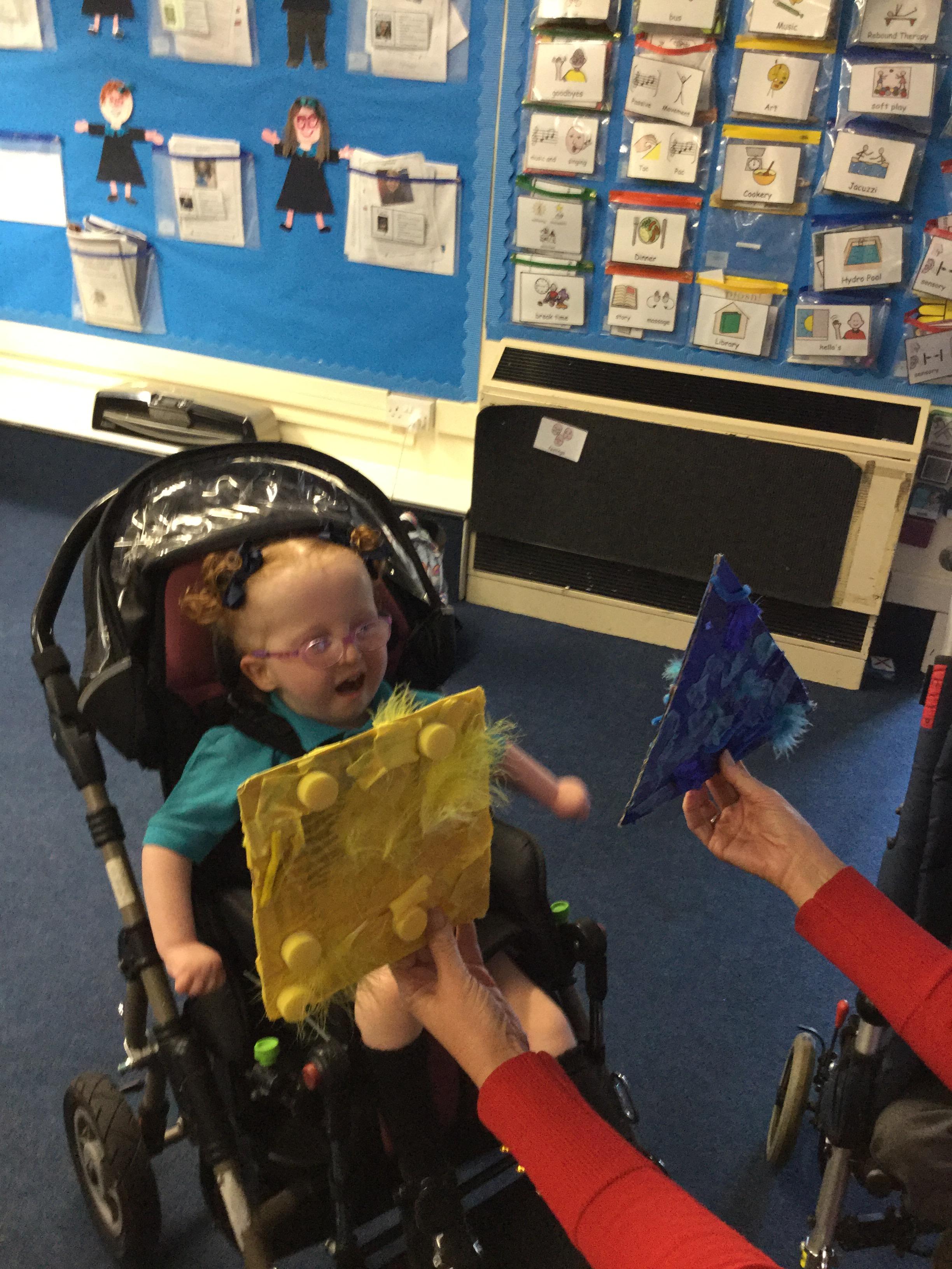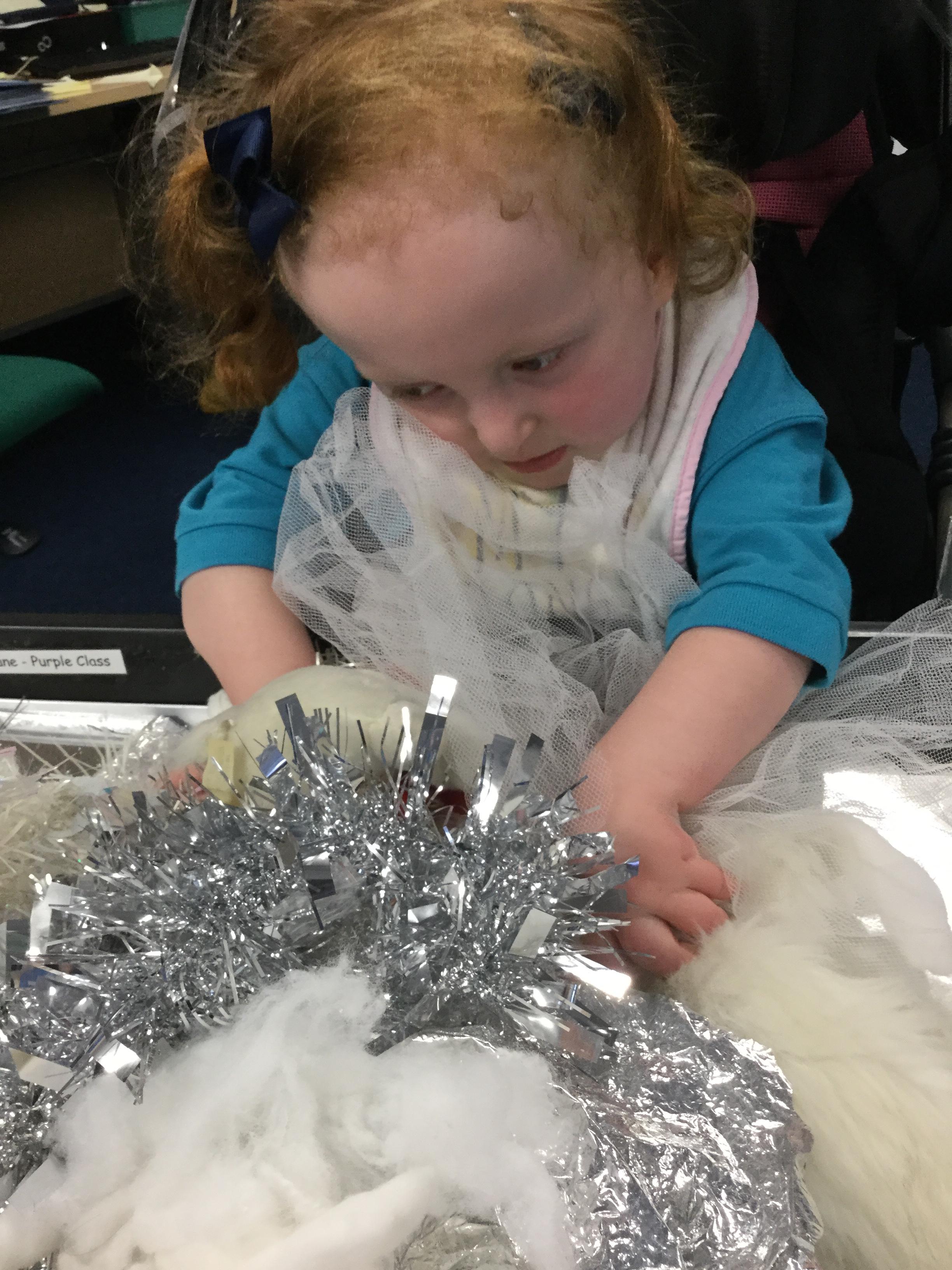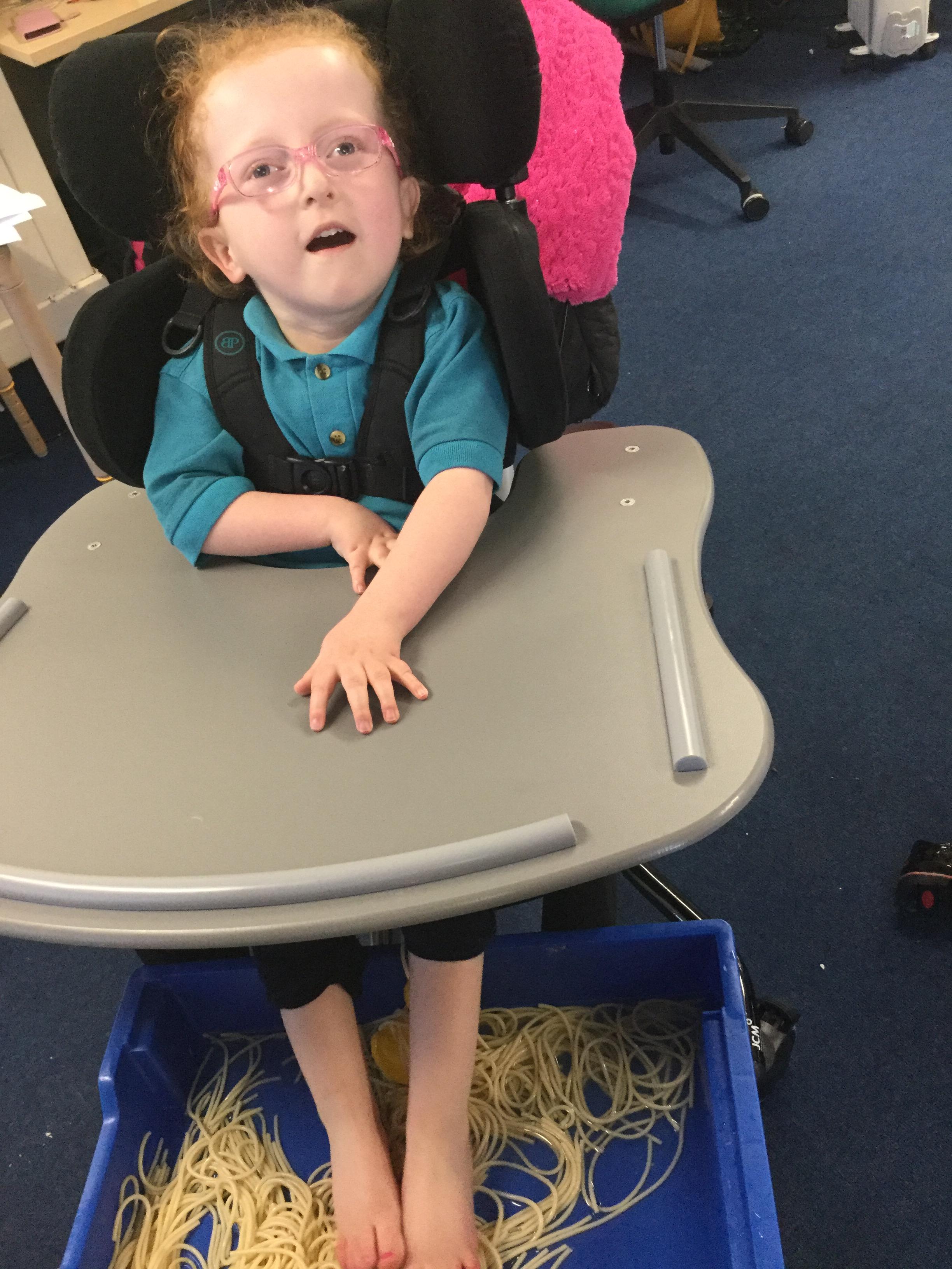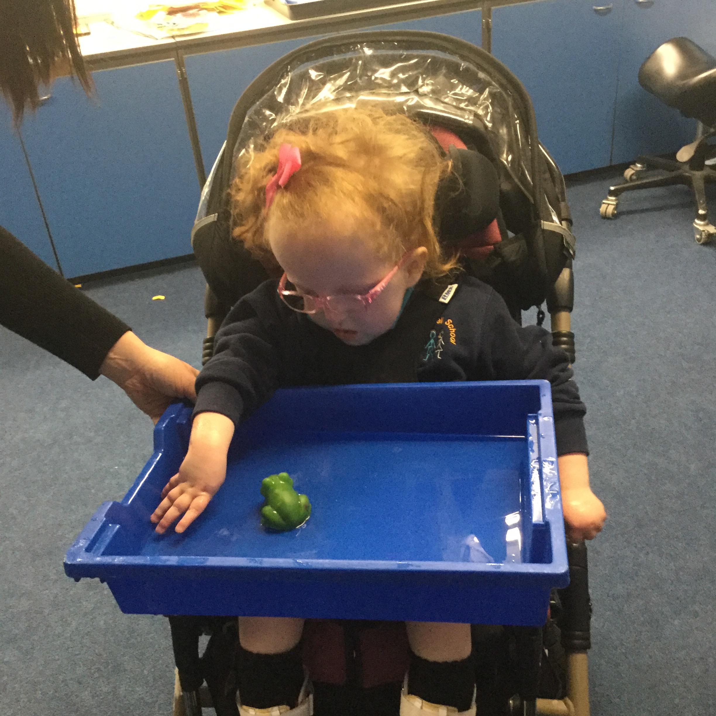 Sparkle curriculum is predominantly made up of sensory themed learning and therapeutic activities. More time will be spent on more beneficial, holistic and individualised activities e.g. positioning in specialised equipment, visual stimulation, hand and finger work (exploration – sensory play), therapies (hydrotherapy, rebound therapy etc), movement, relaxation, Tac Pac, story massage etc.