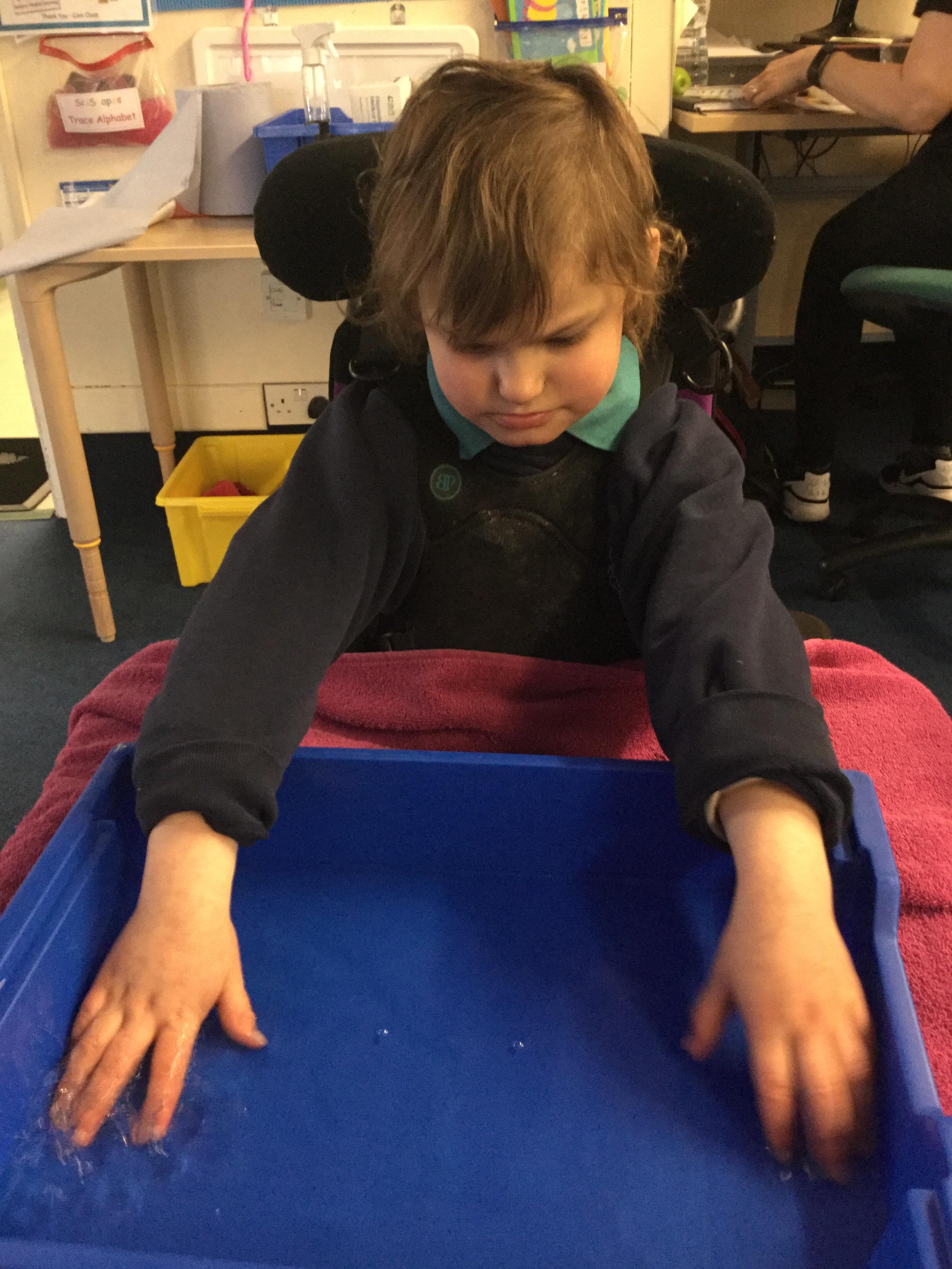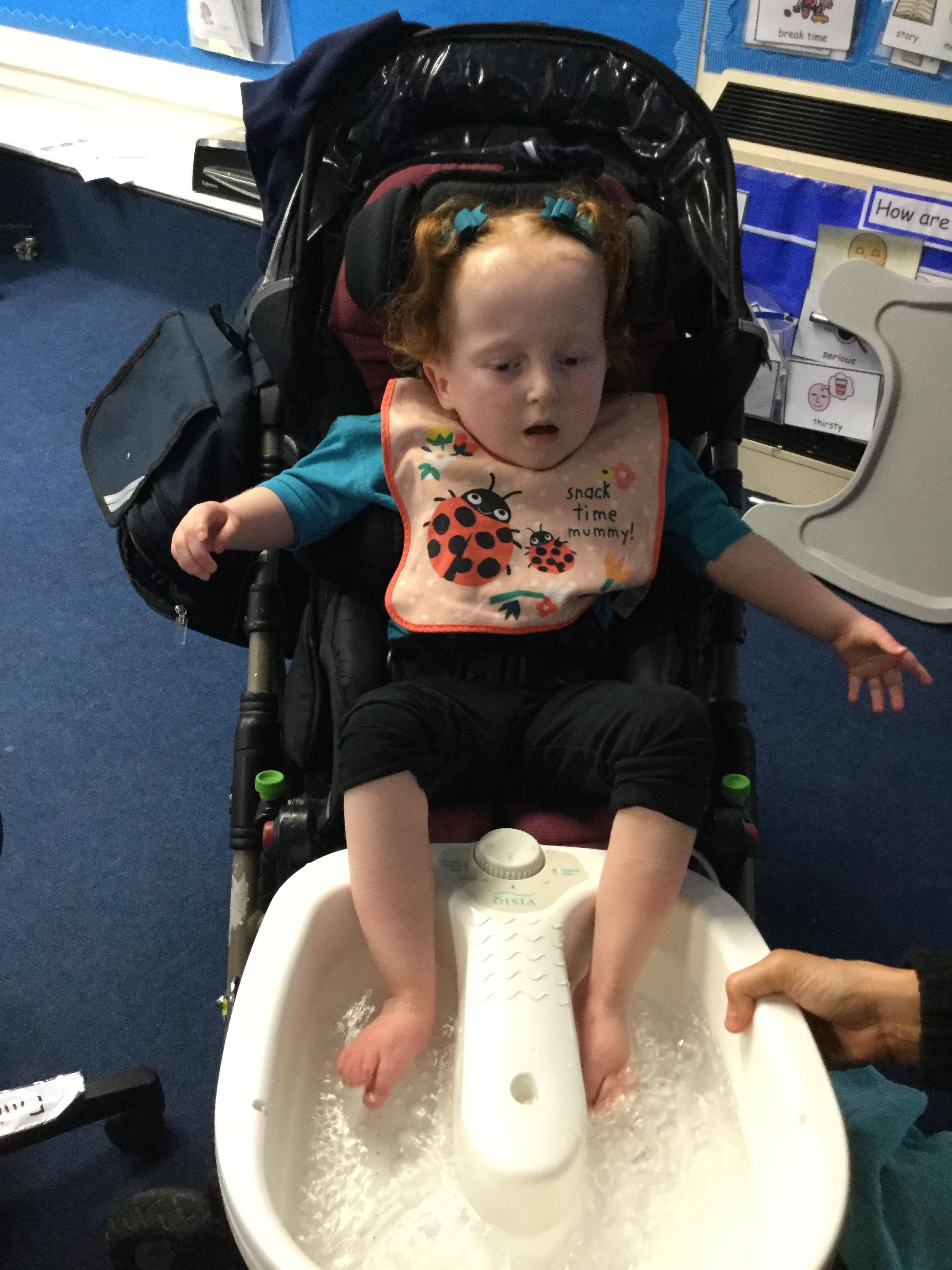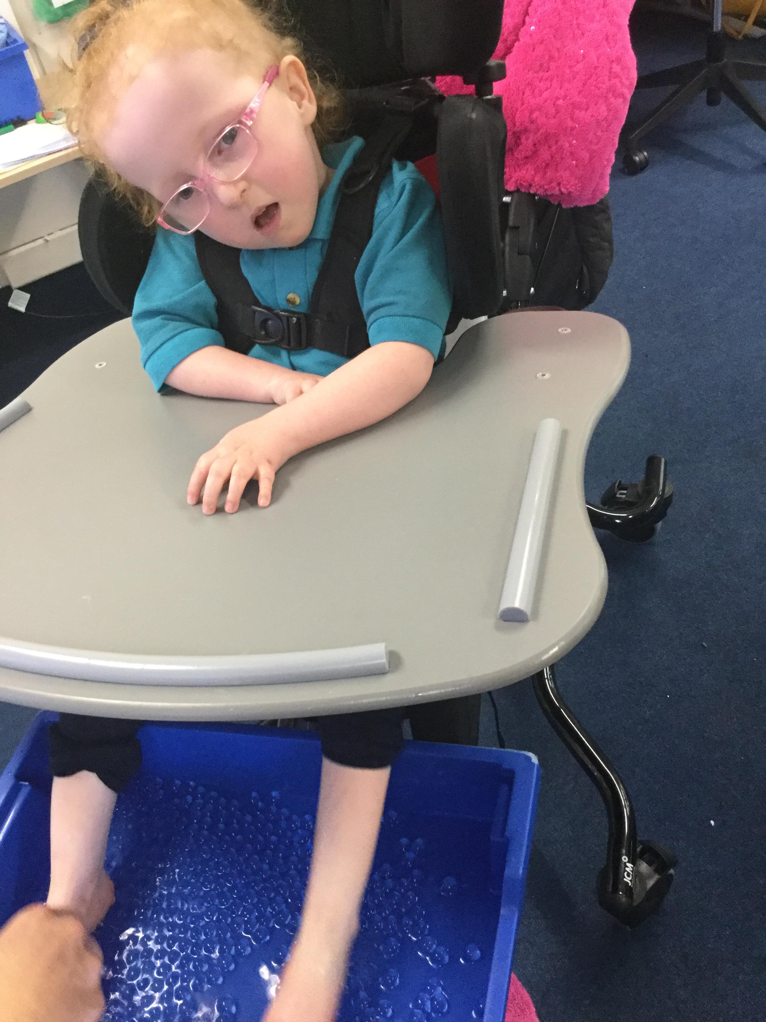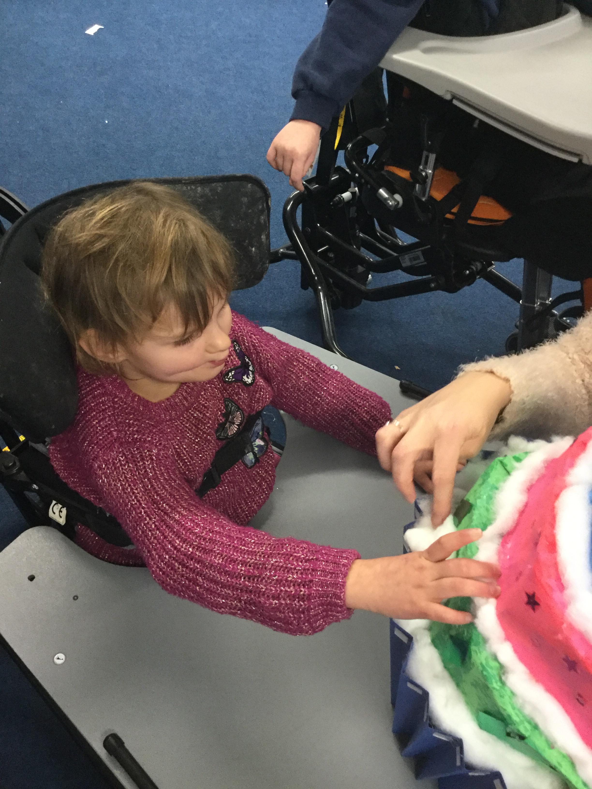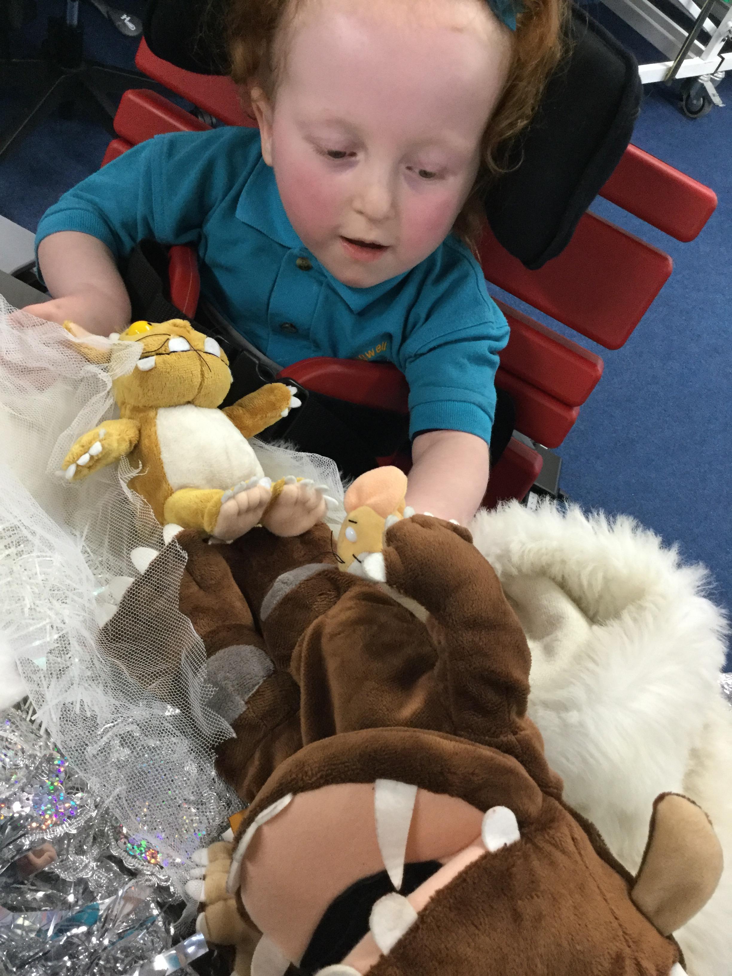Sparkle curriculum is predominantly made up of sensory themed learning and therapeutic activities. More time will be spent on more beneficial, holistic and individualised activities e.g. positioning in specialised equipment, visual stimulation, hand and finger work (exploration – sensory play), therapies (hydrotherapy, rebound therapy etc), movement, relaxation, Tac Pac, story massage etc.