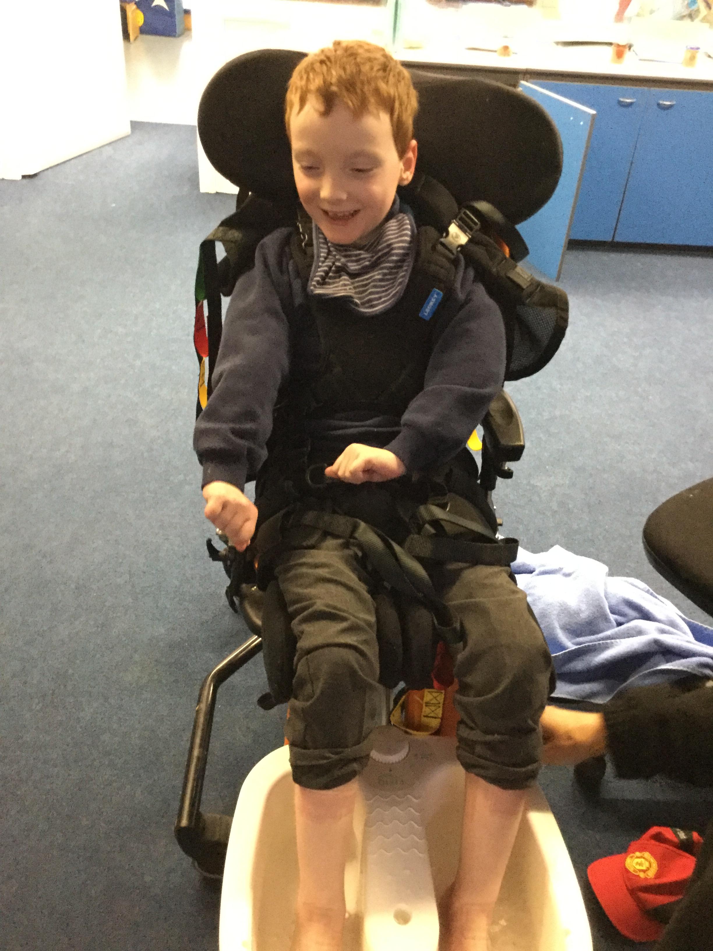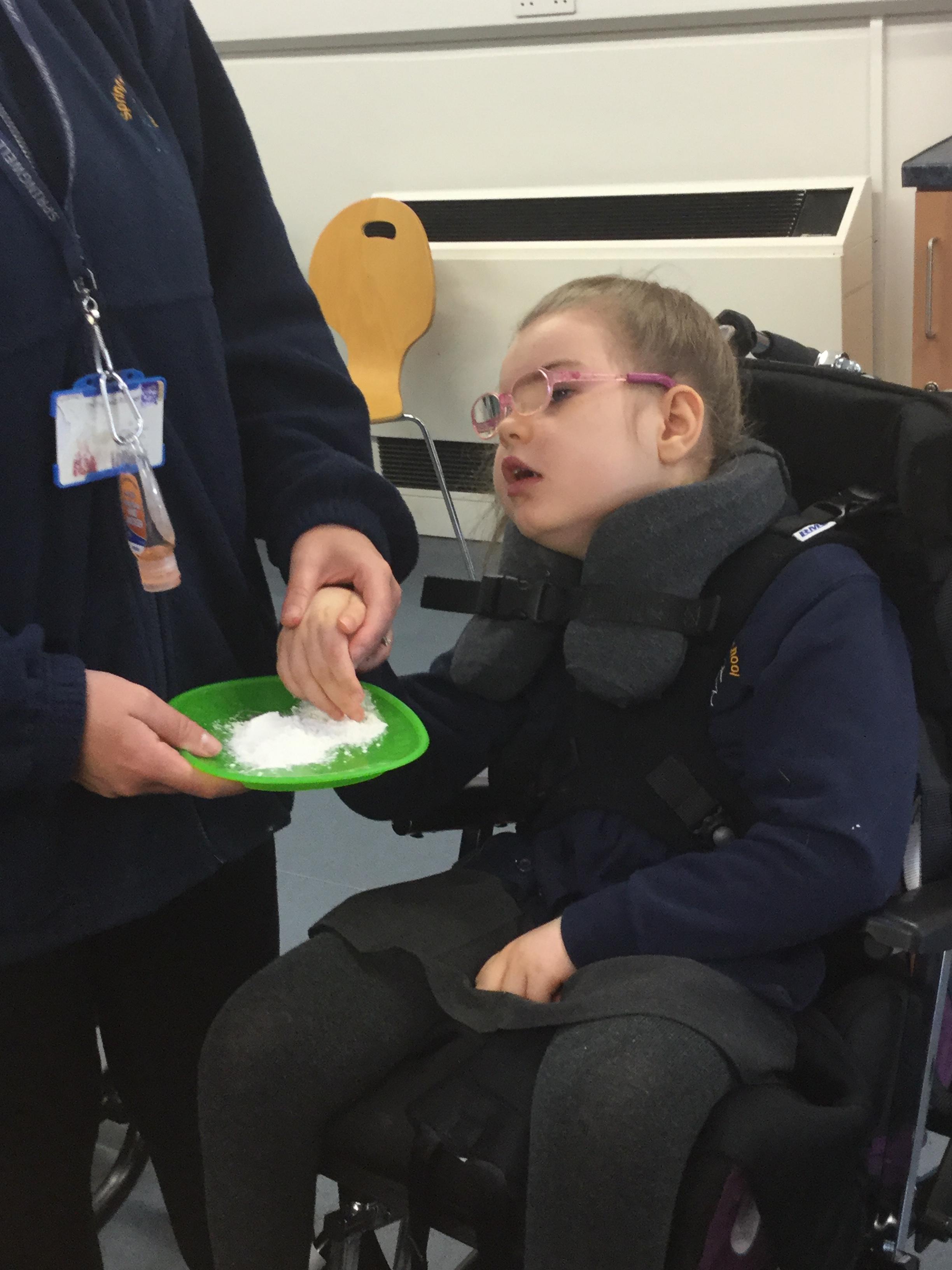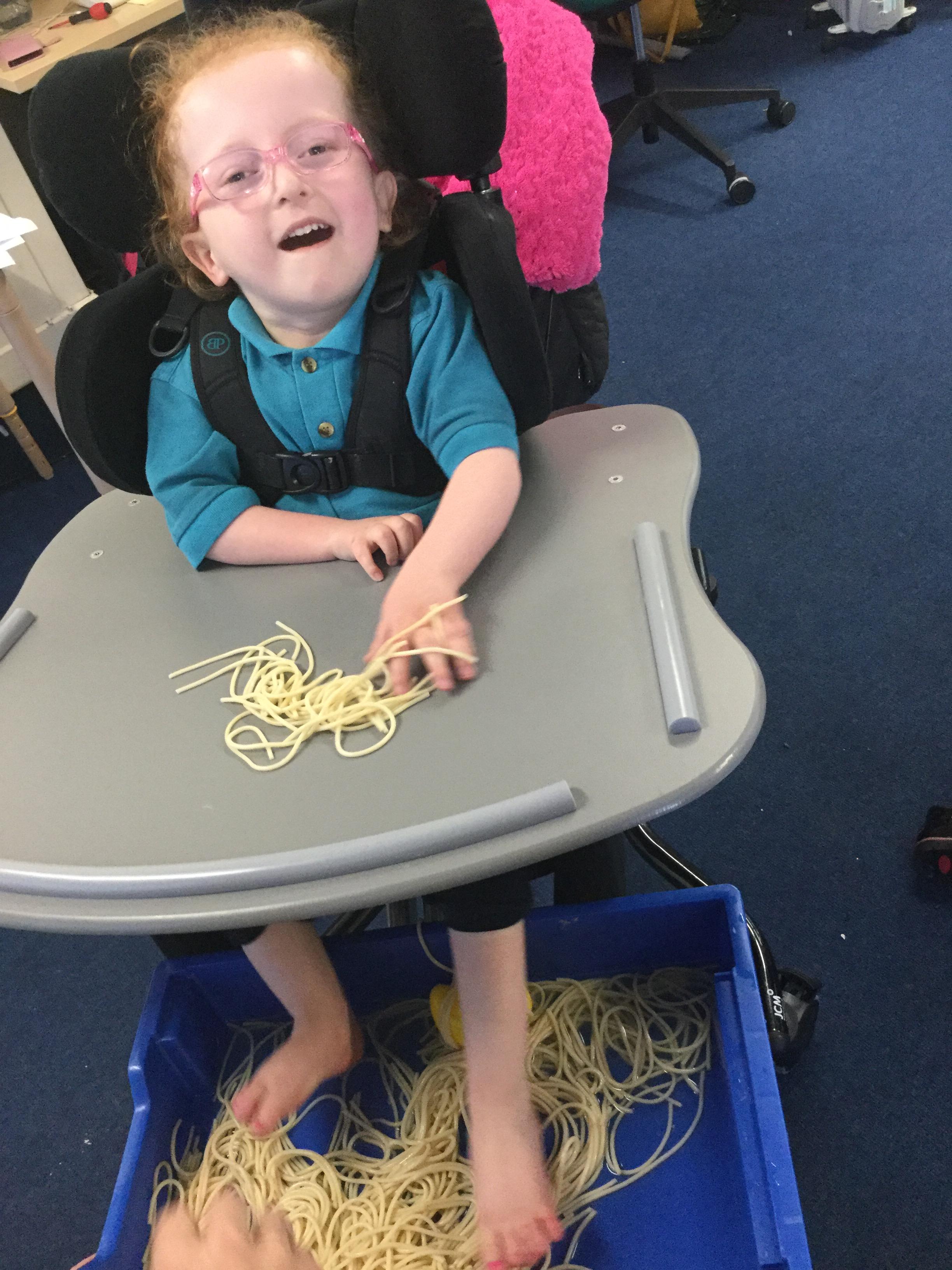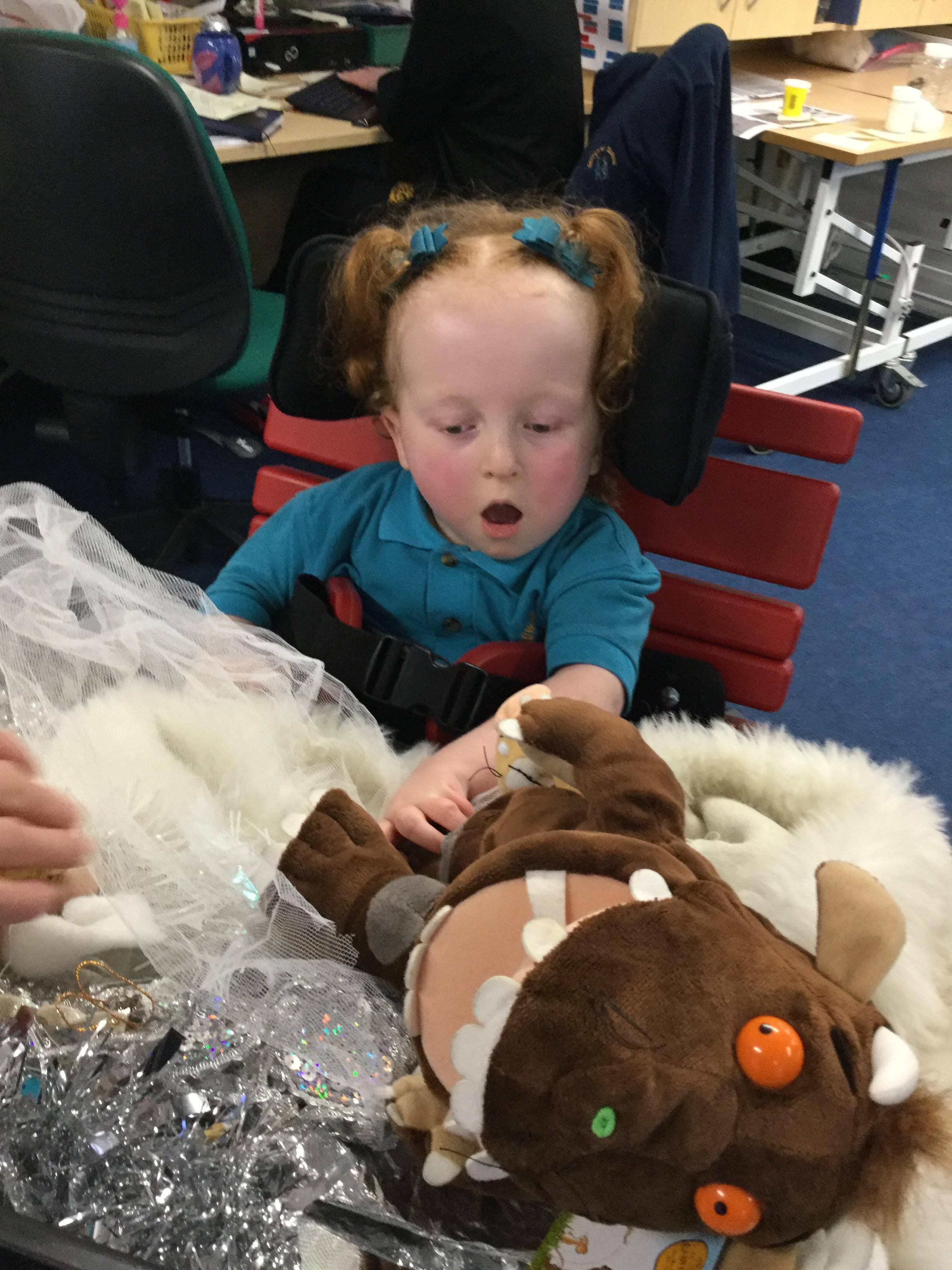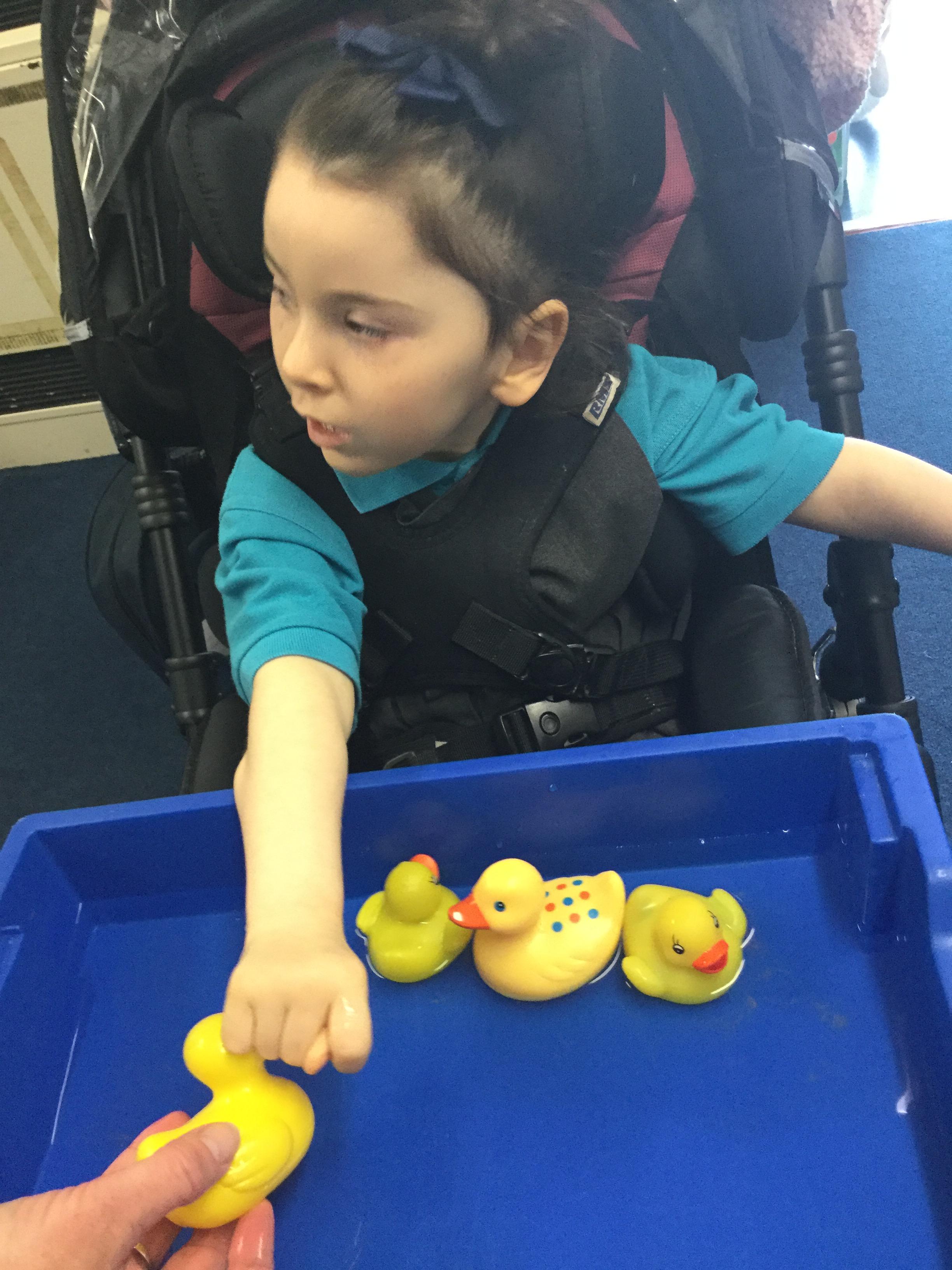 Sparkle curriculum is predominantly made up of sensory themed learning and therapeutic activities. More time will be spent on more beneficial, holistic and individualised activities e.g. positioning in specialised equipment, visual stimulation, hand and finger work (exploration – sensory play), therapies (hydrotherapy, rebound therapy etc), movement, relaxation, Tac Pac, story massage etc.