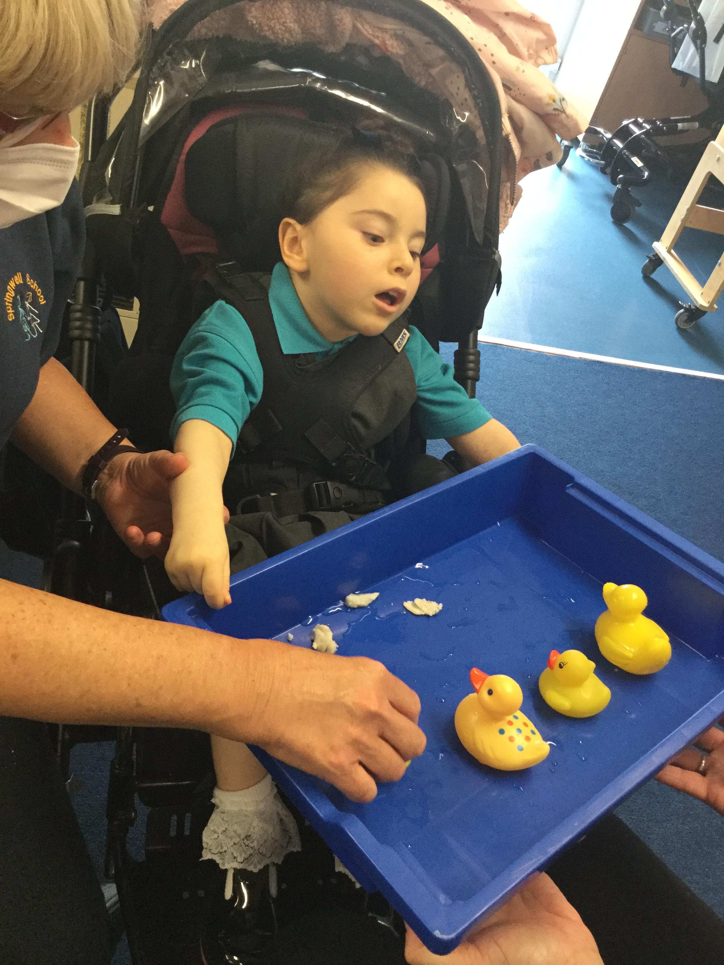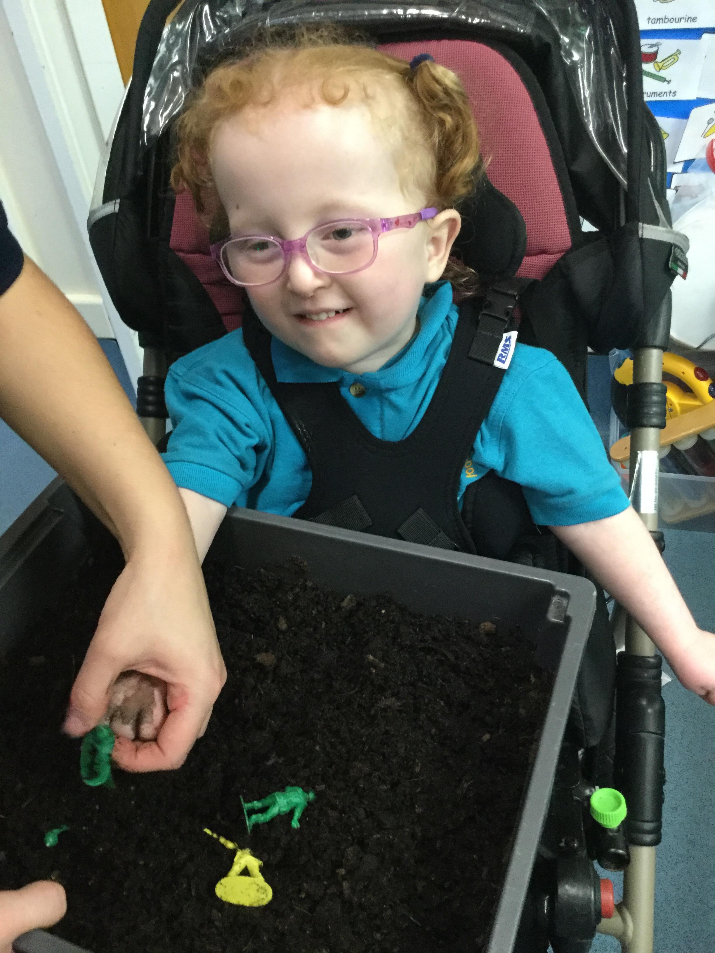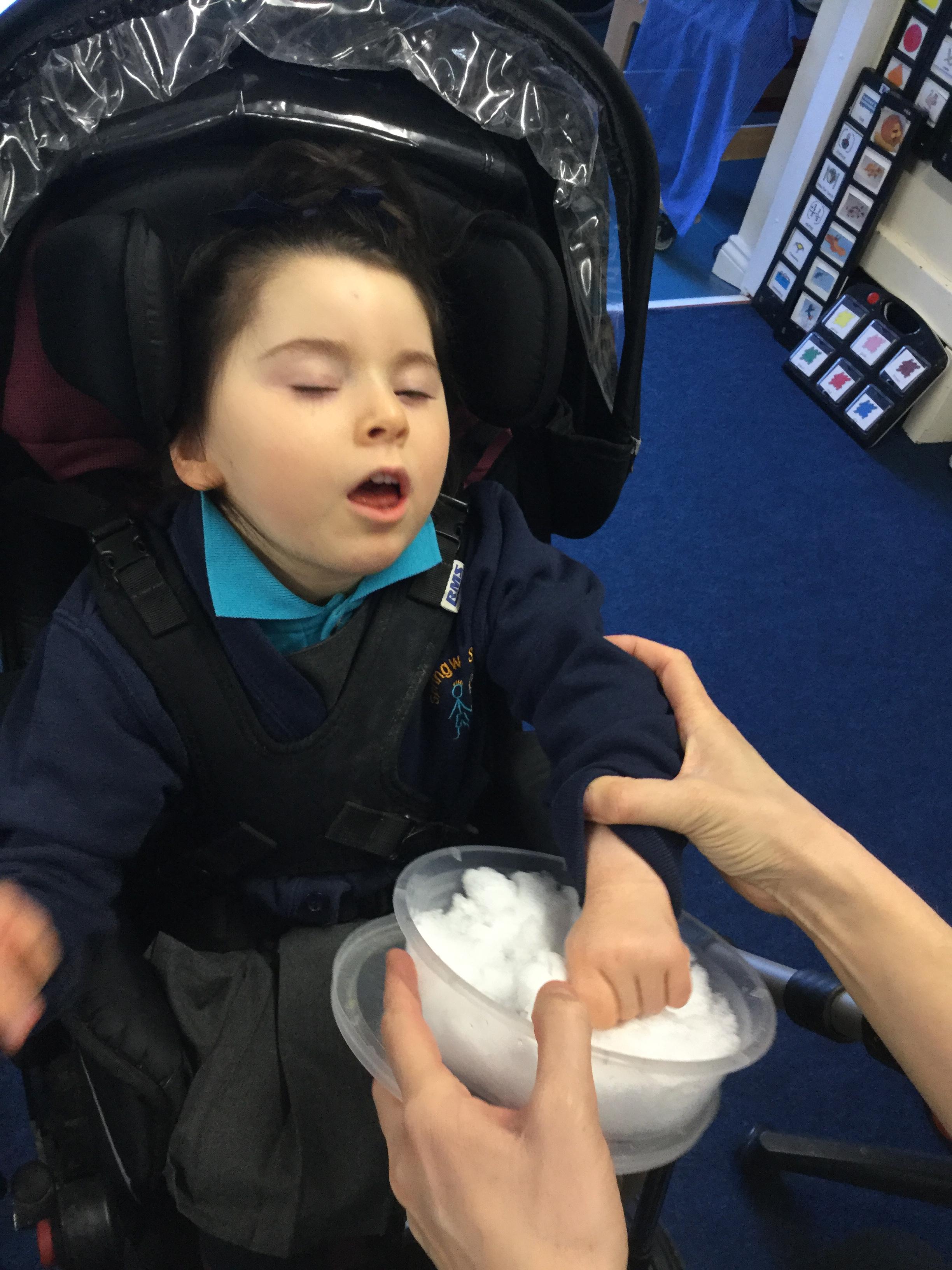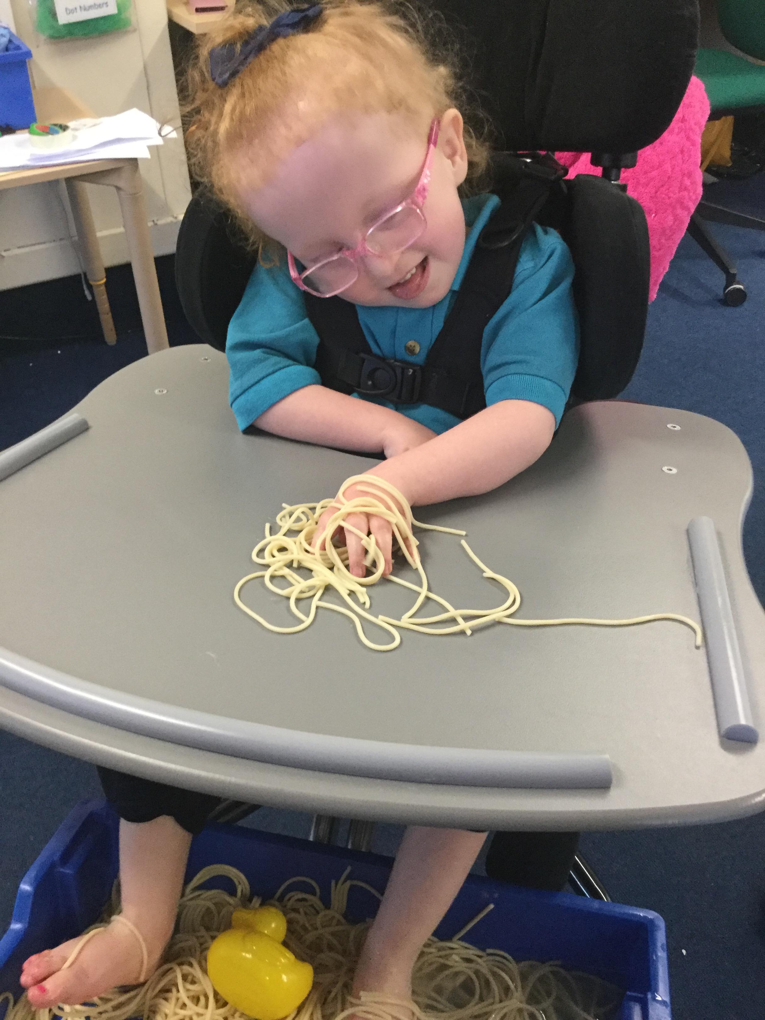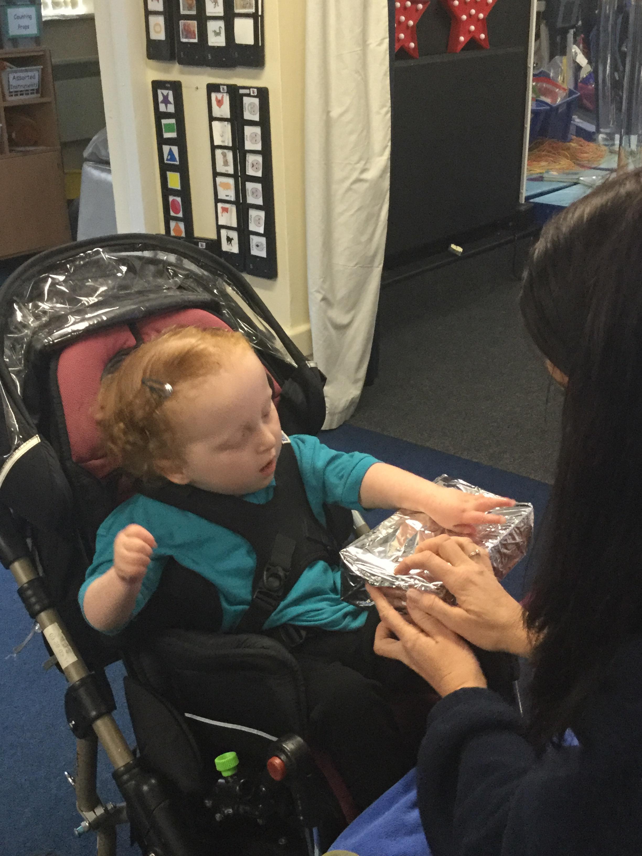 Sparkle curriculum is predominantly made up of sensory themed learning and therapeutic activities. More time will be spent on more beneficial, holistic and individualised activities e.g. positioning in specialised equipment, visual stimulation, hand and finger work (exploration – sensory play), therapies (hydrotherapy, rebound therapy etc), movement, relaxation, Tac Pac, story massage etc.