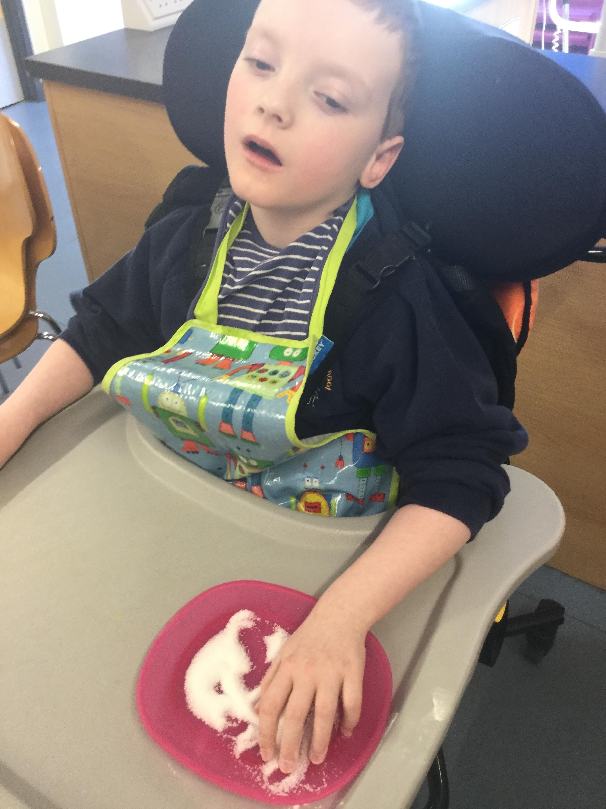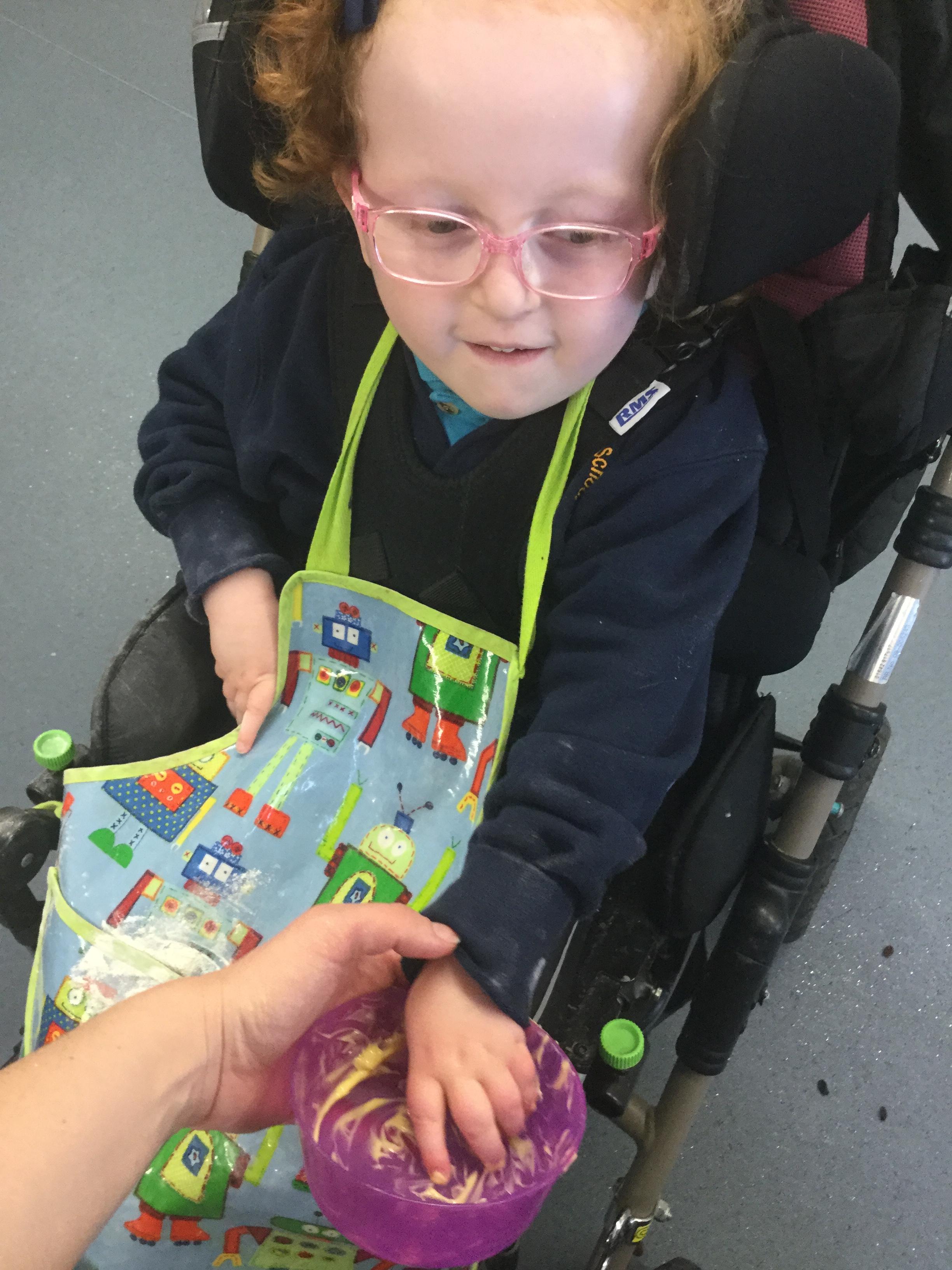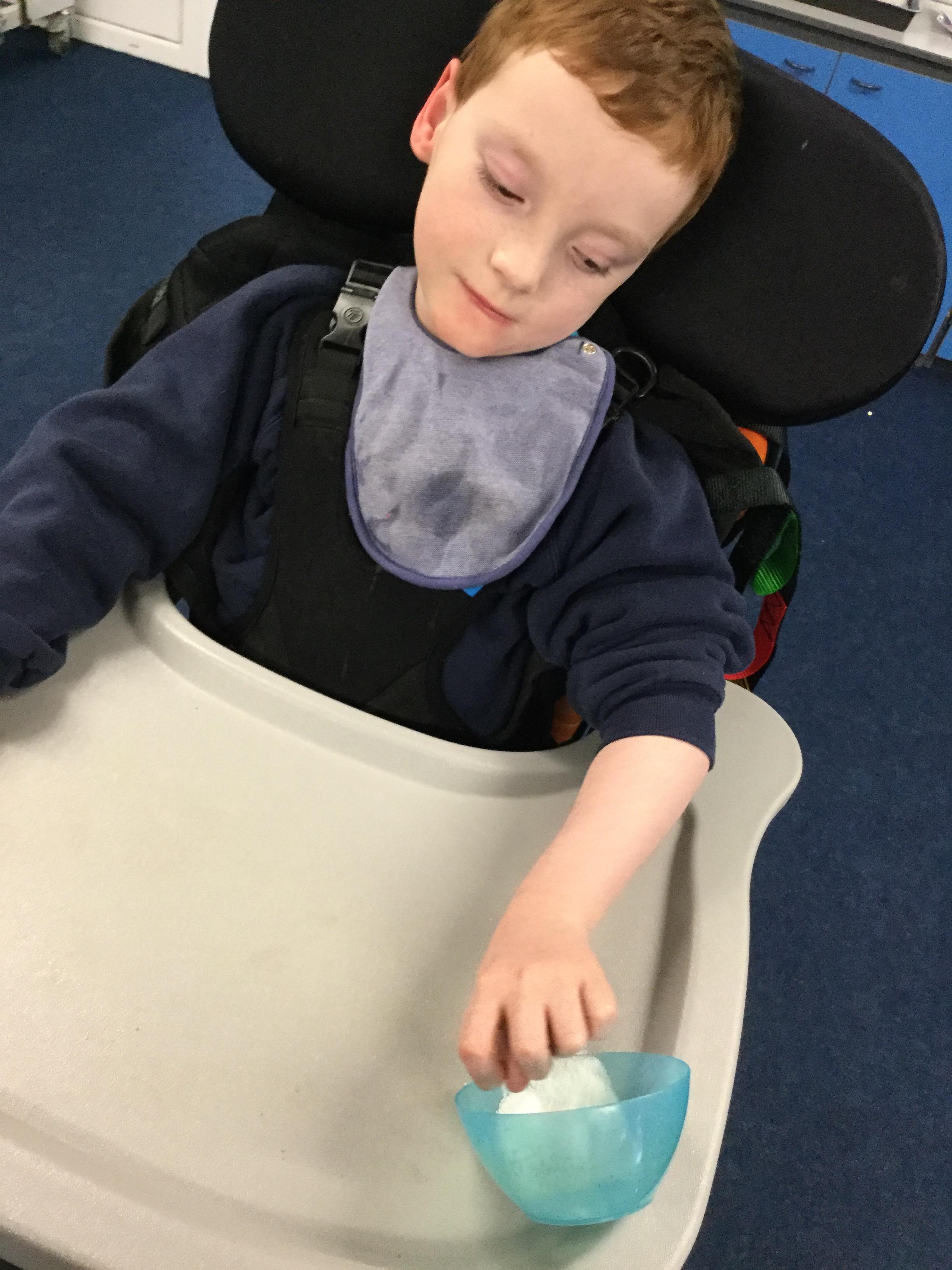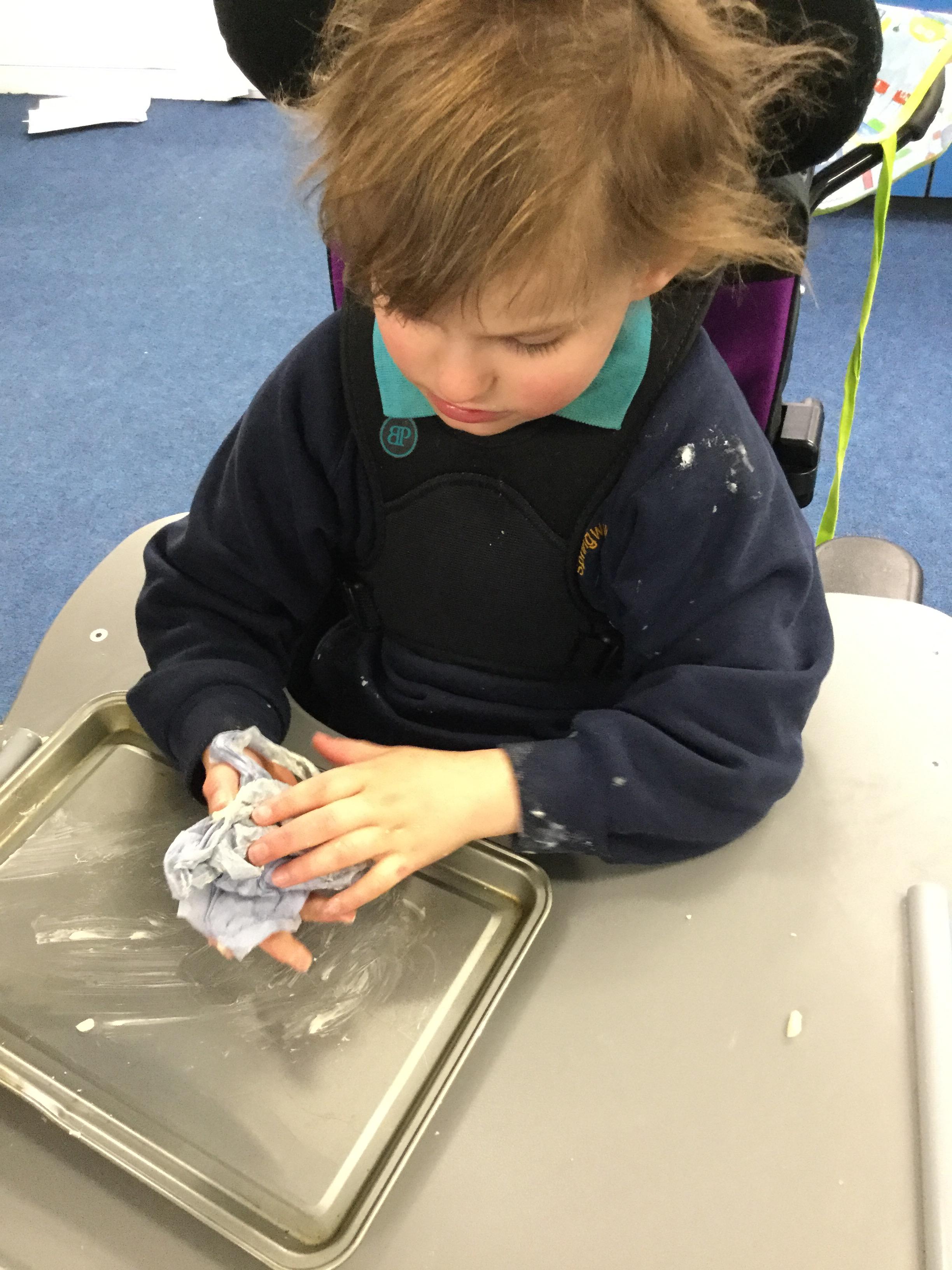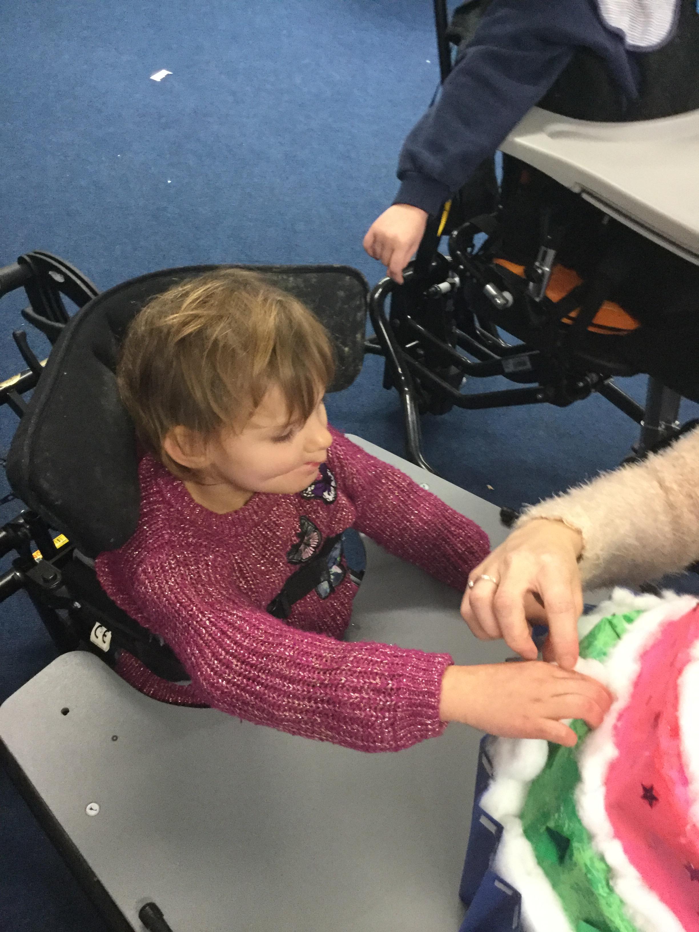 Sparkle curriculum is predominantly made up of sensory themed learning and therapeutic activities. More time will be spent on more beneficial, holistic and individualised activities e.g. positioning in specialised equipment, visual stimulation, hand and finger work (exploration – sensory play), therapies (hydrotherapy, rebound therapy etc), movement, relaxation, Tac Pac, story massage etc.