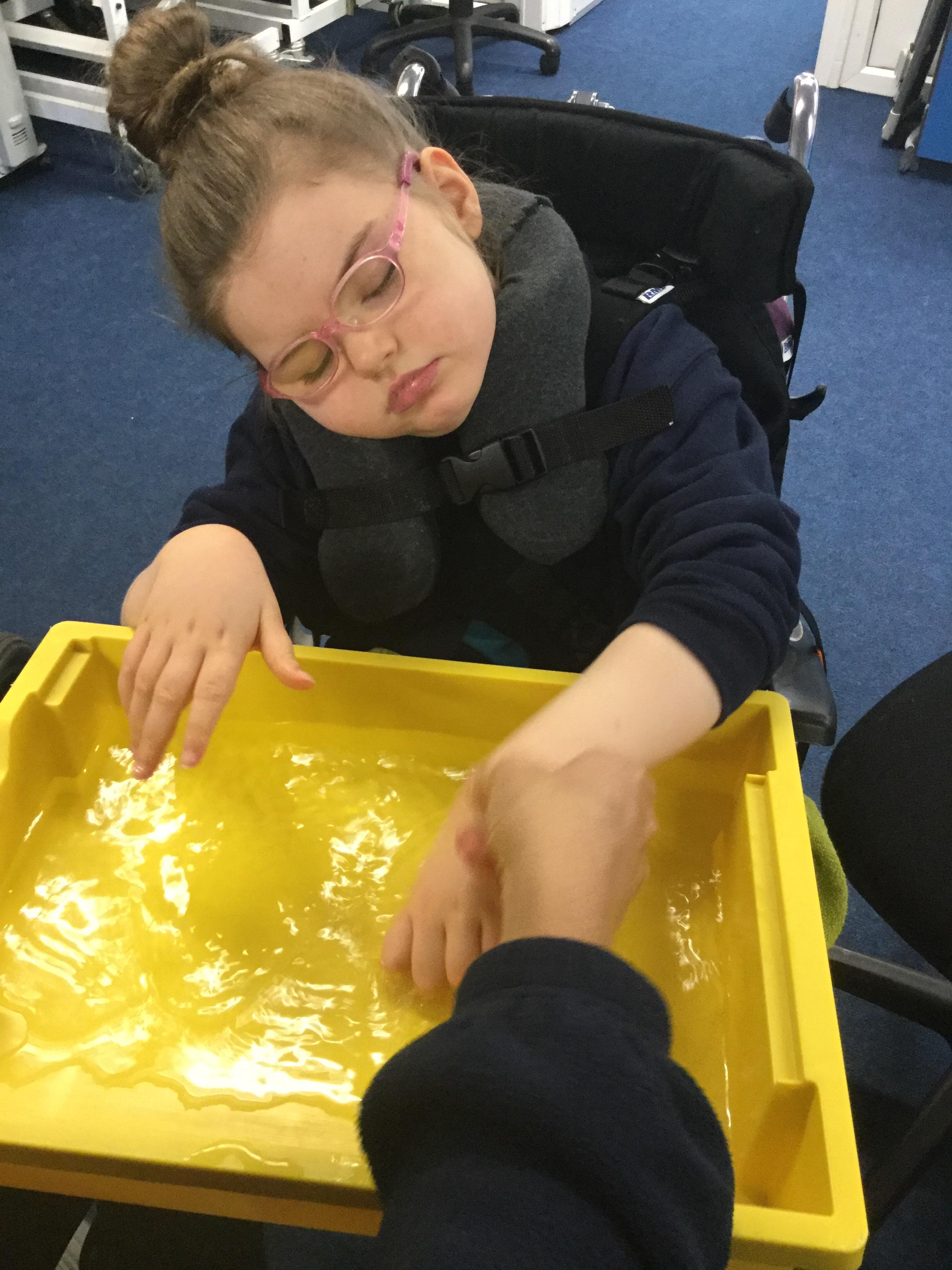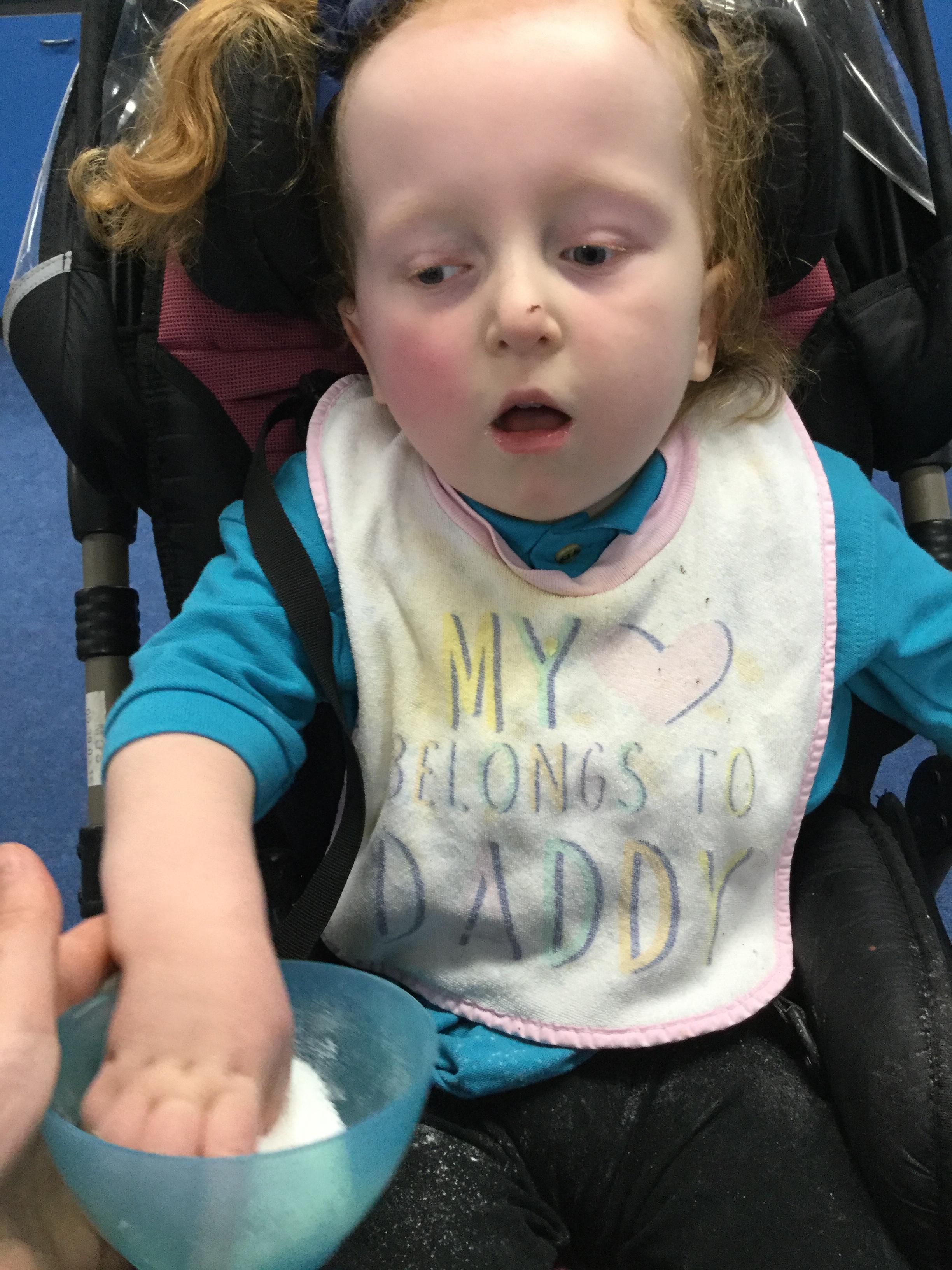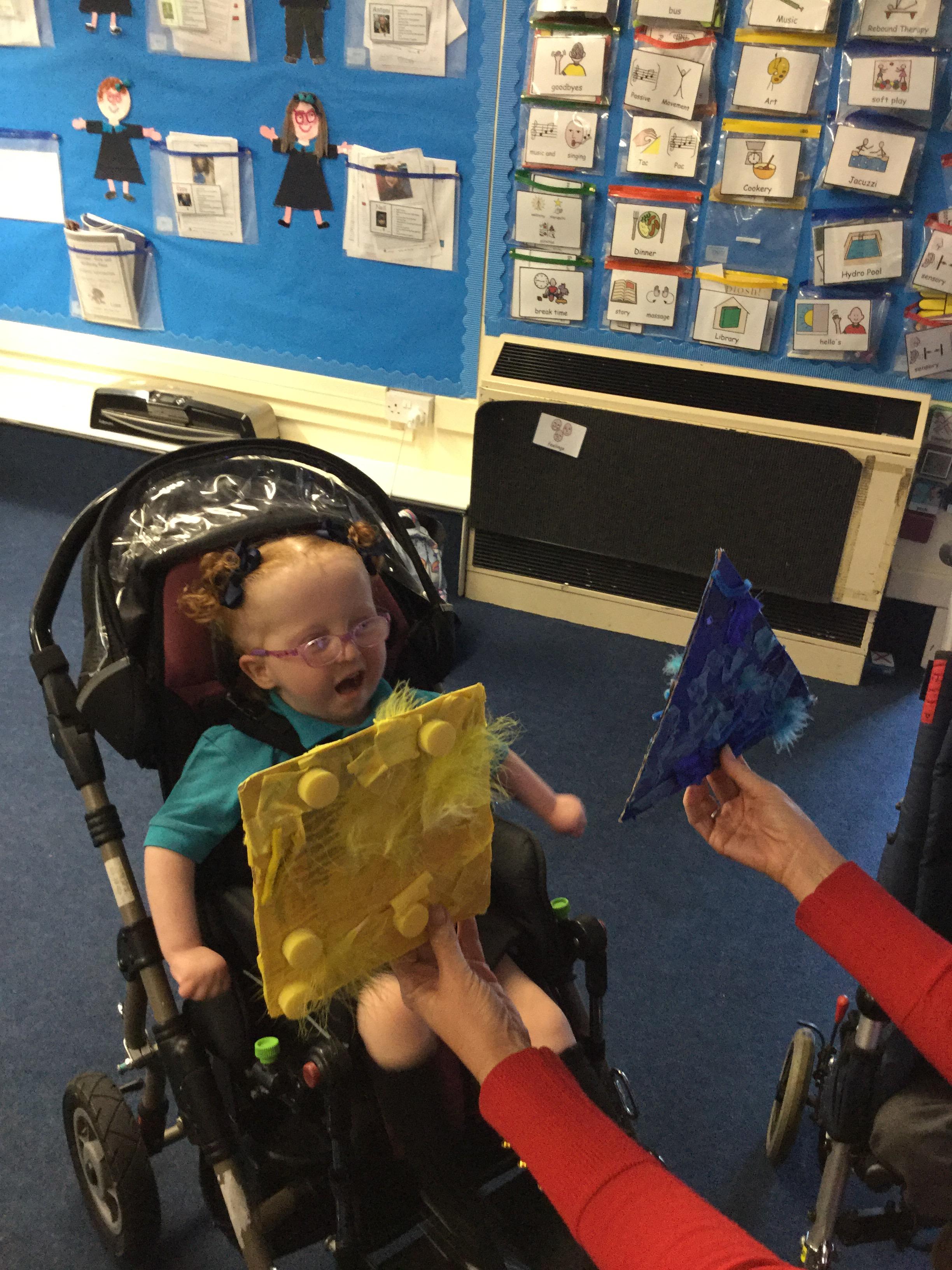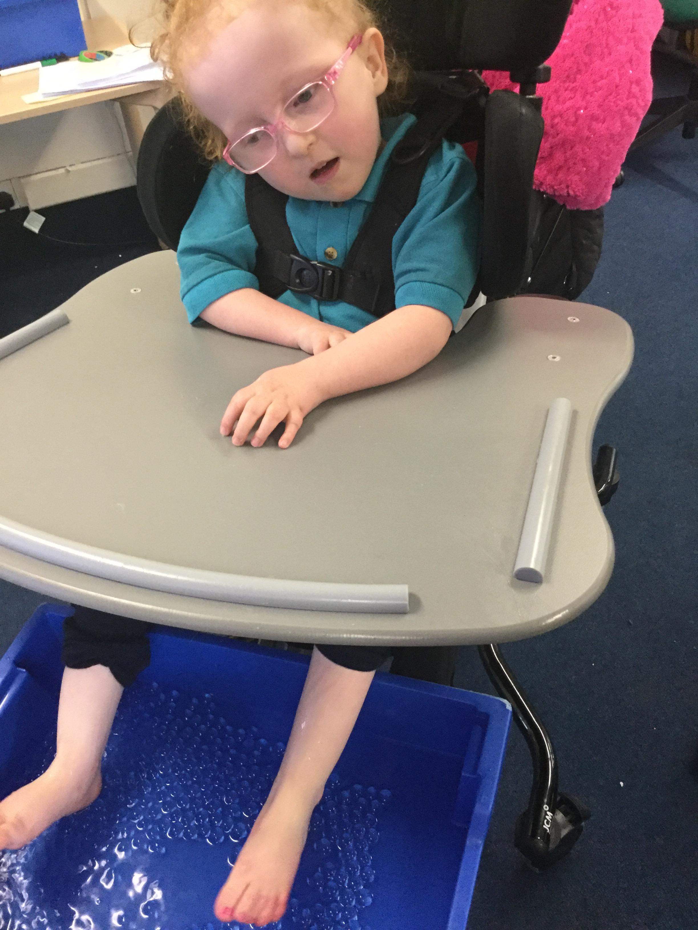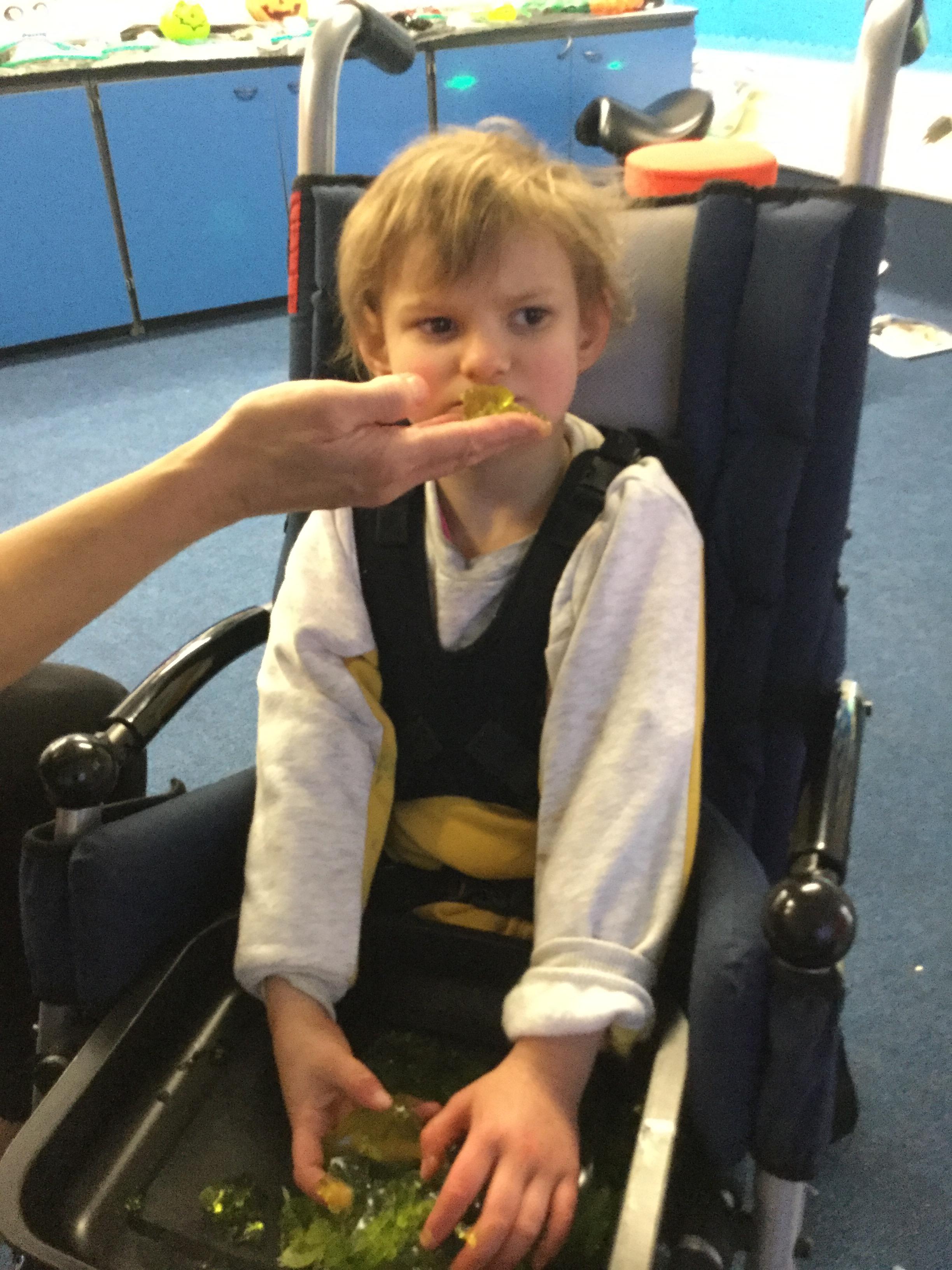 Sparkle curriculum is predominantly made up of sensory themed learning and therapeutic activities. More time will be spent on more beneficial, holistic and individualised activities e.g. positioning in specialised equipment, visual stimulation, hand and finger work (exploration – sensory play), therapies (hydrotherapy, rebound therapy etc), movement, relaxation, Tac Pac, story massage etc.