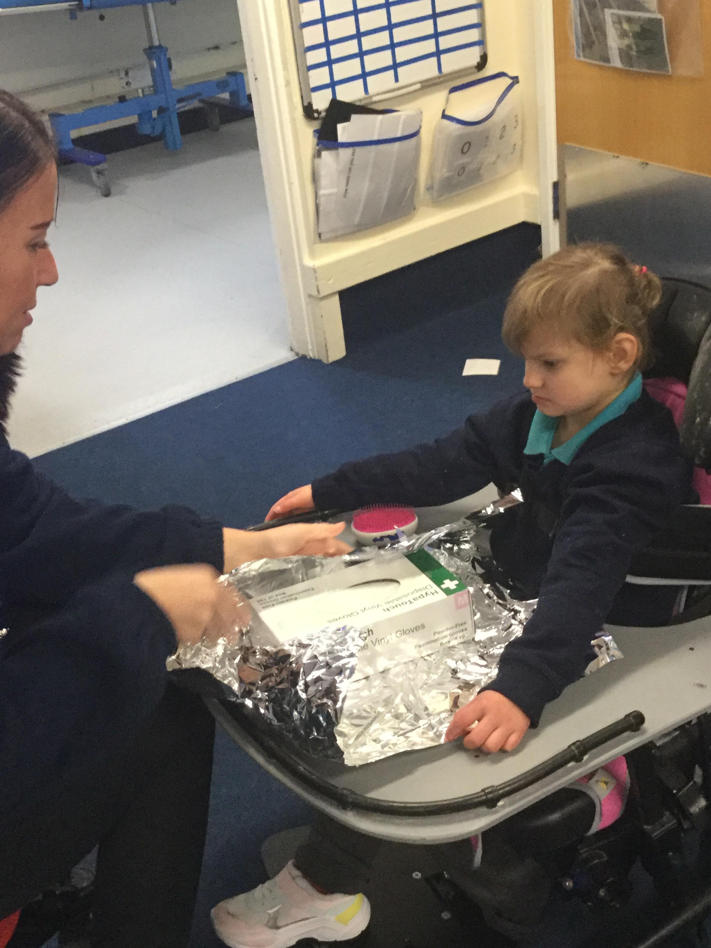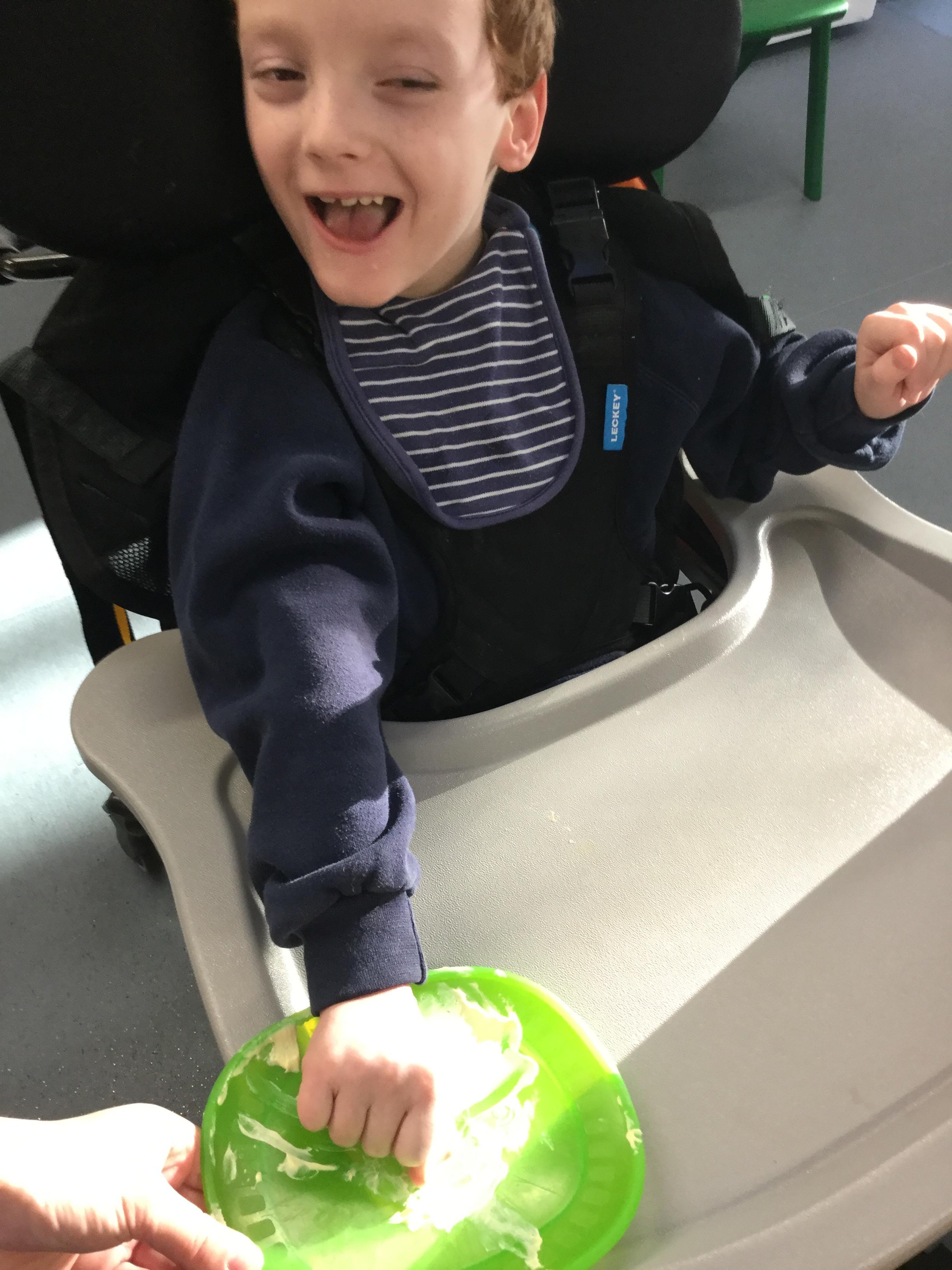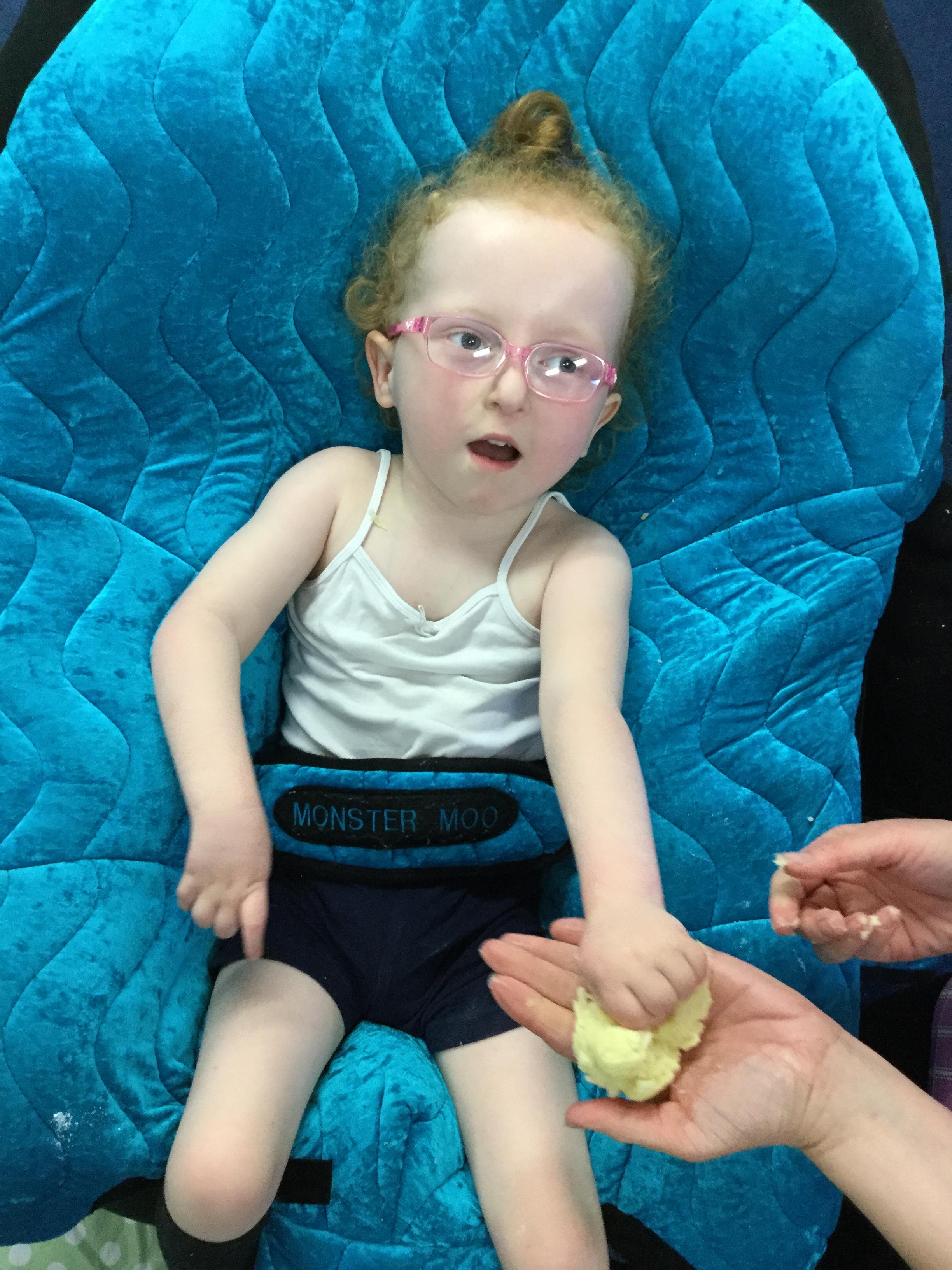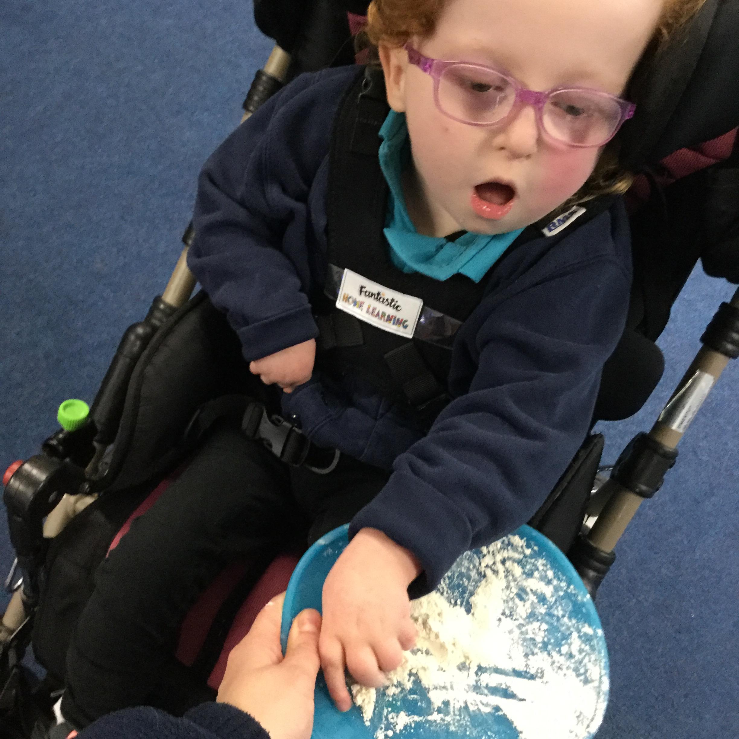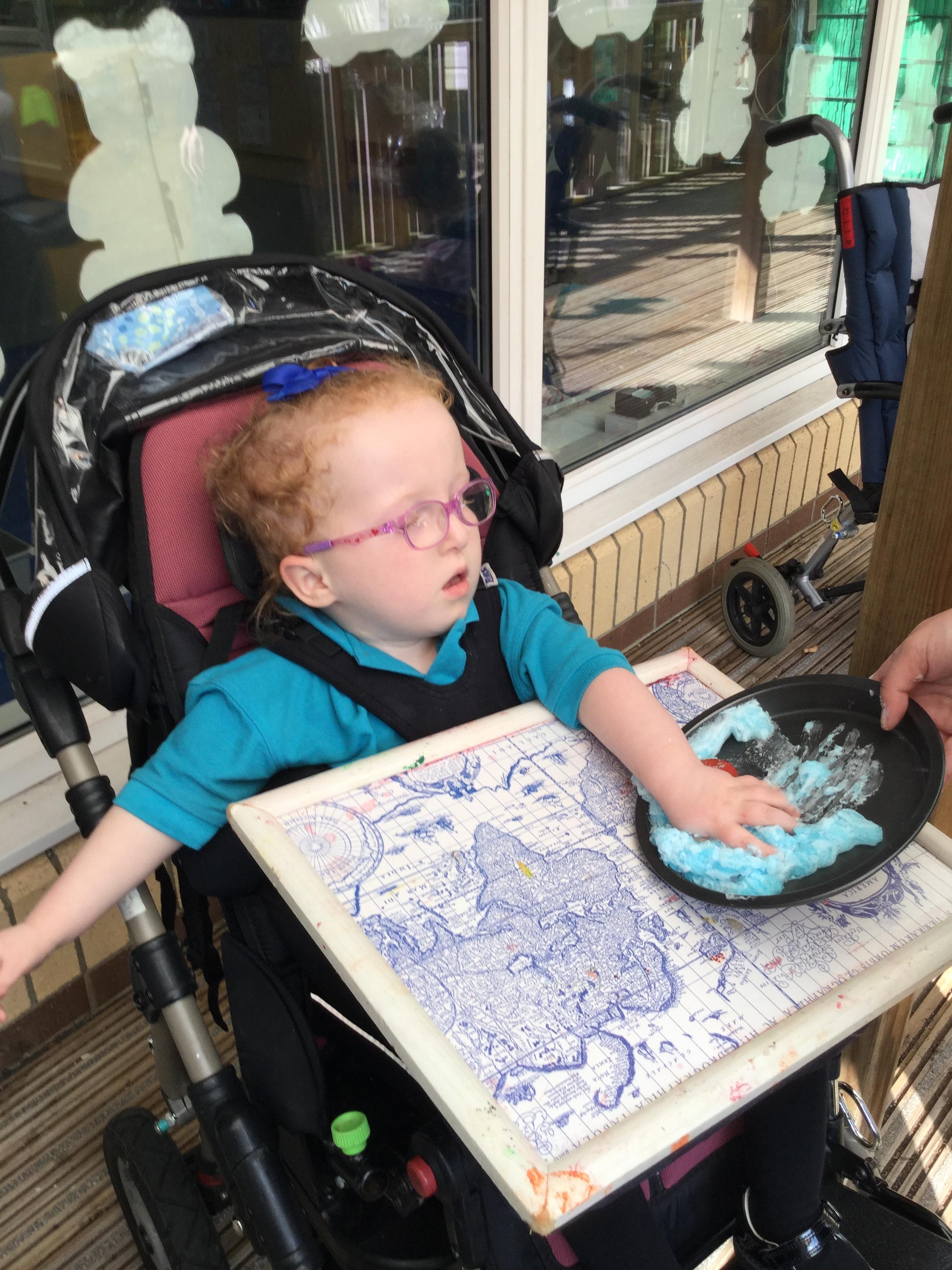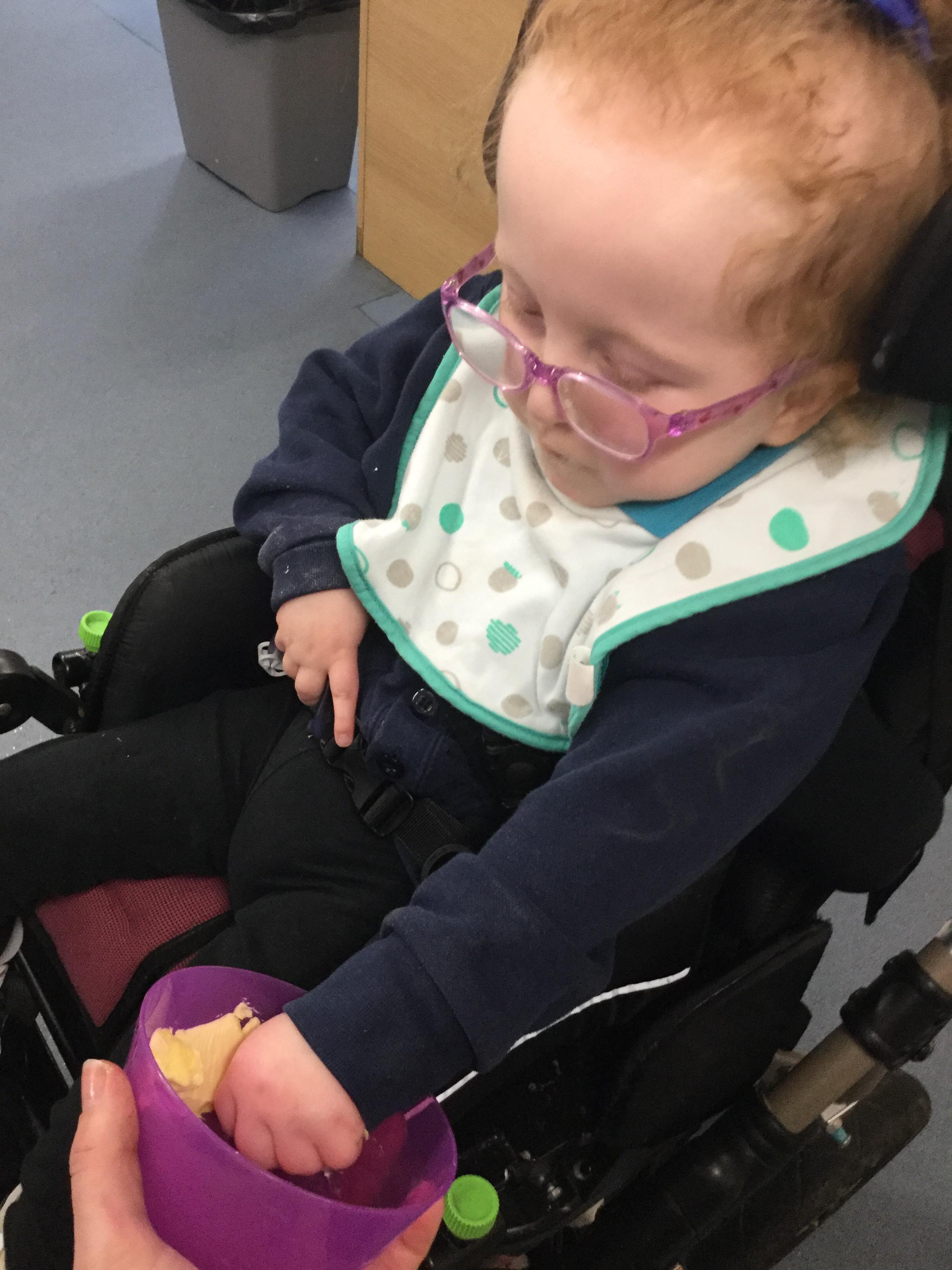 Sparkle curriculum is predominantly made up of sensory themed learning and therapeutic activities. More time will be spent on more beneficial, holistic and individualised activities e.g. positioning in specialised equipment, visual stimulation, hand and finger work (exploration – sensory play), therapies (hydrotherapy, rebound therapy etc), movement, relaxation, Tac Pac, story massage etc.