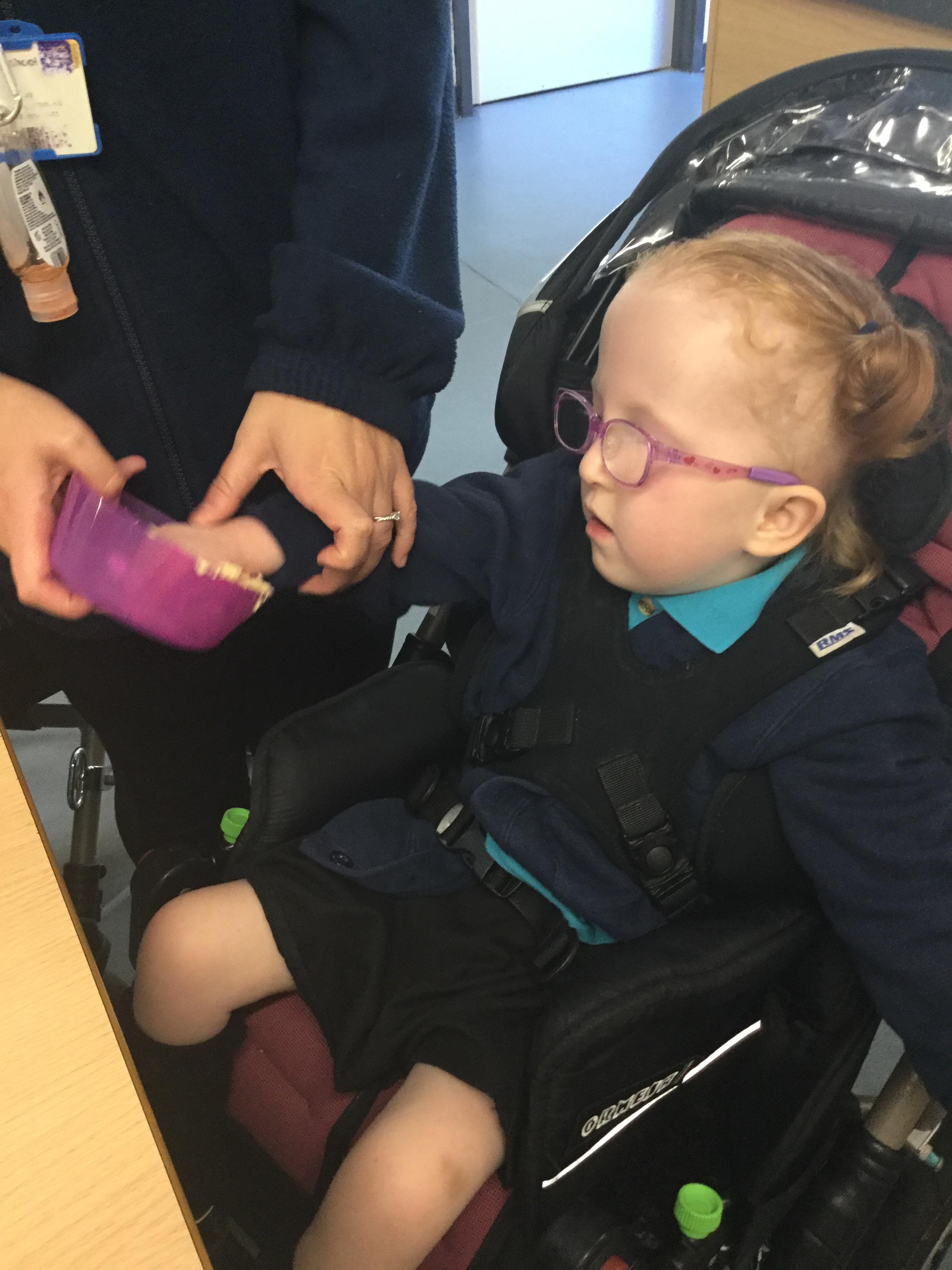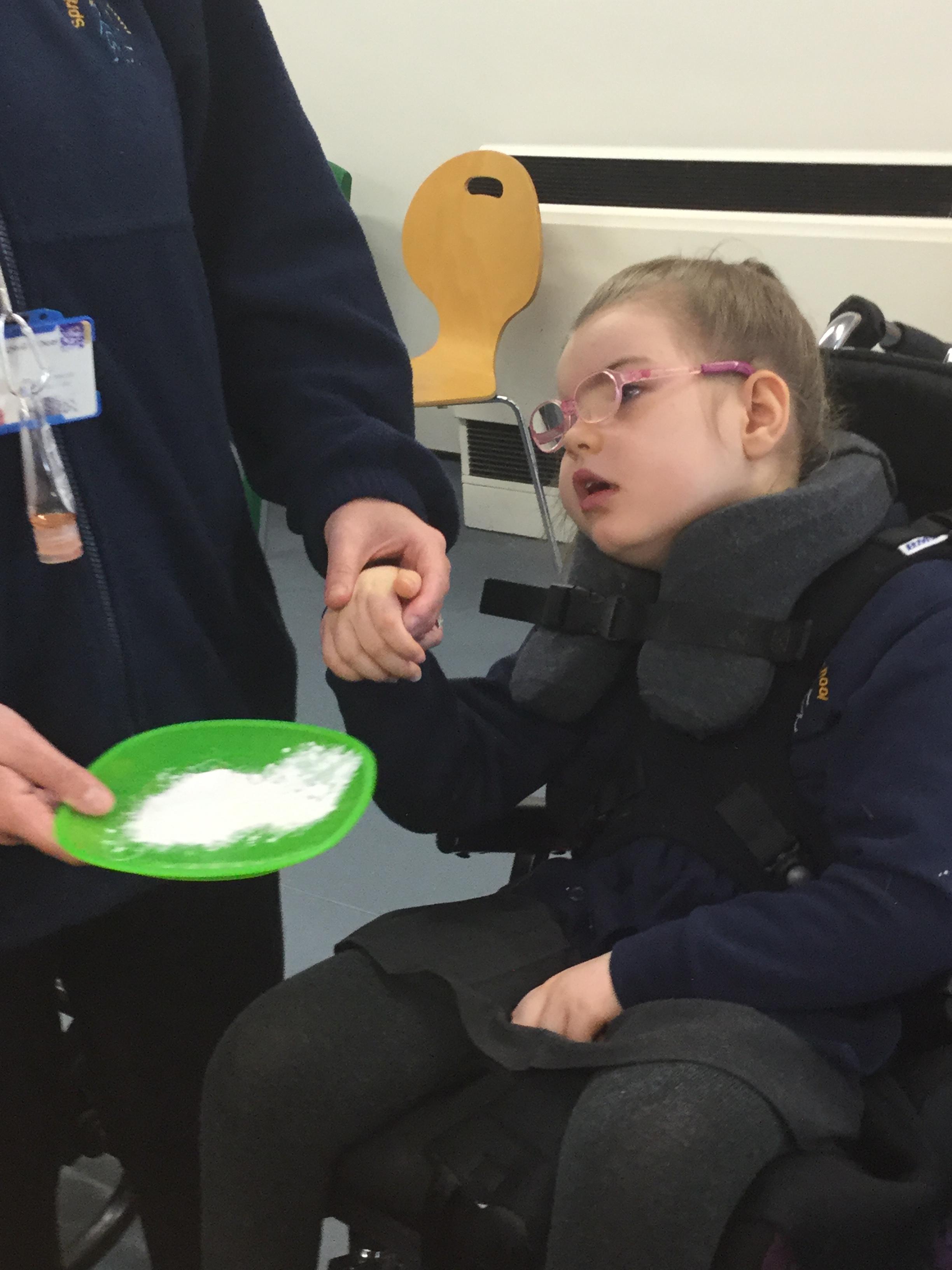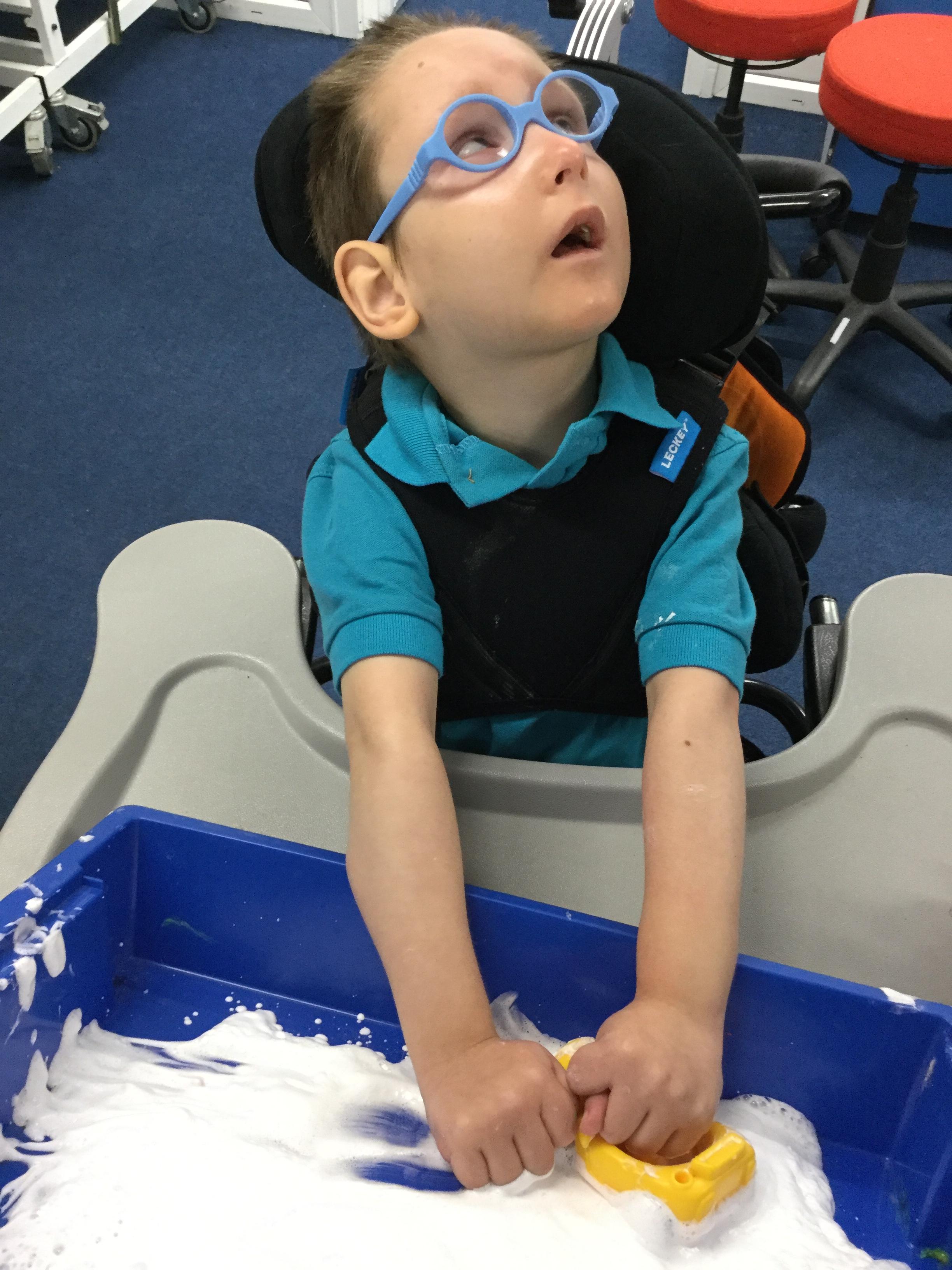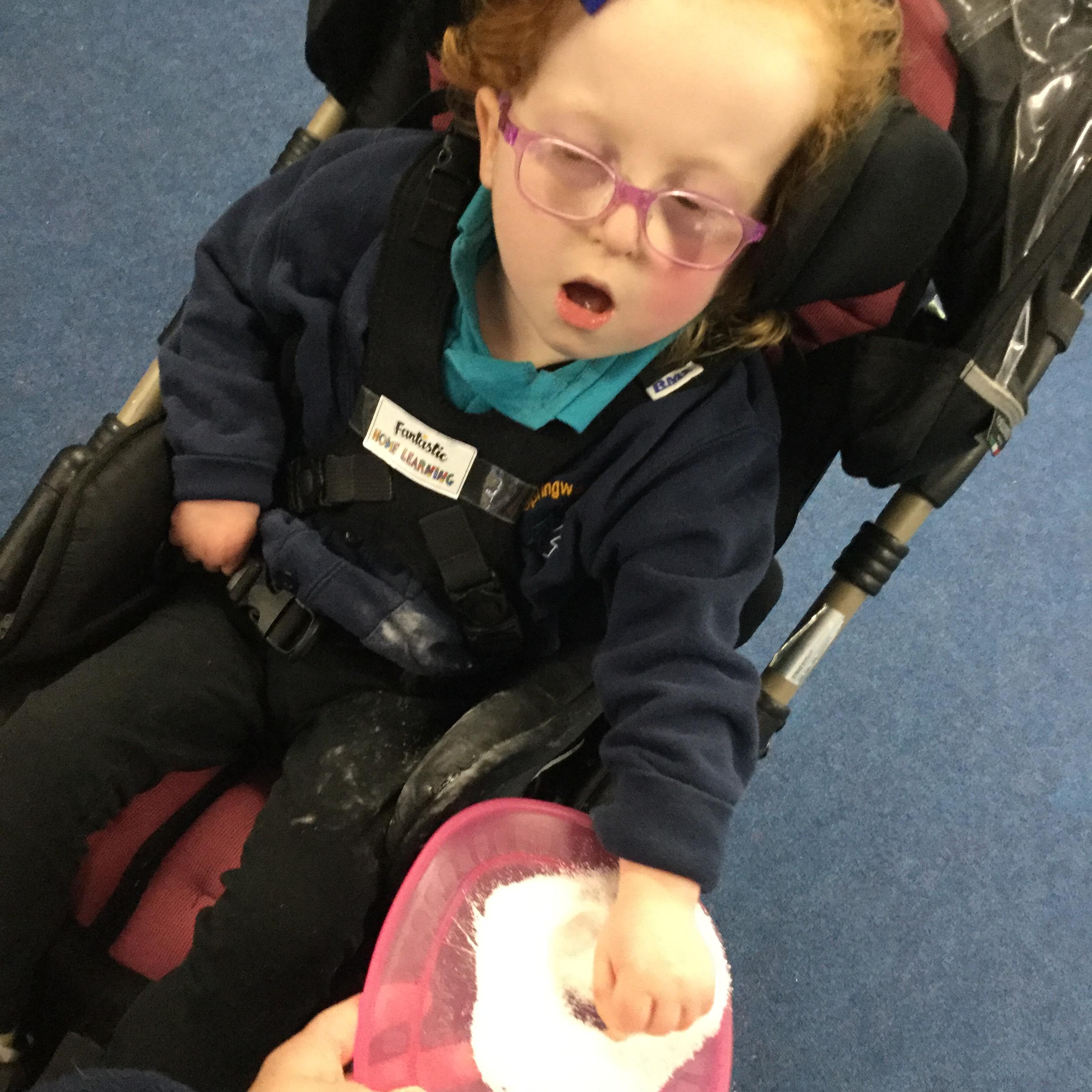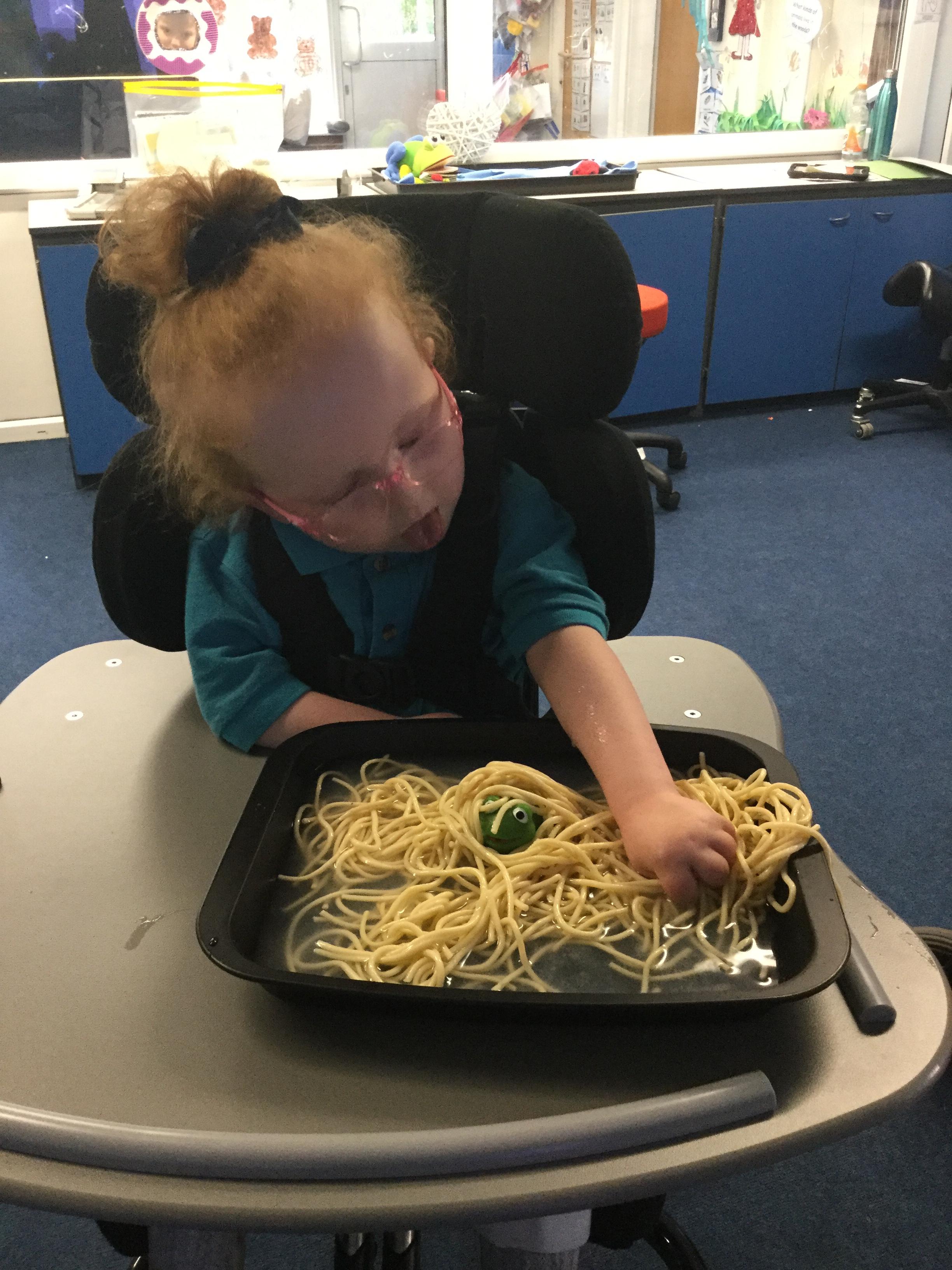 Sparkle curriculum is predominantly made up of sensory themed learning and therapeutic activities. More time will be spent on more beneficial, holistic and individualised activities e.g. positioning in specialised equipment, visual stimulation, hand and finger work (exploration – sensory play), therapies (hydrotherapy, rebound therapy etc), movement, relaxation, Tac Pac, story massage etc.