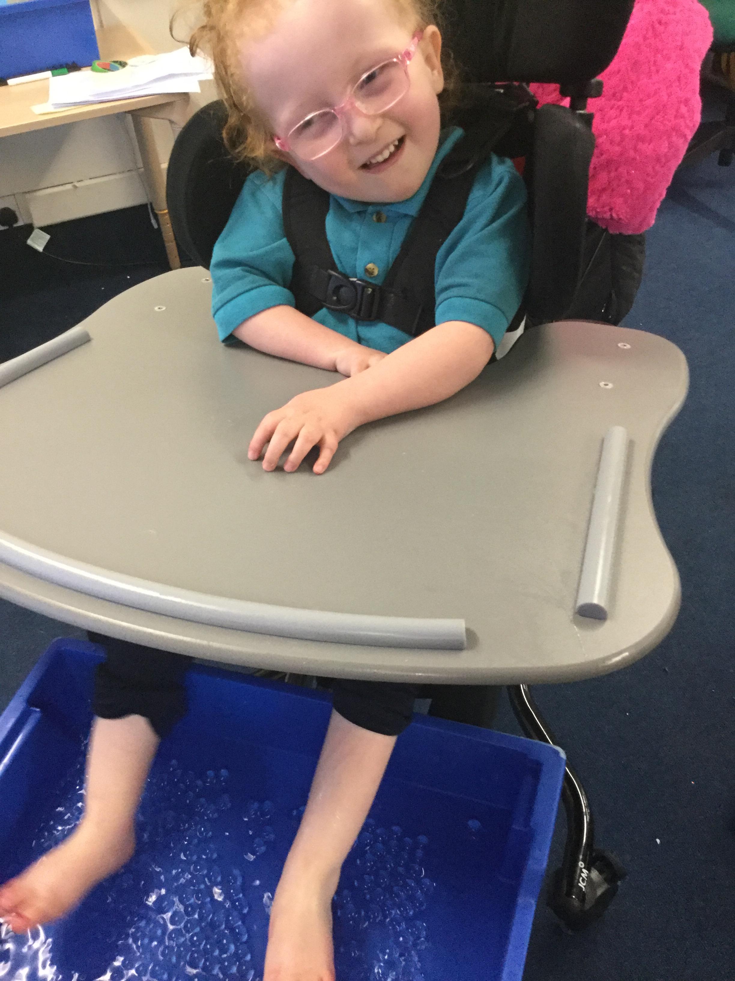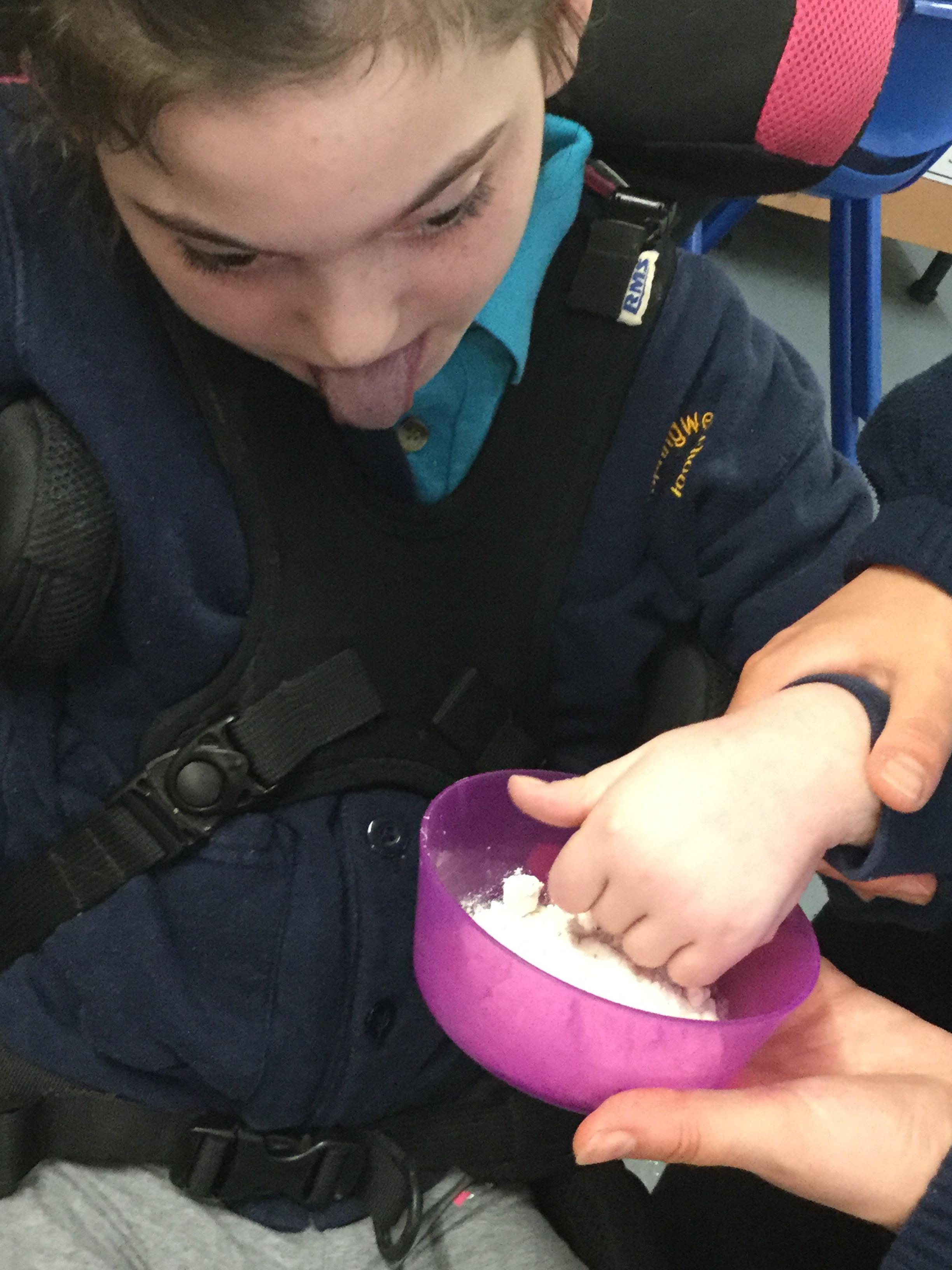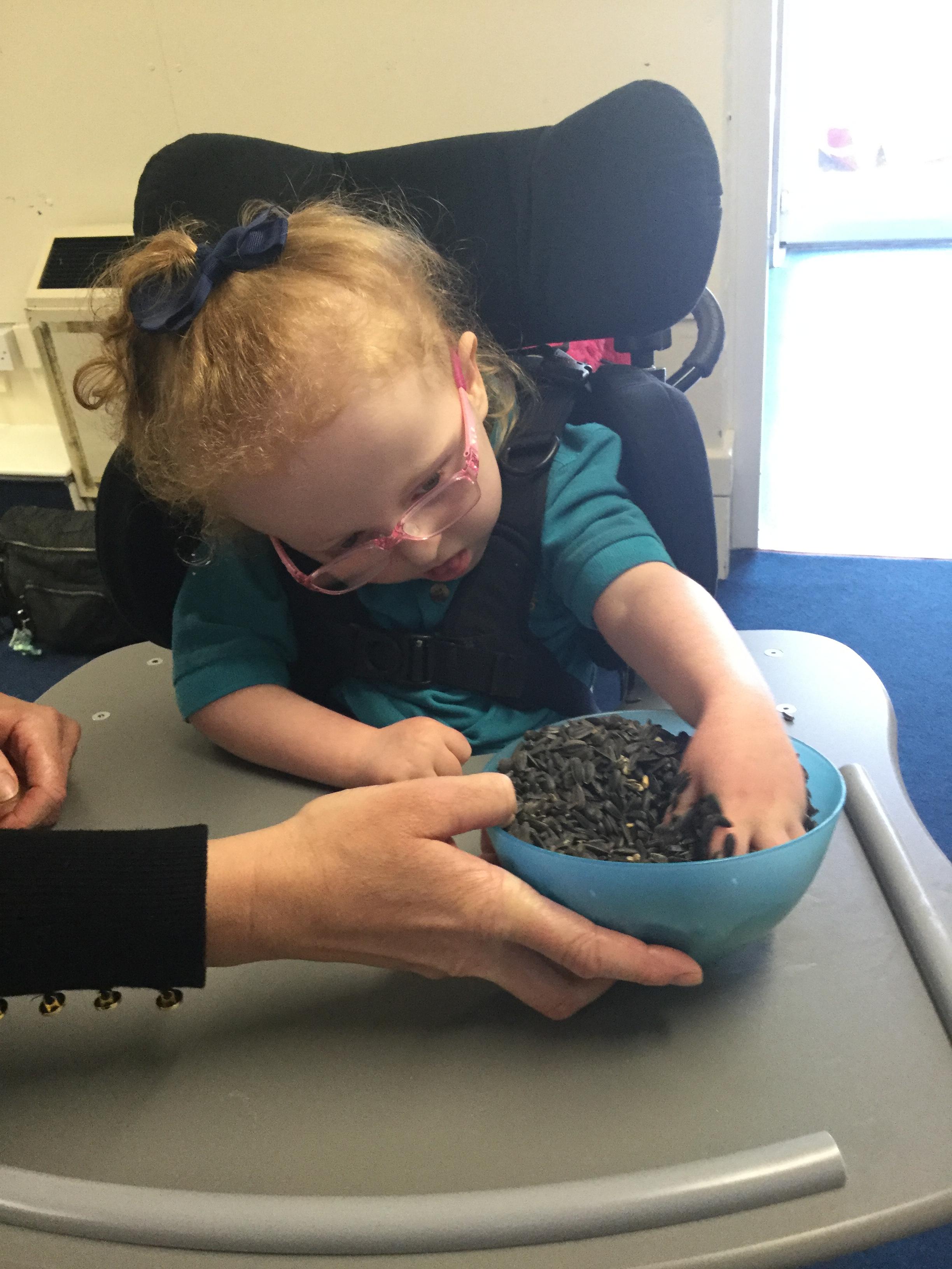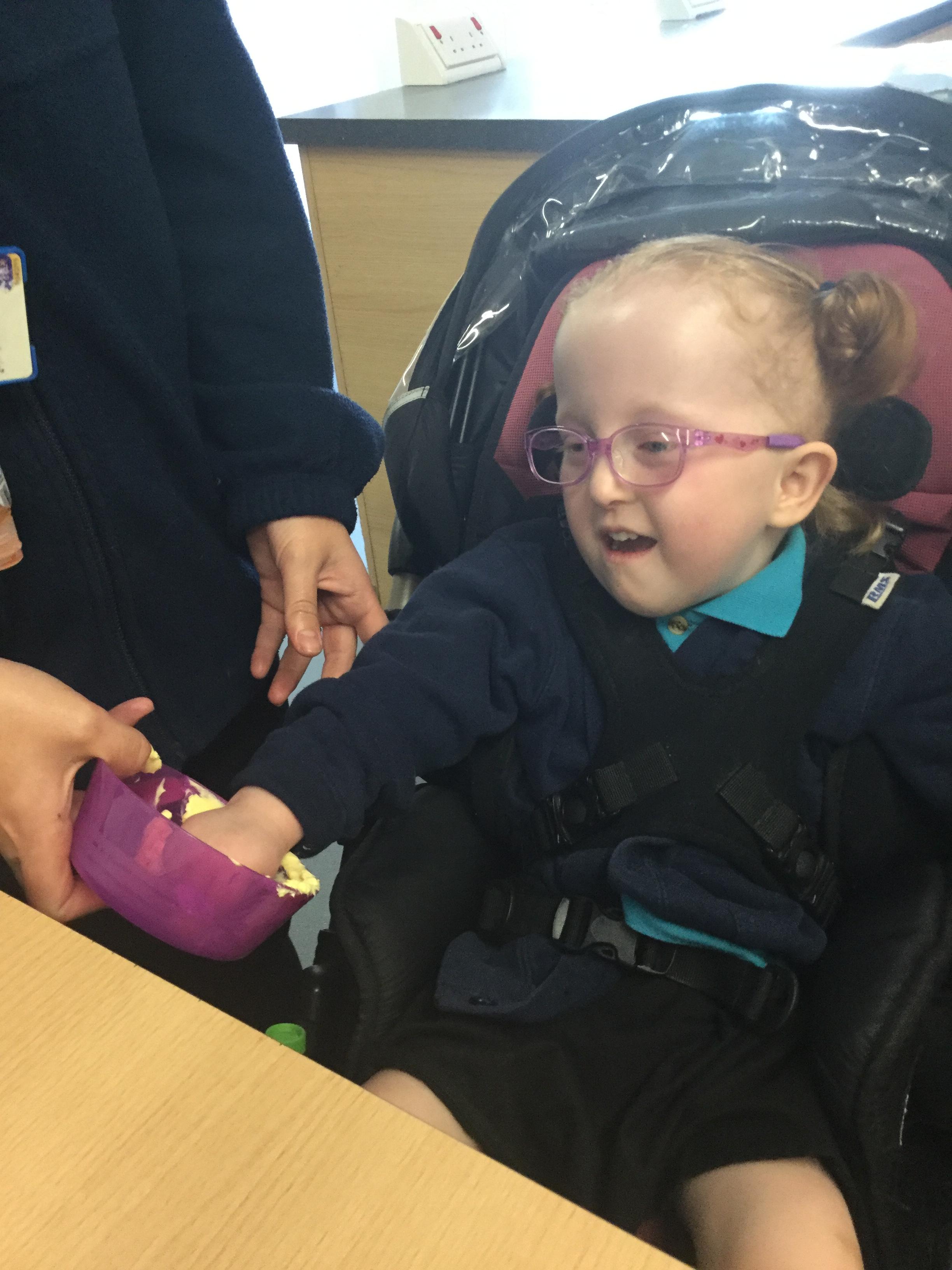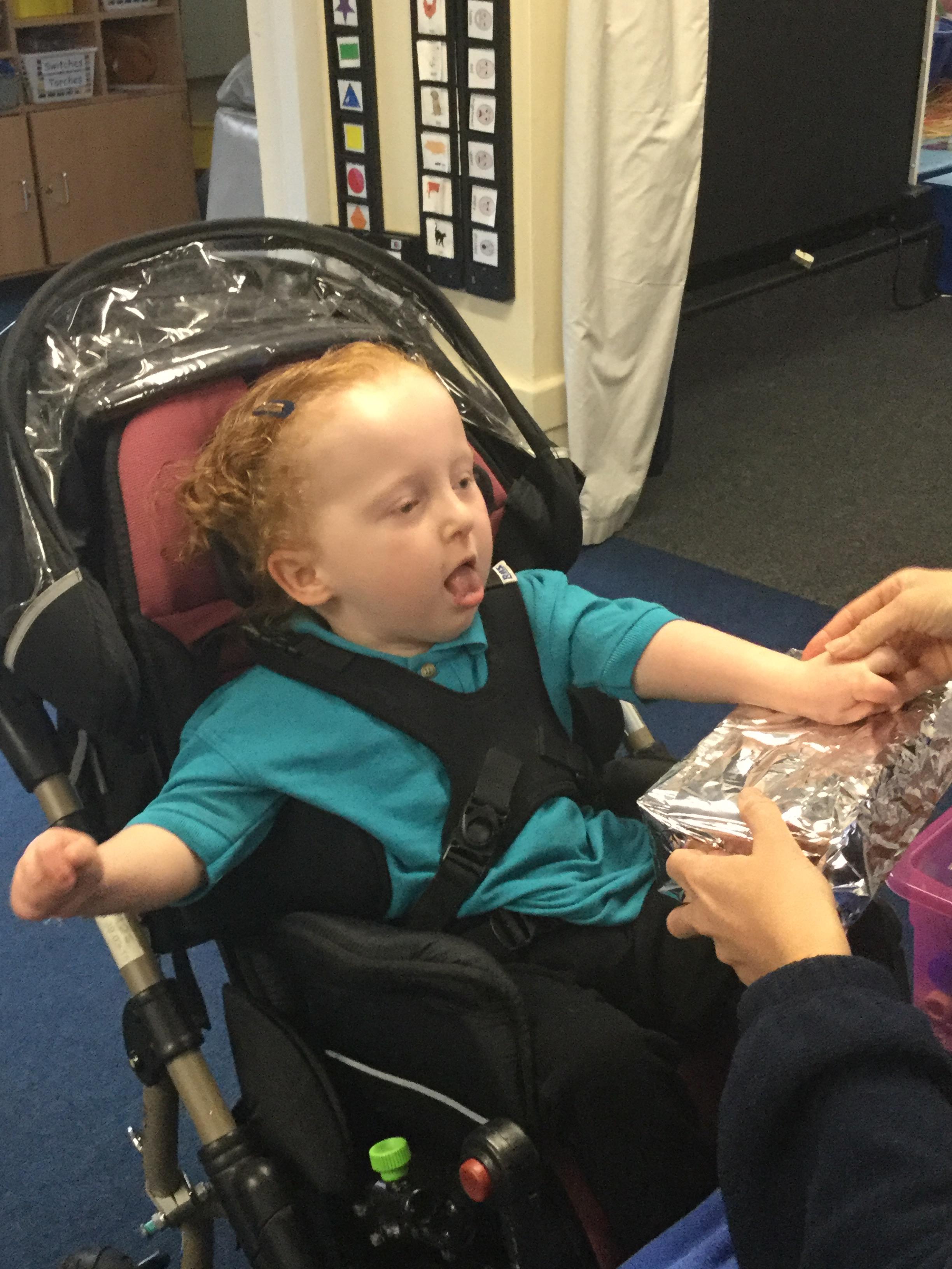 Sparkle curriculum is predominantly made up of sensory themed learning and therapeutic activities. More time will be spent on more beneficial, holistic and individualised activities e.g. positioning in specialised equipment, visual stimulation, hand and finger work (exploration – sensory play), therapies (hydrotherapy, rebound therapy etc), movement, relaxation, Tac Pac, story massage etc.