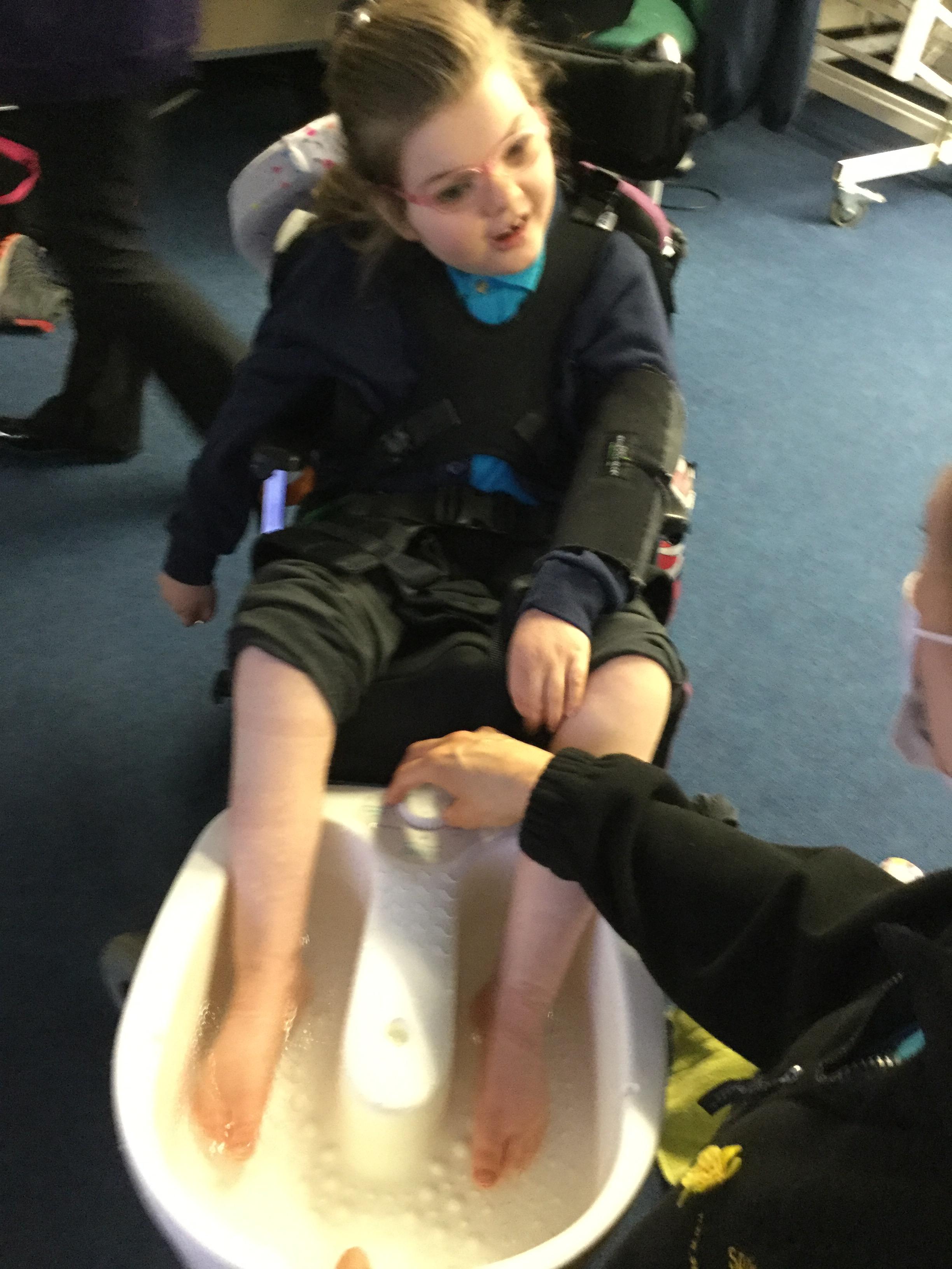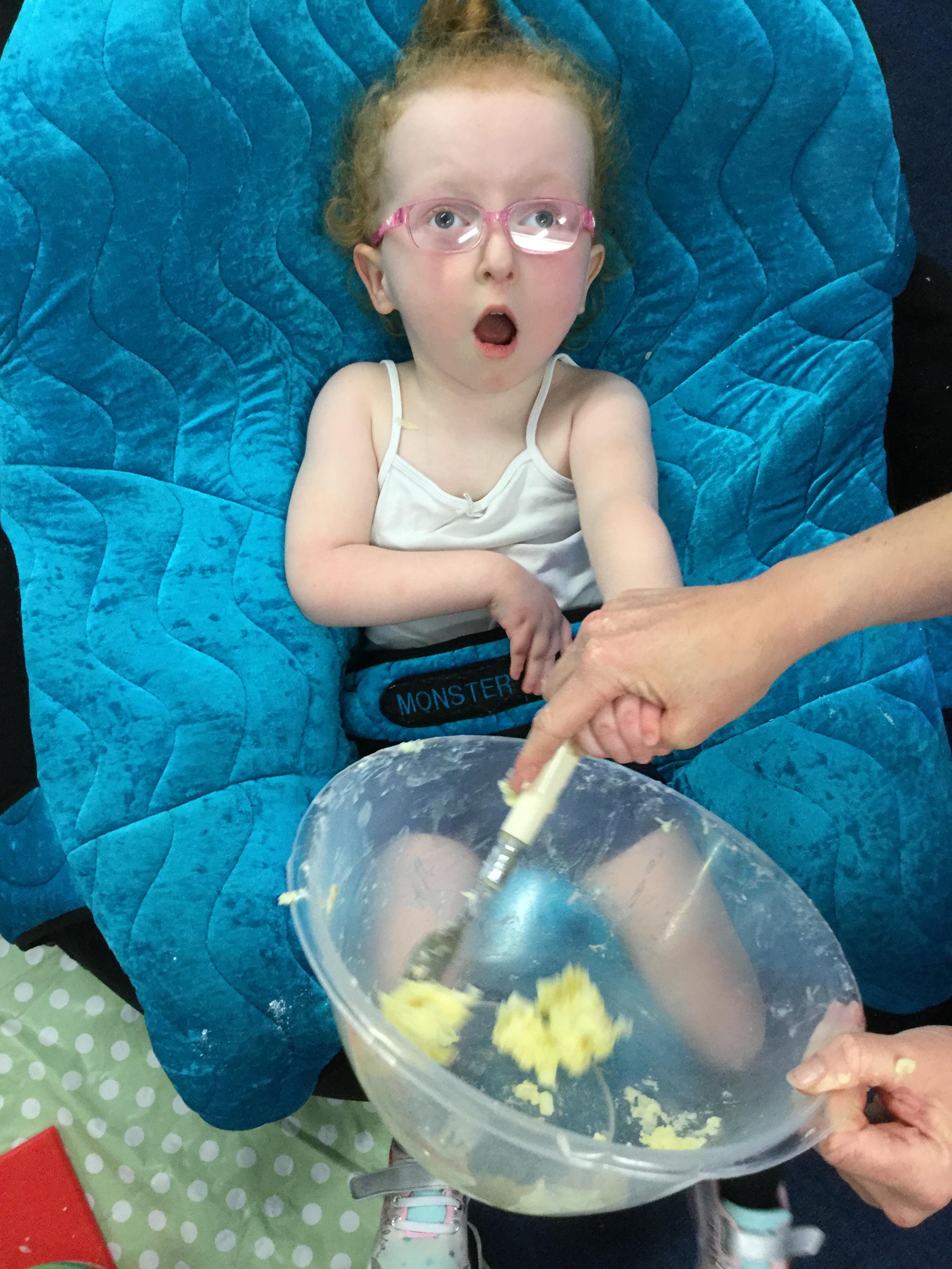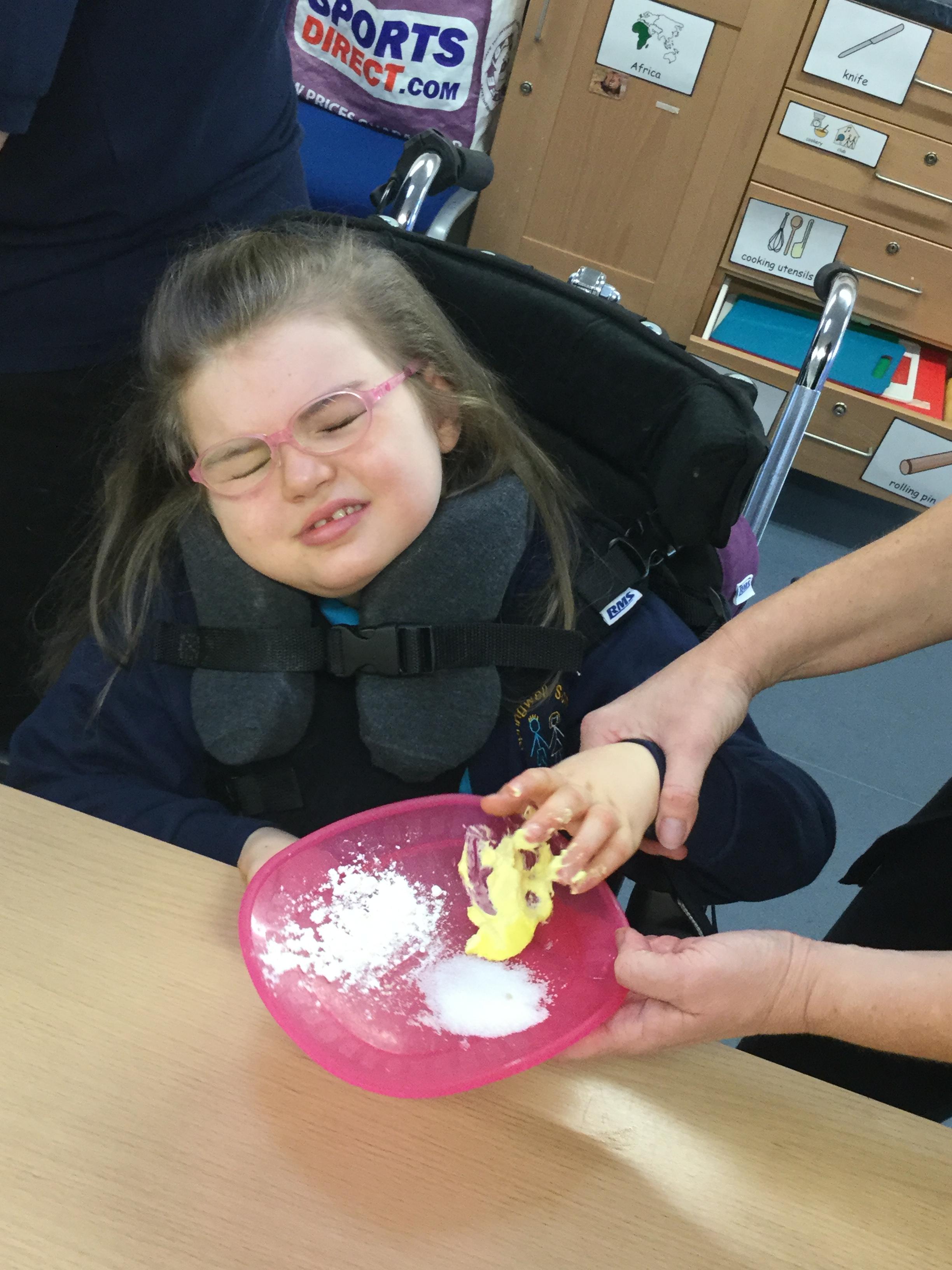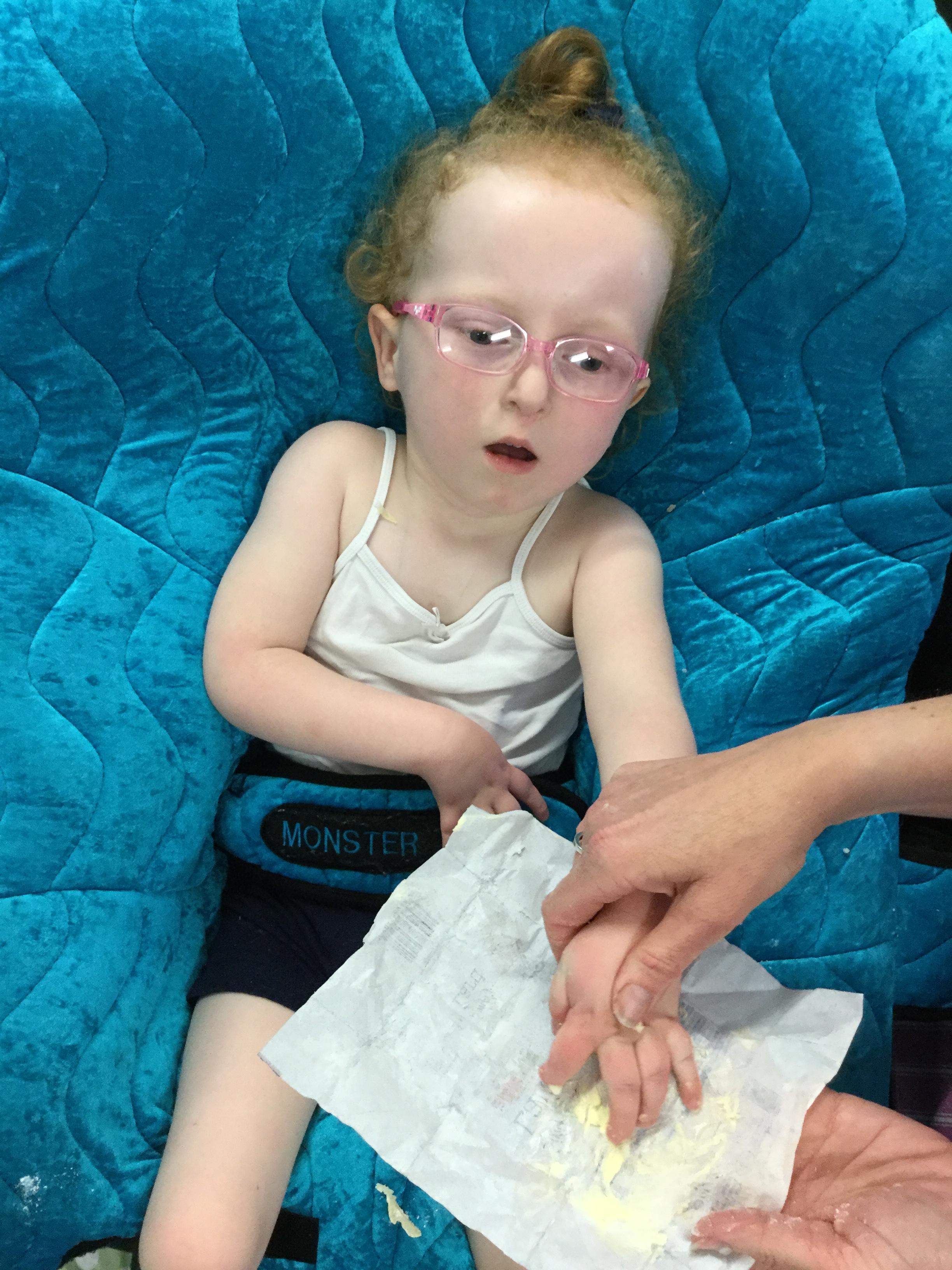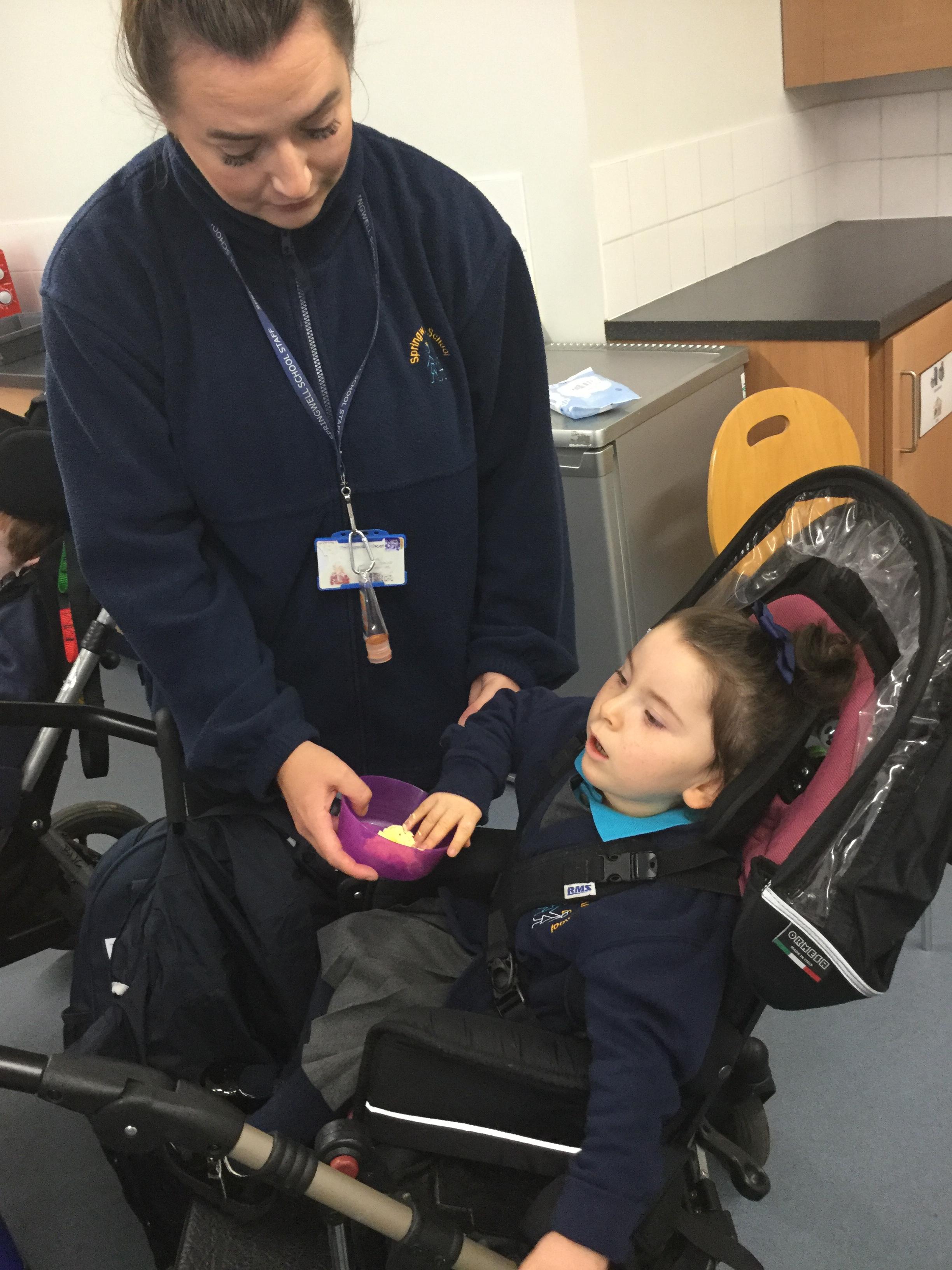 Sparkle curriculum is predominantly made up of sensory themed learning and therapeutic activities. More time will be spent on more beneficial, holistic and individualised activities e.g. positioning in specialised equipment, visual stimulation, hand and finger work (exploration – sensory play), therapies (hydrotherapy, rebound therapy etc), movement, relaxation, Tac Pac, story massage etc.