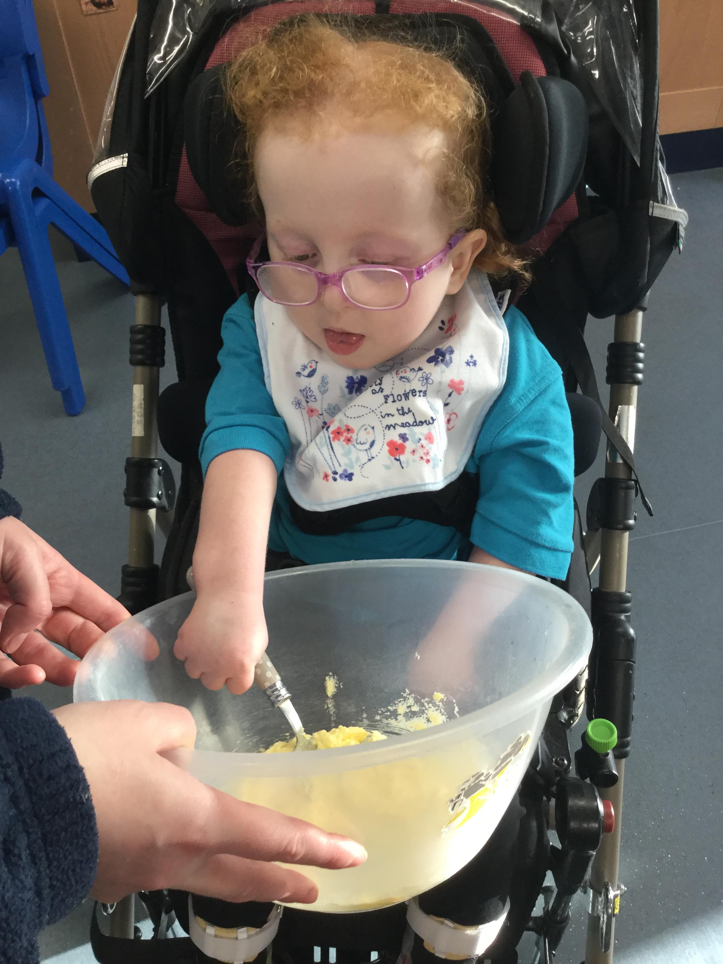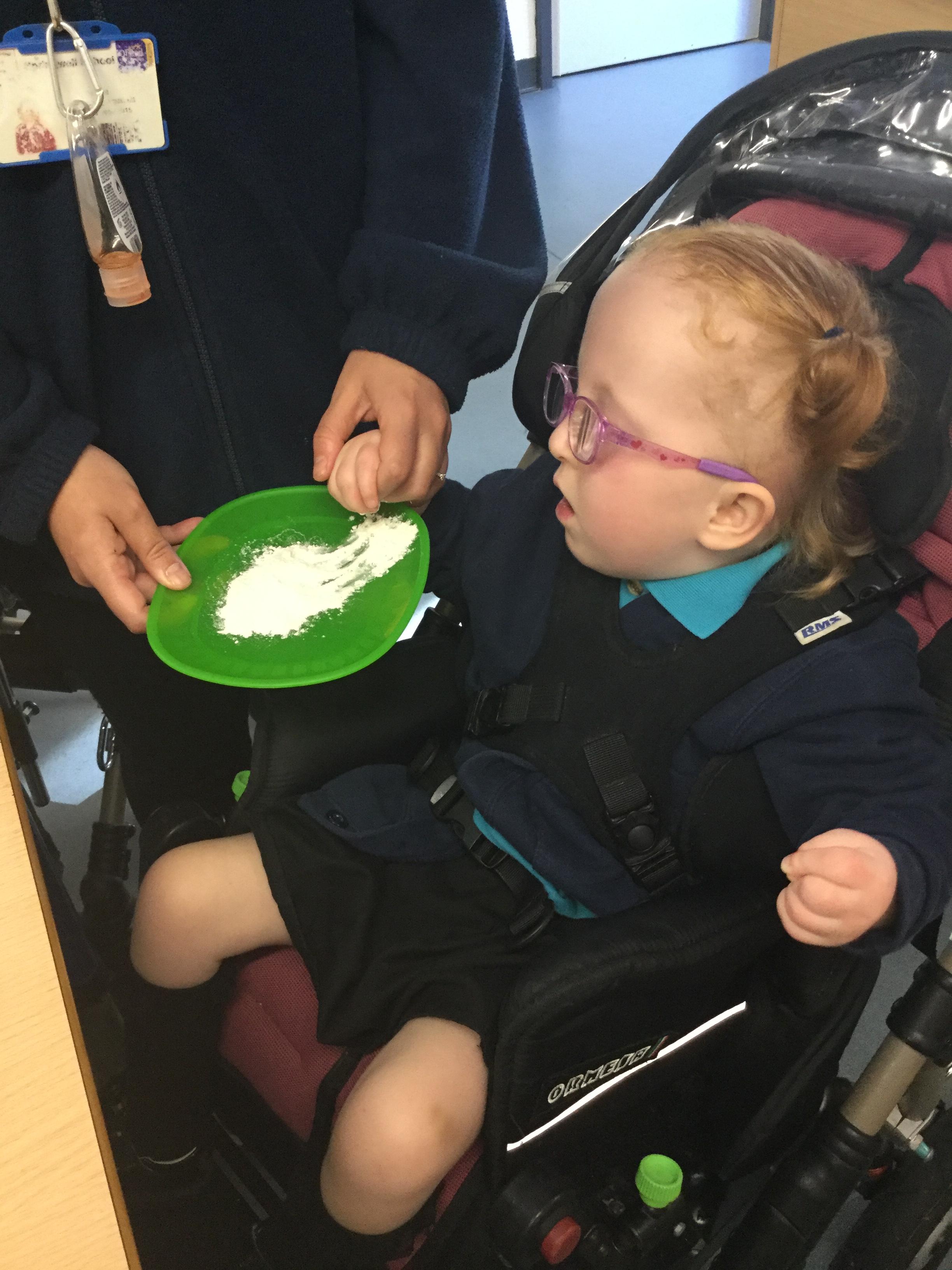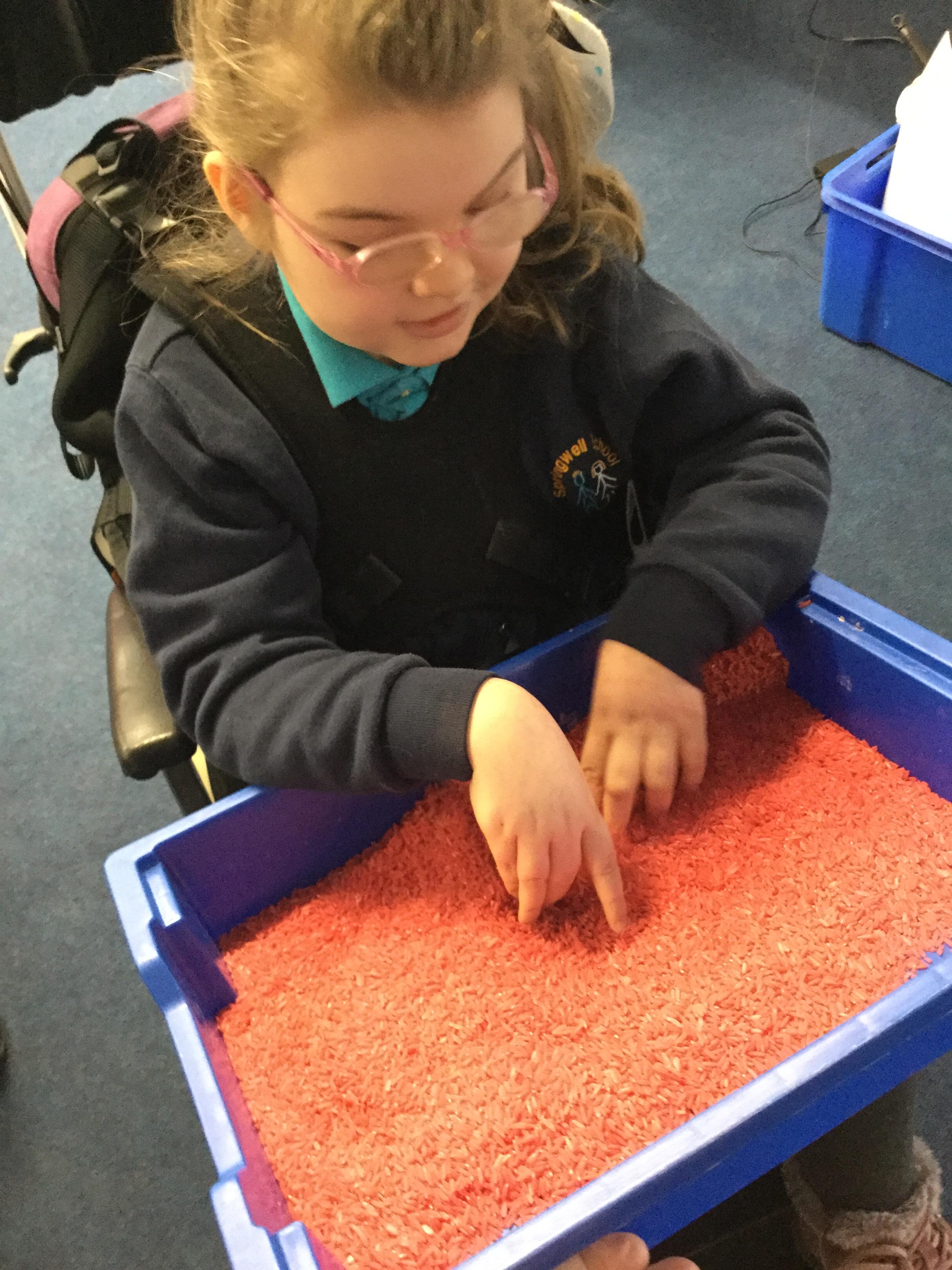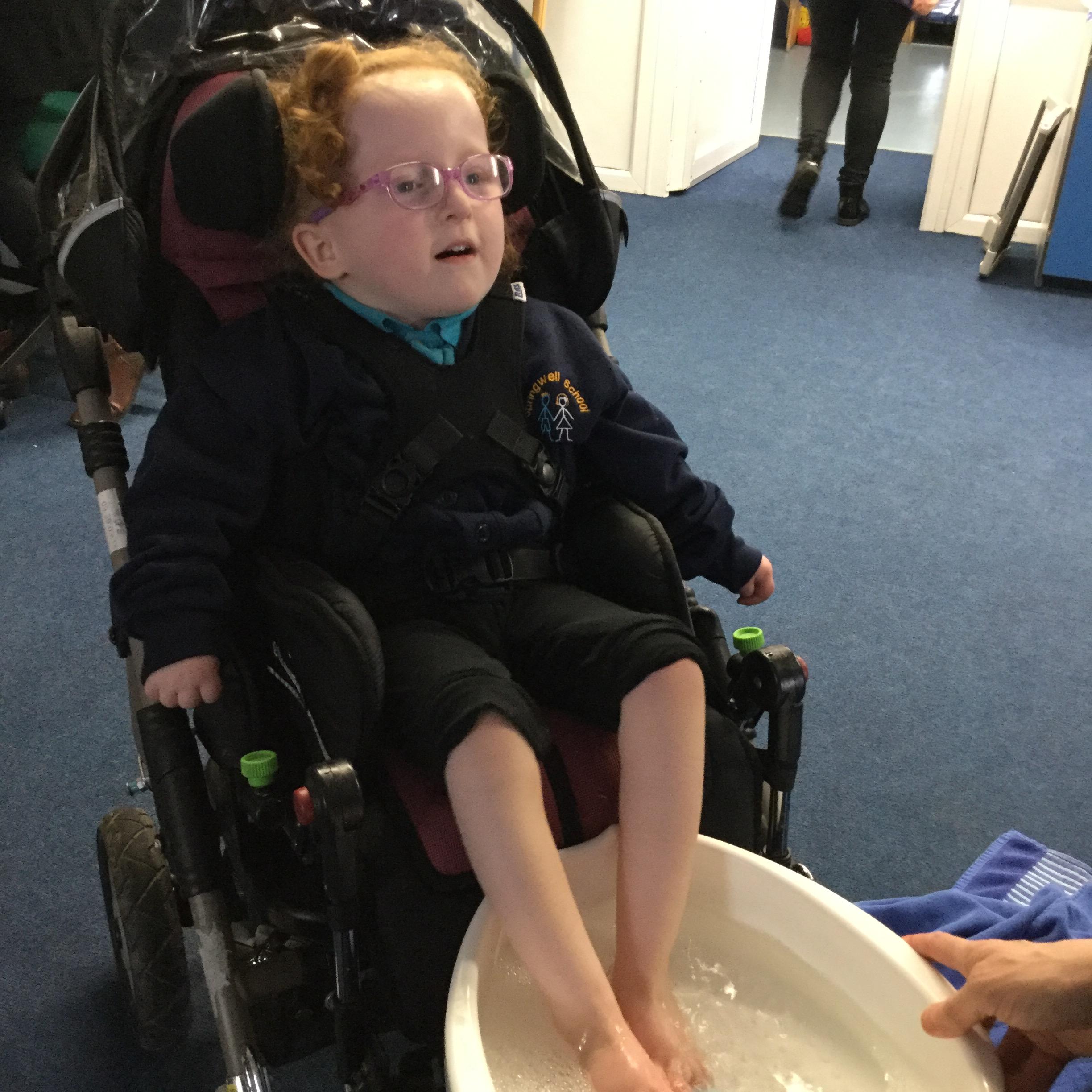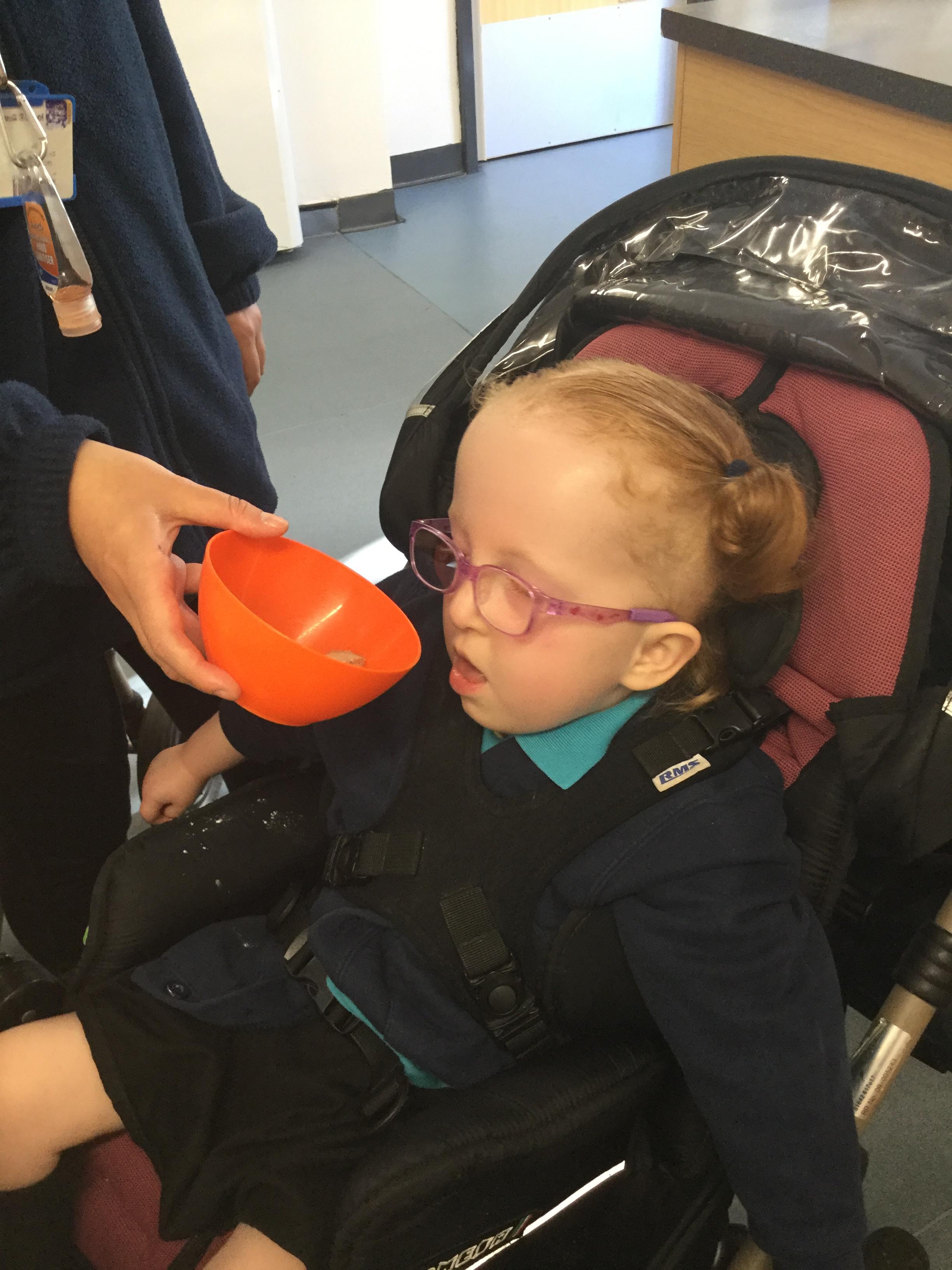 Sparkle curriculum is predominantly made up of sensory themed learning and therapeutic activities. More time will be spent on more beneficial, holistic and individualised activities e.g. positioning in specialised equipment, visual stimulation, hand and finger work (exploration – sensory play), therapies (hydrotherapy, rebound therapy etc), movement, relaxation, Tac Pac, story massage etc.