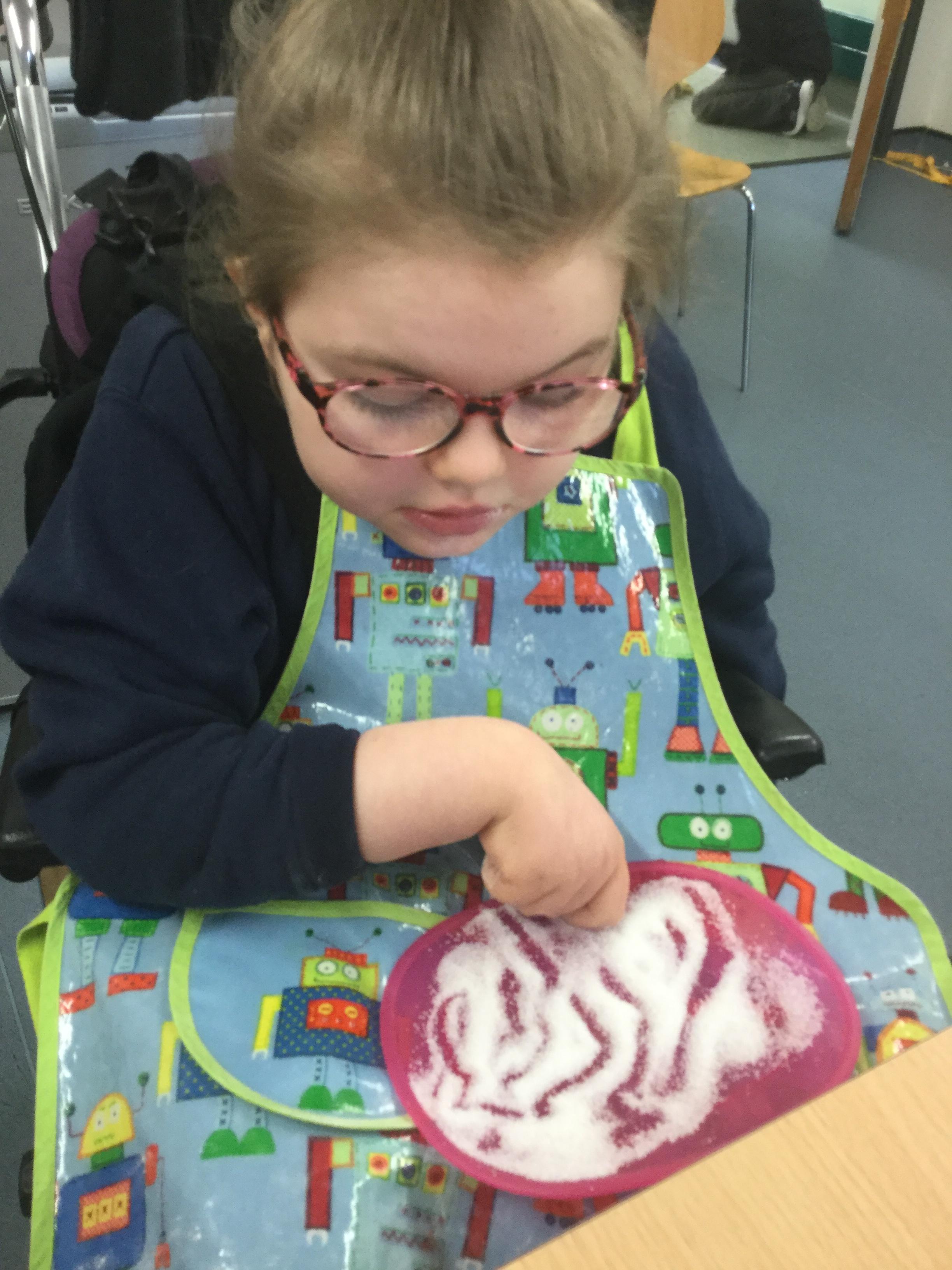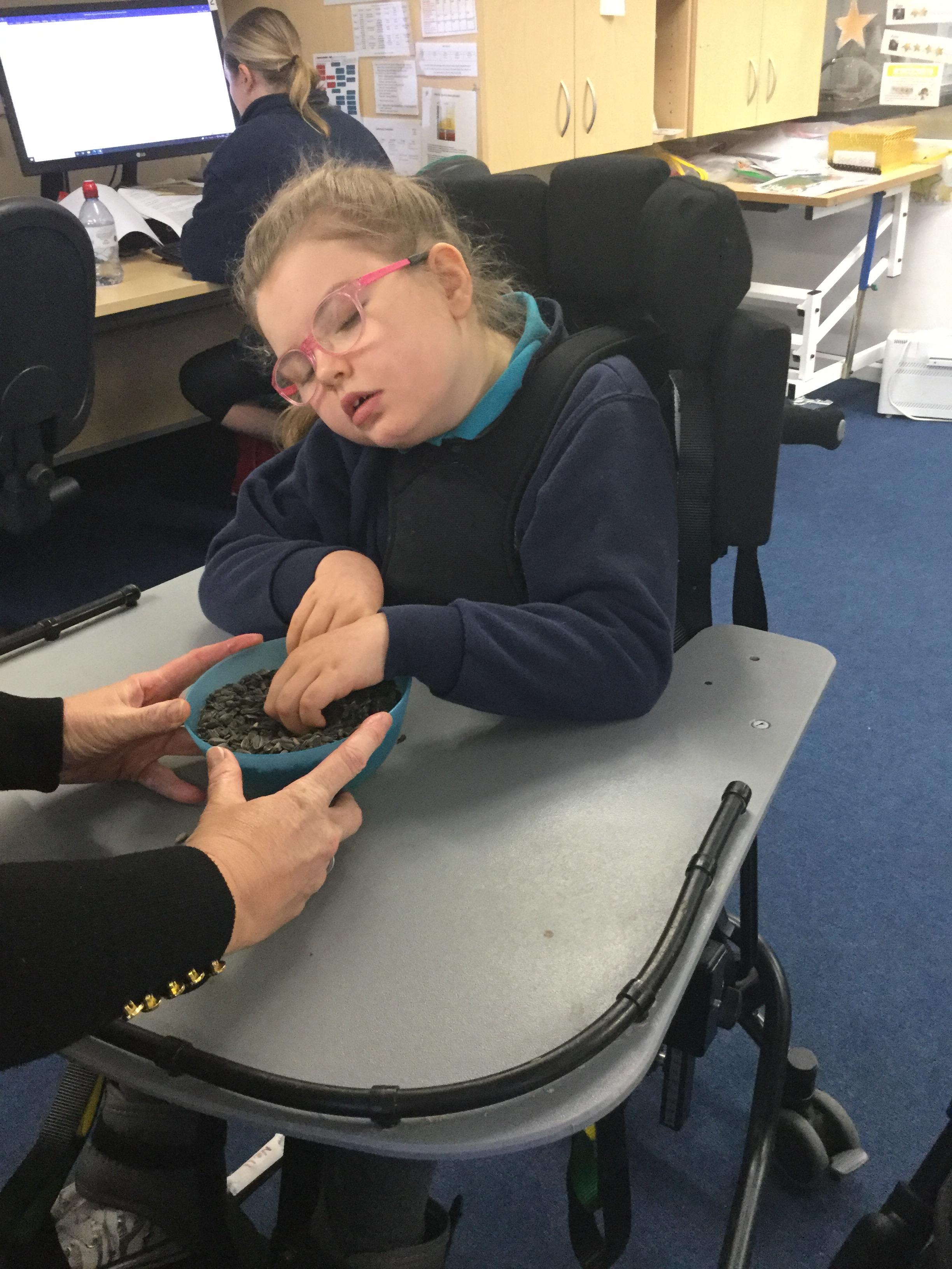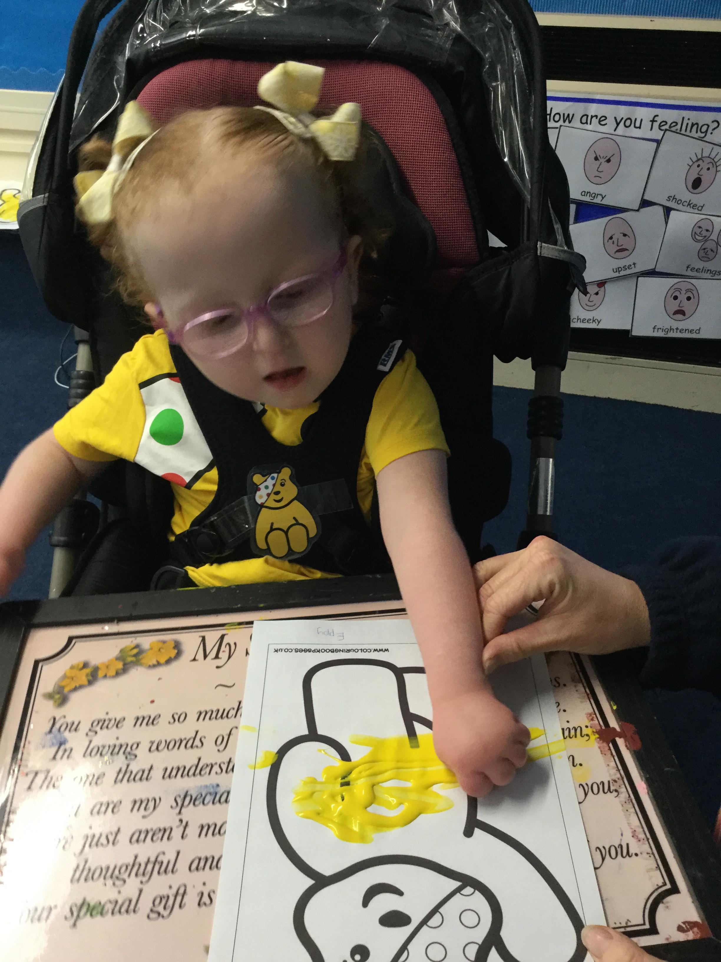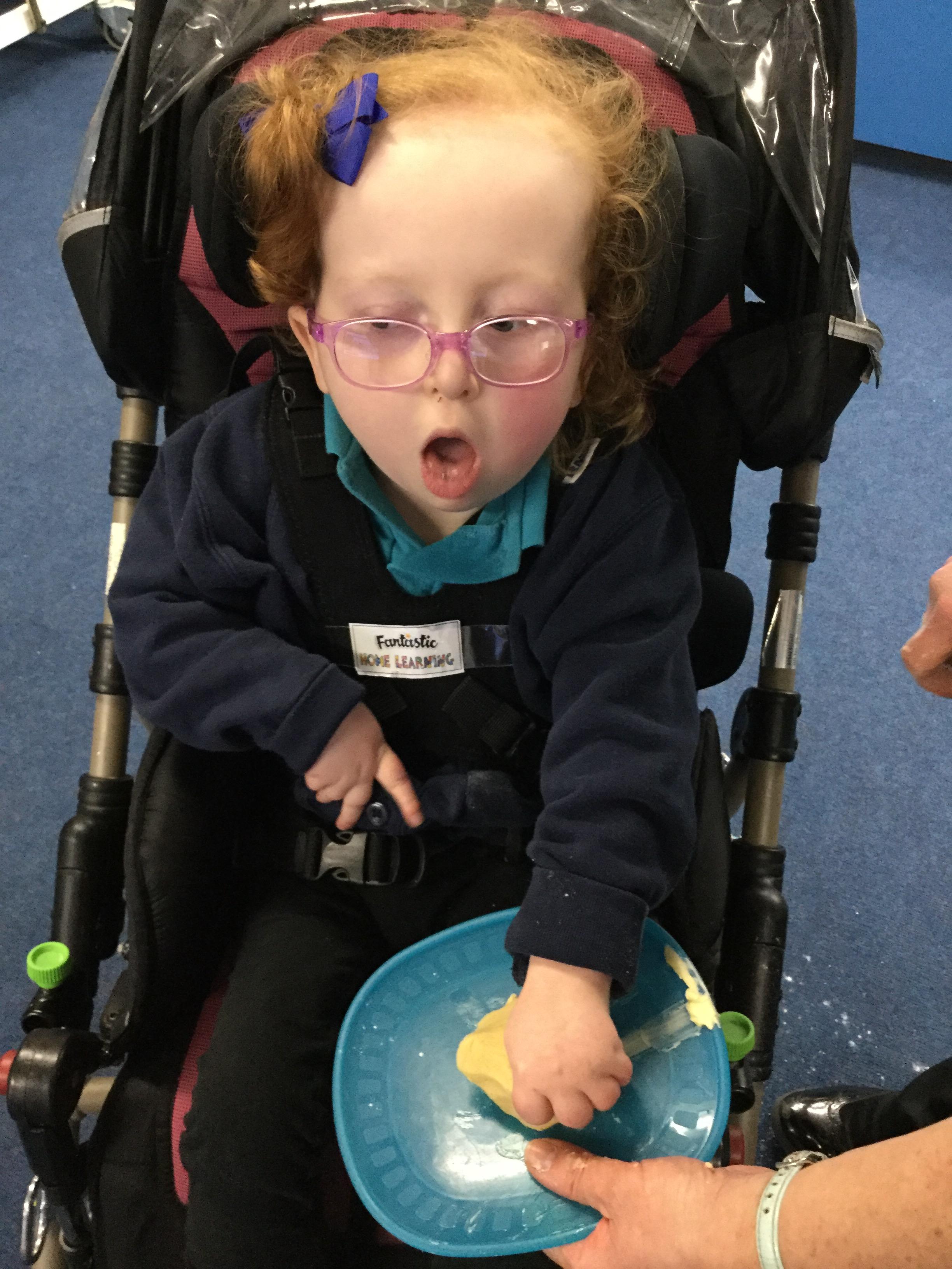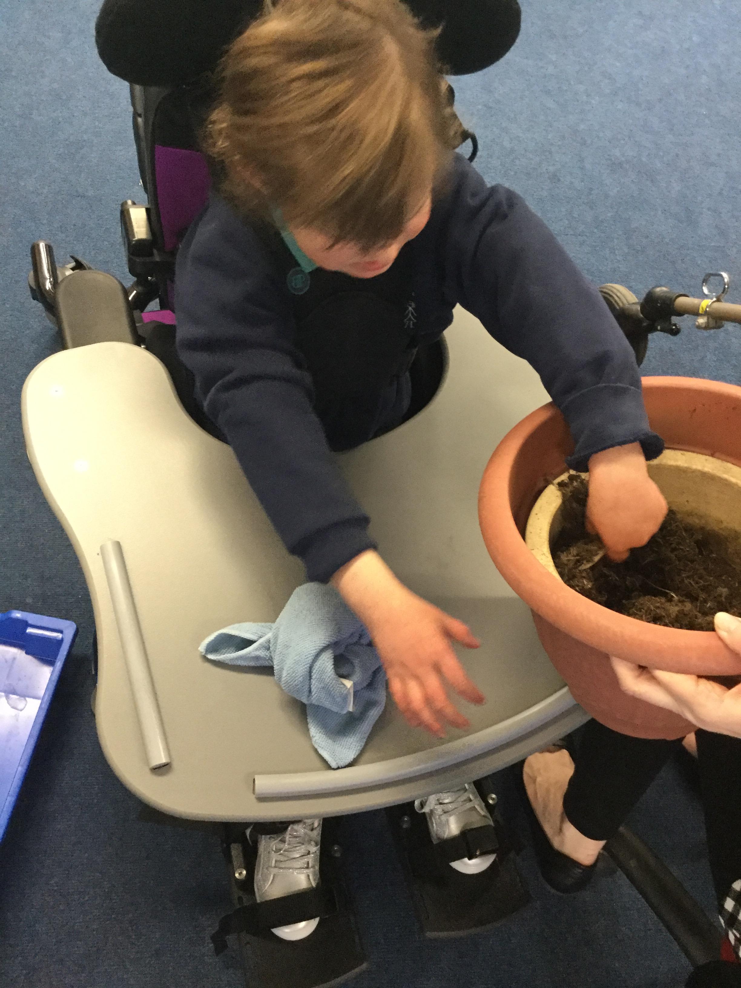 Sparkle curriculum is predominantly made up of sensory themed learning and therapeutic activities. More time will be spent on more beneficial, holistic and individualised activities e.g. positioning in specialised equipment, visual stimulation, hand and finger work (exploration – sensory play), therapies (hydrotherapy, rebound therapy etc), movement, relaxation, Tac Pac, story massage etc.