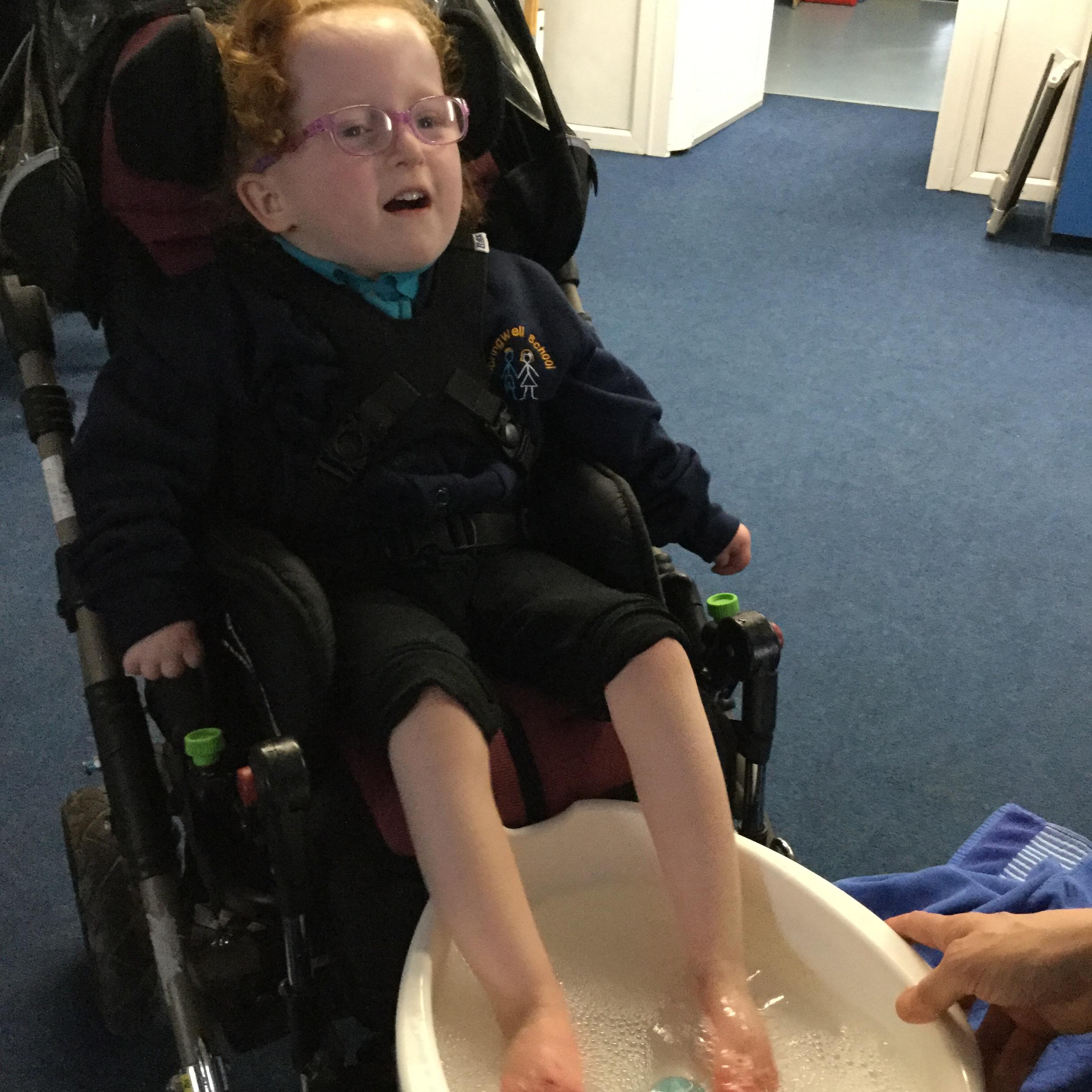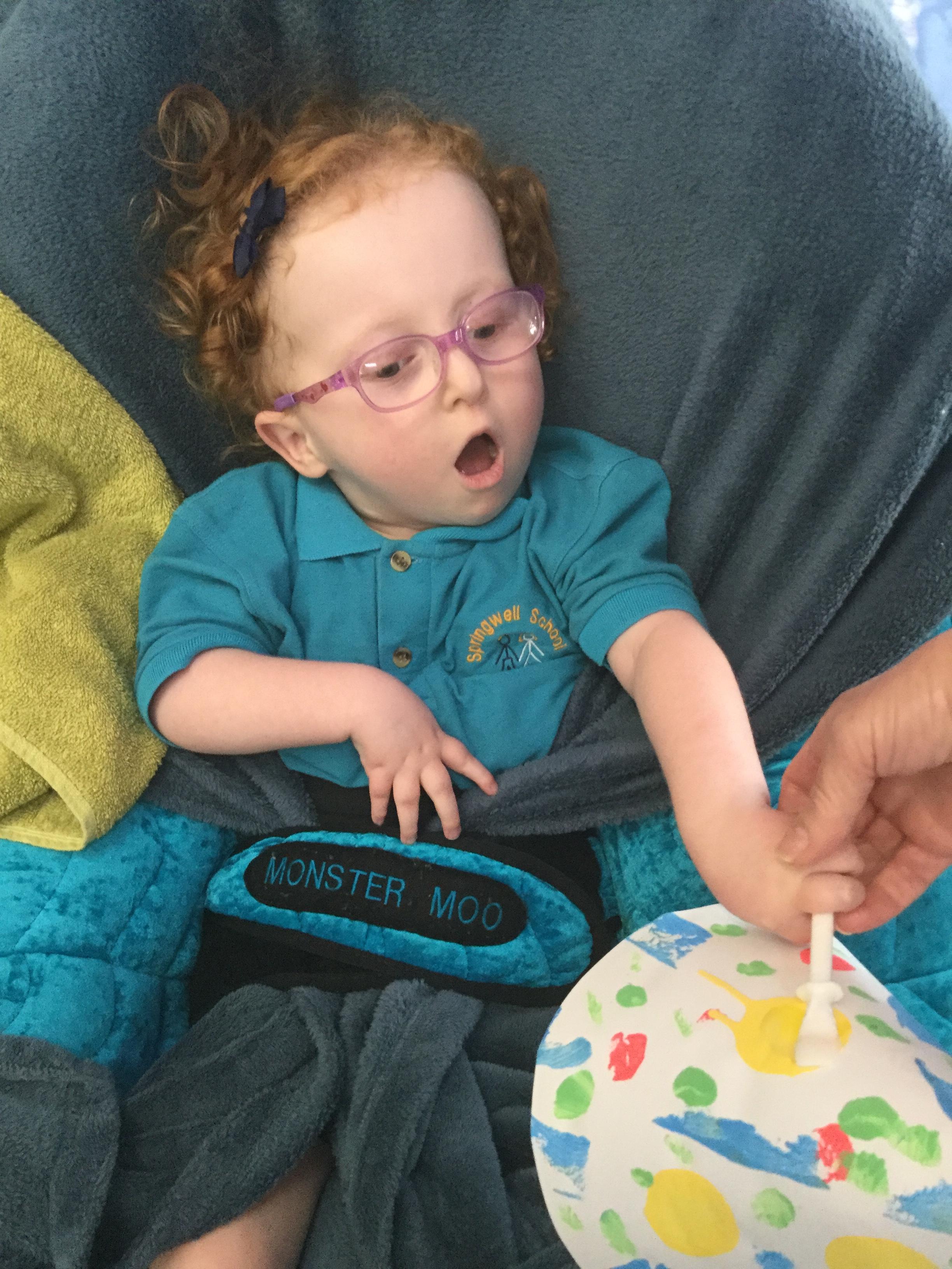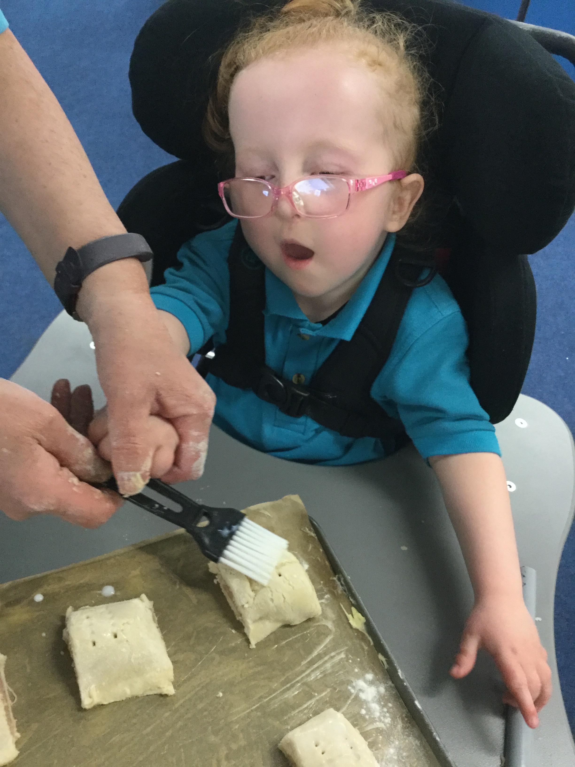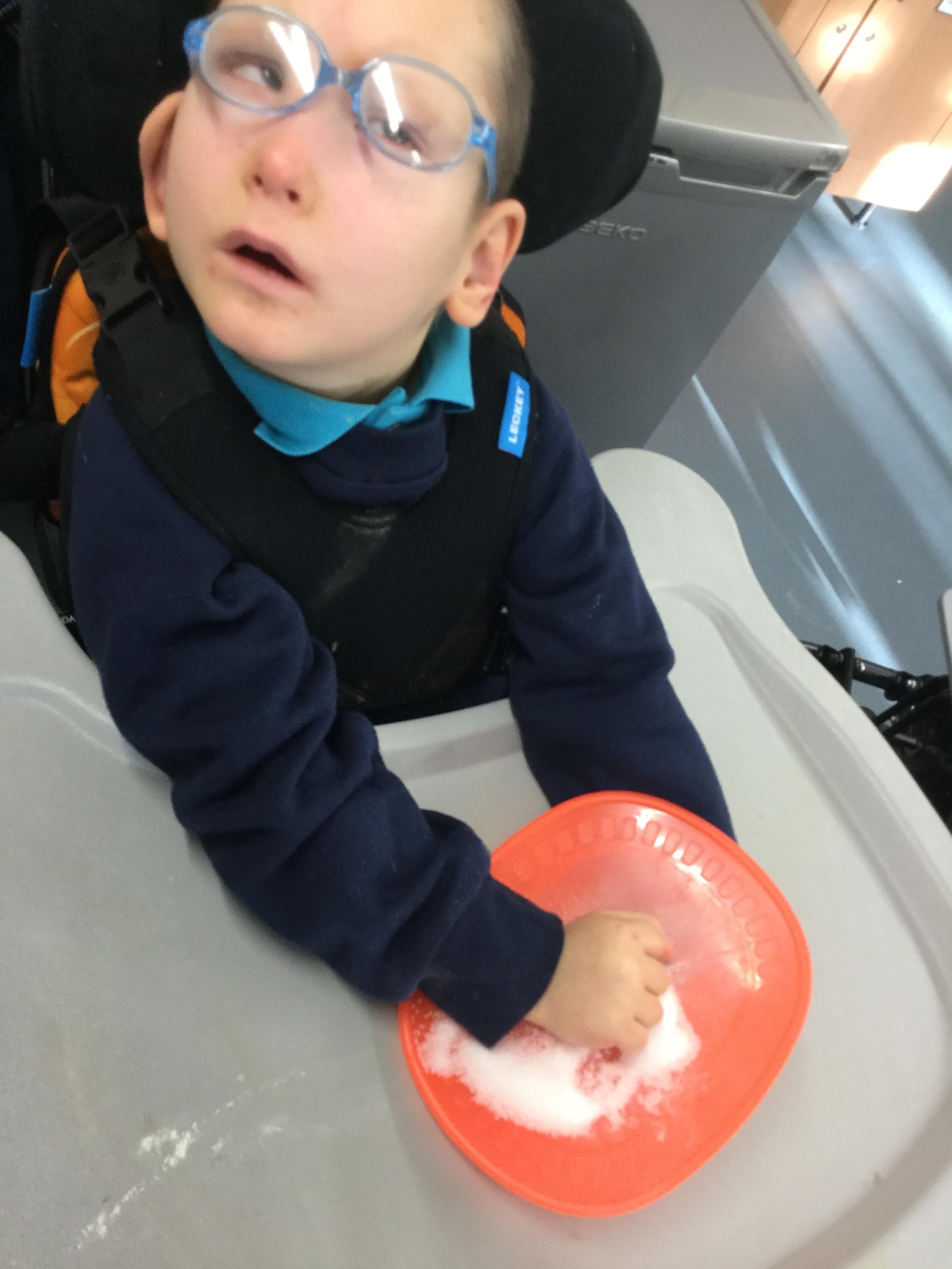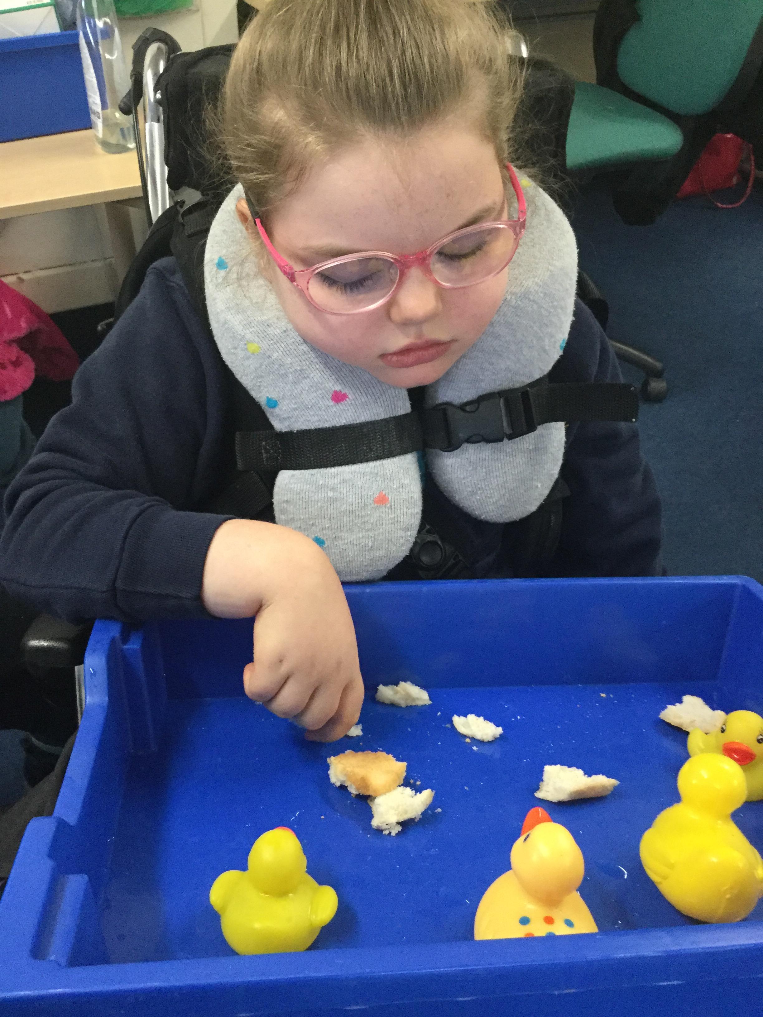Sparkle curriculum is predominantly made up of sensory themed learning and therapeutic activities. More time will be spent on more beneficial, holistic and individualised activities e.g. positioning in specialised equipment, visual stimulation, hand and finger work (exploration – sensory play), therapies (hydrotherapy, rebound therapy etc), movement, relaxation, Tac Pac, story massage etc.