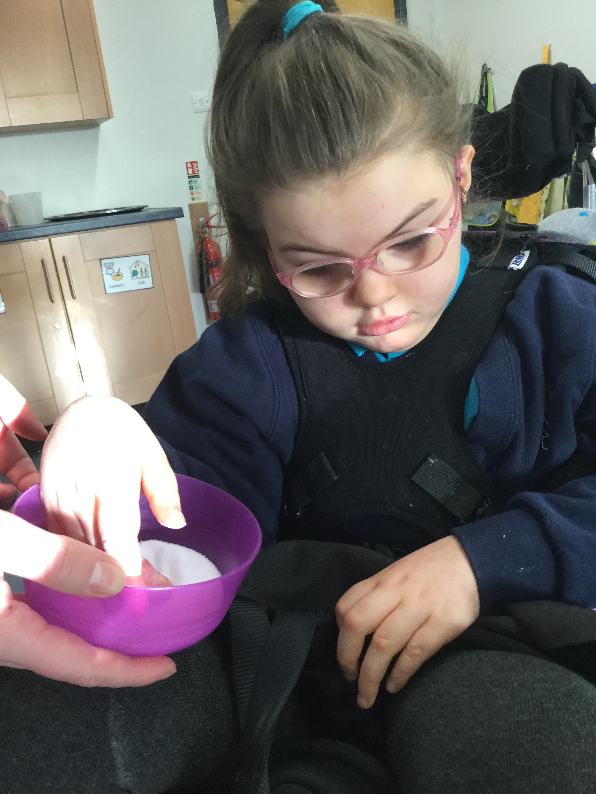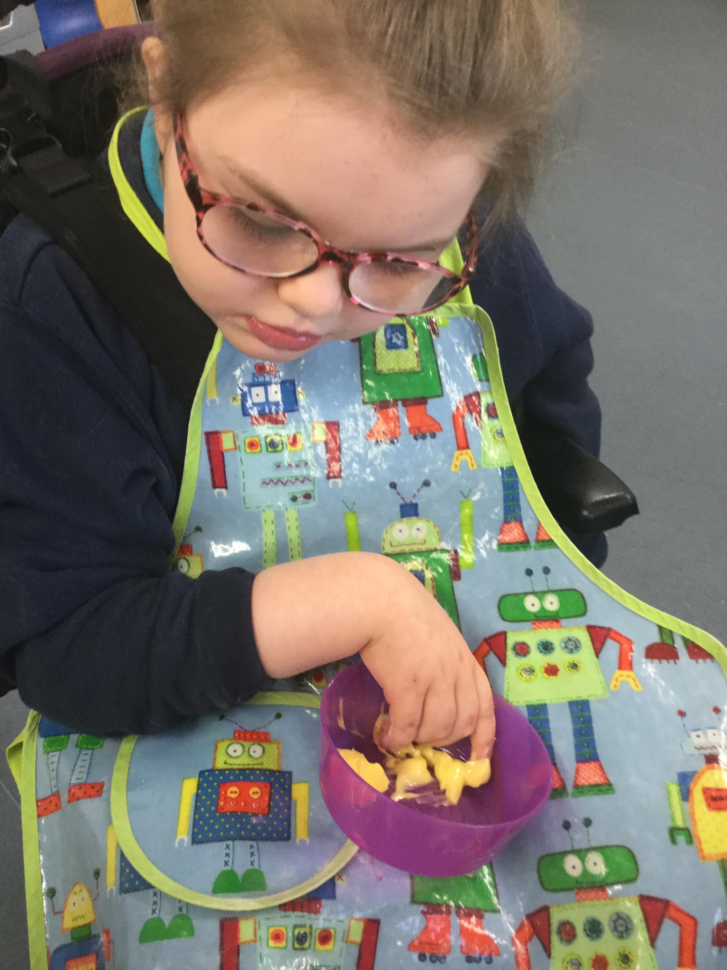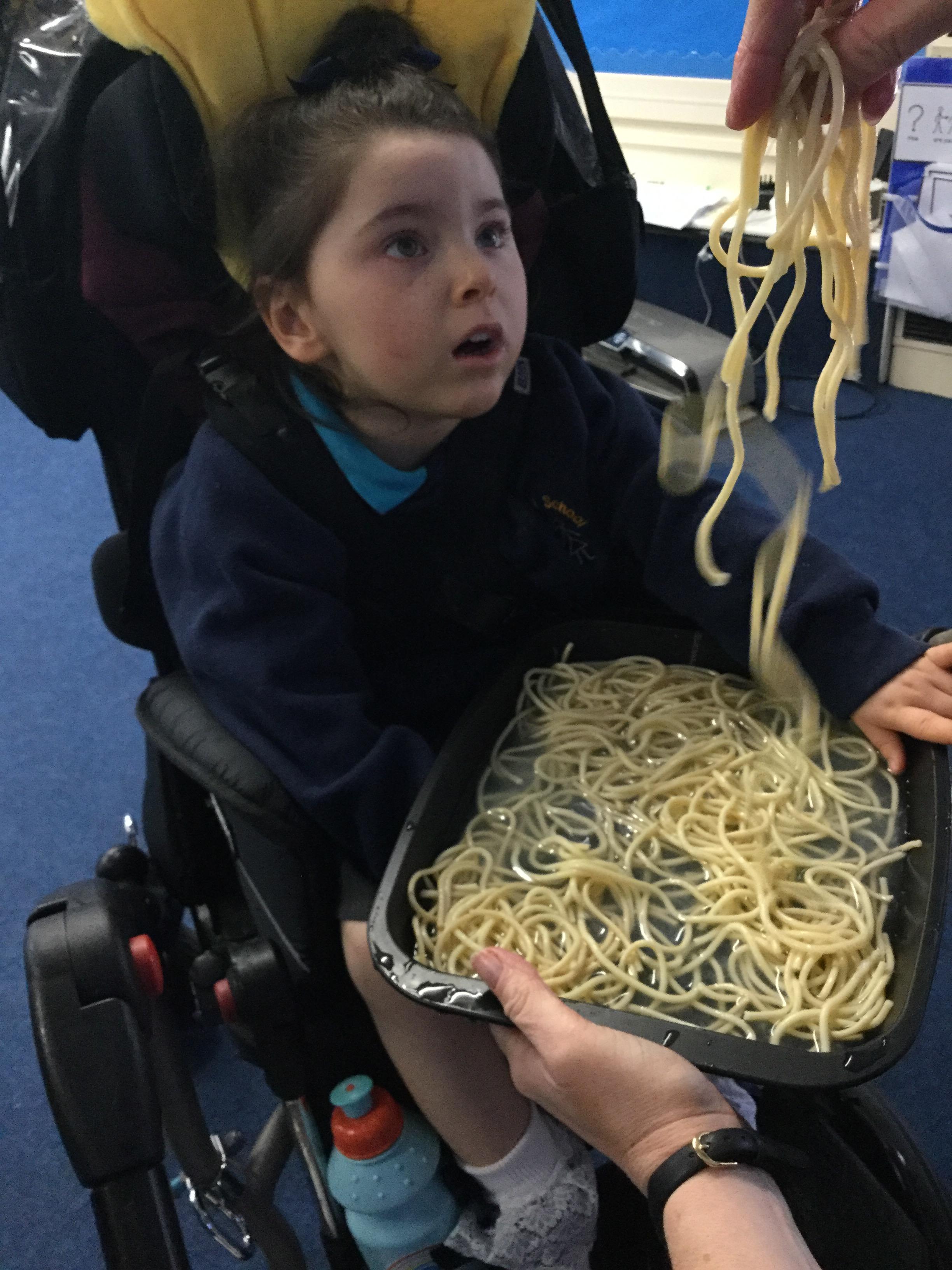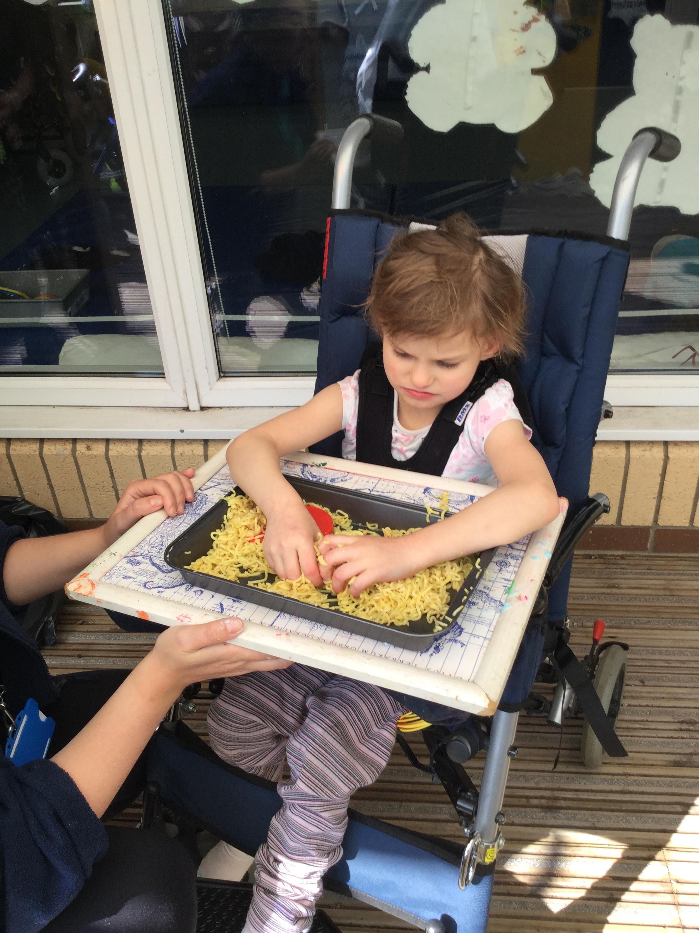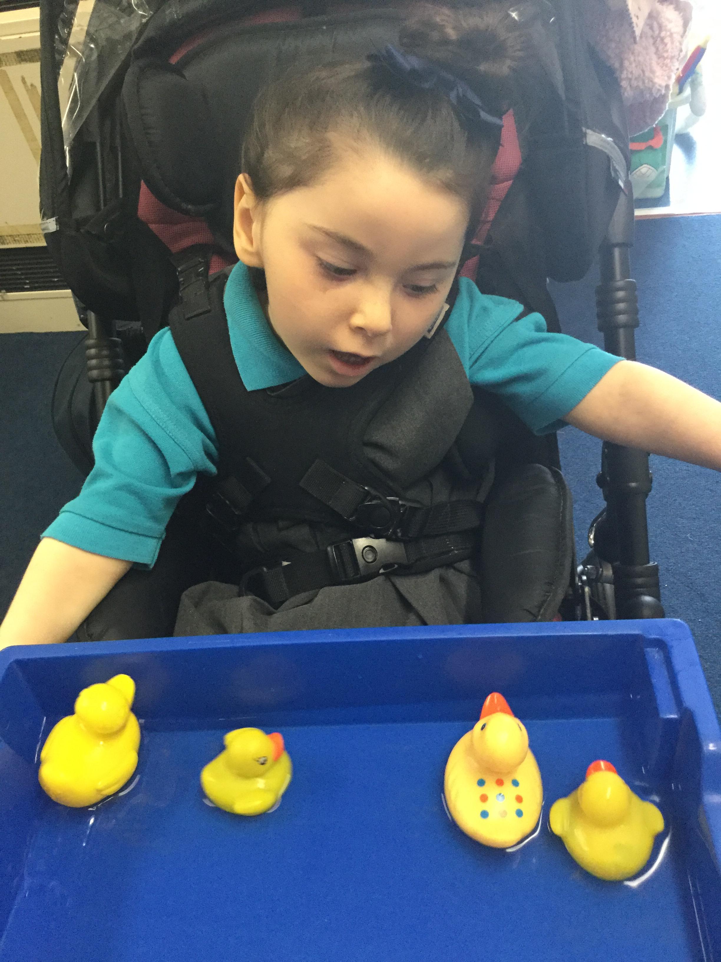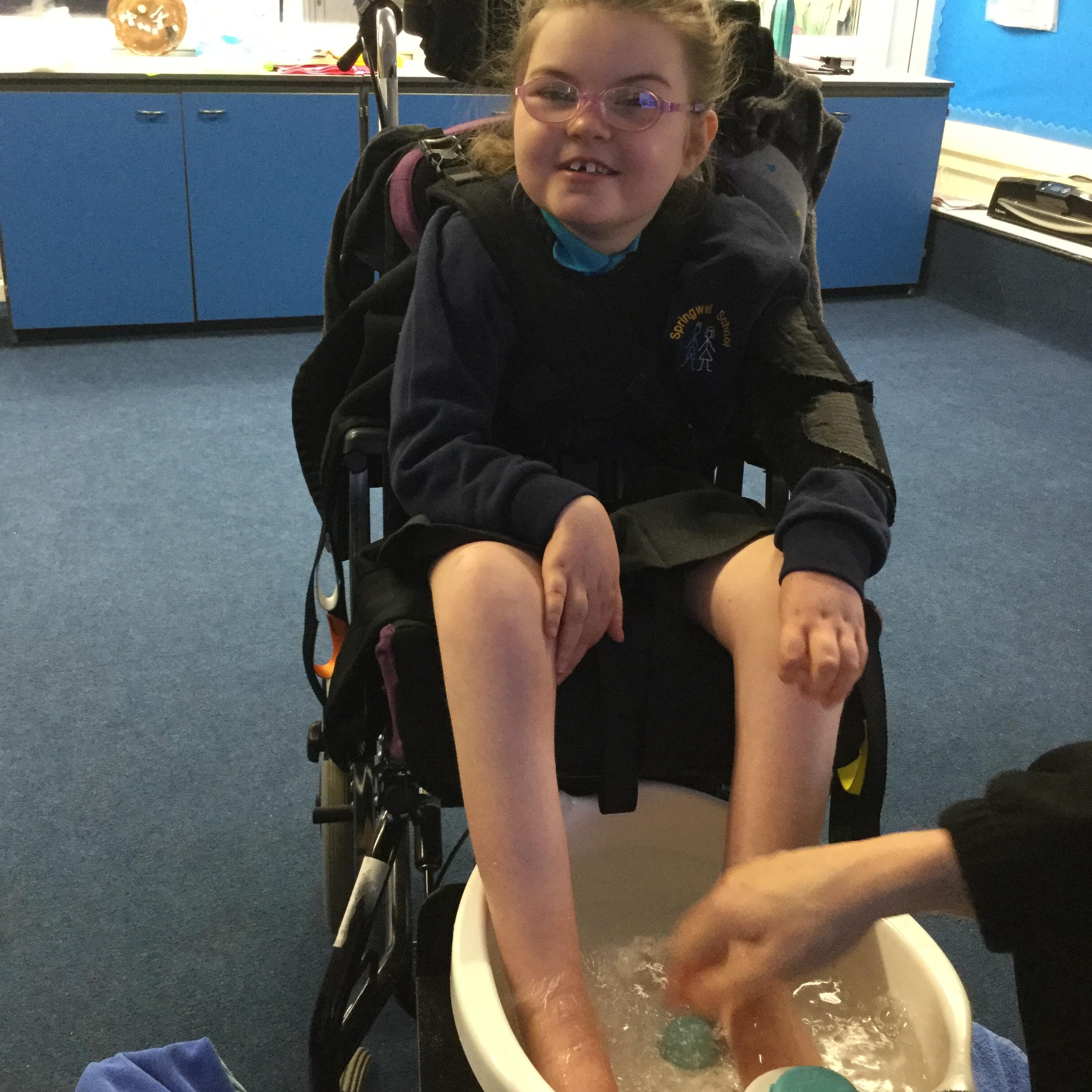 Sparkle curriculum is predominantly made up of sensory themed learning and therapeutic activities. More time will be spent on more beneficial, holistic and individualised activities e.g. positioning in specialised equipment, visual stimulation, hand and finger work (exploration – sensory play), therapies (hydrotherapy, rebound therapy etc), movement, relaxation, Tac Pac, story massage etc.