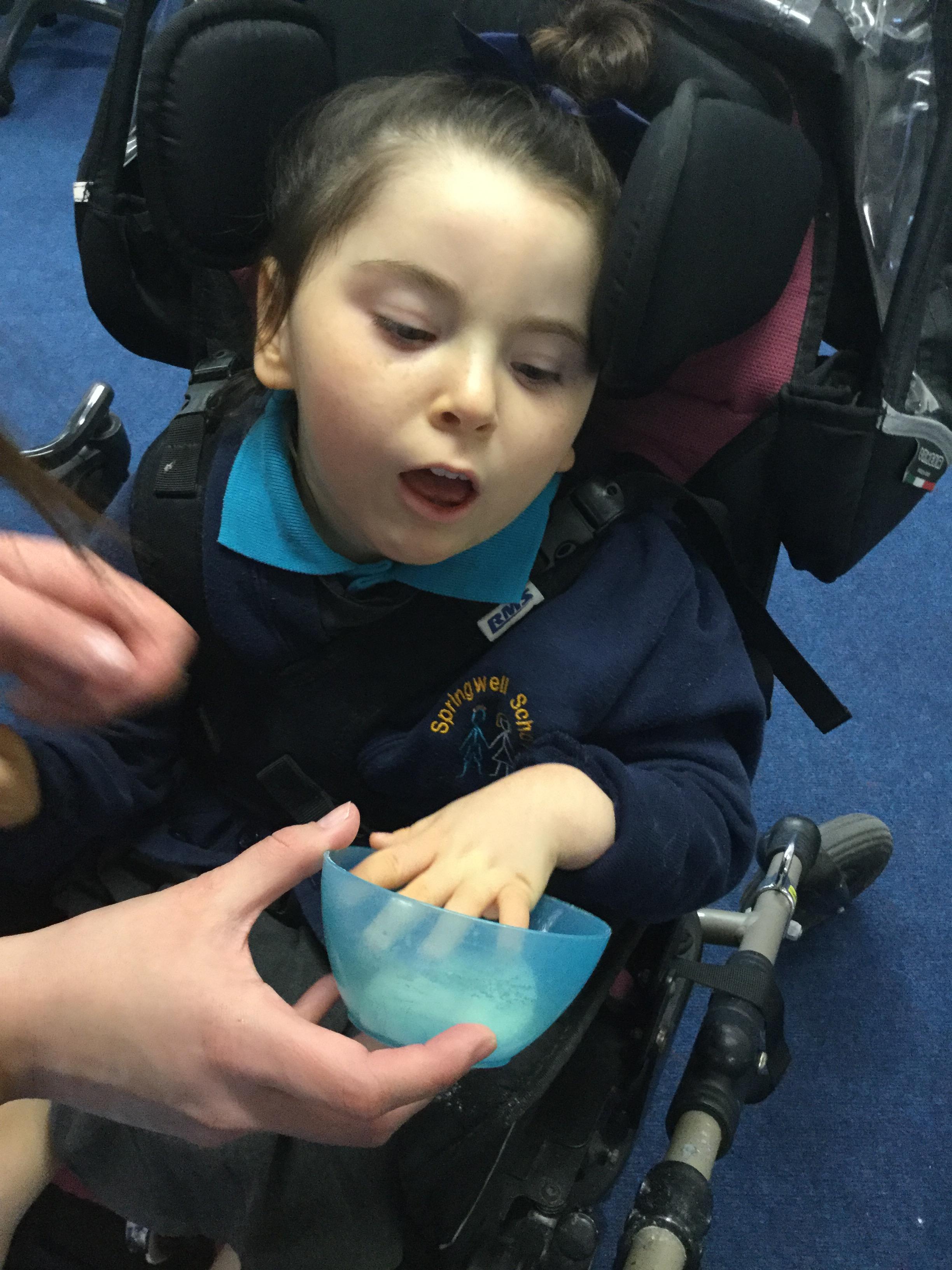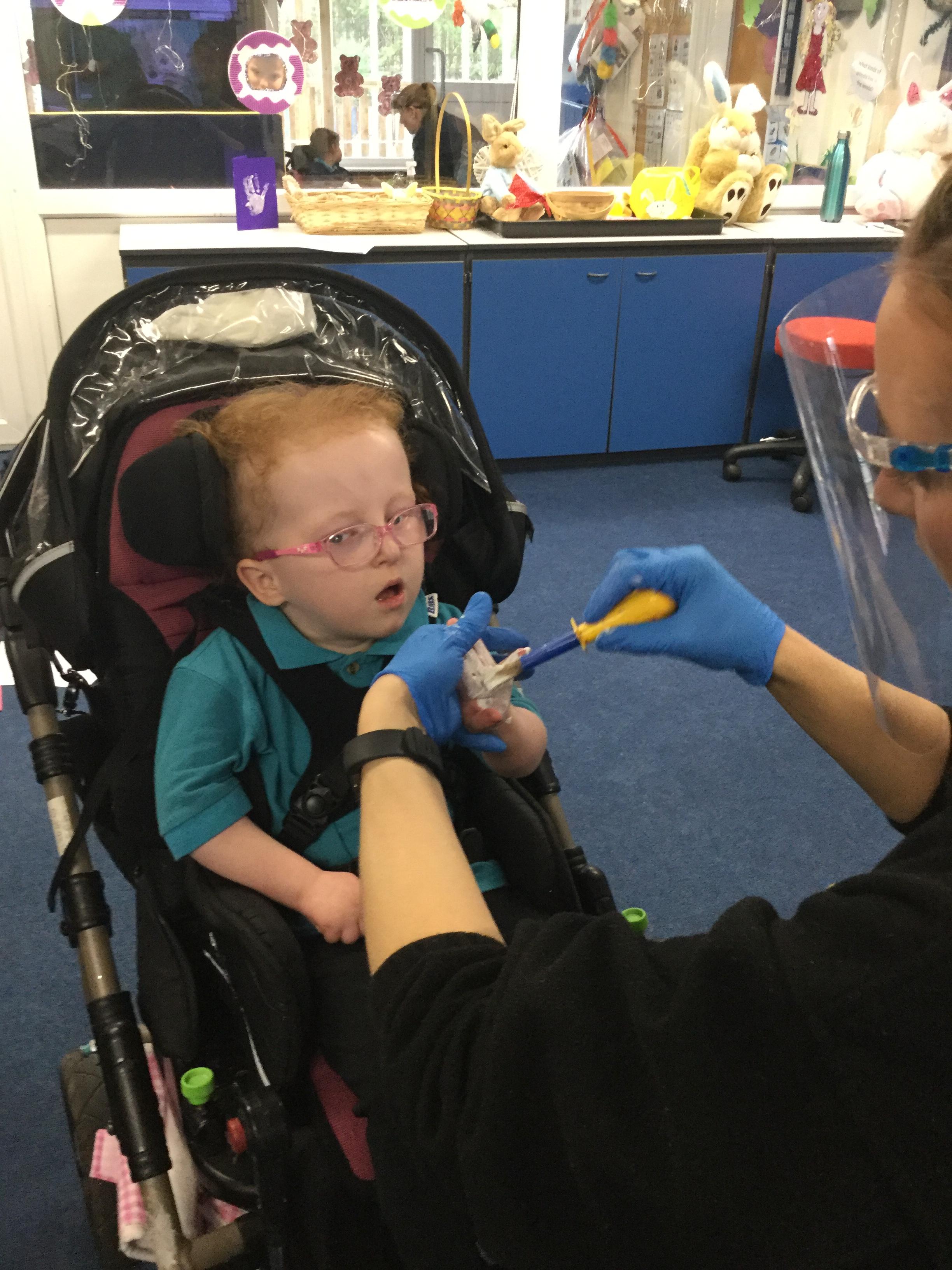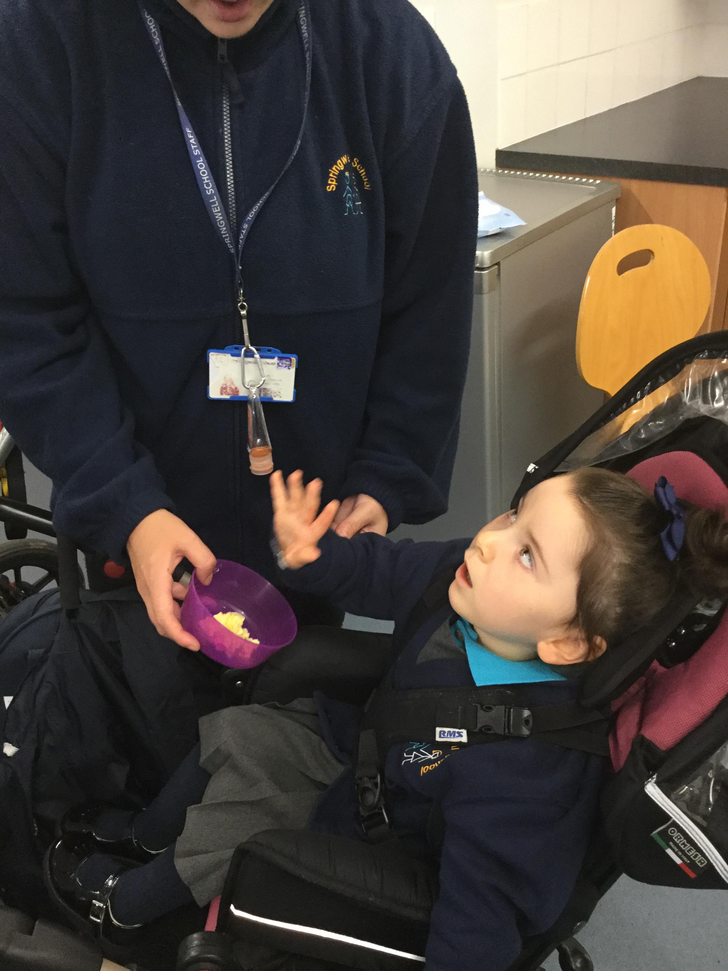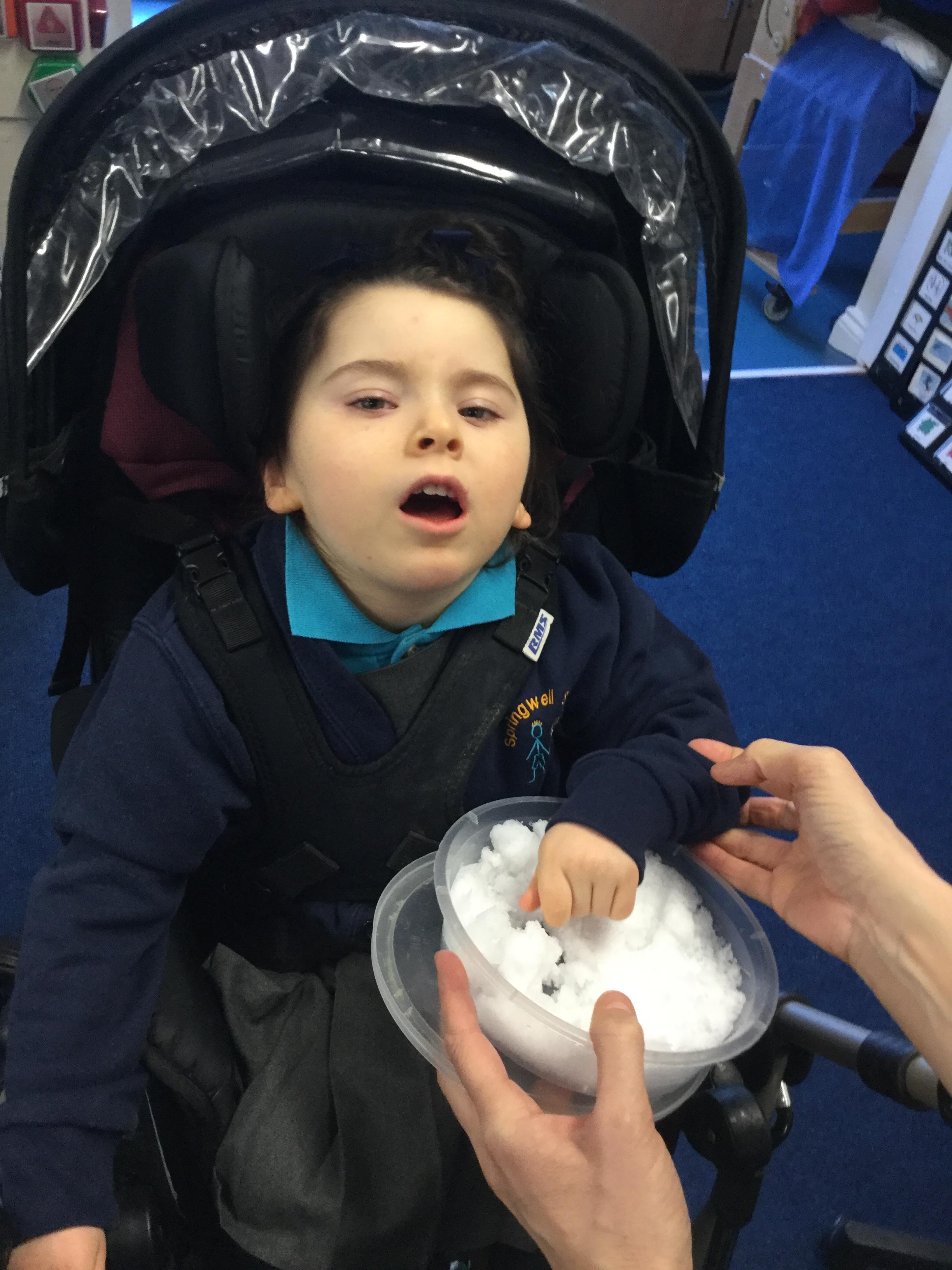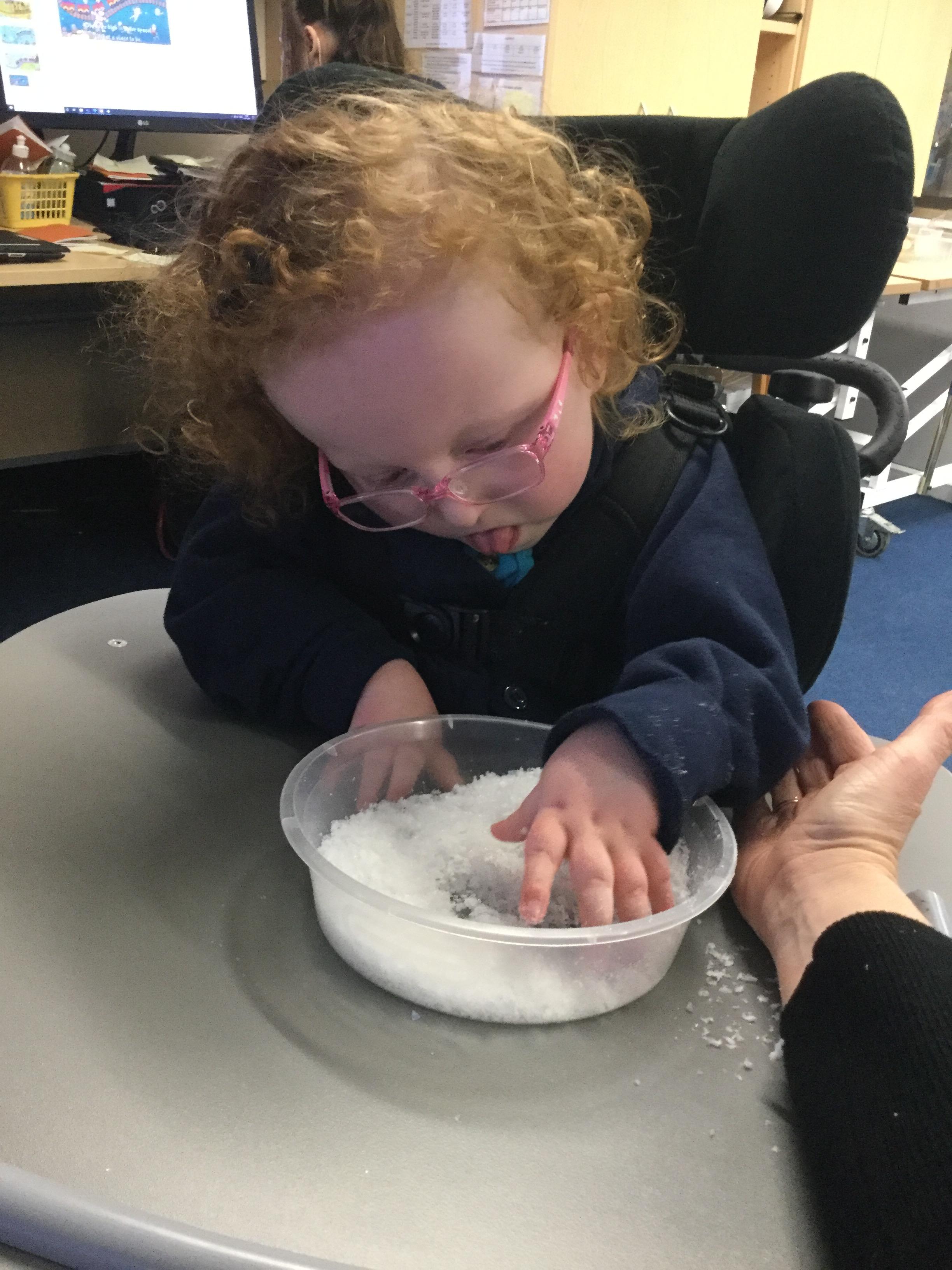 Sparkle curriculum is predominantly made up of sensory themed learning and therapeutic activities. More time will be spent on more beneficial, holistic and individualised activities e.g. positioning in specialised equipment, visual stimulation, hand and finger work (exploration – sensory play), therapies (hydrotherapy, rebound therapy etc), movement, relaxation, Tac Pac, story massage etc.