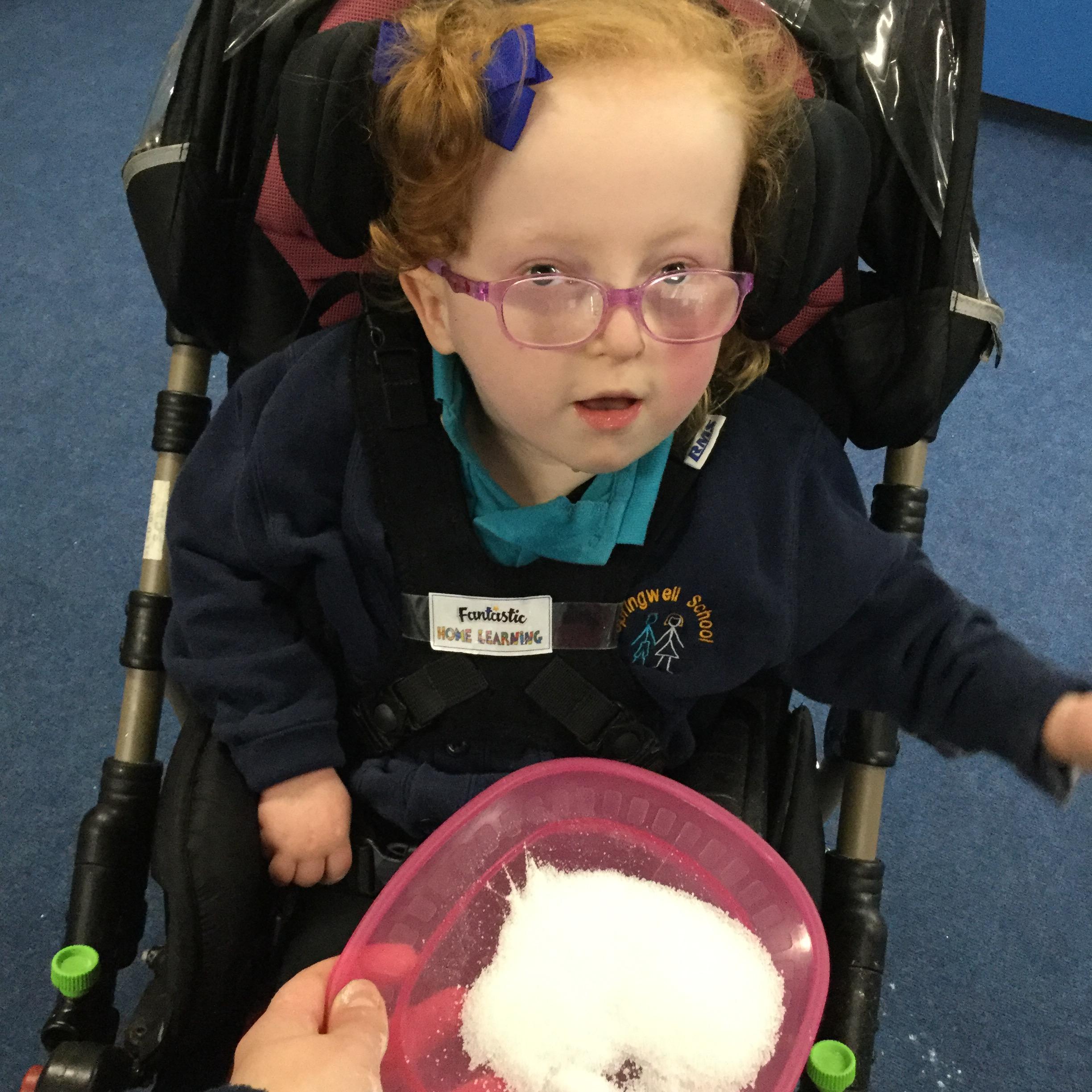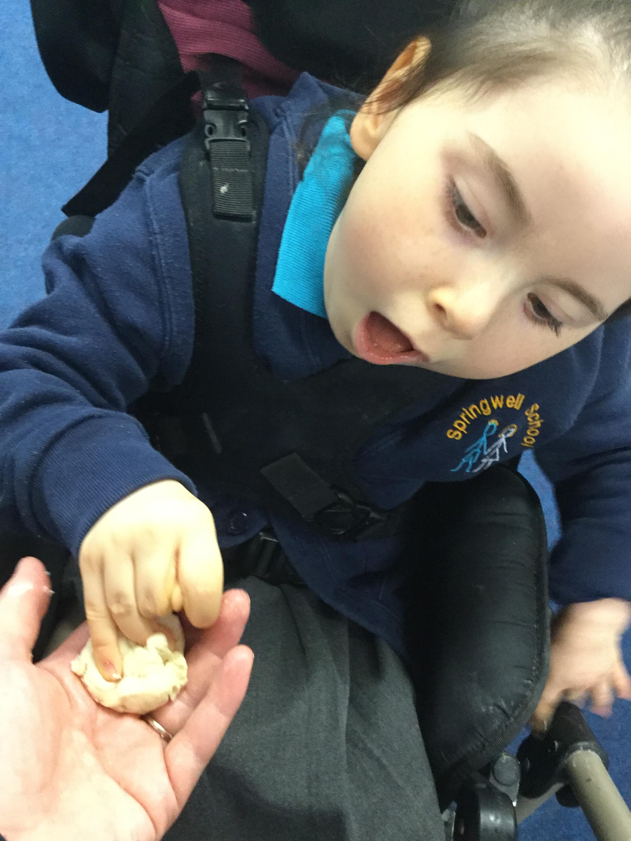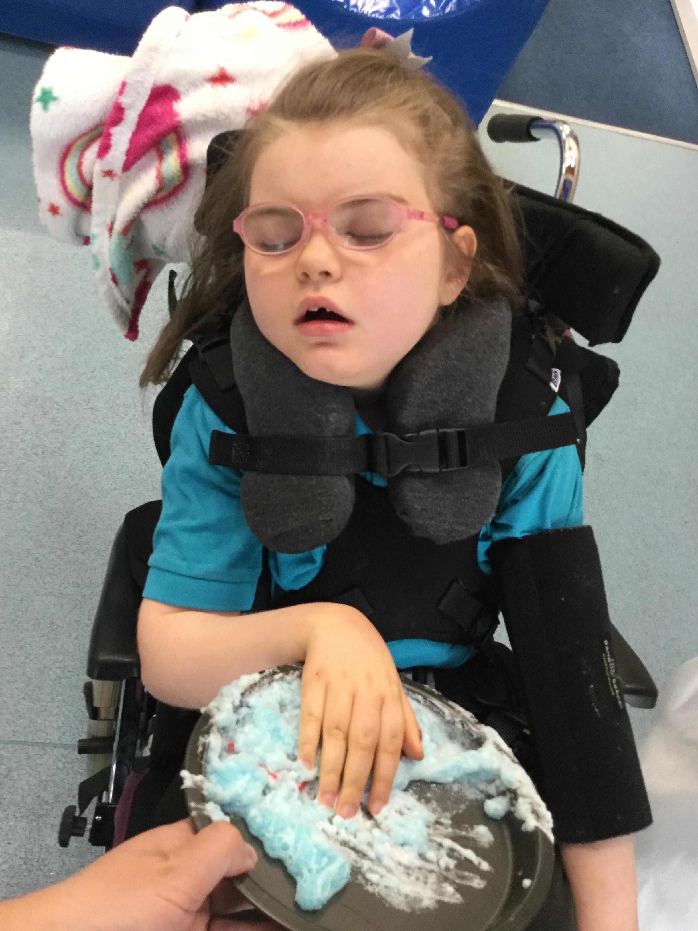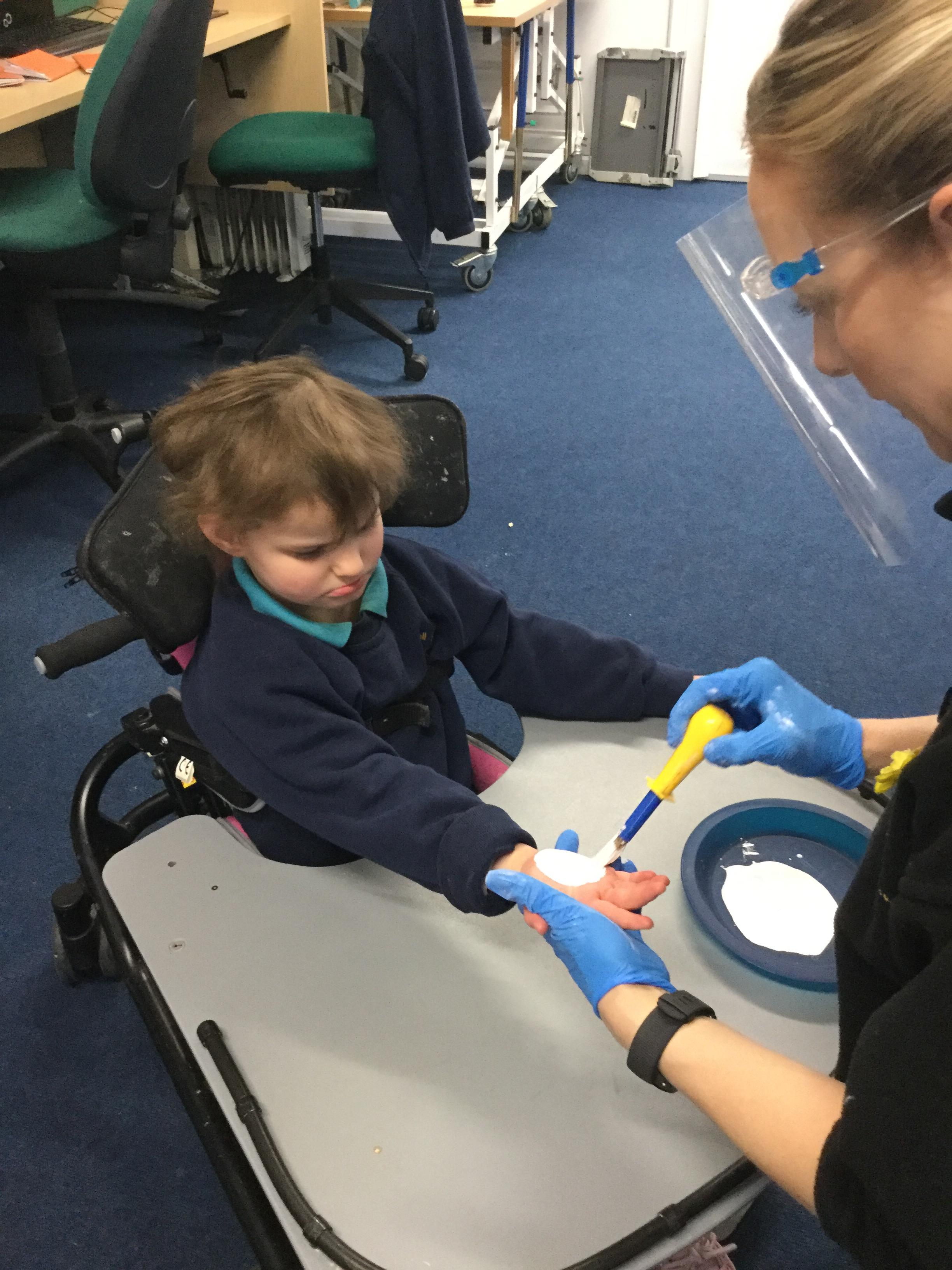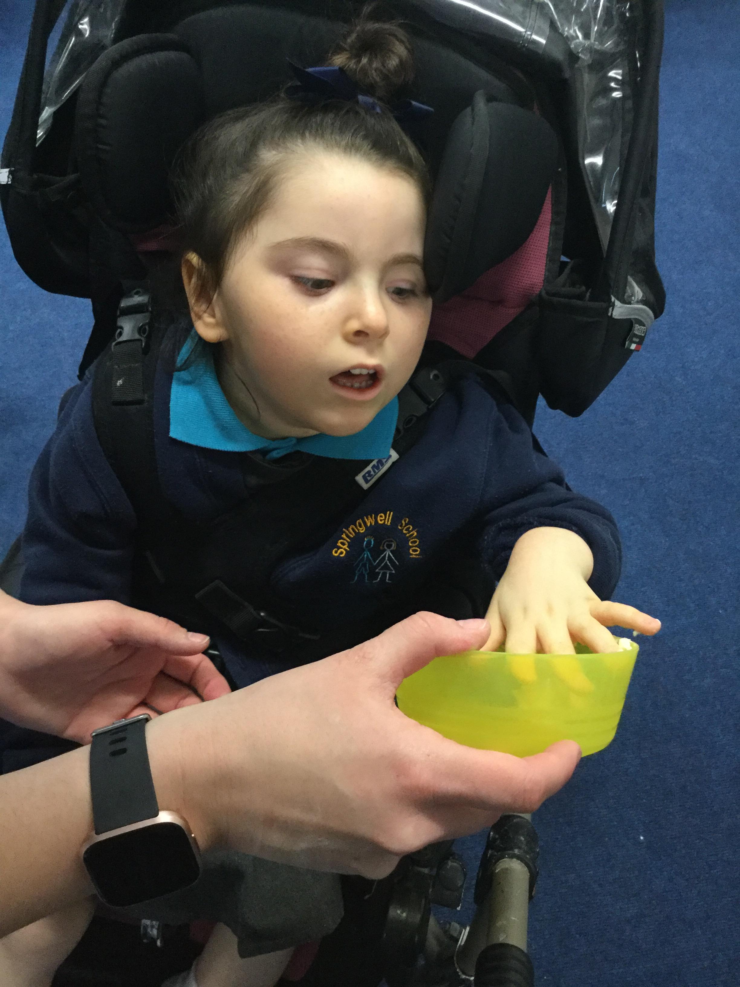 Sparkle curriculum is predominantly made up of sensory themed learning and therapeutic activities. More time will be spent on more beneficial, holistic and individualised activities e.g. positioning in specialised equipment, visual stimulation, hand and finger work (exploration – sensory play), therapies (hydrotherapy, rebound therapy etc), movement, relaxation, Tac Pac, story massage etc.