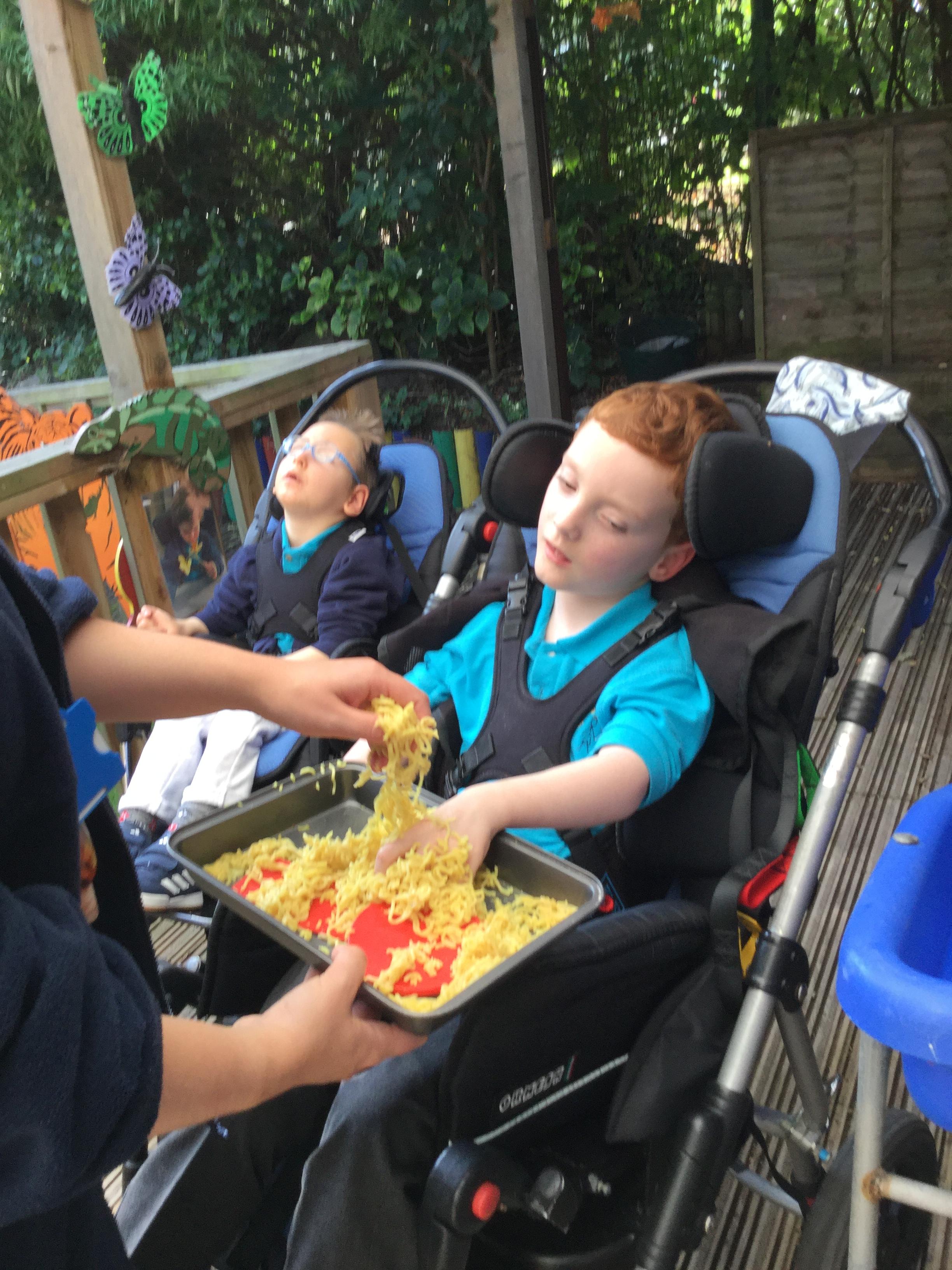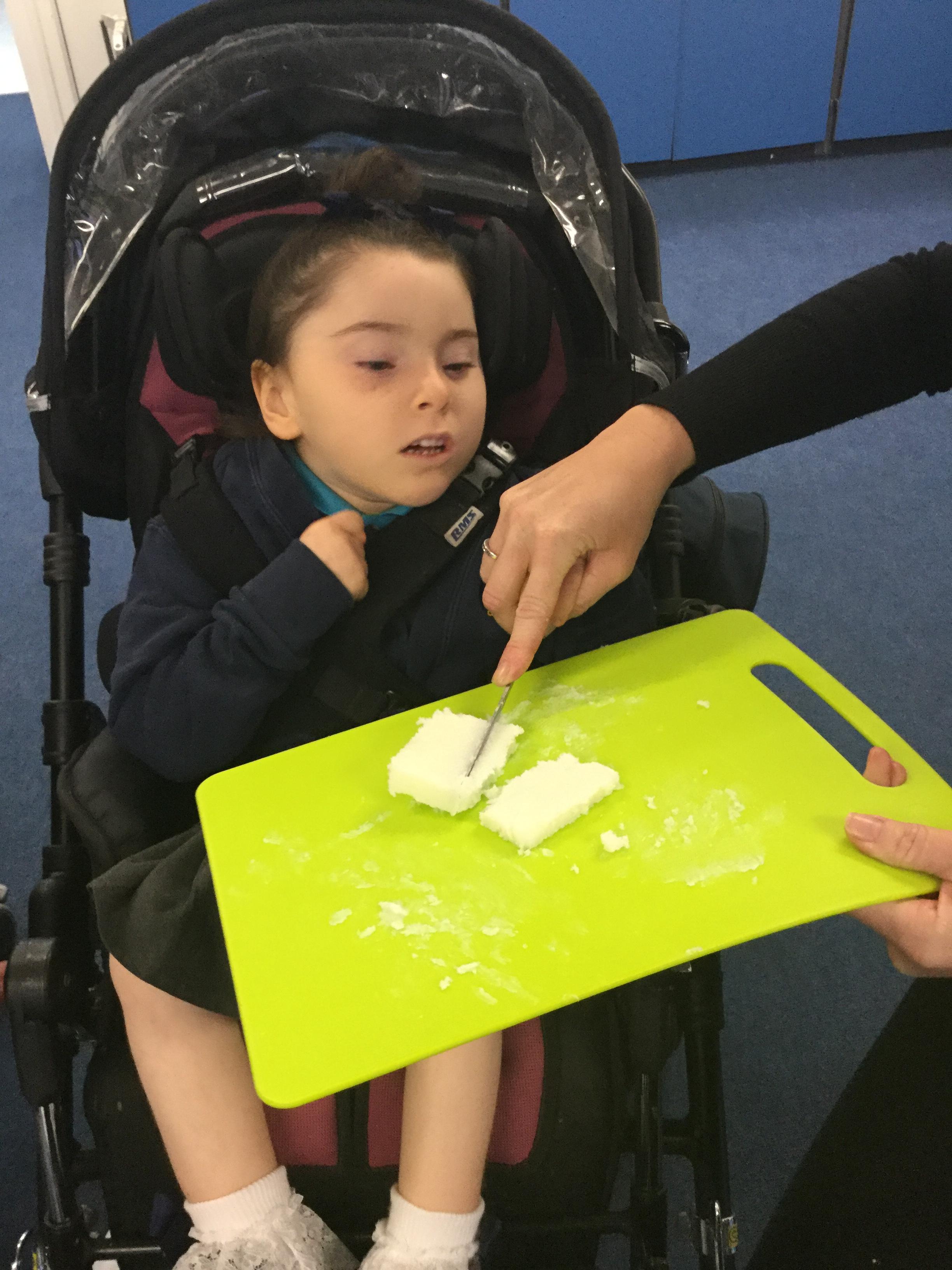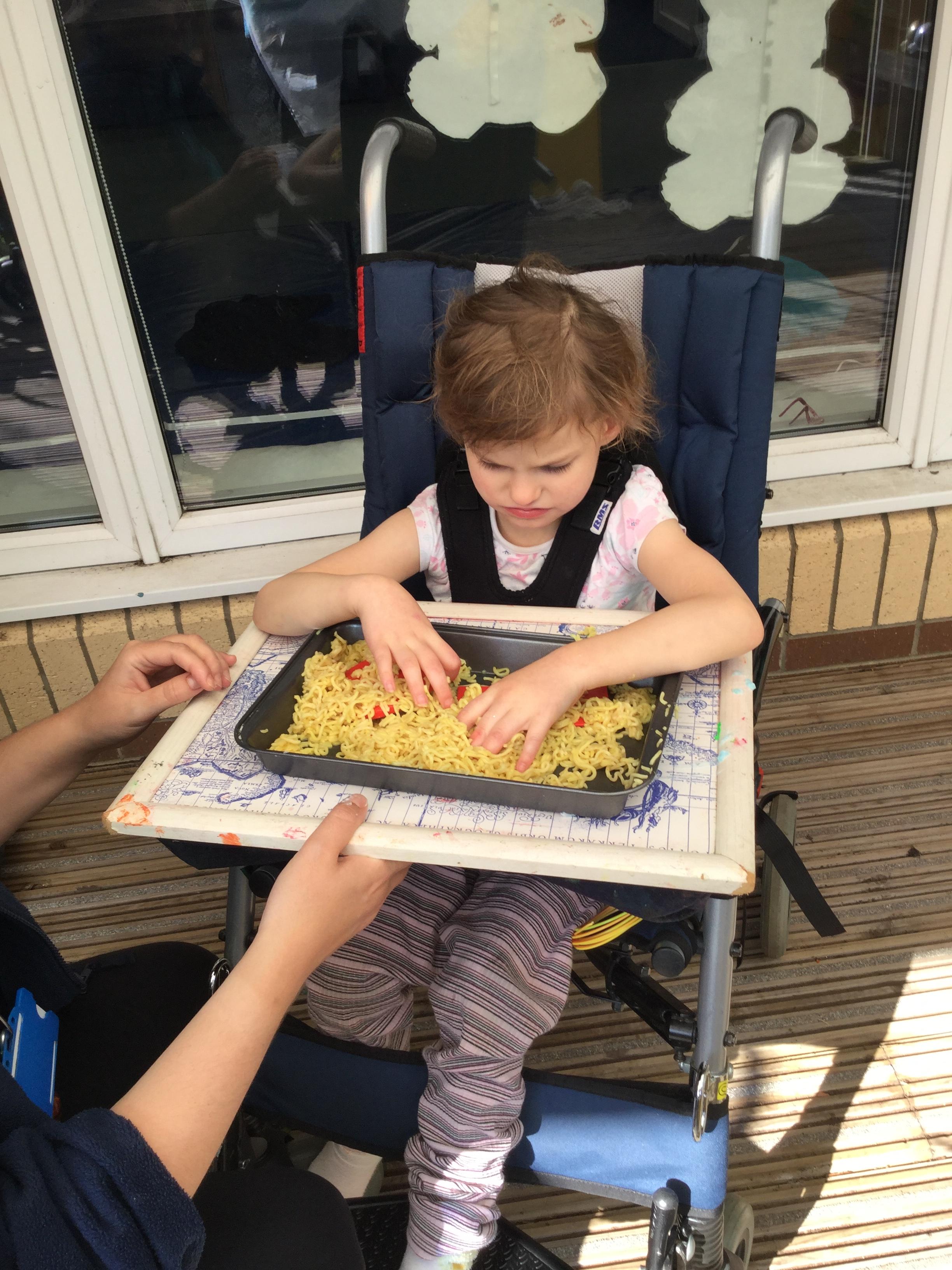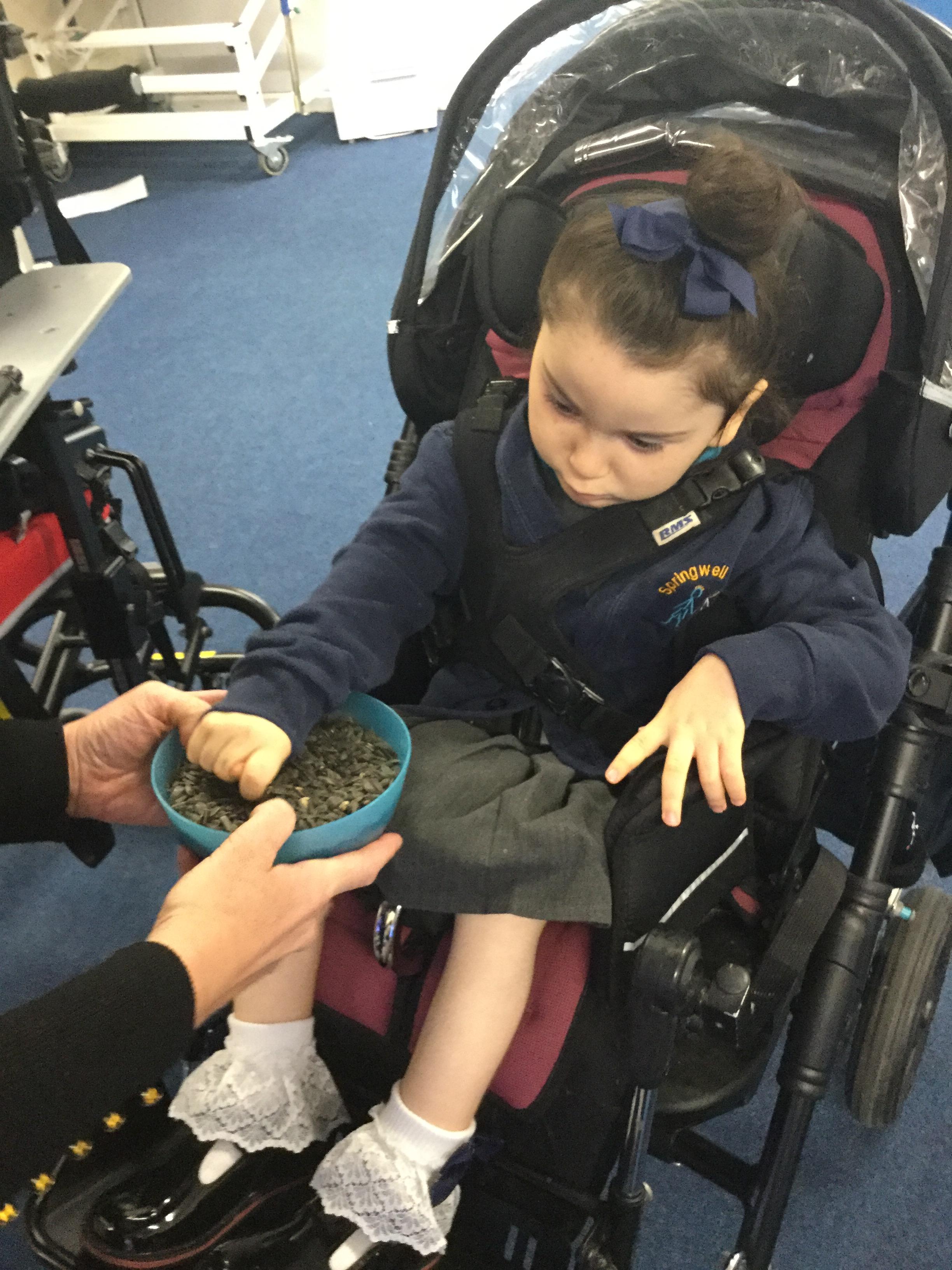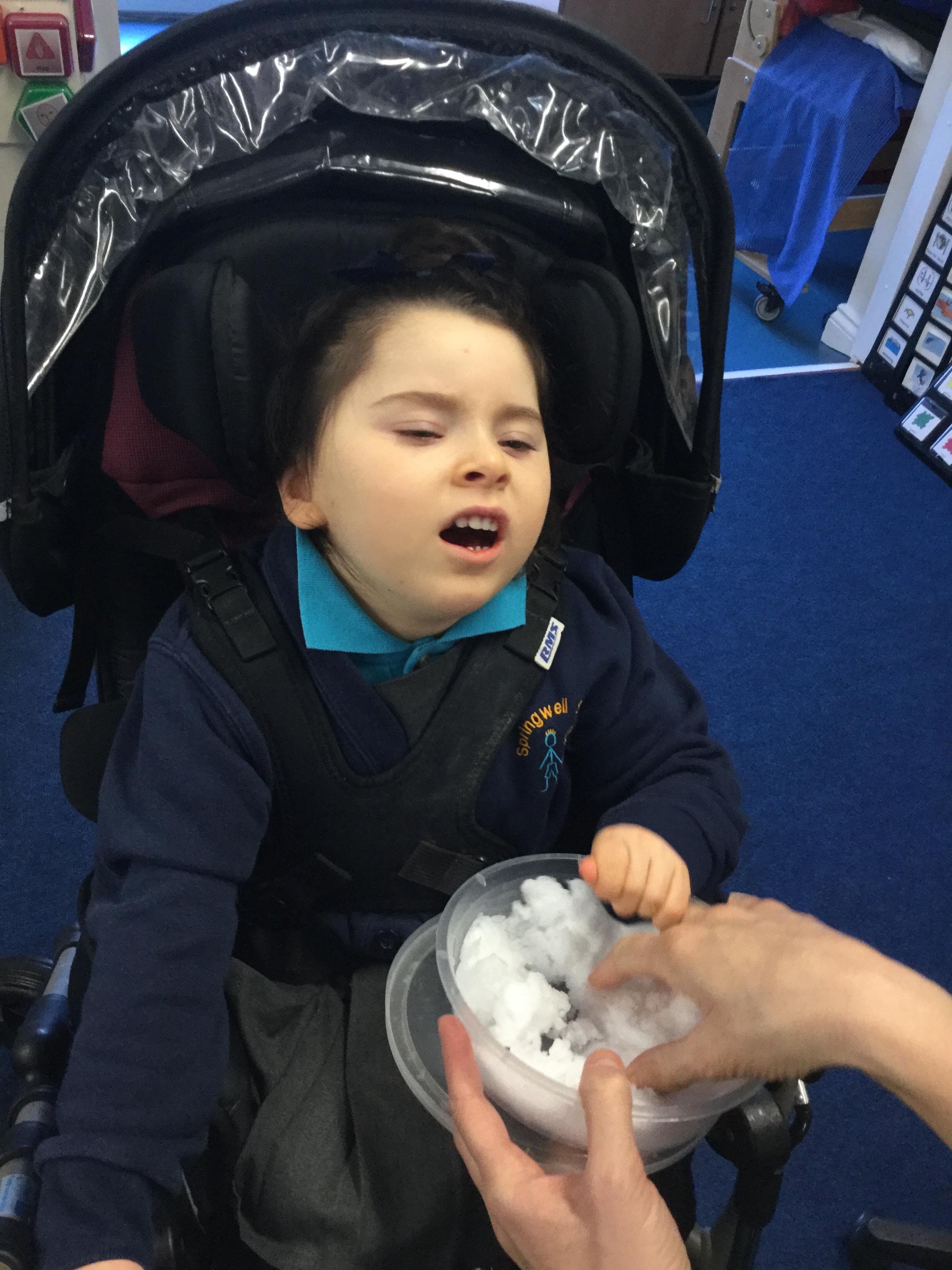 Sparkle curriculum is predominantly made up of sensory themed learning and therapeutic activities. More time will be spent on more beneficial, holistic and individualised activities e.g. positioning in specialised equipment, visual stimulation, hand and finger work (exploration – sensory play), therapies (hydrotherapy, rebound therapy etc), movement, relaxation, Tac Pac, story massage etc.