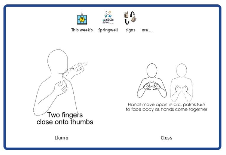 Each week our fantastic Springwell children (and staff) will be introduced to Signs of the Week. These will be Makaton's sign of the week aswell as Springwell's signs of the week. Look out each week for our children signing so brilliantly.