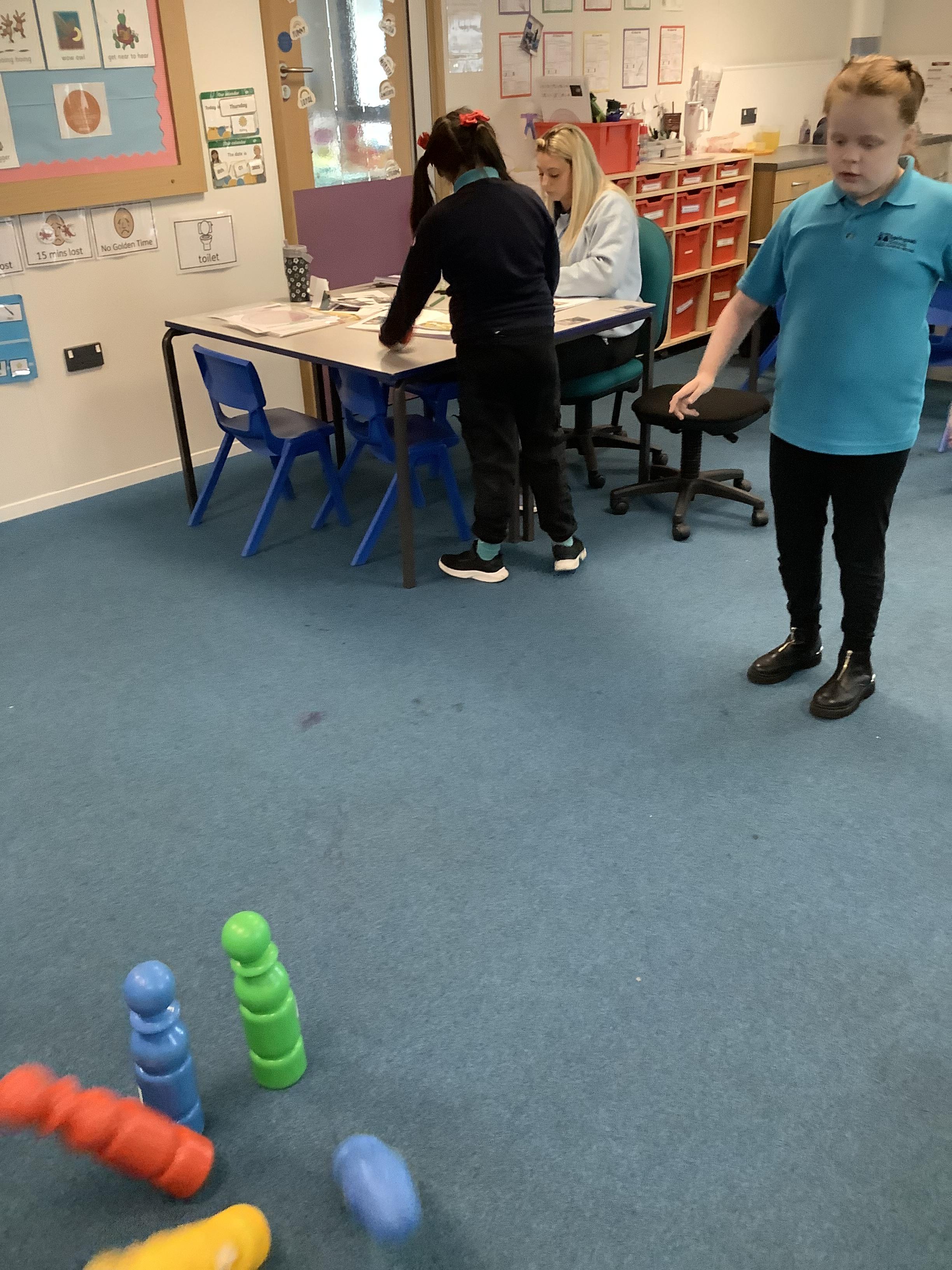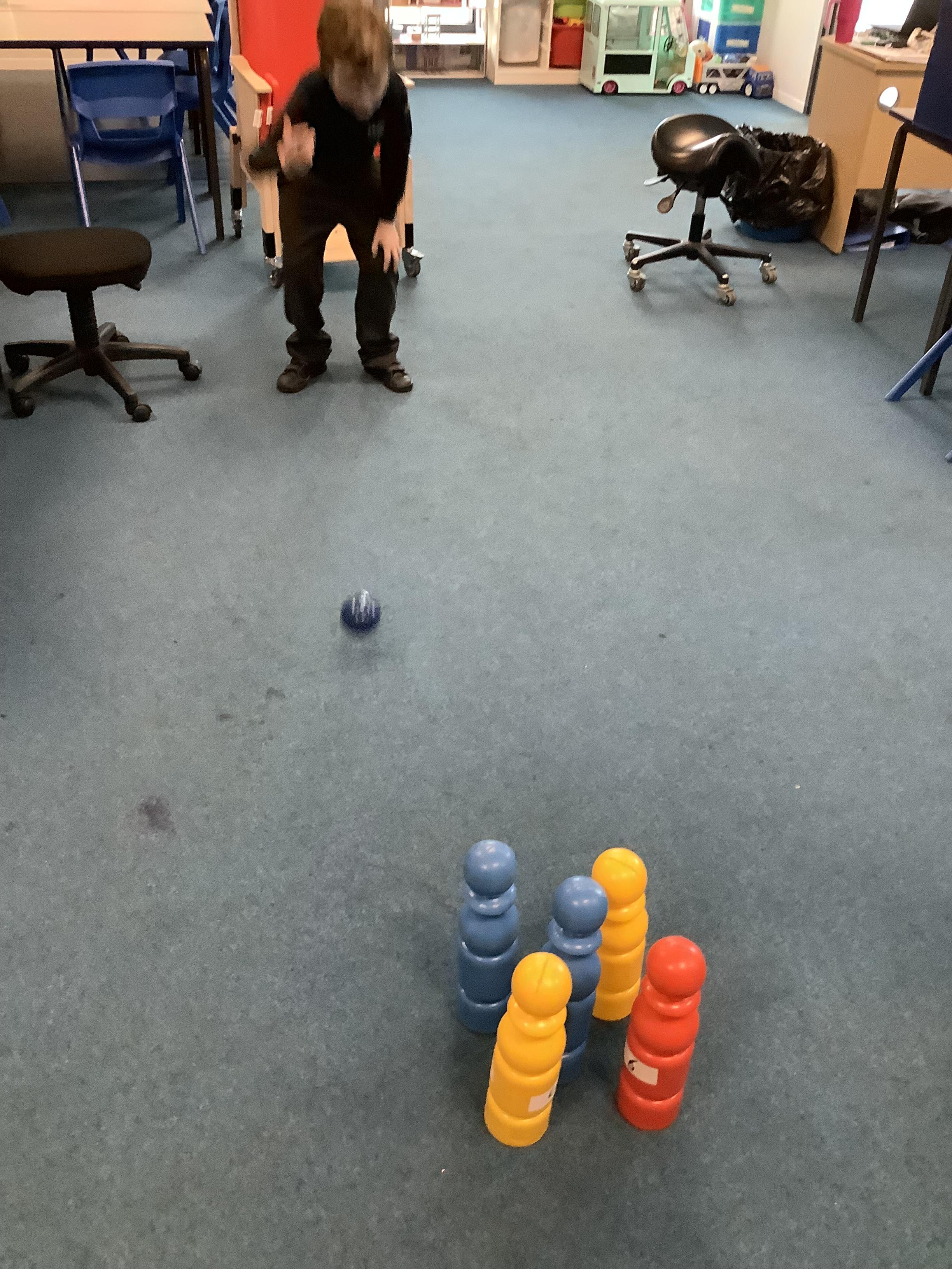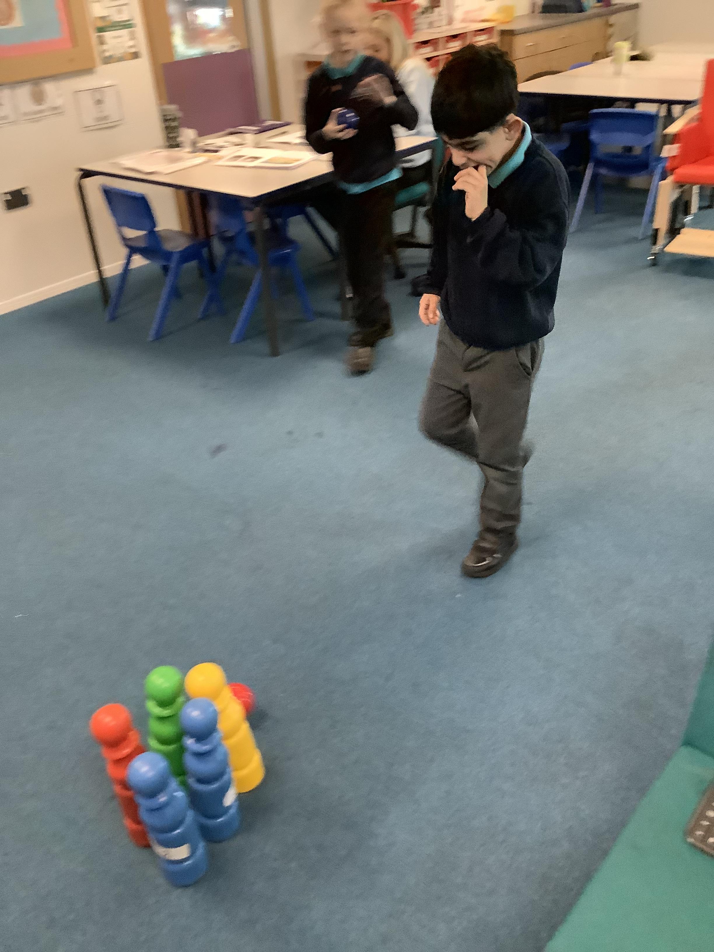 W/b: 5.1.26 Maths: I can recognise and count 0 to 5. The children enjoyed playing skittles during a maths session working out how many skittles they had knocked down and how many were left standing. Well done everyone!