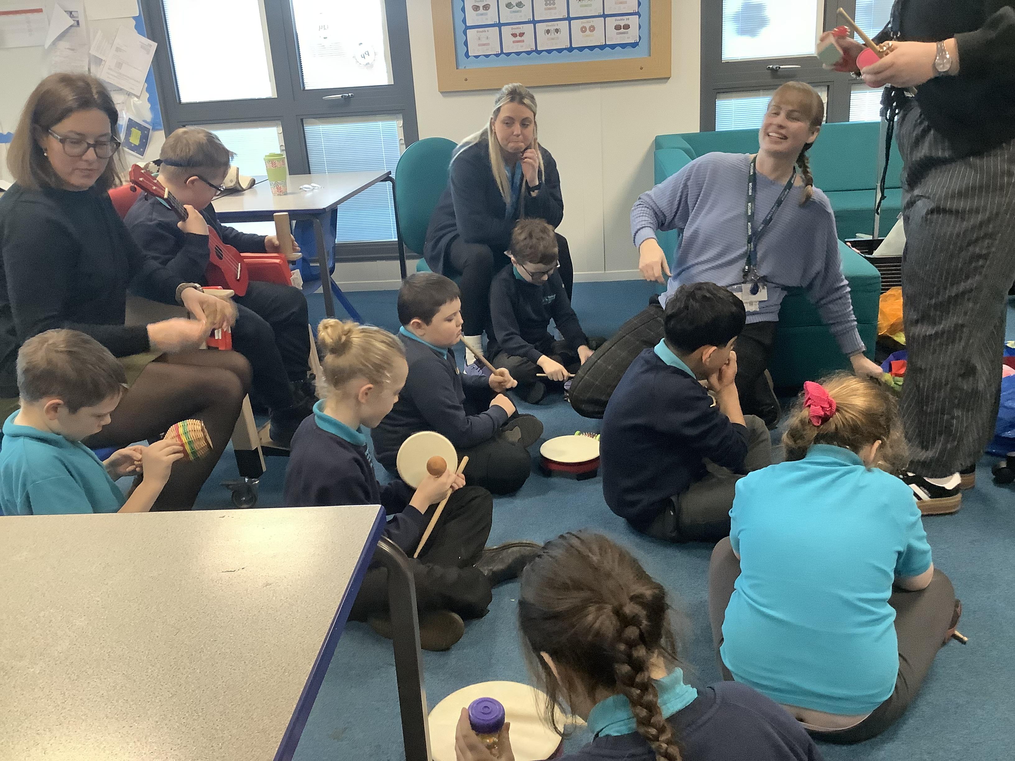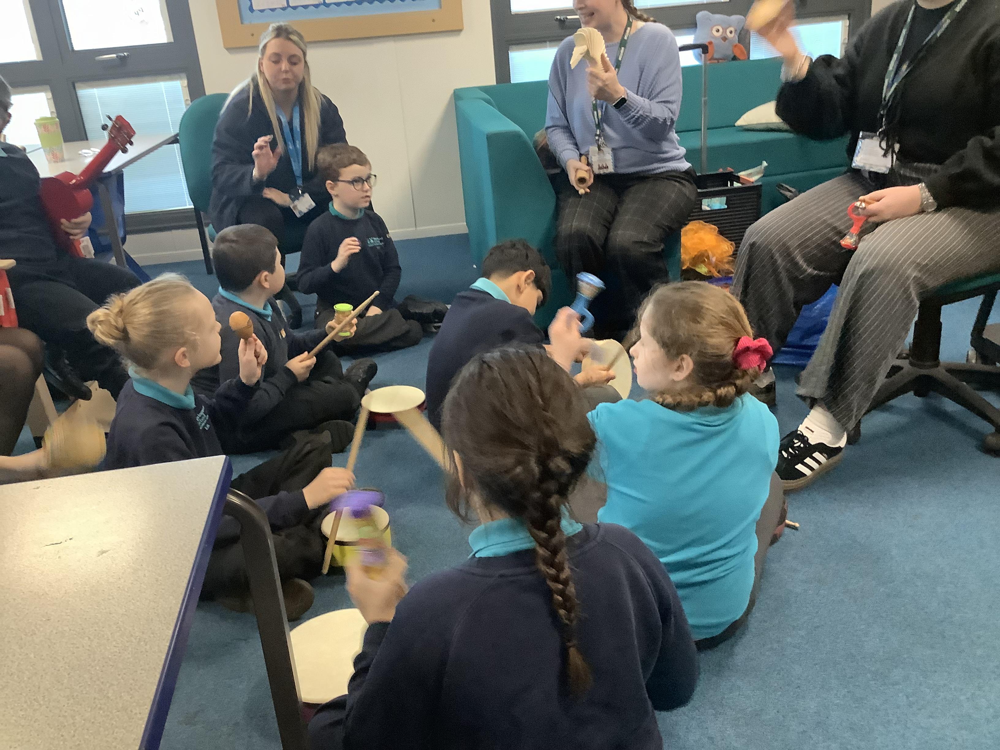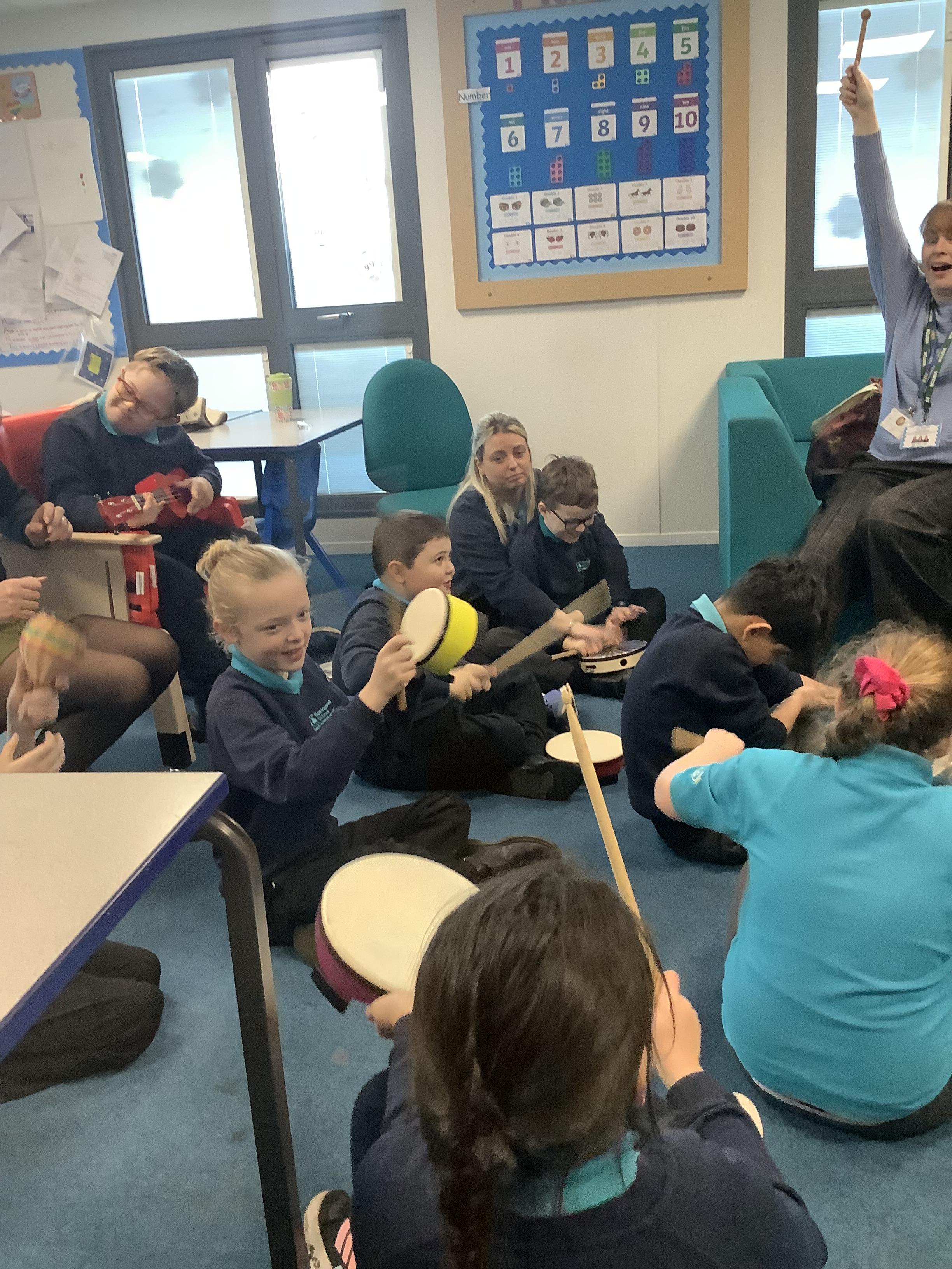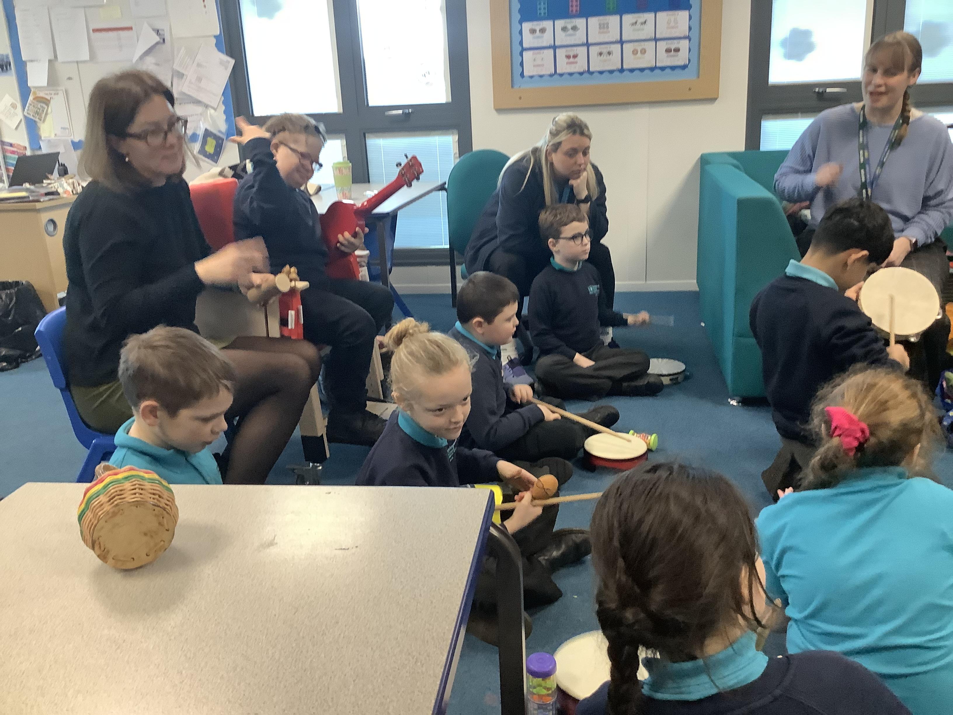 w/b: 12.1.26 I can explore instruments/ I can listen to instructions. The children loved their music session with Becky and Natalie . The children explored the instruments and were able to follow the instructions carefully.