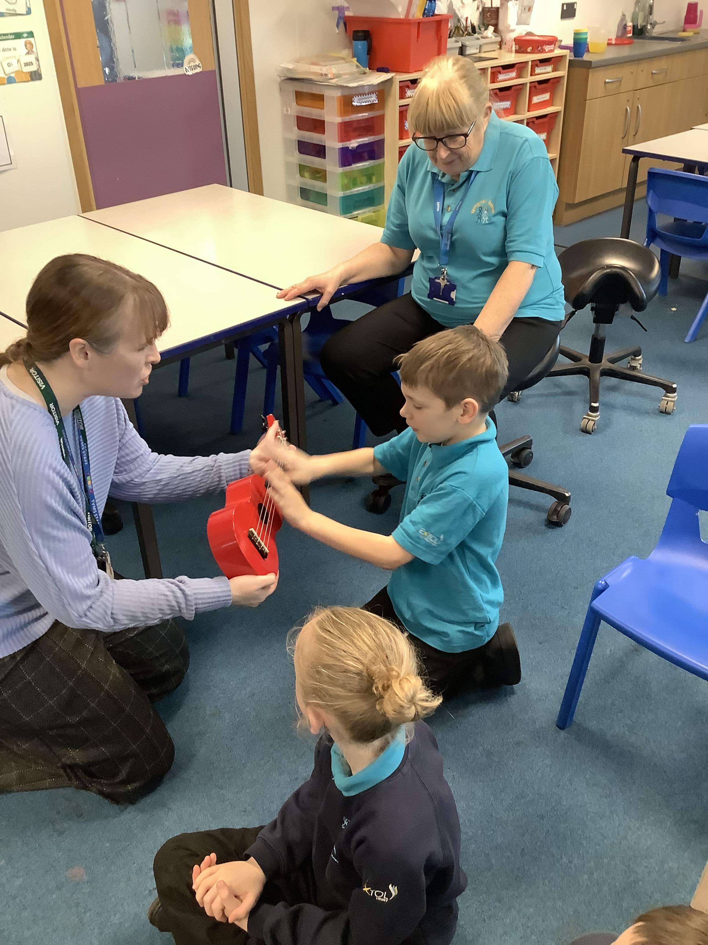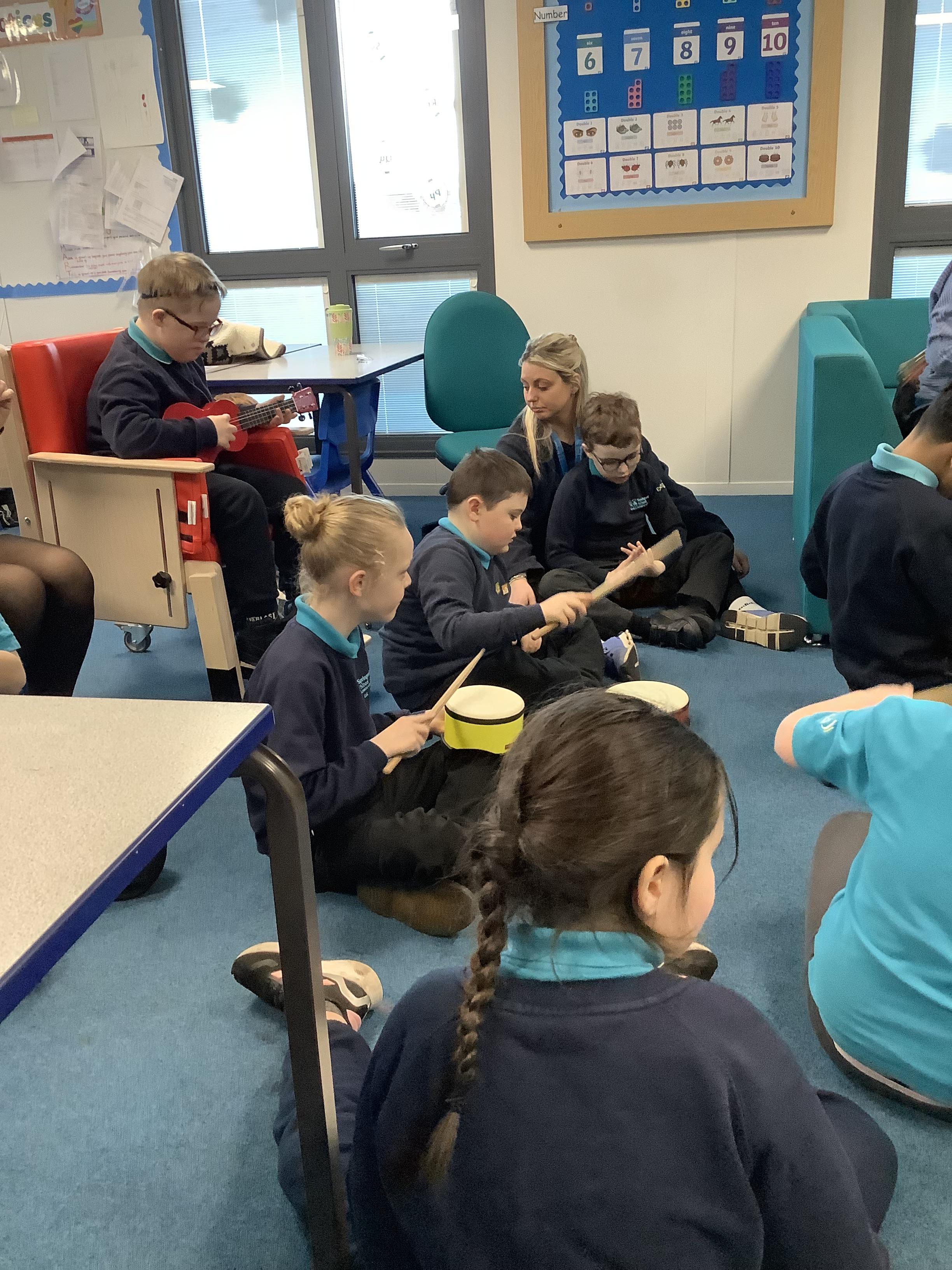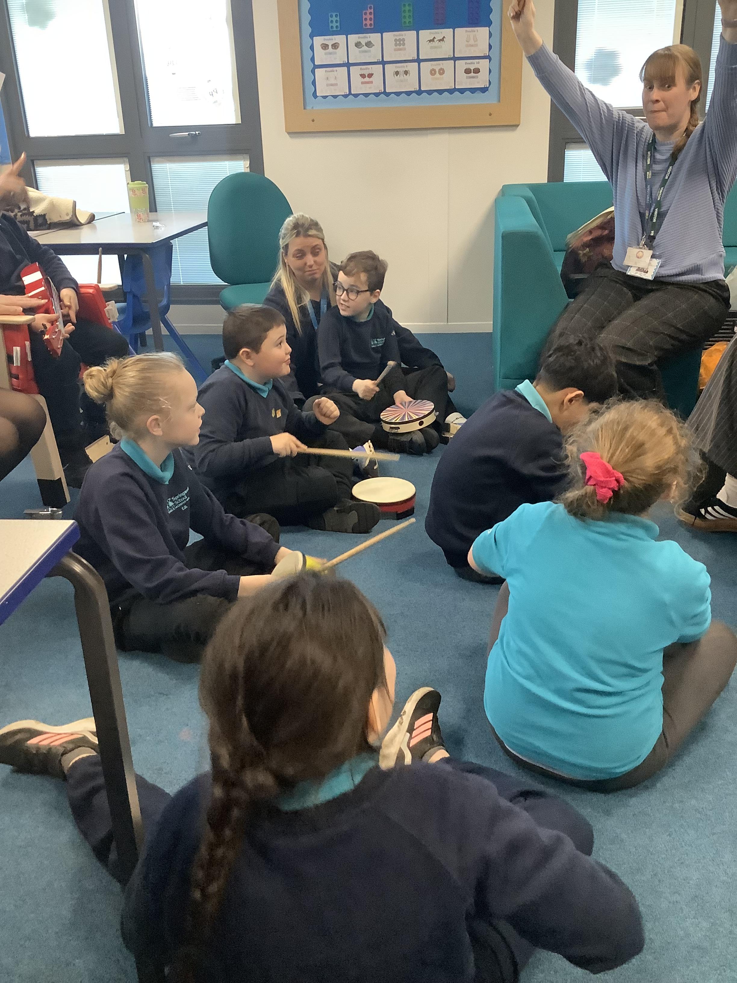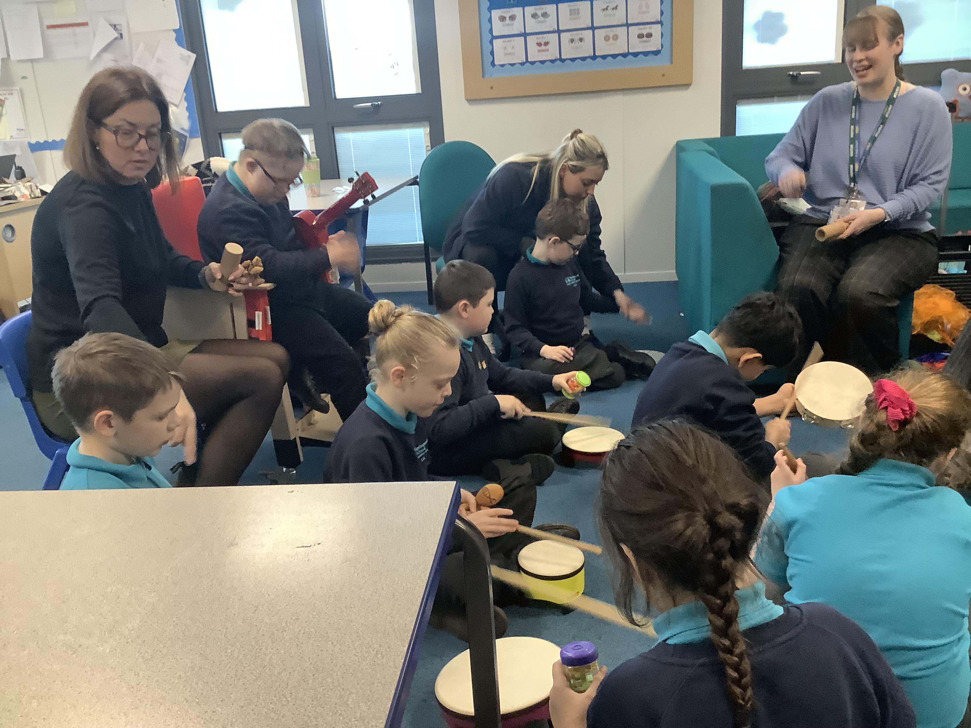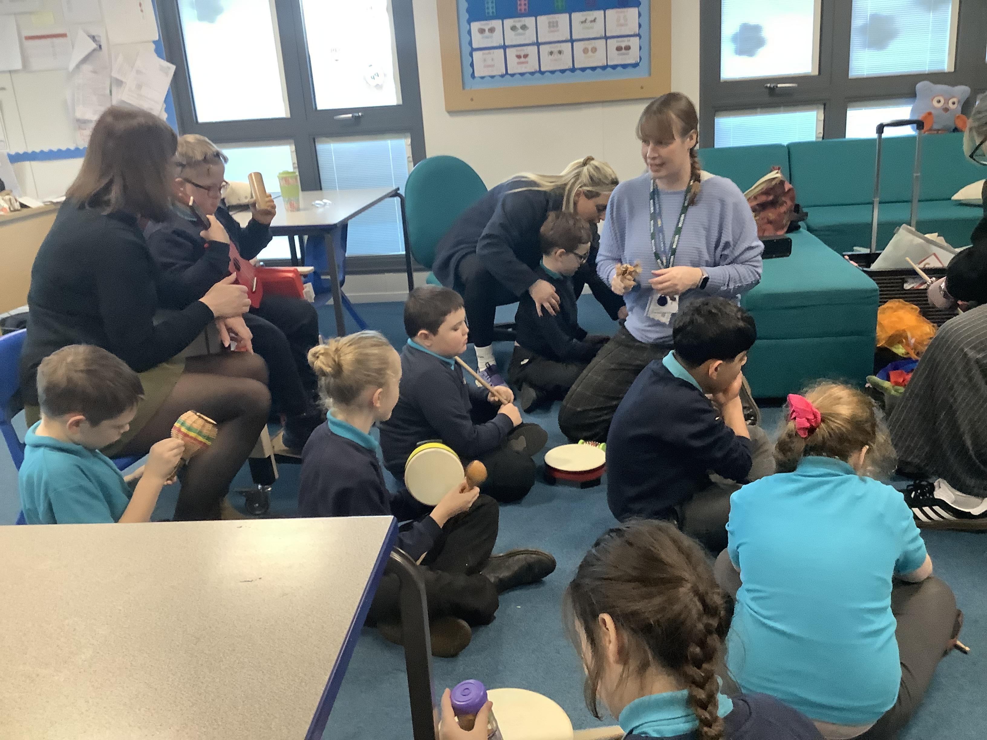 w/b: 12.1.26 I can explore instruments/ I can listen to instructions. The children loved their music session with Becky and Natalie . The children explored the instruments and were able to follow the instructions carefully.